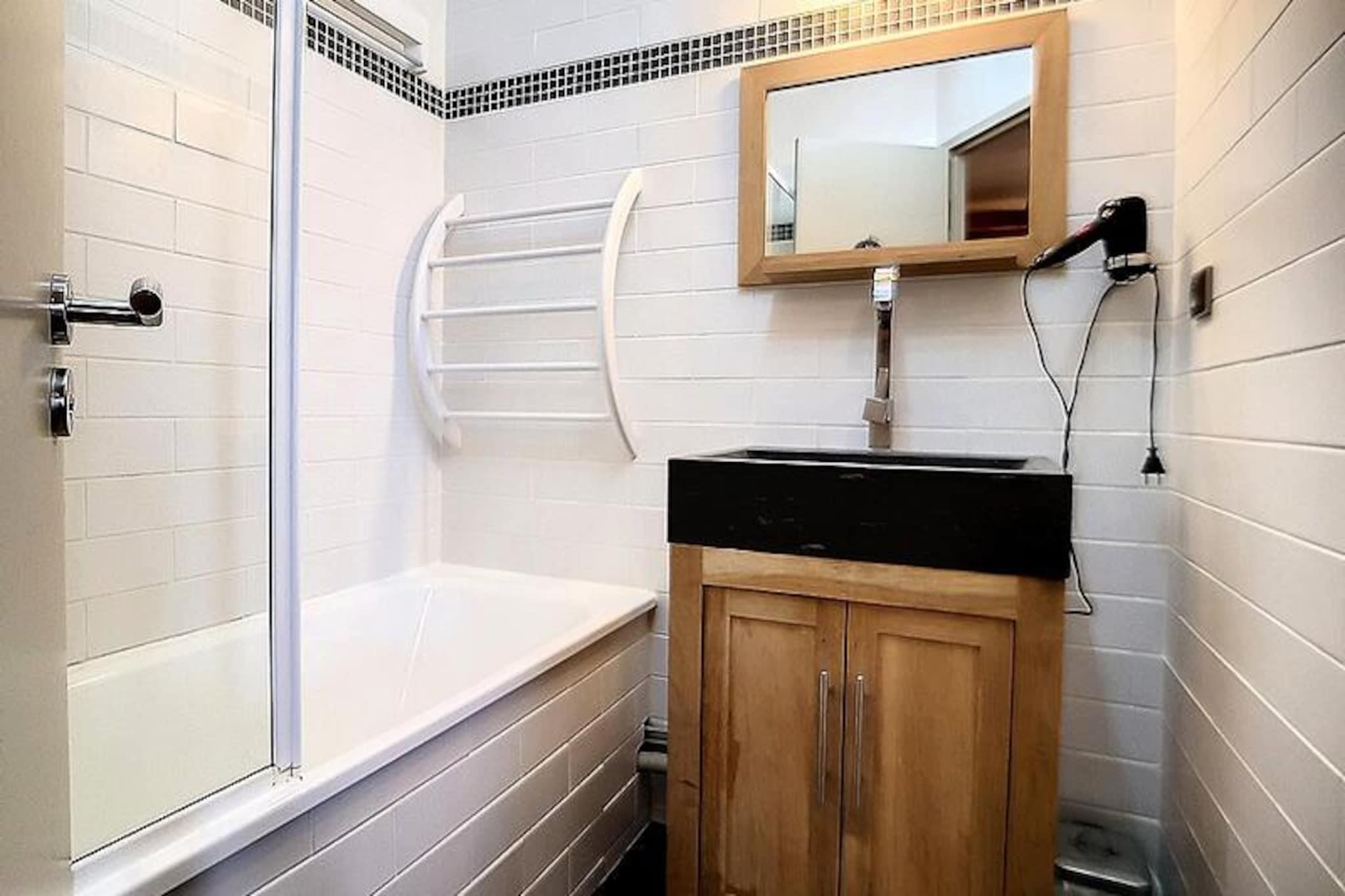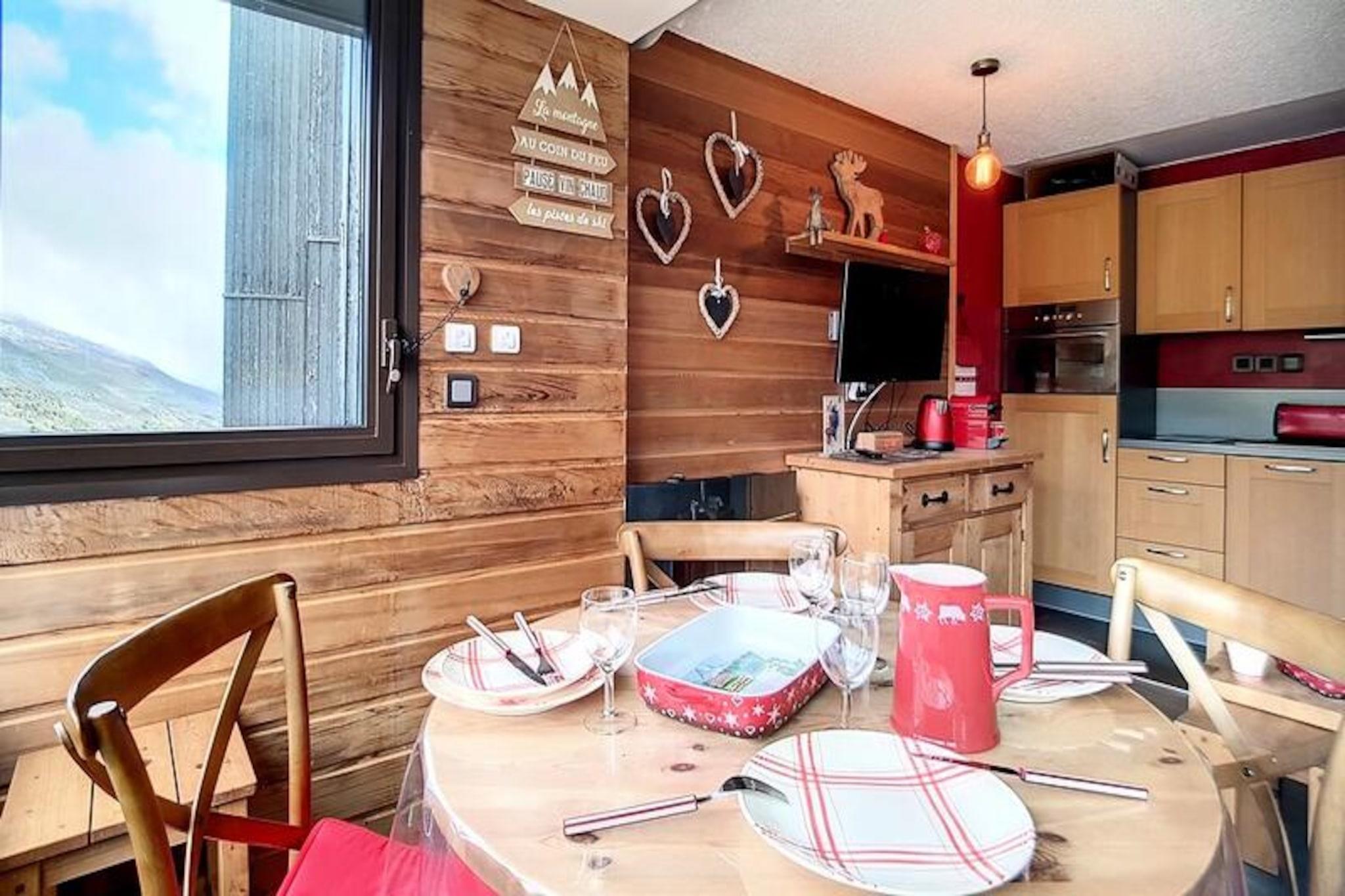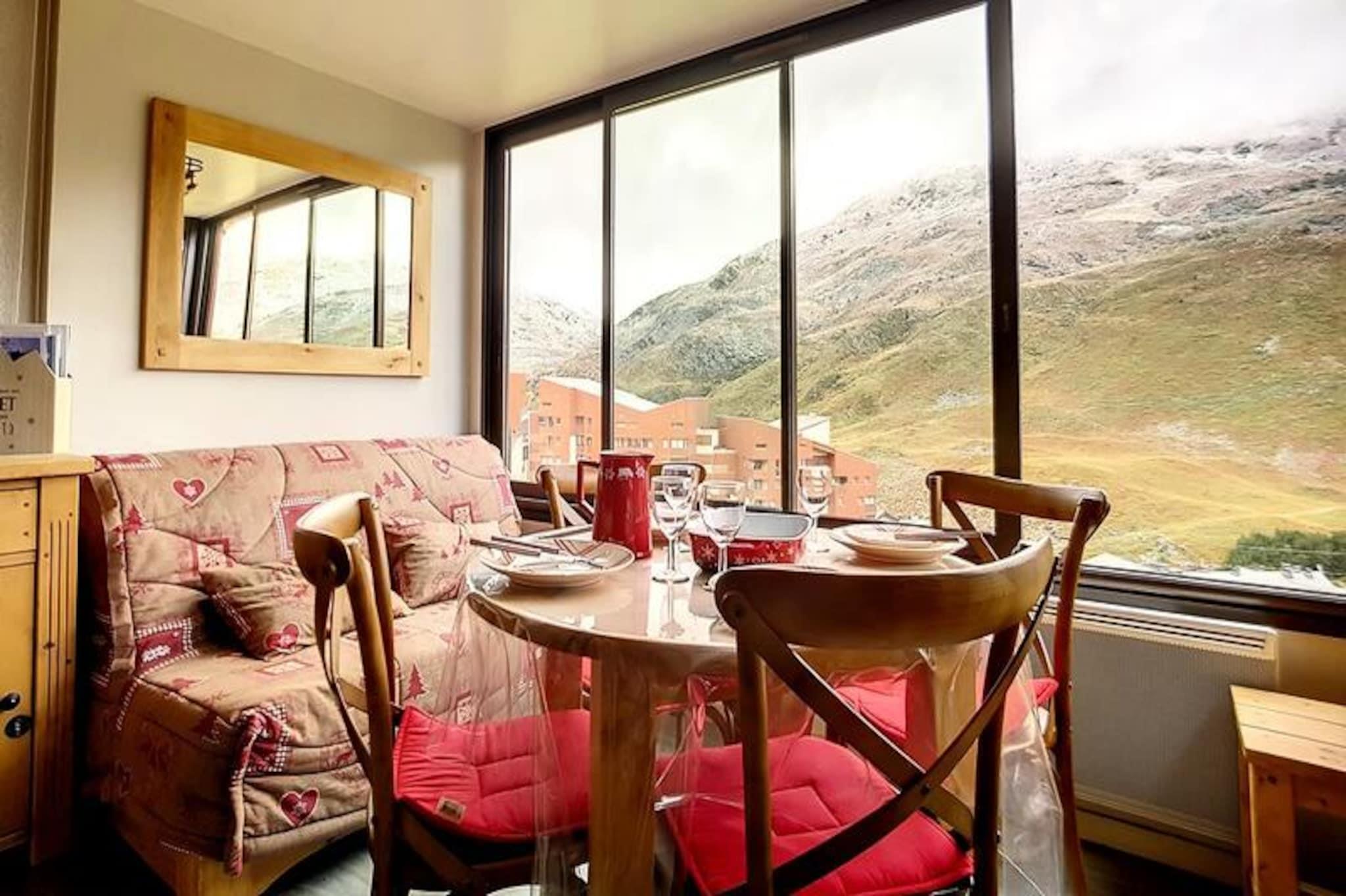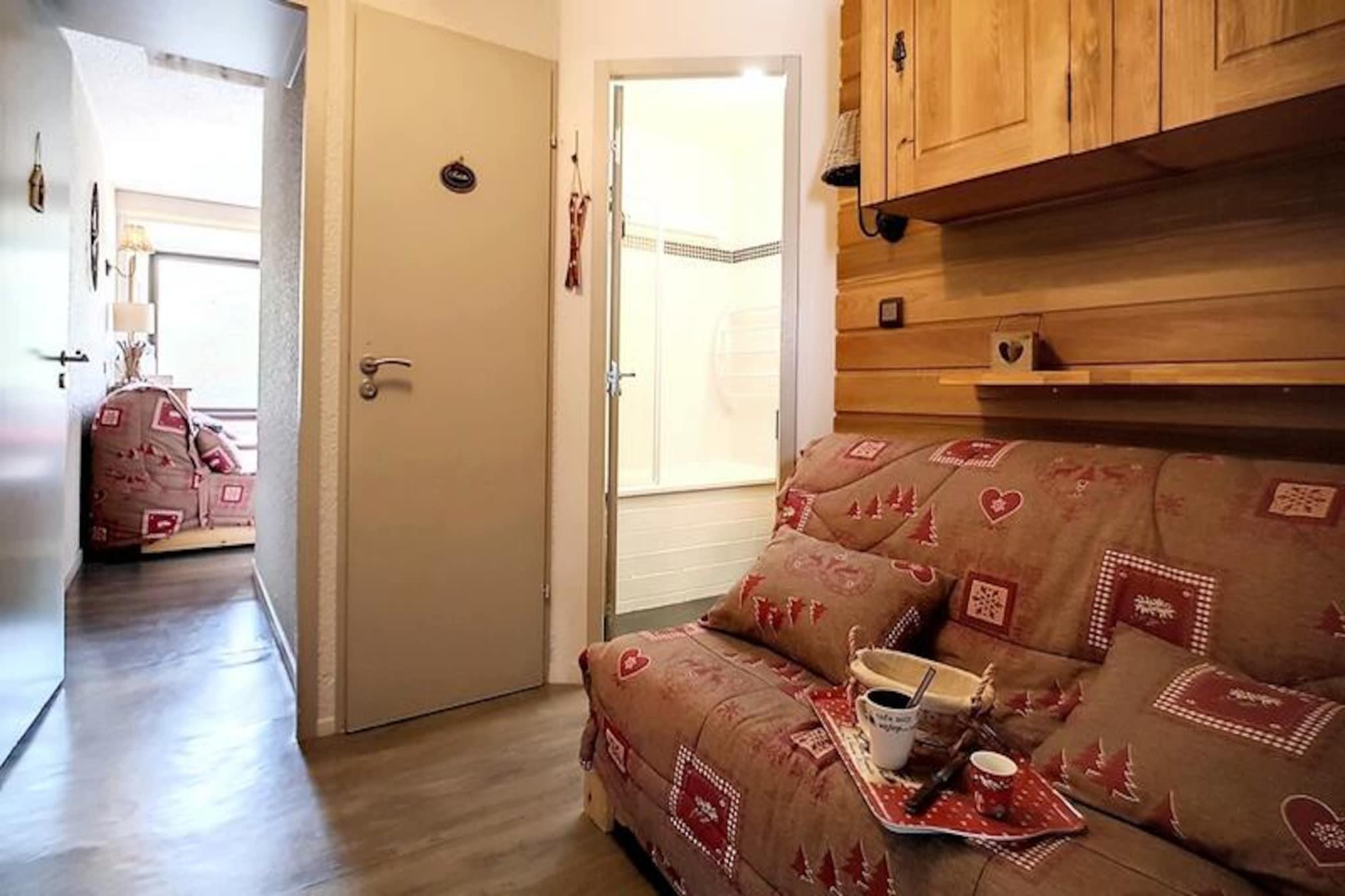 I hjertet af det pulserende Place des Bouquetins tilbyder denne charmerende studiolejlighed et hyggeligt alpint tilflugtssted med uovertruffen ski-in/ski-out adgang. Forestil dig at træde ud af din dør og ud på de uberørte pister i det verdensberømte skiområde Les Menuires, hvor sneen glitrer under den sprøde bjergsol. Denne sydvestvendte perle, der ligger på 5. sal i Biellaz-residensen, inviterer dig til at nyde de franske alpers skønhed i komfort og stil. Det 27 m² store studio er omhyggeligt designet til at rumme op til fire gæster og har en komfortabel stue med en dobbelt sovesofa og en separat sovealkove med en anden dobbelt sovesofa for ekstra privatliv. Det veludstyrede køkken inkluderer en keramisk kogeplade med 2 blus, køleskab, kombineret mikrobølgeovn/ovn, elkedel, kaffemaskine, Nespresso-maskine og brødrister, hvilket gør det nemt at tilberede solide måltider efter en dag på pisterne. Badeværelset kan prale af et afslappende badekar, mens det separate toilet tilføjer bekvemmelighed. Med laminatgulv overalt føles rummet varmt og indbydende, perfekt til afslapning efter en dag med alpine eventyr. Biellaz-residensen tilbyder gratis Wi-Fi (afhængigt af dækning) og en elevator for din bekvemmelighed. En kort gangbro forbinder dig til det livlige Bruyères-distrikt, hvor du finder et udvalg af restauranter, butikker, et turistkontor, et vandland og wellnesscenter, en biograf, en kælkebane, en skiskole og en legeplads. For dem, der søger endnu mere, ligger Croisette-distriktet kun 15 minutters gang væk via en naturskøn gangsti. Uanset om du er her for at kæmpe dig gennem frisk puddersne, udforske den pulserende lokale kultur eller blot slappe af og nyde den rolige alpine atmosfære, er denne studiolejlighed din port til en uforglemmelig bjergflugt. Med sin førsteklasses beliggenhed, moderne faciliteter og hyggelige charme er det den perfekte base for dit næste eventyr i Les Menuires.