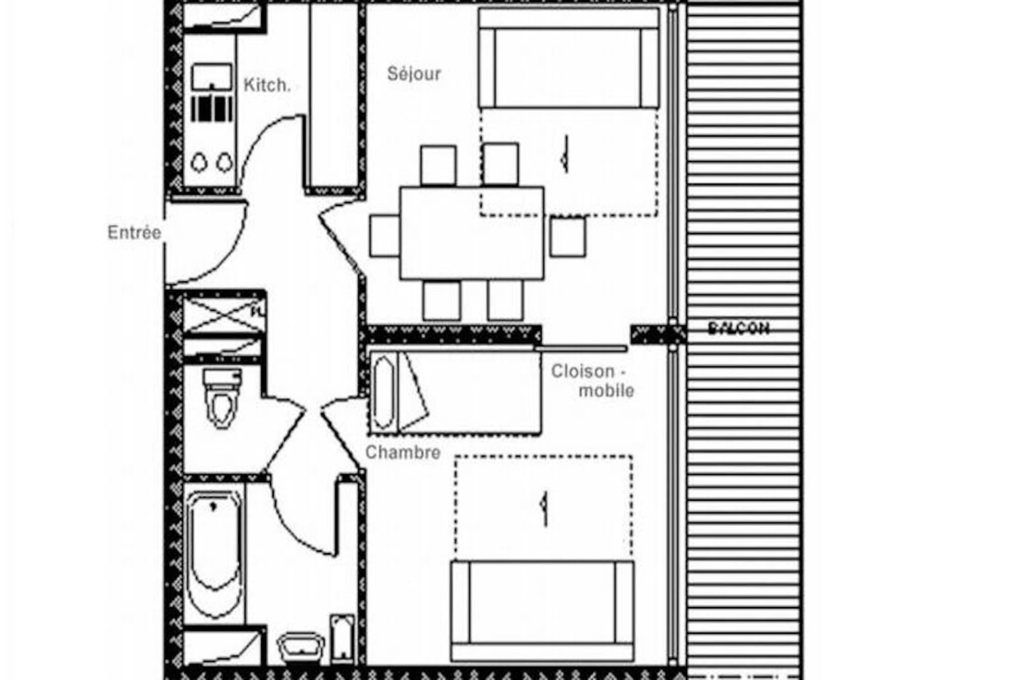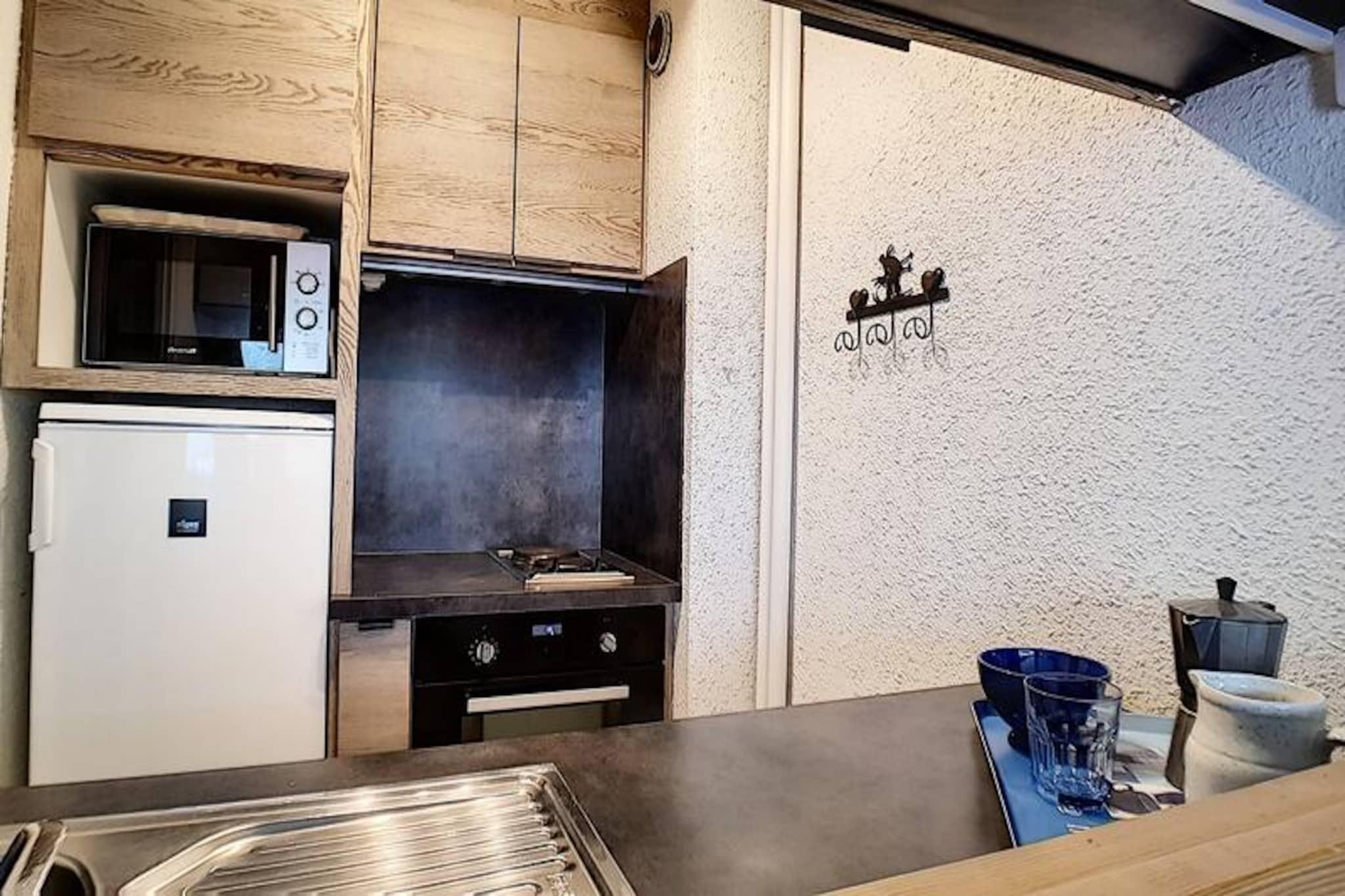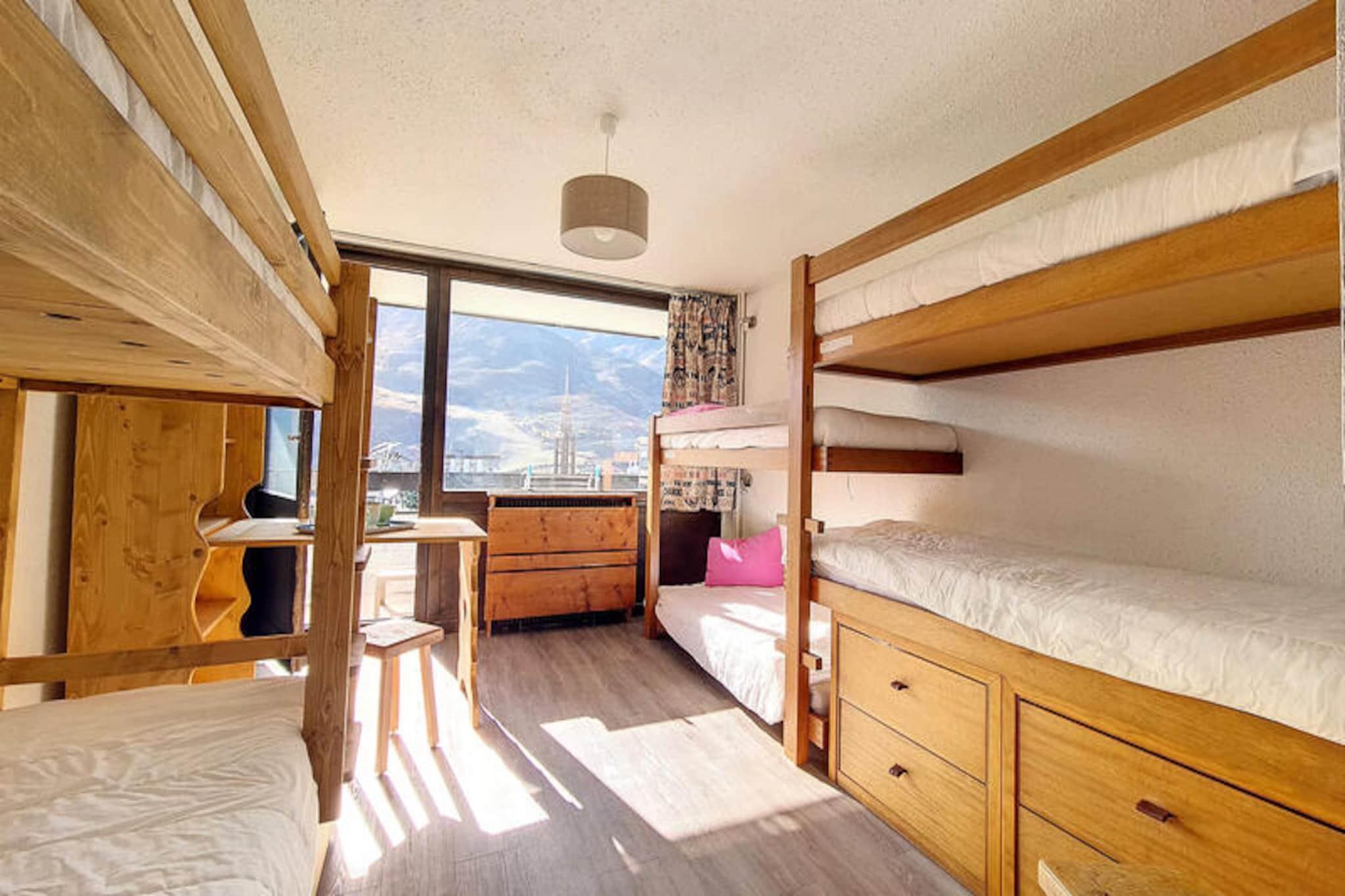 I hjertet af det pulserende La Croisette-distrikt tilbyder denne charmerende alpine lejlighed et hyggeligt tilflugtssted med uovertruffen ski-in/ski-out-bekvemmelighed. Forestil dig at træde ud af din bygning og direkte ud på pisterne, med begyndervenlige pister lige uden for døren. Aravis-bygningen er perfekt beliggende til både afslapning og eventyr, med den livlige shoppingarkade kun 2 minutters gang væk og busstationen kun 5 minutter til fods. Uanset om du er her for spændingen ved skiløb eller den fredfyldte udsigt over bjergene, har denne beliggenhed det hele. Denne 42 m² store lejlighed, der ligger på 3. sal, har komfortabel plads til op til seks gæster. Stuen har en sovesofa til to personer, et tv og en dvd-afspiller, hvilket skaber et hyggeligt rum at slappe af efter en dag på pisterne. Soveværelset er omhyggeligt designet med to sæt køjesenge, hvilket gør det ideelt til familier eller vennegrupper. En sydvendt balkon inviterer dig til at nyde solen og beundre det fantastiske alpine landskab. Det fuldt udstyrede køkken indeholder alt, hvad du behøver for at tilberede solide måltider, fra køleskab og ovn til en raclettegrill til en autentisk bjergmadoplevelse. Moderne faciliteter som vaskemaskine, opvaskemaskine og betalt Wi-Fi sikrer et problemfrit ophold. Familier vil sætte pris på nærheden til Pioupiou Club, en dagpleje og snehave, der ligger kun 10 minutters gang væk, hvilket gør det til et perfekt valg for dem, der rejser med små børn. For ekstra bekvemmelighed kan man leje en garage i den nærliggende Pelvoux-residens. Med sin førsteklasses beliggenhed og gennemtænkte faciliteter er denne lejlighed din indgang til en uforglemmelig alpin ferie. Uanset om du er på pisterne, udforsker den charmerende landsby eller blot slapper af på balkonen, er hvert øjeblik her et minde i sin vorden.