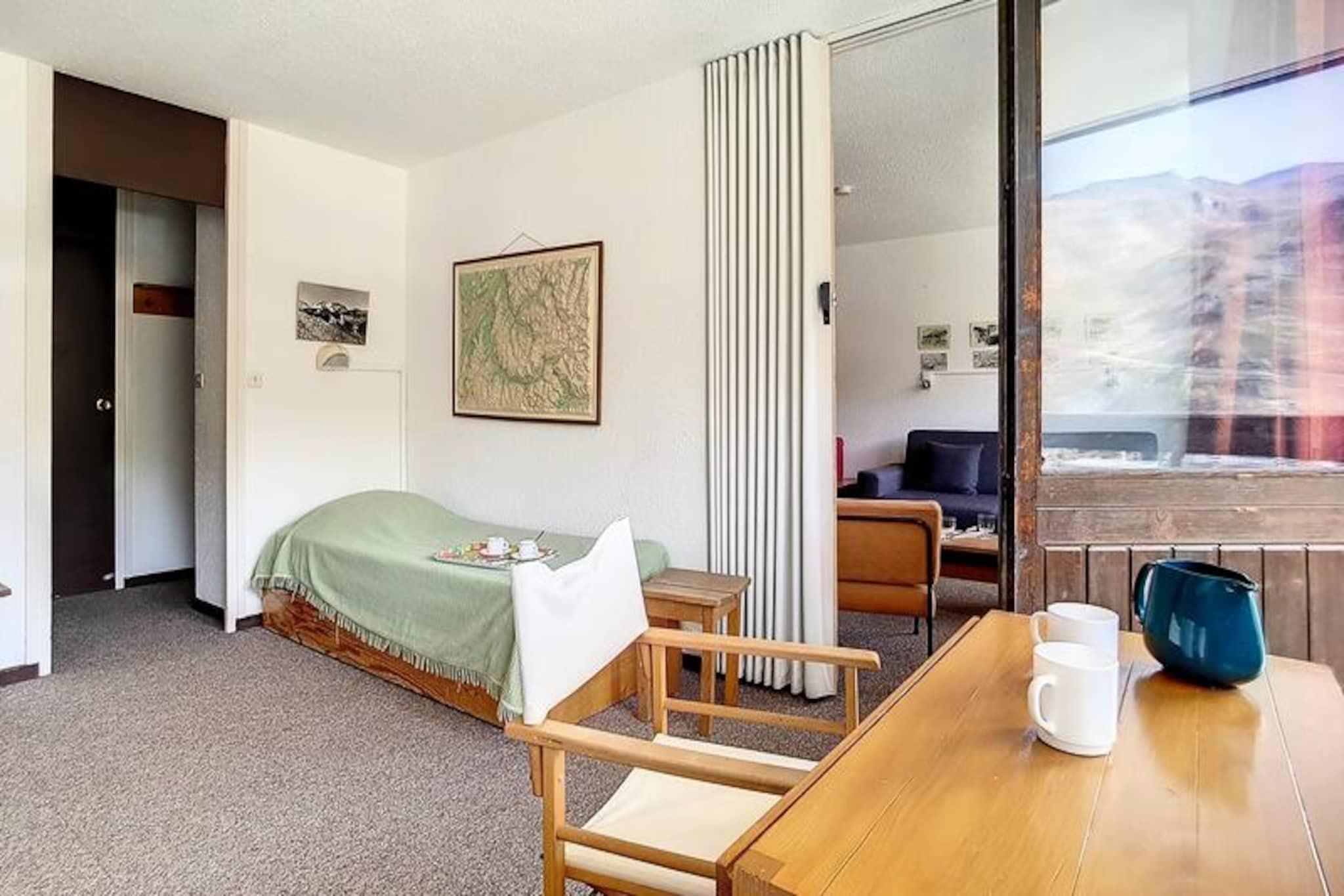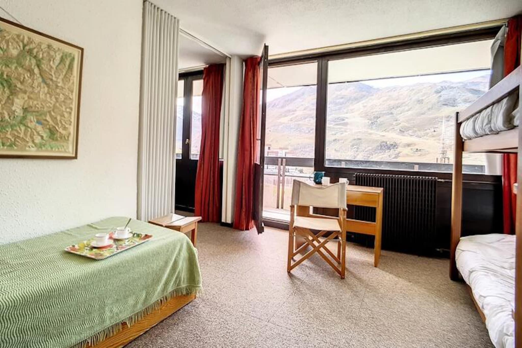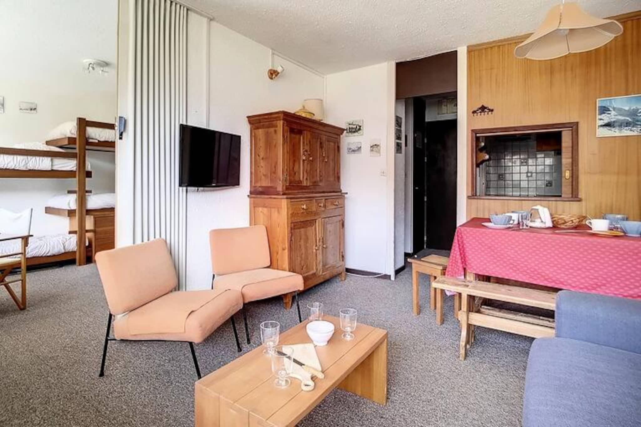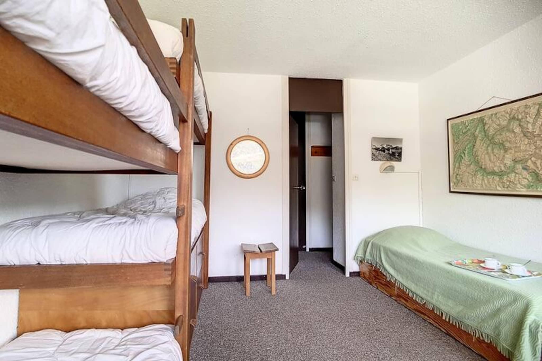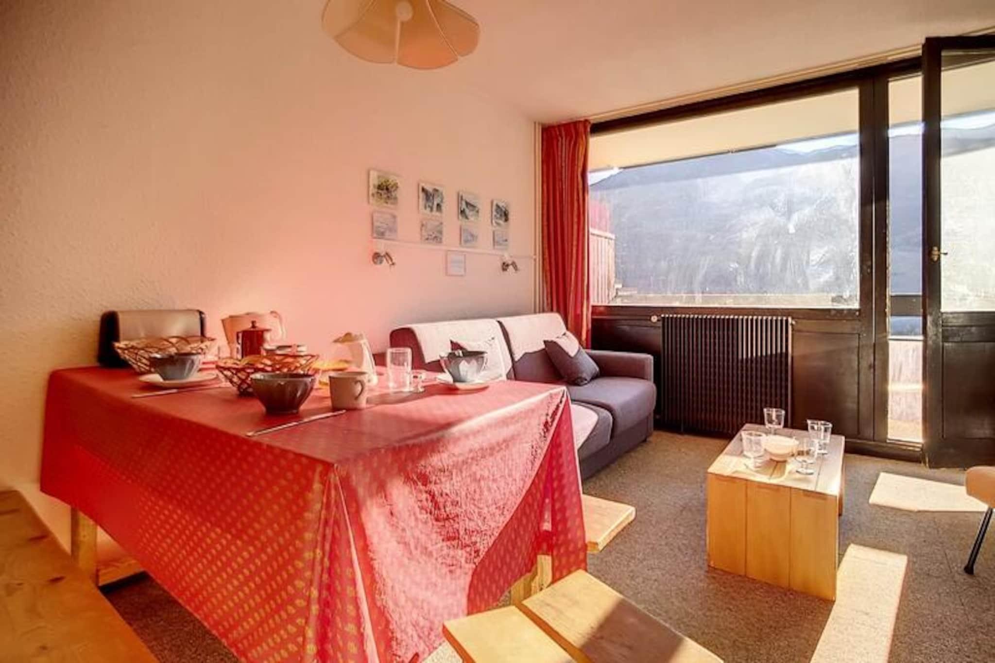 Højt over de travle gader i La Croisette tilbyder denne charmerende ski-in/ski-out-lejlighed et uovertruffent alpint tilflugtssted. Beliggende i Aravis-bygningen kan gæsterne nyde en betagende sydvendt udsigt og direkte adgang til pisterne, hvilket gør den til et ideelt valg for både vintersportsentusiaster og familier. Uanset om du ser solopgangen over de sneklædte tinder eller træder ud på begynderpisterne lige udenfor, føles hvert øjeblik her som en hyldest til bjerglivet. Den nærliggende Pioupiou-børneklub sikrer, at selv de yngste eventyrere kan nyde deres tid i sneen, mens ESF-skiskolens mødested ligger bekvemt tæt på for dem, der er ivrige efter at forfine deres færdigheder. Indenfor maksimerer lejlighedens gennemtænkte design komfort og funktionalitet. Stuen har en hyggelig sovesofa til to personer, mens soveværelset har plads til op til fire gæster med køjesenge og en udtræksseng, perfekt til familier eller små grupper. Det fuldt udstyrede køkken har moderne apparater såsom opvaskemaskine, kombinationsovn og kaffemaskine, hvilket gør madlavning til en leg efter en dag på pisterne. En sydvendt balkon inviterer dig til at slappe af med en fantastisk udsigt, mens badeværelset med badekar tilbyder en afslappende afslutning på en aktiv dag. Ud over lejligheden ligger La Croisettes pulserende shoppingcenter kun to minutters gang væk, hvor der tilbydes alt fra skiudlejning til lokale delikatesser. Busstationen ligger lige så tæt på, hvilket sikrer problemfri transport til nærliggende attraktioner. For dem, der søger bekvemmelighed, charme og direkte adgang til pisterne, er denne bolig et perfekt valg til at skabe uforglemmelige minder i hjertet af de franske alper.