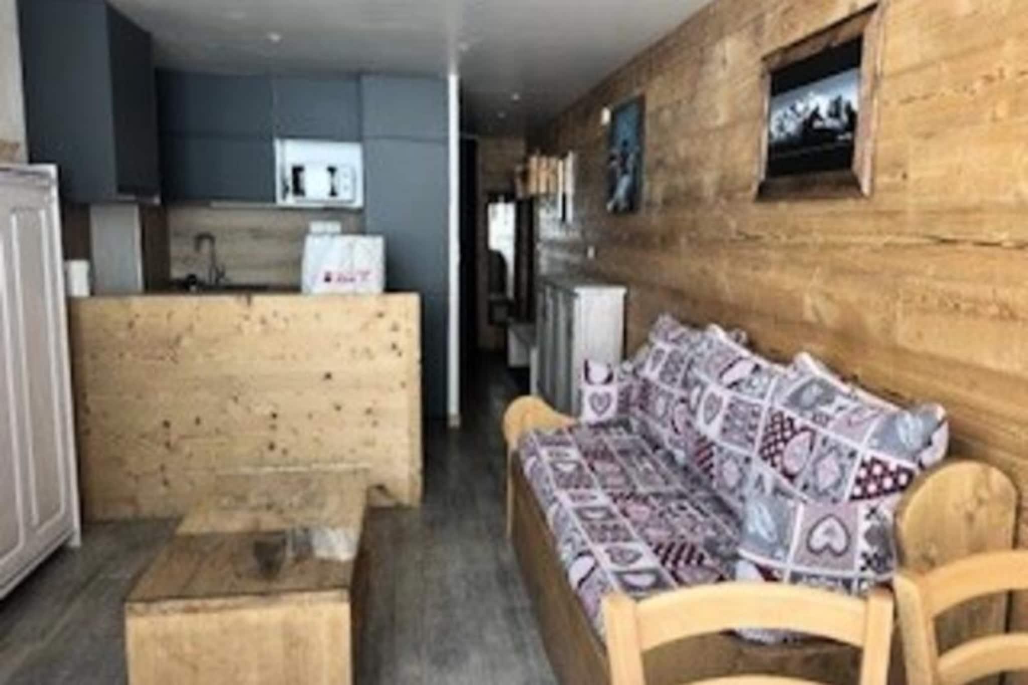 Højt over Val Thorens' travle gader tilbyder Les Trois Vallées-residensen et hyggeligt tilflugtssted i hjertet af det berømte Péclet-distrikt. Med en perfekt beliggenhed overfor Péclet-indkøbscentret har du alt, hvad du behøver, lige ved hånden – fra lokale butikker og et Sherpa-supermarked til charmerende bagerier, livlige barer og indbydende restauranter. Uanset om du er her for pisterne eller afterskiing, sikrer denne residens, at du altid er i centrum af begivenhederne. Med skiliftkontorer og adgang til pisten kun 50 meter væk begynder dine alpine eventyr i det øjeblik, du træder udenfor. \n\nDenne fuldt renoverede lejlighed på 35 m² er designet til komfort og bekvemmelighed og har plads til op til fire gæster. Opholdsstuen har en hyggelig sovesofa og tv, hvilket skaber et indbydende rum at slappe af efter en dag på bjerget. Et veludstyret tekøkken med ovn, mikrobølgeovn, elektrisk komfur, køleskab og opvaskemaskine gør det til en leg at tilberede måltider. Soveområdet har to enkeltsenge, hvilket sikrer en afslappende nat for alle. Det moderne badeværelse med bruser og håndvask samt et separat toilet bidrager til den praktiske anvendelighed i dette charmerende rum.\n\nVal Thorens handler ikke kun om skiløb – det er et pulserende centrum for aktivitet og afslapning. Udforsk de nærliggende butikker, forkæl dig selv med lokale specialiteter i bageriet, eller nyd den livlige atmosfære på barer og pubber. For dem, der søger eventyr, er pisterne kun få skridt væk og tilbyder muligheder for skiløb og snowboarding i verdensklasse.\n\nUanset om du er her for at grave dig gennem frisk puddersne eller blot nyde den alpine charme, er Les Trois Vallées-residensen din indgang til en uforglemmelig bjergflugt. Oplev magien i Val Thorens fra et hjem, der kombinerer komfort, bekvemmelighed og uovertruffen adgang til det bedste, feriestedet har at byde på.
