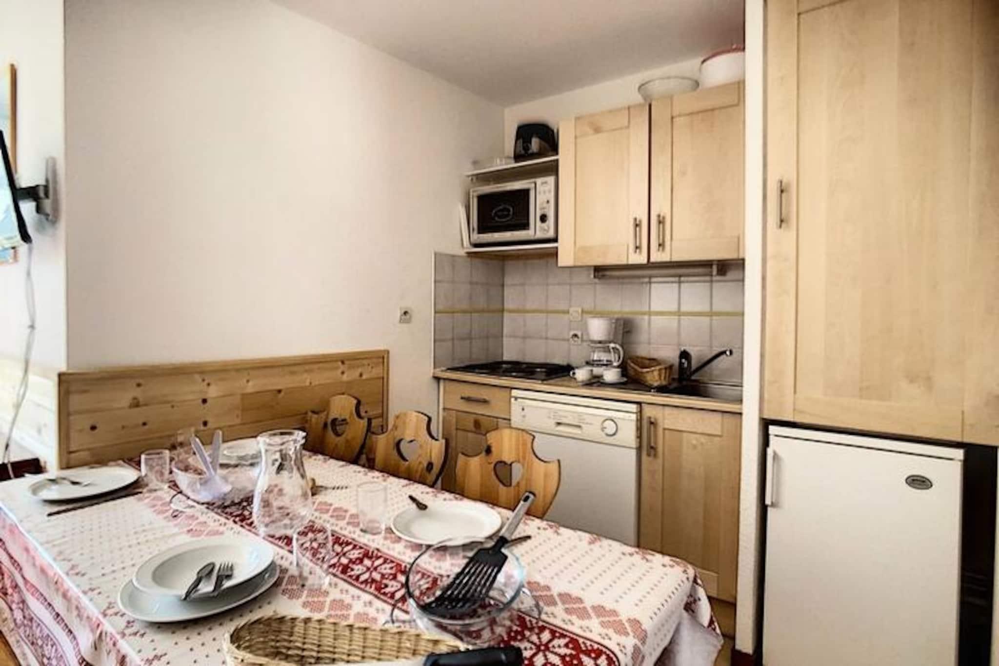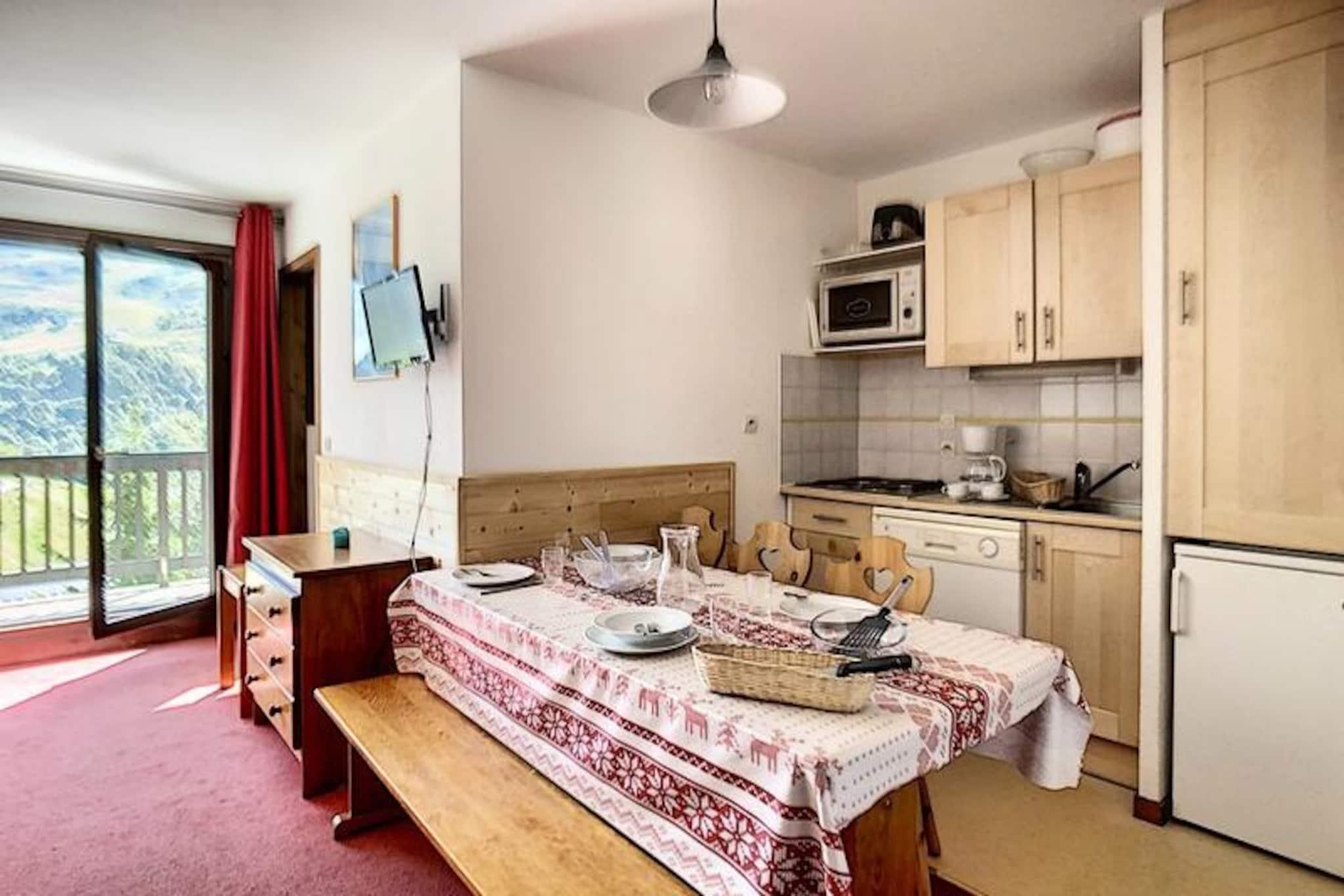 Højt over de fredfyldte skråninger i Les Menuires tilbyder denne charmerende lejlighed i Balcons d'Olympie-residensen et hyggeligt tilflugtssted for både skientusiaster og bjergelskere. Med direkte ski-in/ski-out-adgang begynder dine alpine eventyr lige uden for døren, mens den gratis TéléPreyerand-gondollift forbinder dig ubesværet med det travle La Croisette-område, der er åbent dagligt fra morgen til sen aften. Forestil dig at vågne op til solens gyldne glød på snedækkede tinder, træde ud på din sydvendte balkon og indånde den friske bjergluft, inden du tager ud på en dag med opdagelse. \n\nDenne gennemtænkt designede toværelseslejlighed er på 30 m² og har komfortabel plads til op til seks gæster. Den ligger på tredje sal og har en indbydende stue med en enkeltseng og en udtræksseng, et hyggeligt soveværelse med to enkeltsenge og en sovealkove med køjesenge, ideel til familier eller små grupper. Det fuldt udstyrede køkken inkluderer moderne apparater såsom køleskab, ovn, opvaskemaskine og kaffemaskine, så du har alt, hvad du behøver for at tilberede solide måltider efter en dag på pisterne. Et separat badeværelse og toilet giver ekstra komfort, mens tæpper og betalt Wi-Fi giver ekstra komfort under dit ophold.\n\nResidensen er perfekt beliggende med nem adgang til faciliteter, med skiliftbilletkontorer og essentielle butikker mindre end 10 minutters gang væk. Uanset om du er her for at grave dig gennem uberørt puddersne eller nyde sommervandreture midt i betagende alpine landskaber, tilbyder Les Menuires spænding året rundt. Fra afterskiing-oplevelser til rolige aftener under stjernehimlen er denne lejlighed din port til uforglemmelige bjergminder.\n\nVælg Balcons d'Olympie for dens uovertrufne beliggenhed, varme atmosfære og problemfri forbindelse til hjertet af skisportsstedet Les Trois Vallées. Lad magien i de franske alper inspirere dit næste eventyr.