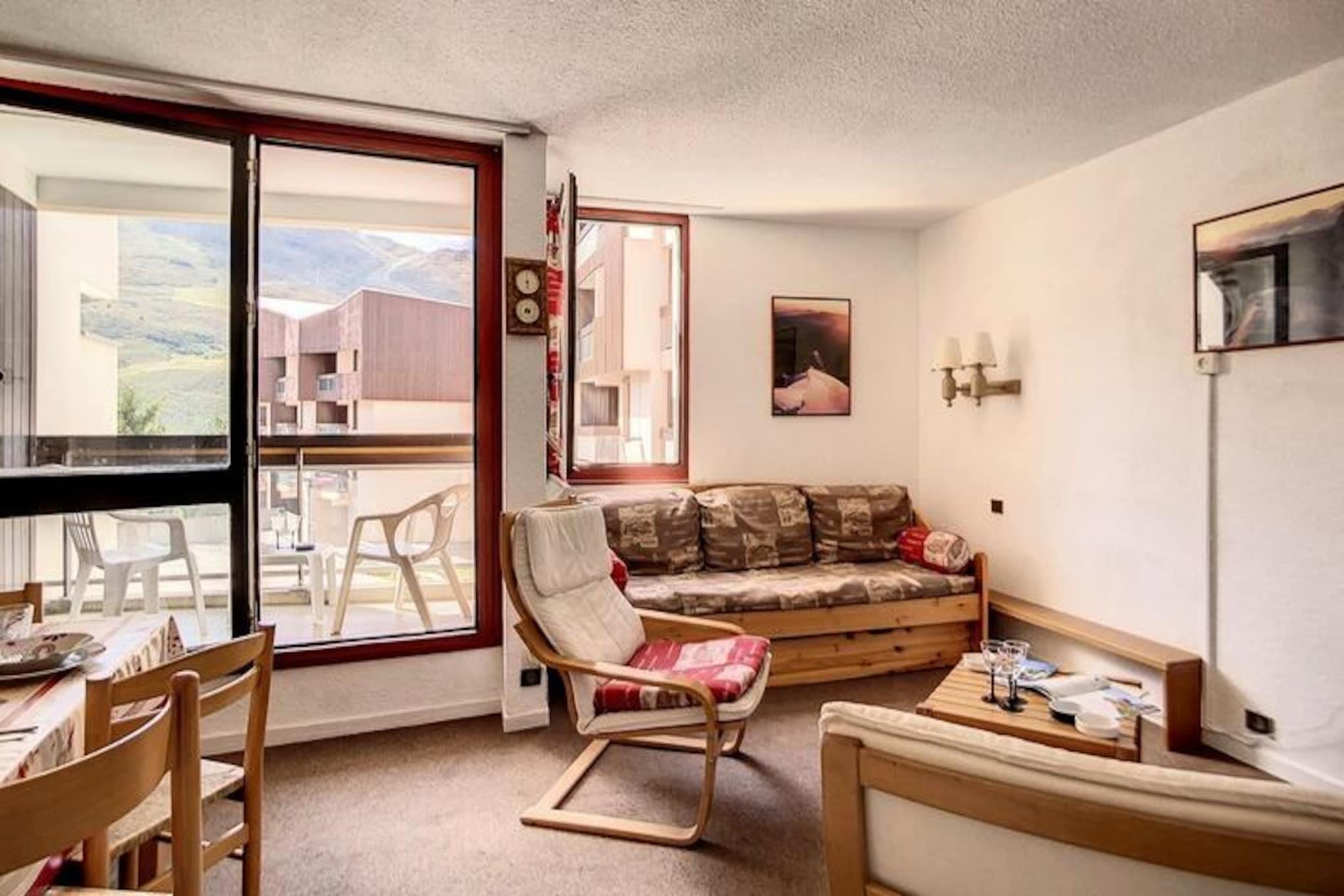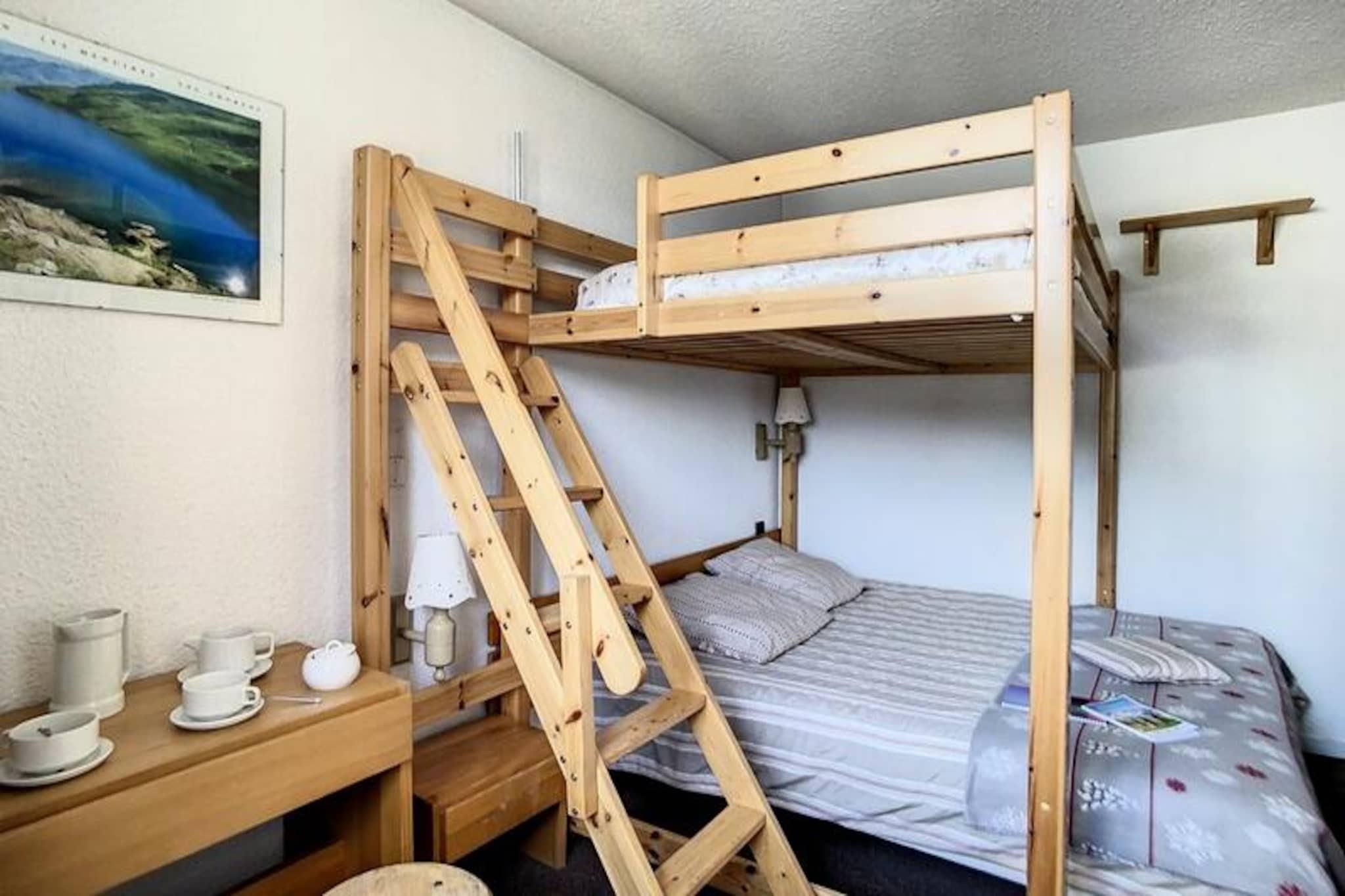 Højt over de travle dale i de franske alper tilbyder denne charmerende lejlighed i Soldanelles A-residensen et hyggeligt tilflugtssted for både skientusiaster og naturelskere. Med pisterne kun 10 meter fra din dørtrin kan du uden forsinkelse træde ind i en verden af ??alpine eventyr. Den vestvendte balkon inviterer dig til at nyde eftermiddagssolen, mens du beundrer den majestætiske Masse-bjergkæde, der skaber de perfekte rammer for afslapning efter en dag i sneen. Uanset om du søger spændende nedkørsler eller rolige øjeblikke omgivet af betagende natur, leverer denne ejendom en uforglemmelig oplevelse. \n\nLejligheden er designet til op til seks gæster og har en varm og indbydende planløsning. Stuen har en sovesofa for enkeltseng og en udtræksseng, mens soveværelset tilbyder en dobbeltseng og en enkeltseng på mezzaninen for ekstra fleksibilitet. Det fuldt udstyrede køkken kan prale af moderne bekvemmeligheder som keramisk kogeplade, kombineret mikrobølgeovn/ovn, køleskab, opvaskemaskine og essentielle apparater såsom kaffemaskine og brødrister. Et badeværelse med badekar og separat toilet sikrer komfort for alle, mens skiboksen og den private parkeringsplads gør dit ophold praktisk. \n\nSelve boligen tilbyder gennemtænkte faciliteter, herunder en elevator og digital adgangskode for nem adgang. Der er gratis Wi-Fi i lobbyen i nabobygningen, og der er små butikker og restauranter i nærheden. For at udforske området længere væk forbinder gratis shuttlebusser dig til La Croisette, og Bruyères-distriktet ligger kun en kort gåtur væk via en gangbro og offentlig elevator. \n\nUanset om du er her for at slentre gennem uberørte skråninger eller blot slappe af i den rolige alpine atmosfære, kombinerer denne lejlighed komfort, bekvemmelighed og en fantastisk udsigt for at skabe en mindeværdig ferieoplevelse.