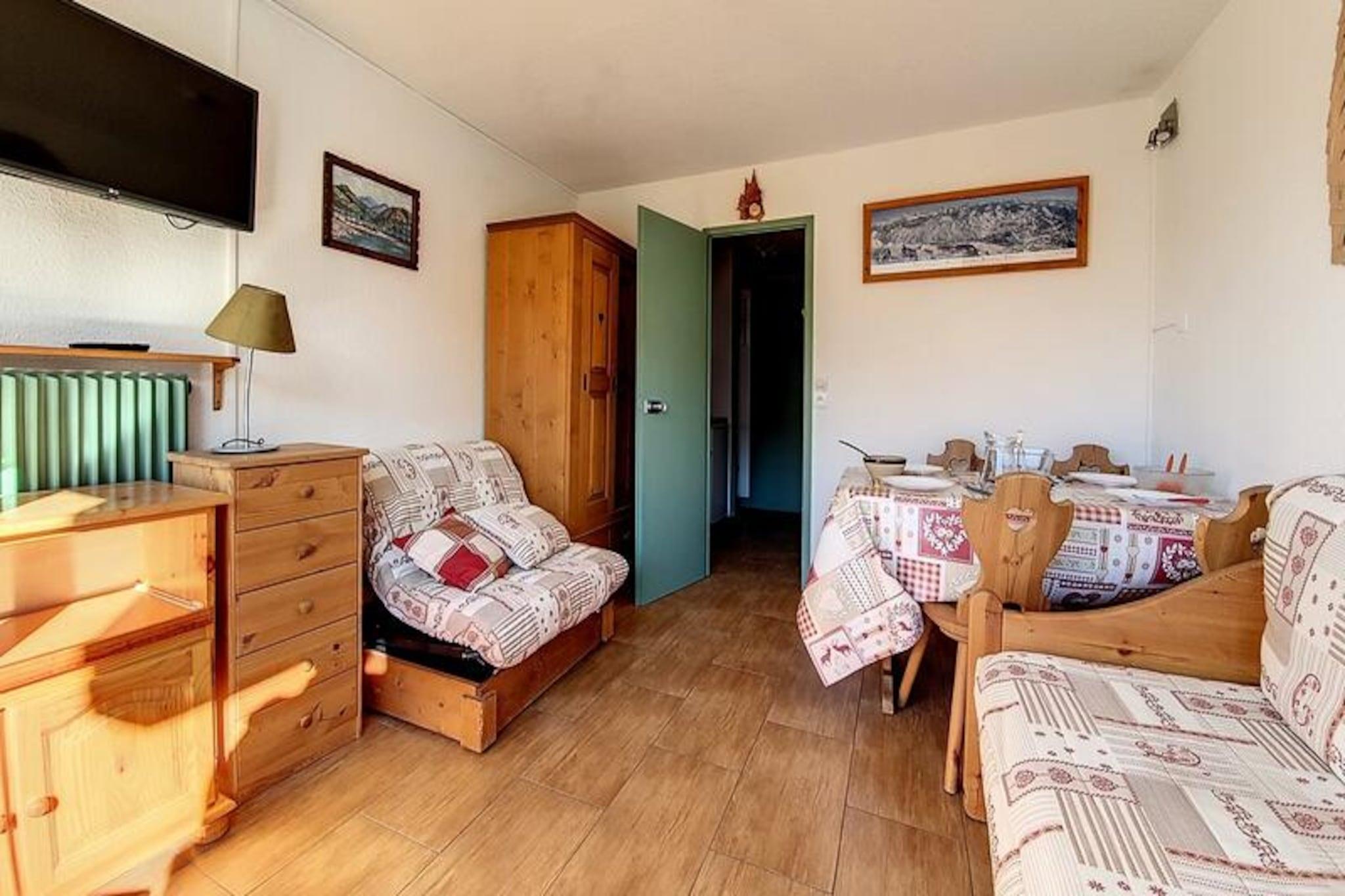 Højt over det travle La Croisette-distrikt tilbyder denne charmerende studiolejlighed et hyggeligt tilflugtssted med direkte adgang til pisterne og bekvemmeligheden ved en shoppingarkade lige nedenfor. Forestil dig at træde ud af din dør og ud i sneen, klar til at omfavne de alpine eventyr, der venter. Den vestvendte balkon tilbyder en fredfyldt udsigt over Masse, perfekt til at slappe af efter en dag på ski eller udforske de betagende omgivelser. Denne bolig, der ligger på 7. sal med elevatoradgang, kombinerer komfort og praktisk anvendelighed til en uforglemmelig bjergferie. \n\nDet 17 m² store studio er designet til op til tre gæster og har en gennemtænkt opholdsstue med en enkeltseng, en udtræksseng og en enkelt sovesofa. Det kompakte, men veludstyrede køkken inkluderer et kogeplade med to blus, kombineret ovn/mikrobølgeovn, grill, køleskab, opvaskemaskine, brødrister, elkedel og kaffemaskine, hvilket gør det nemt at tilberede måltider efter en dag på pisterne. Badeværelset er udstyret med badekar og toilet, hvilket sikrer en afslappende afslutning på din dag. Yderligere faciliteter inkluderer et tv, tæpper og betalt Wi-Fi-adgang (afhængigt af netværksdækning). \n\nResidensens førsteklasses beliggenhed placerer dig kun 300 meter fra en børnehave og tilbyder gratis udendørs parkering ved bygningens base (afhængigt af tilgængelighed). Uanset om du er her for vintersport eller sommervandreture, sikrer La Croisettes bekvemmelighed, at alt hvad du behøver er inden for rækkevidde. Fra skiudlejning til afterskiing imødekommer det pulserende distrikt enhver rejsendes behov. \n\nVælg dette hyggelige studie på grund af dets uovertrufne beliggenhed, praktiske faciliteter og muligheden for at vågne op hver morgen med pisterne lige uden for døren. Uanset om du søger eventyr eller ro, lover dette alpine tilflugtssted et mindeværdigt ophold i hjertet af de franske alper.