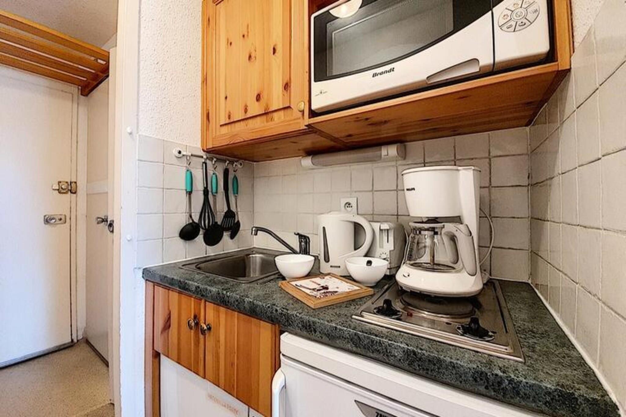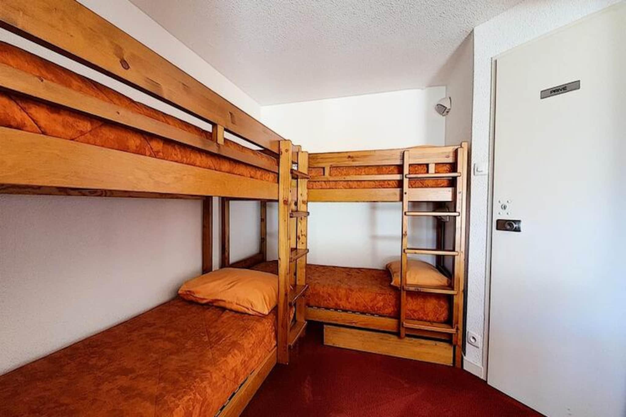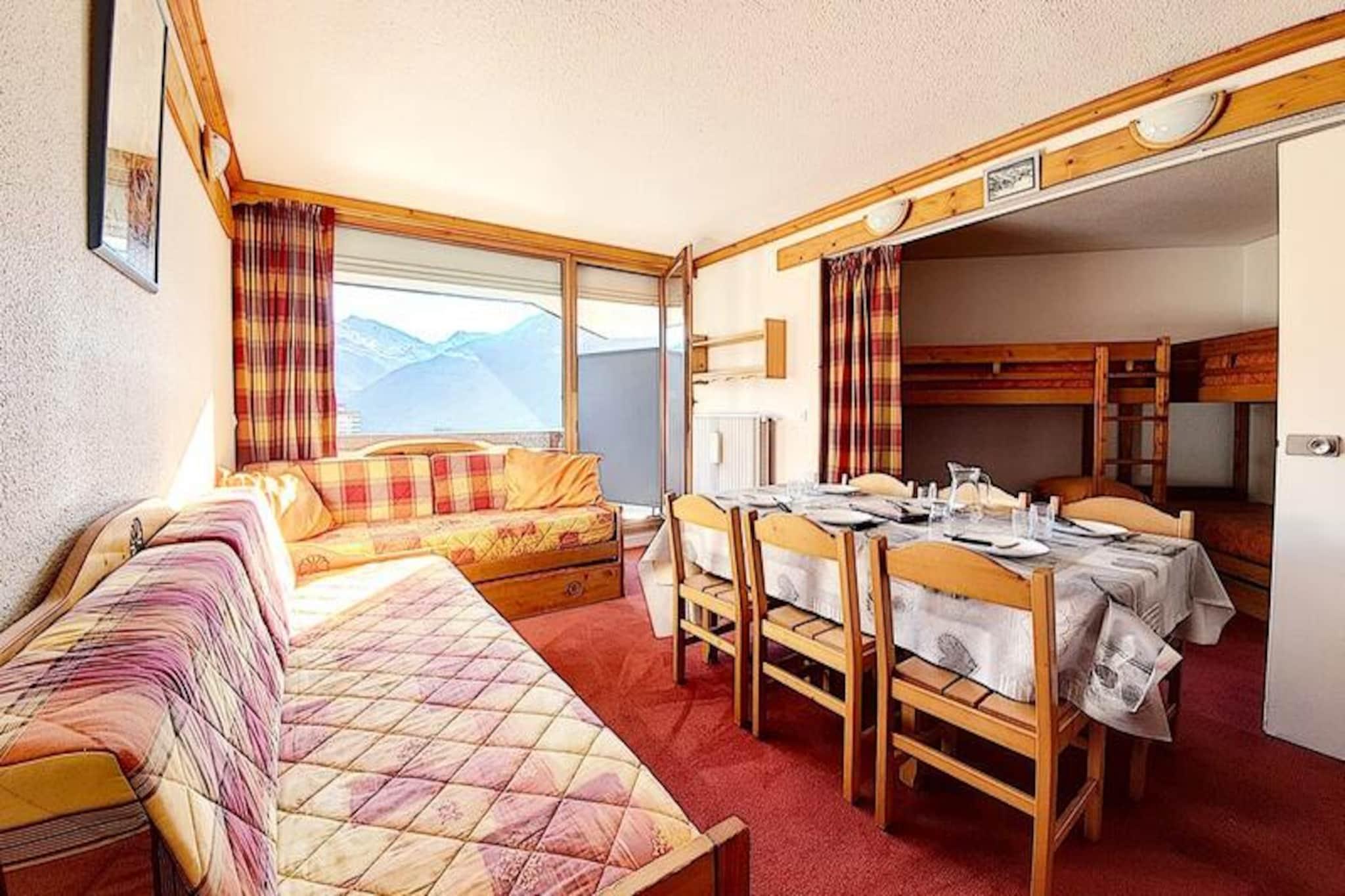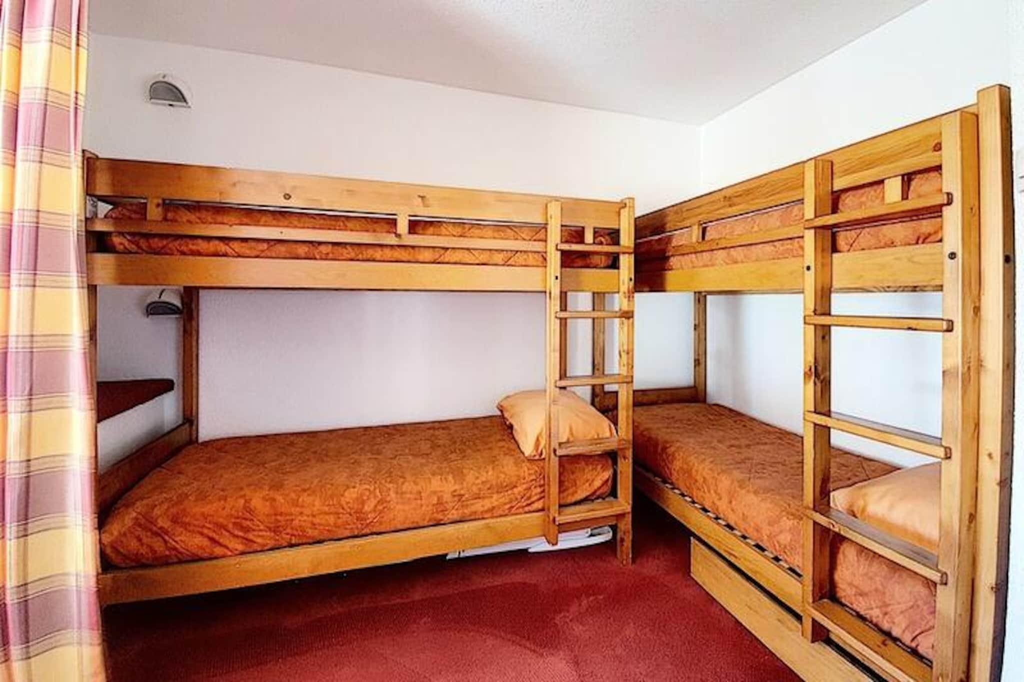 Højt over det travle La Croisette-distrikt inviterer denne charmerende lejlighed dig til at opleve den ægte alpine ferie. Med sin sydvendte balkon, der tilbyder en fantastisk udsigt over de sneklædte tinder, føles hvert øjeblik her som et postkort, der kommer til live. Uanset om du nipper til din kaffe, mens solen står op, eller slapper af efter en dag på pisterne, vil den rolige atmosfære i dette ottende sal helt sikkert betage dig. Chavière-residensen kombinerer bekvemmelighed og komfort, hvilket gør den til et ideelt valg for familier eller små grupper, der søger en hyggelig bjergferie. \n\nIndenfor har den 32 m² store lejlighed plads til op til fem gæster med gennemtænkte sovepladser, herunder en stue med to enkeltsenge og en privat alkove med en enkeltseng og to køjesenge. Det veludstyrede køkken kan prale af moderne bekvemmeligheder såsom en kombineret mikrobølgeovn/ovn, køleskab, opvaskemaskine og kaffemaskine, hvilket sikrer, at du har alt, hvad du behøver for at tilberede solide måltider efter en dag med eventyr. Badeværelset med bruser og separat toilet bidrager til det praktiske, mens de varme tæppebelagte gulve skaber en indbydende atmosfære. \n\nTræd udenfor, og du finder direkte adgang til pisterne, så du nemt kan stå på ski ind og ud. Bygningen er også forbundet med en shoppingarkade, perfekt til at købe de nødvendige ting eller udforske lokale butikker. Familier vil sætte pris på børnehaven kun 300 meter væk, mens gratis udendørs parkering for foden af ??boligen øger bekvemmeligheden. For dem, der søger internetforbindelse, er der betalt Wi-Fi tilgængelig, afhængigt af dækning. \n\nUanset om du er her for at cykle i frisk puddersne eller udforske det pulserende La Croisette-område, tilbyder denne lejlighed en perfekt blanding af beliggenhed, komfort og alpin charme. Skab uforglemmelige minder i hjertet af de franske alper, hvor hver eneste detalje er designet til at forbedre dit ophold.