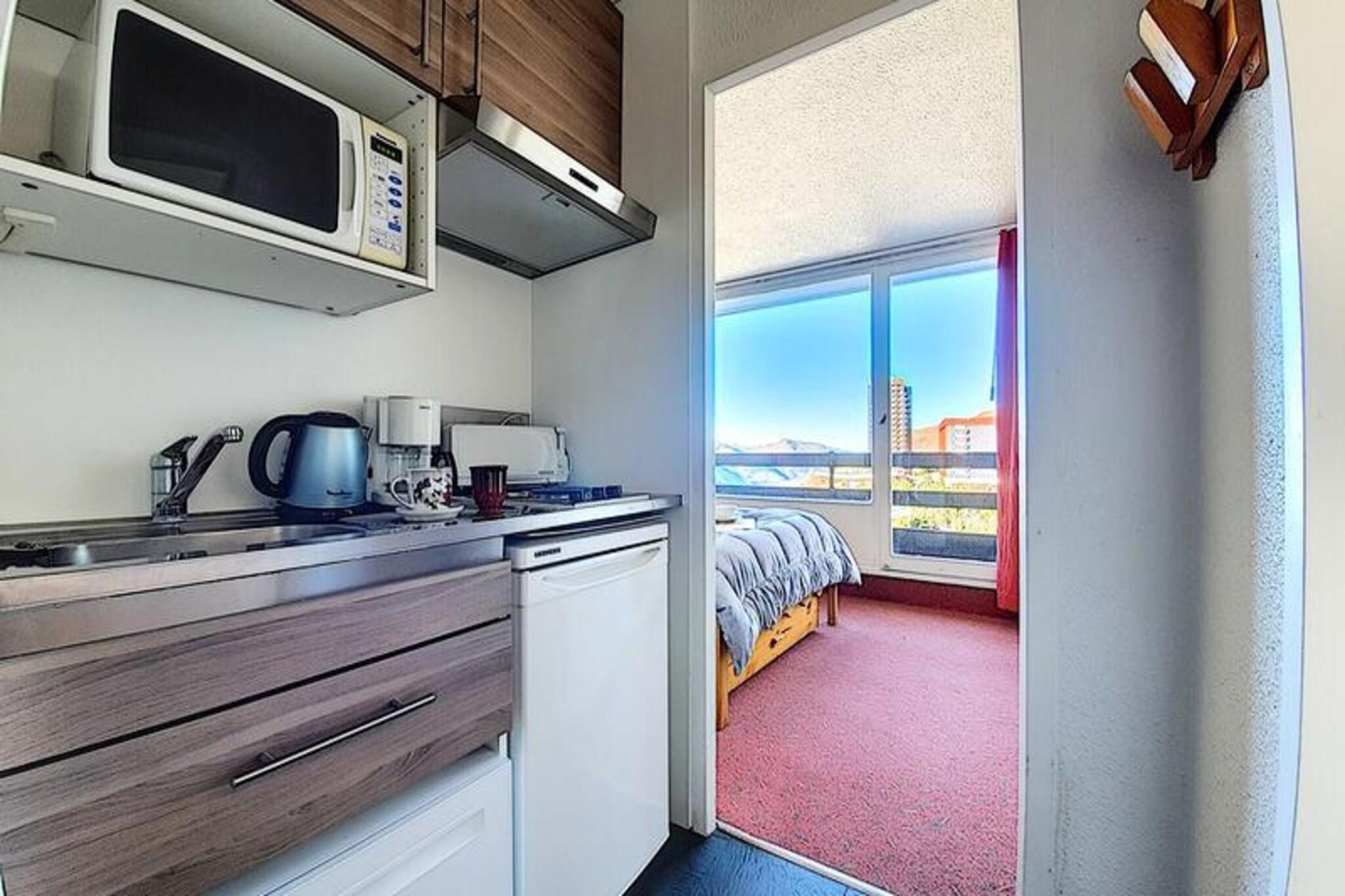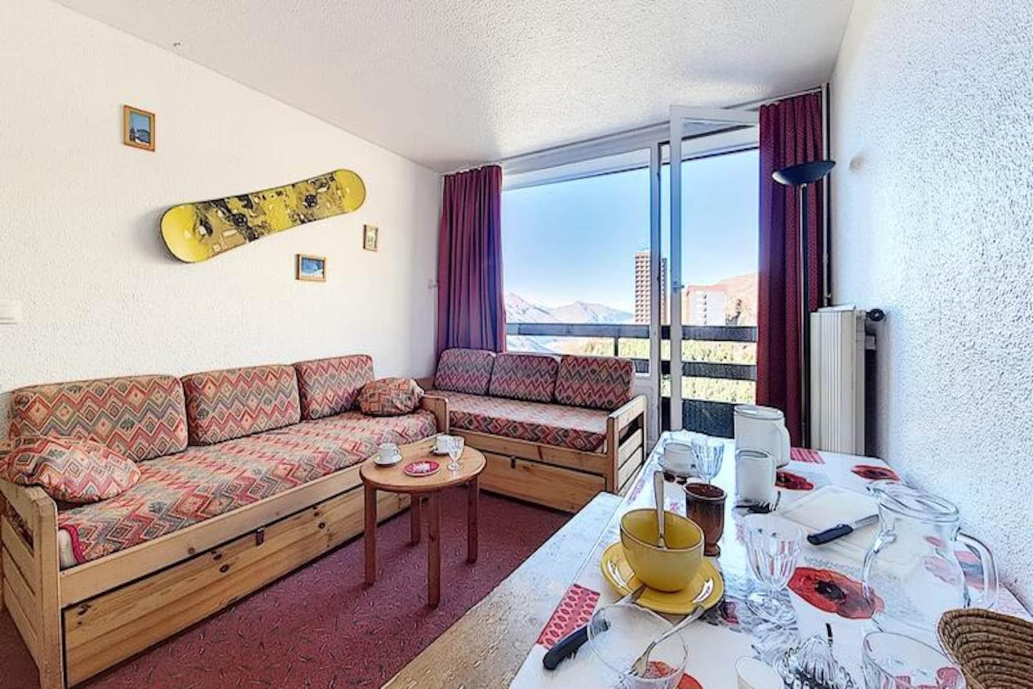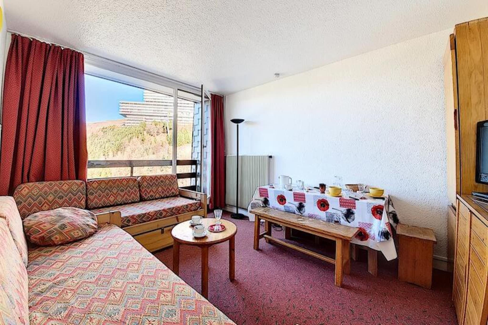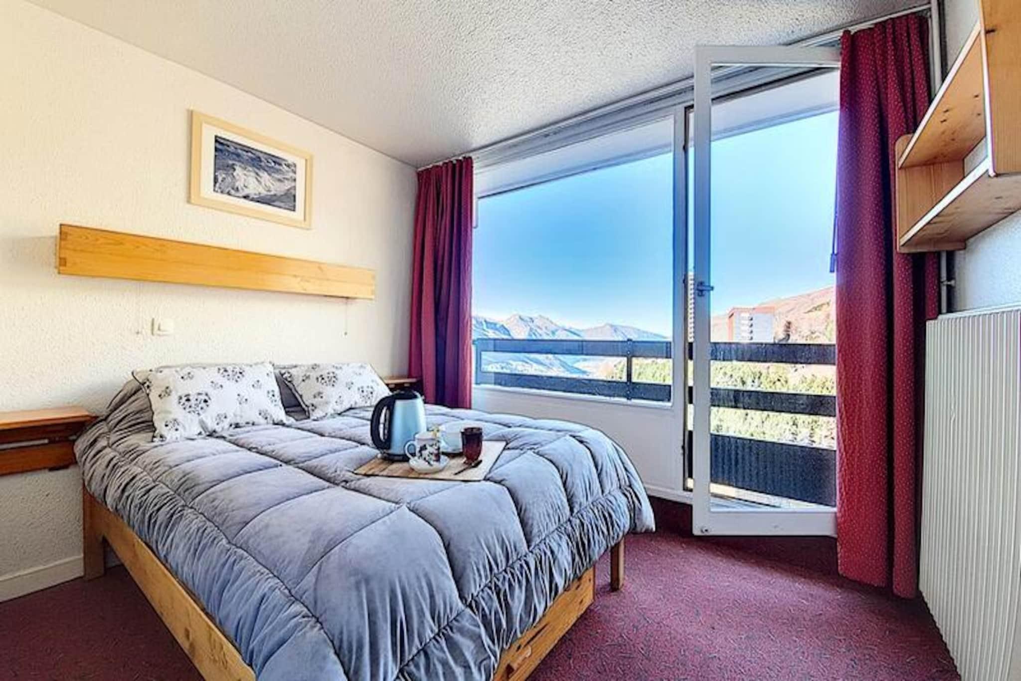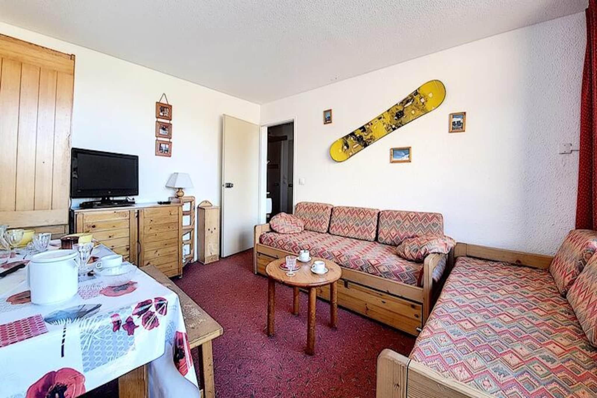 Højt over det travle La Croisette-distrikt inviterer denne charmerende 2-værelses lejlighed dig til at opleve magien i de franske alper. Beliggende på 7. sal i Chavière-residensen tilbyder den panoramaudsigt og direkte adgang til pisterne, hvilket gør den til en drømmedestination for skientusiaster. Uanset om du er her for at grave dig gennem frisk puddersne eller blot nyde den alpine atmosfære, er dette hyggelige tilflugtssted din port til uforglemmelige bjergeventyr. Med indkøbsarkaden bekvemt placeret i bygningens kælder er alt hvad du behøver kun få skridt væk. \n\nLejligheden er designet til op til fire gæster og har en komfortabel stue med to enkeltsenge og et separat soveværelse med en dobbeltseng. Den nordvendte planløsning inkluderer to små altaner, perfekt til at nyde den friske bjergluft og den fredfyldte udsigt. Køkkenet er udstyret med moderne bekvemmeligheder, herunder induktionskogeplader, mikrobølgeovn, køleskab, opvaskemaskine, kaffemaskine og elkedel, hvilket sikrer, at du har alt hvad du behøver for at tilberede solide måltider efter en dag på pisterne. Et badeværelse med bruser og et separat toilet bidrager til bekvemmeligheden, mens tæpper og varme sikrer et varmt og hyggeligt ophold. Familier vil sætte pris på den nærliggende børnehave, kun 300 meter væk, mens gratis udendørs parkering for foden af ??bygningen gør ankomsten nemmere (afhængigt af tilgængelighed). For dem, der søger internetforbindelse, er der betalt Wi-Fi-adgang tilgængelig, dog afhængigt af netværksdækning. Boligens førsteklasses beliggenhed placerer dig i nærheden af ??lokale faciliteter og den pulserende atmosfære på La Croisette, hvor afterskiing-muligheder og alpin charme findes i overflod. Uanset om du besøger lejligheden for spændingen ved skiløb eller roen i bjergene, tilbyder denne lejlighed en indbydende base for at skabe varige minder. Med sin bekvemme beliggenhed, gennemtænkte faciliteter og fantastiske omgivelser er det det perfekte valg til din næste alpine ferie.