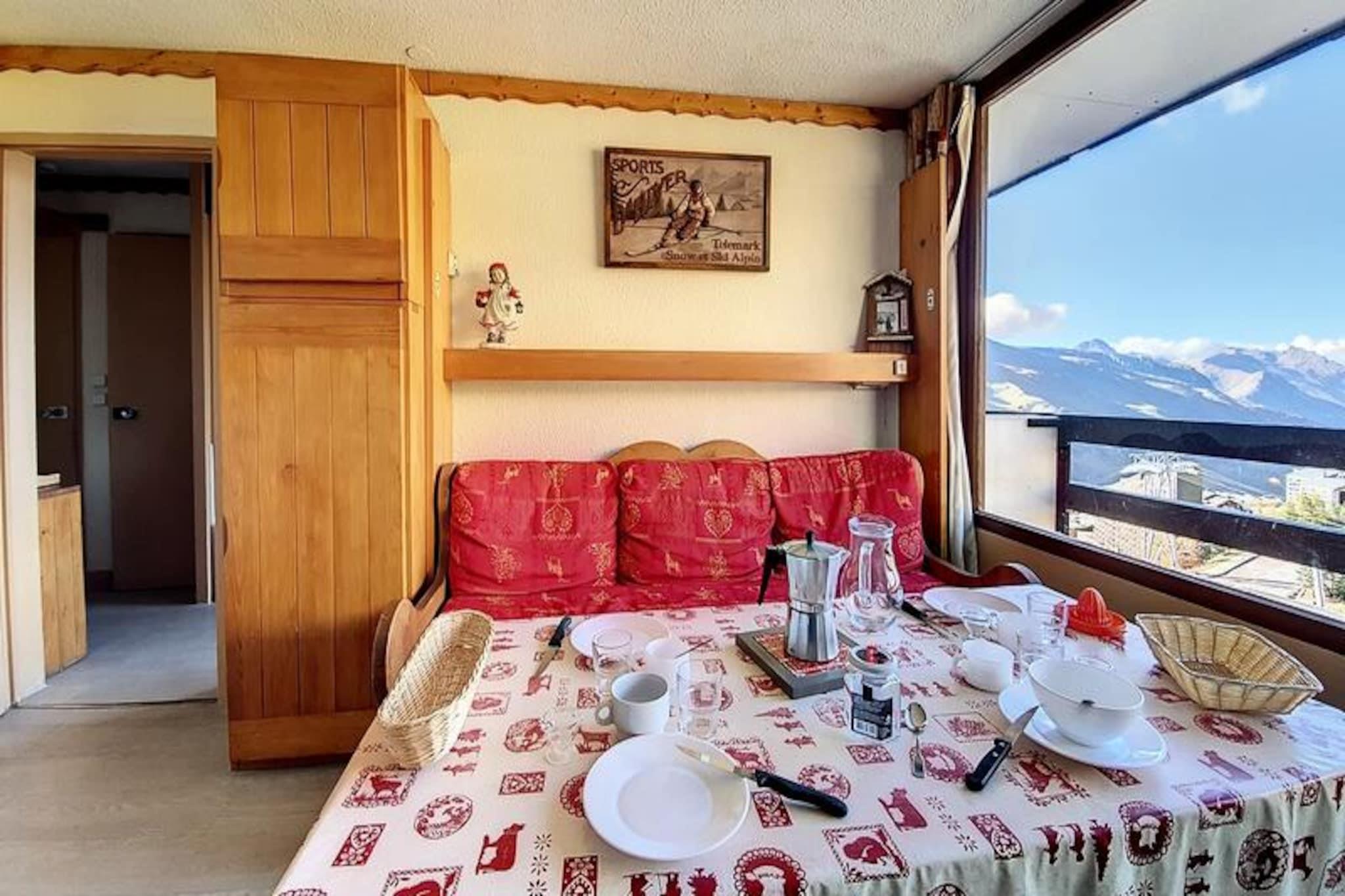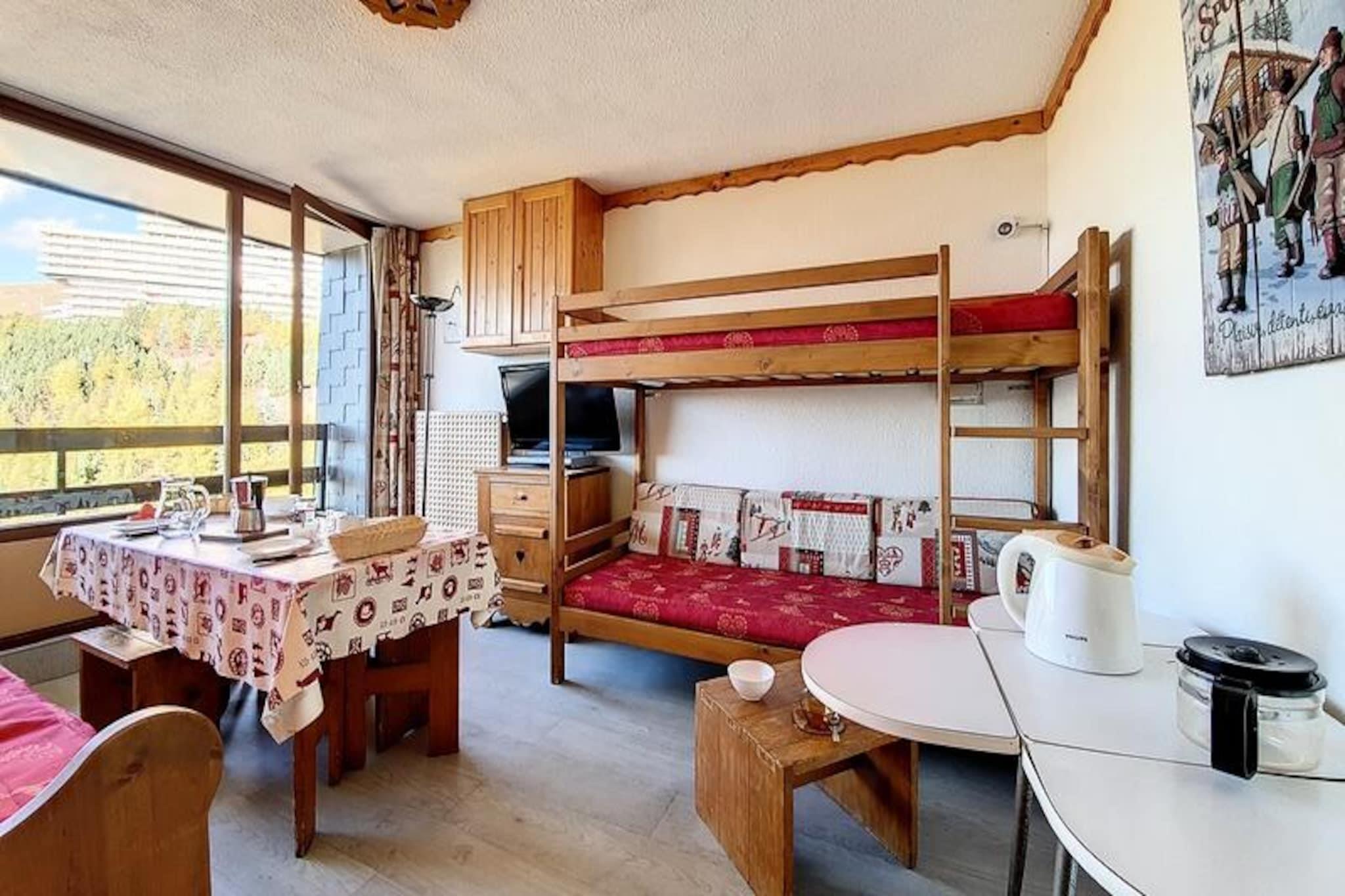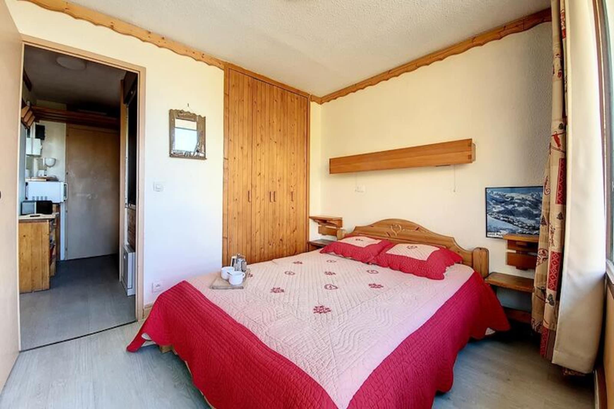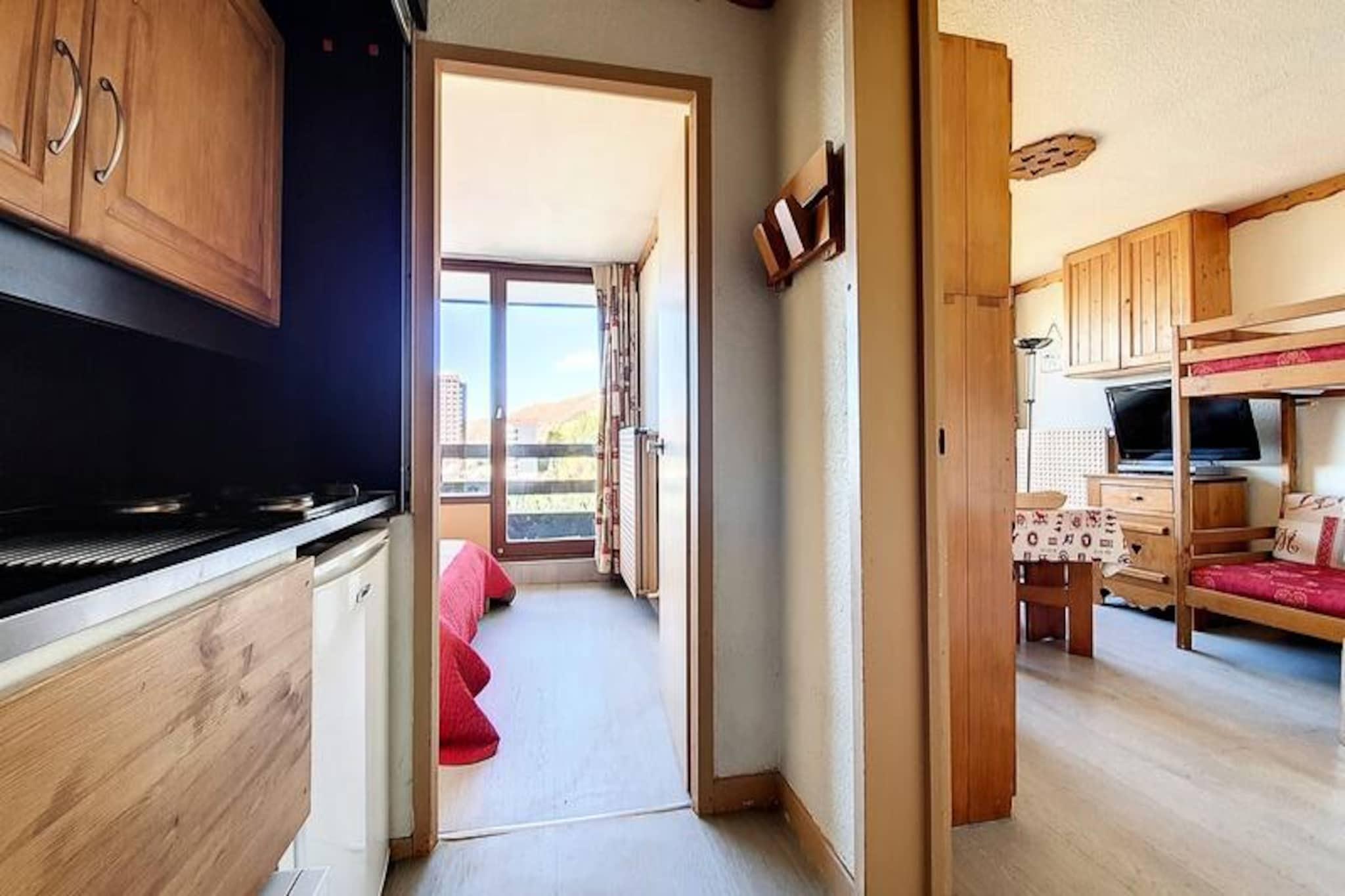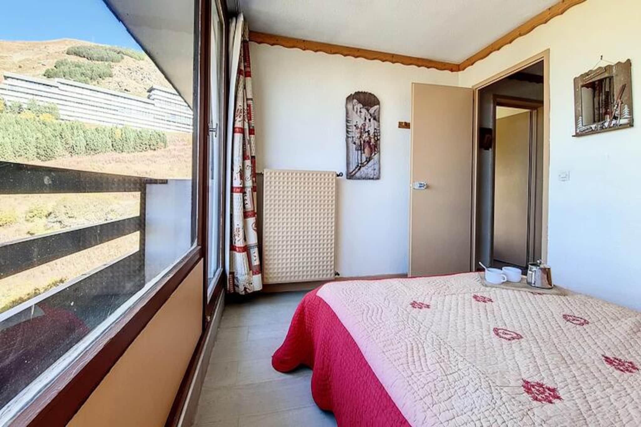 Højt over det travle La Croisette-distrikt inviterer denne charmerende 2-værelses lejlighed dig til at opleve magien i de franske alper med direkte adgang til pisterne og bekvemmeligheden ved en shoppingarkade lige i bygningens kælder. Forestil dig at vågne op til frisk bjergluft og eventyrlysten, med børnehaven kun 300 meter væk og gratis udendørs parkering ved foden af ??boligen, hvilket sikrer en stressfri start på din dag i det snedækkede paradis Les Menuires. Uanset om du er her for at stå på ski eller blot for at nyde den alpine atmosfære, tilbyder dette hyggelige tilflugtssted en varm velkomst. \n\nLejligheden ligger på 8. sal med elevatoradgang og har komfortabel plads til op til fire gæster. Stuen har en sovesofa til enkeltseng, en udtrækssovesofa og to køjesenge samt et tv og en dvd-afspiller til afslappende aftener. Det separate soveværelse har en dobbeltseng og en barneseng, hvilket gør det ideelt for familier. Badeværelset har et badekar, mens det separate toilet øger bekvemmeligheden. Det veludstyrede køkken er udstyret med et kogeplade med 2 blus, miniovn, køleskab, opvaskemaskine, brødrister, elkedel og kaffemaskine, hvilket sikrer, at du har alt, hvad du behøver for at tilberede solide måltider efter en dag på pisterne.\n\nTo nordvendte altaner tilbyder en fantastisk udsigt over de omkringliggende tinder, perfekt til at slappe af med en kop kaffe eller et glas vin. Lejligheden er røgfri og kæledyrsfri, med tæpper for ekstra komfort. Der er betalt Wi-Fi-adgang, afhængigt af netværksdækning, og køjesengene er ikke egnede til børn under seks år.\n\nMed sin uovertrufne beliggenhed og gennemtænkte faciliteter er denne lejlighed din port til uforglemmelige alpine eventyr. Uanset om du udforsker pisterne eller nyder det pulserende lokale landskab, tilbyder Chavière-residensen den perfekte blanding af komfort og bekvemmelighed til din bjergferie.