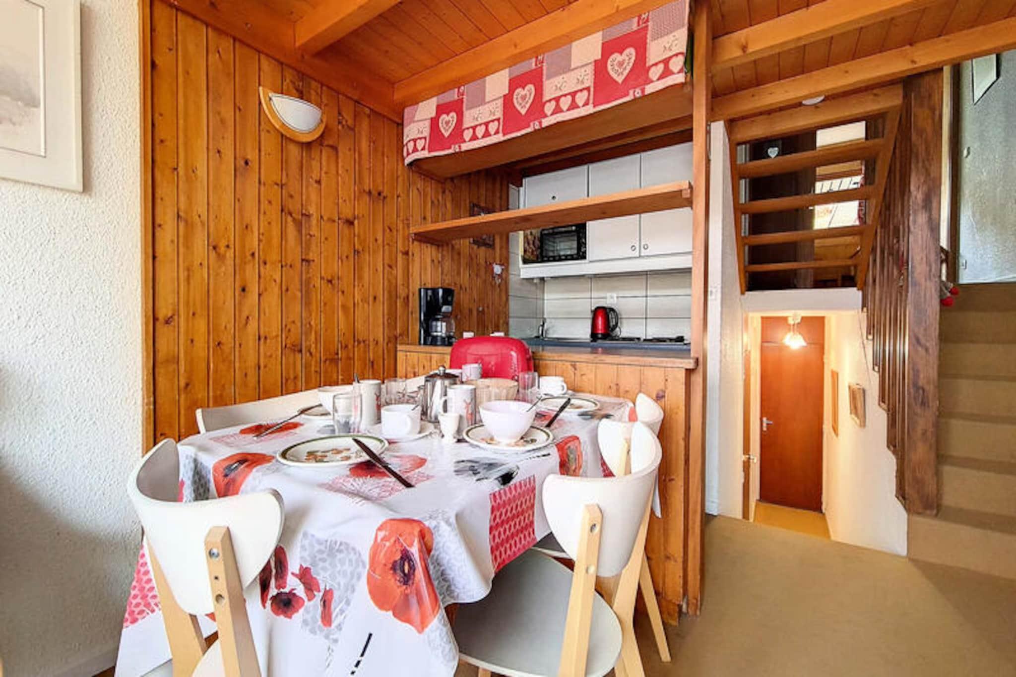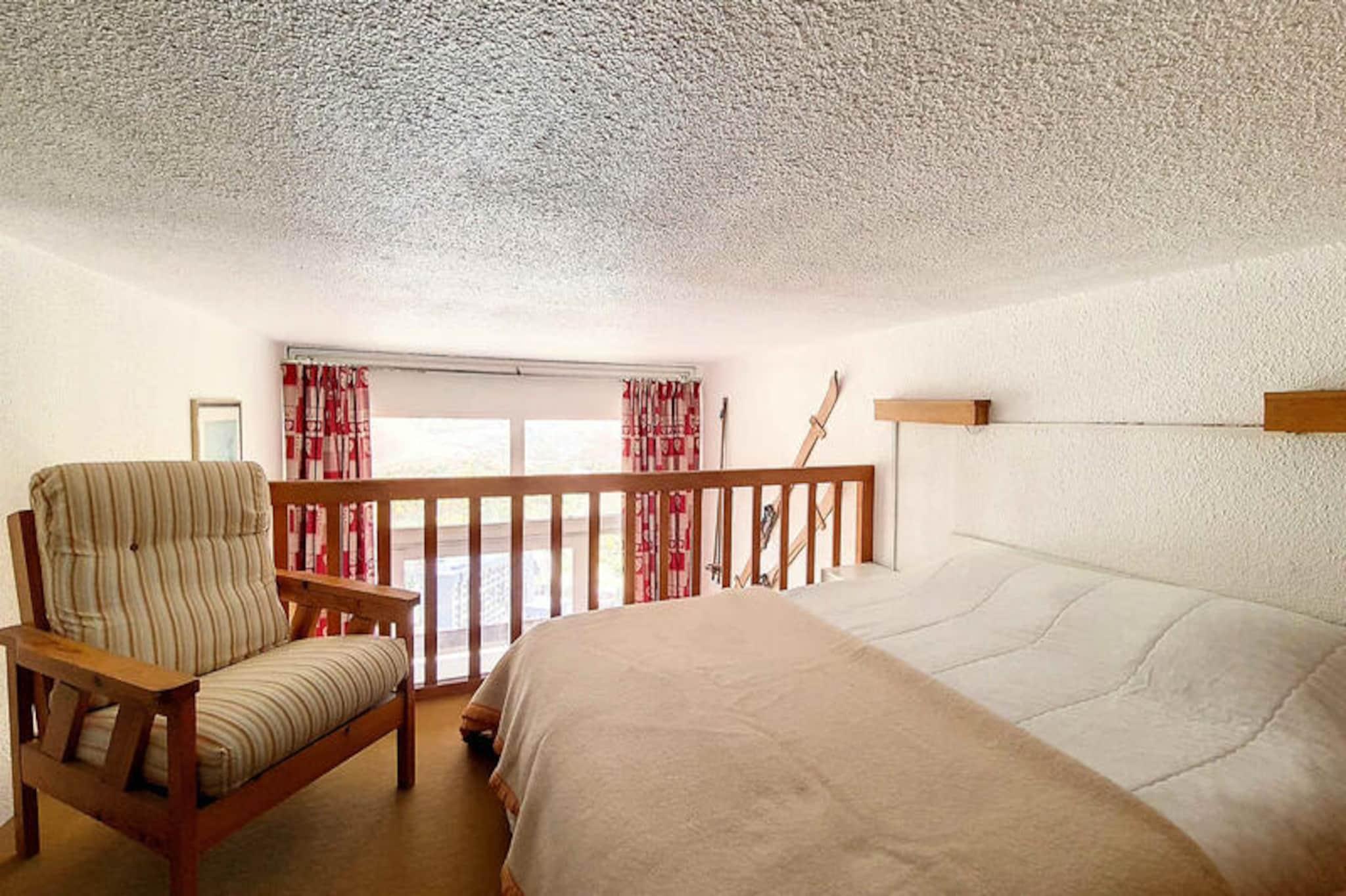 Højt over det pulserende Les Menuires-resort tilbyder Brelin-bygningen et unikt alpint tilflugtssted med betagende udsigt og direkte adgang til pisterne. Beliggende over La Croisette-distriktet kombinerer denne beliggenhed bekvemmelighed og ro med offentlige elevatorer, der kører døgnet rundt, og som forbinder dig til hjertet af resortet. Uanset om du er her for vinterskiløb eller sommerens bjergeventyr, tilbyder den sydvestvendte balkon enestående solskin og panoramaudsigter, der vil inspirere dig. \n\nDenne charmerende duplexlejlighed på 37 m² er omhyggeligt designet til at rumme op til fem gæster. Stuen har en hyggelig sofa og fladskærms-tv, mens den åbne mezzanin tilføjer et strejf af karakter med sin dobbeltseng og tæppebelagte gulv. Soveværelset har en enkeltseng, en udtræksseng og to enkeltkøjesenge, hvilket gør den ideel til familier eller små grupper. Et fuldt udstyret køkken med moderne apparater sikrer, at du kan tilberede lækre måltider efter en dag på pisterne. Lejligheden har også et badeværelse med badekar og et separat toilet for ekstra bekvemmelighed. \n\nBeliggende i Brelin-bygningen finder du skiliftbilletkontorer, butikker og skibokse lige uden for døren. Gratis parkering ved Evons-liften gør dit ophold endnu nemmere. For dem, der søger eventyr, tilbyder det omkringliggende område uendelige muligheder for skiløb, vandreture og udforskning af de fantastiske franske alper. \n\nMed sin uovertrufne beliggenhed, hyggelige atmosfære og praktiske faciliteter er denne lejlighed perfekt til at skabe uforglemmelige minder i bjergene. Uanset om du nyder solskinnet på balkonen eller nyder feriestedets faciliteter, lover dette alpine tilflugtssted en helt unik oplevelse.