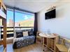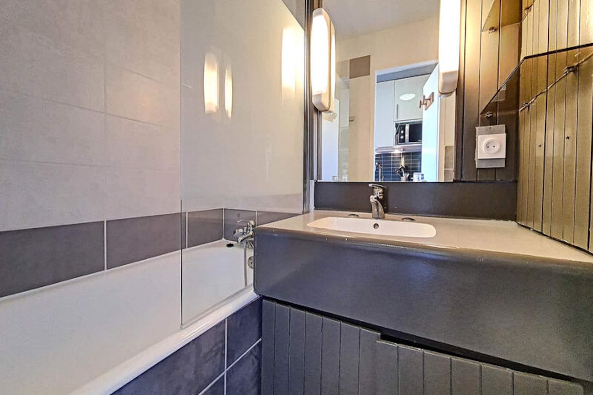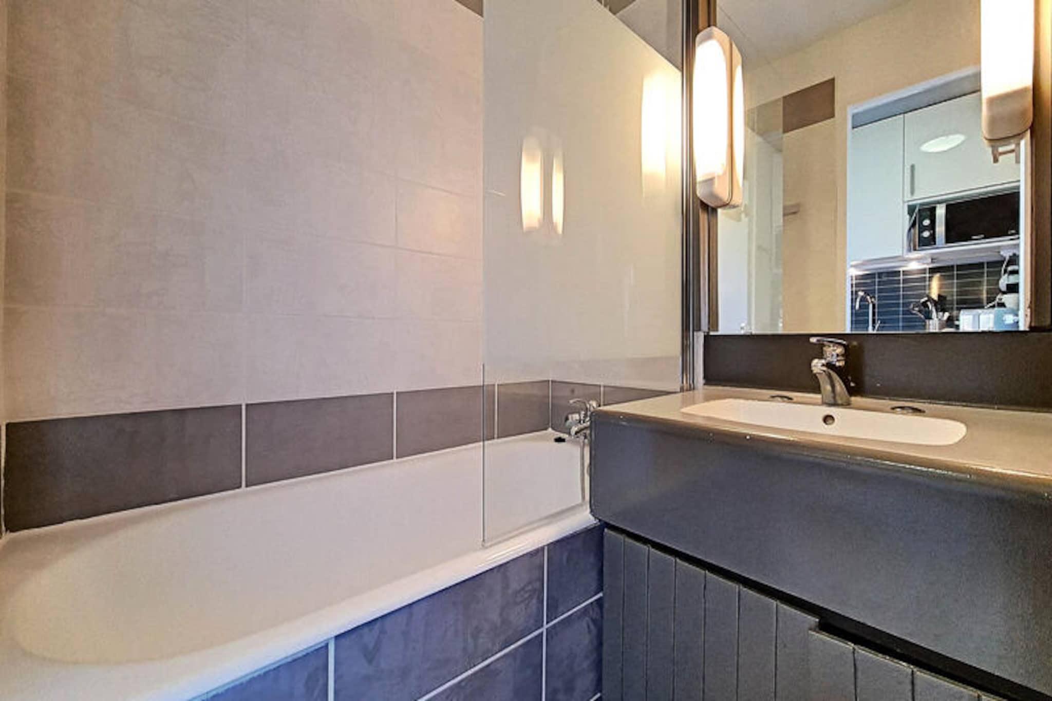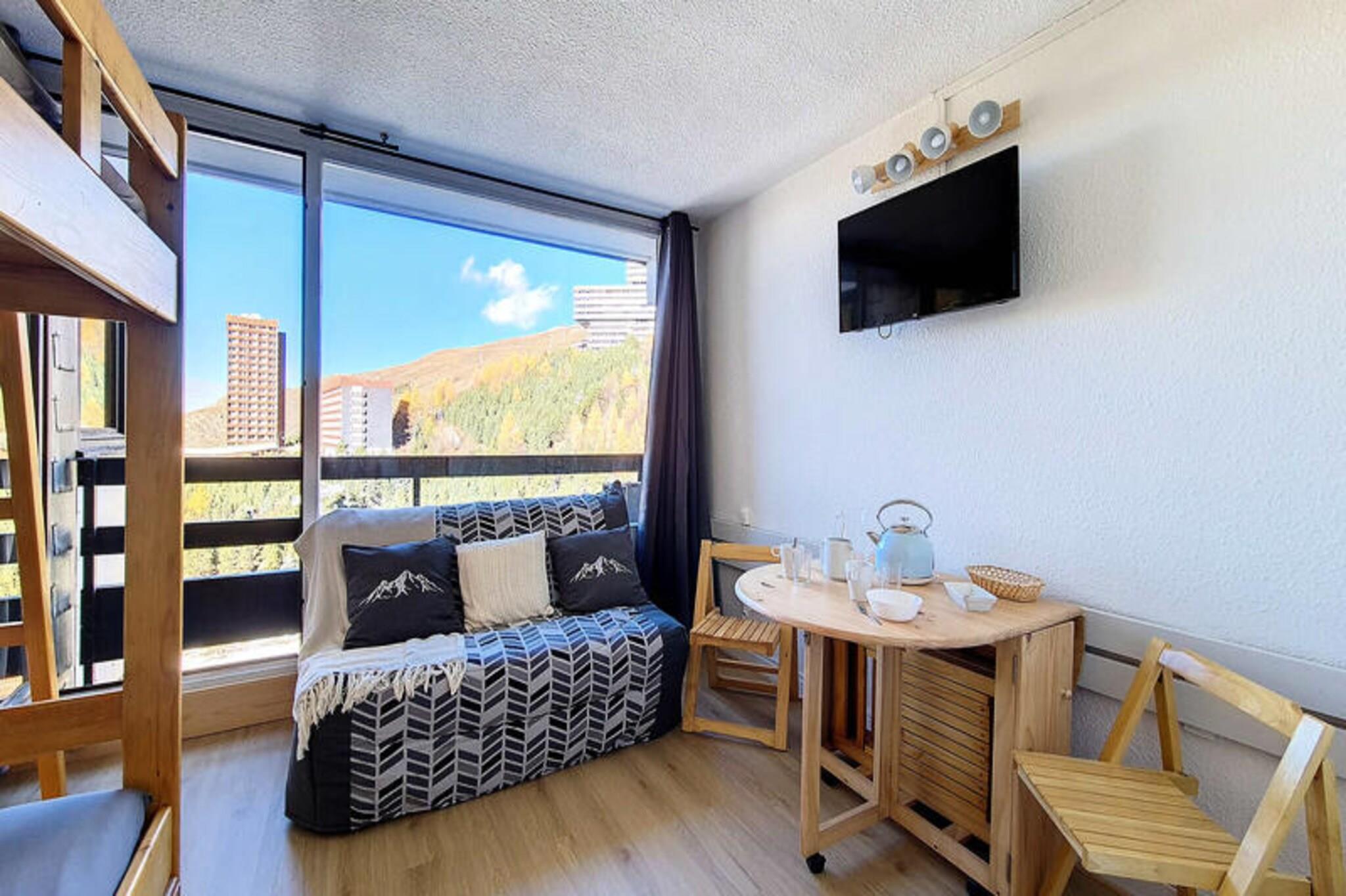 Højt over det maleriske La Croisette-distrikt tilbyder denne charmerende studiolejlighed et hyggeligt tilflugtssted for dem, der søger en problemfri alpin ferie. Beliggende på 6. sal i Chavière-residensen tilbyder ejendommen en betagende udsigt over de omkringliggende tinder og direkte adgang til pisterne, hvilket gør den til et paradis for skientusiaster. Med bekvemmeligheden af ??en elevator og en shoppingarkade lige nedenunder lover dit ophold både komfort og praktisk anvendelighed. \n\nDette smukt renoverede 17 m² store studio er omhyggeligt designet til at rumme op til tre gæster. Opholdsstuen har en komfortabel dobbeltsovesofa og en enkeltseng, perfekt til par eller små familier. Et kompakt, men fuldt udstyret køkken inkluderer et kogeplade med 2 blus, mikrobølgeovn/grill, mini-opvaskemaskine, elkedel og kaffemaskine, så du nemt kan tilberede måltider. Badeværelset er udstyret med badekar og toilet, mens den lille nordvendte balkon inviterer dig til at slappe af med en kop kaffe og nyde den friske bjergluft. Moderne bekvemmeligheder som tv og betalt Wi-Fi (afhængigt af dækning) forbedrer dit ophold, mens linoleumsgulvet og de hyggelige tæpper tilføjer et strejf af varme.\n\nTræd udenfor, og du vil finde dig selv i hjertet af La Croisettes pulserende atmosfære. Pisterne ligger kun få skridt væk, og gratis udendørs parkering ved foden af ??bygningen (afhængigt af tilgængelighed) sikrer problemfri ankomst. Familier vil sætte pris på børnehaven, der ligger kun 300 meter væk, mens den nærliggende shoppingarkade tilbyder en række spisesteder og butikker at udforske efter en dag på bjerget.\n\nUanset om du er her for spændingen ved skiløb eller et fredeligt tilflugtssted i Alperne, kombinerer dette studie i Chavière-residensen bekvemmelighed, komfort og charme for at skabe en uforglemmelig ferieoplevelse.