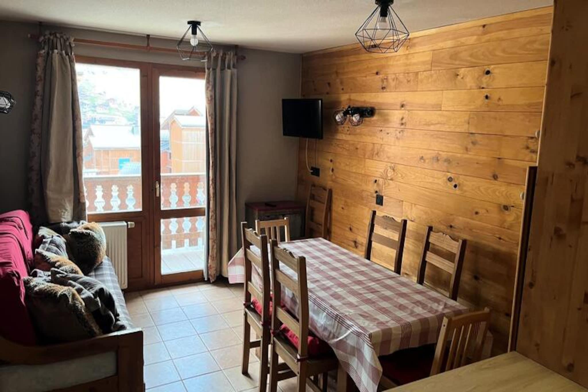 Højt over det pulserende feriested Val Thorens tilbyder Chalet nr. 6 ved Les Balcons et roligt alpint tilflugtssted med betagende udsigt over de omkringliggende tinder. Badet i sollys fra sin sydvestvendte beliggenhed inviterer denne charmerende lejlighed dig til at opleve bjergenes magi i enhver sæson. Uanset om du kigger ud fra balkonen eller udforsker pisterne kun få skridt væk, føles hvert øjeblik her som en flugt ind i naturens storhed. En gratis shuttle-service sikrer nem adgang til feriestedets livlige centrum, kun fem minutters gang væk, hvor butikker, restauranter og skiudlejning venter. \n\nDenne omhyggeligt designede 2-værelses lejlighed er på 39 m² og har komfortabel plads til op til seks gæster. Stuen har flisebelagt gulv, en hyggelig sovesofa og et fjernsyn til afslappende aftener efter en dag med eventyr. Køkkenet er fuldt udstyret med moderne apparater, herunder ovn, mikrobølgeovn/grill, keramisk kogeplade, køleskab, opvaskemaskine og emhætte, hvilket gør det nemt at tilberede solide måltider. Sovepladserne omfatter et soveværelse med to enkeltsenge og en kahyt med køjesenge, hvilket sikrer komfort for familier eller vennegrupper. Med både et badeværelse og et separat brusebad samt et separat toilet er planløsningen praktisk og bekvem.\n\nChaletens beliggenhed er ideel for skientusiaster, med pisterne lige i nærheden. Nærliggende faciliteter inkluderer skiudlejning, købmandsforretninger og restauranter, der tilbyder alt hvad du behøver for en problemfri ferie. Gratis Wi-Fi holder dig forbundet, mens der er betalt parkering til rådighed for ekstra bekvemmelighed. Om sommeren forvandles området til et paradis for vandrere og naturelskere med stier, der fører til fantastiske udsigter og alpine enge.\n\nUanset om du søger spændende vintersport eller rolige sommerferier, er Chalet nr. 6 ved Les Balcons den perfekte base for dit Val Thorens-eventyr. Lad de majestætiske bjerge og den varme alpine gæstfrihed skabe minder, der vil vare hele livet.