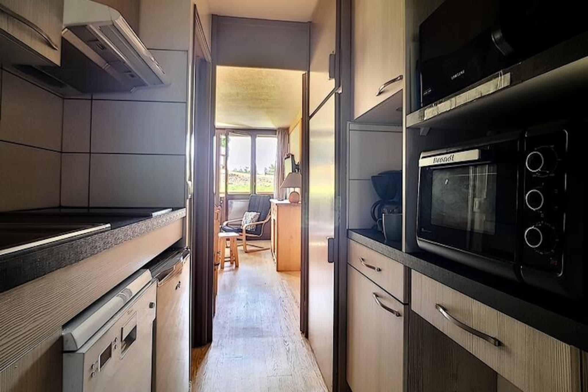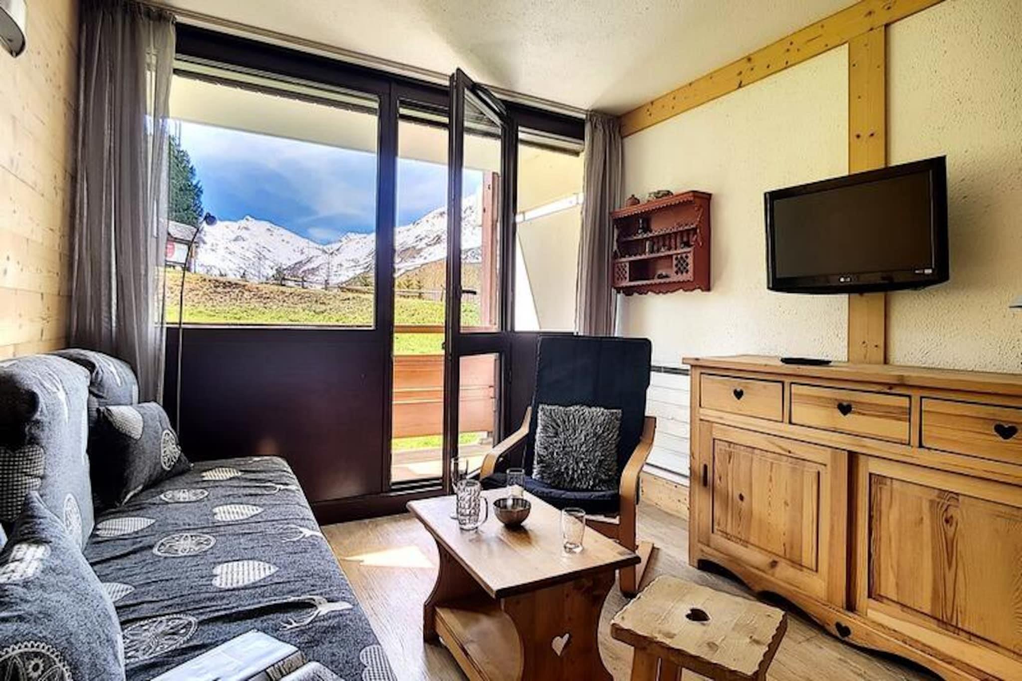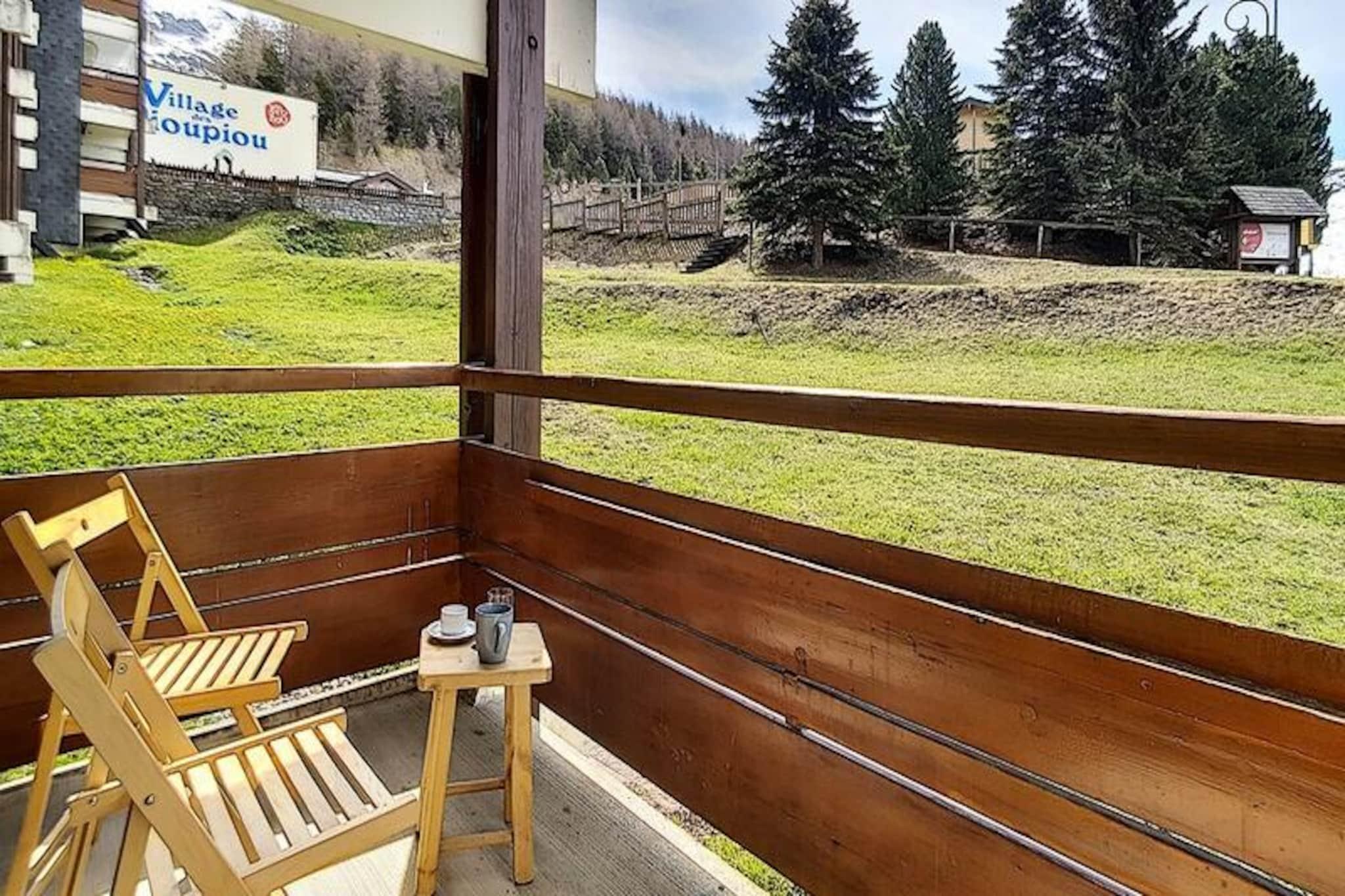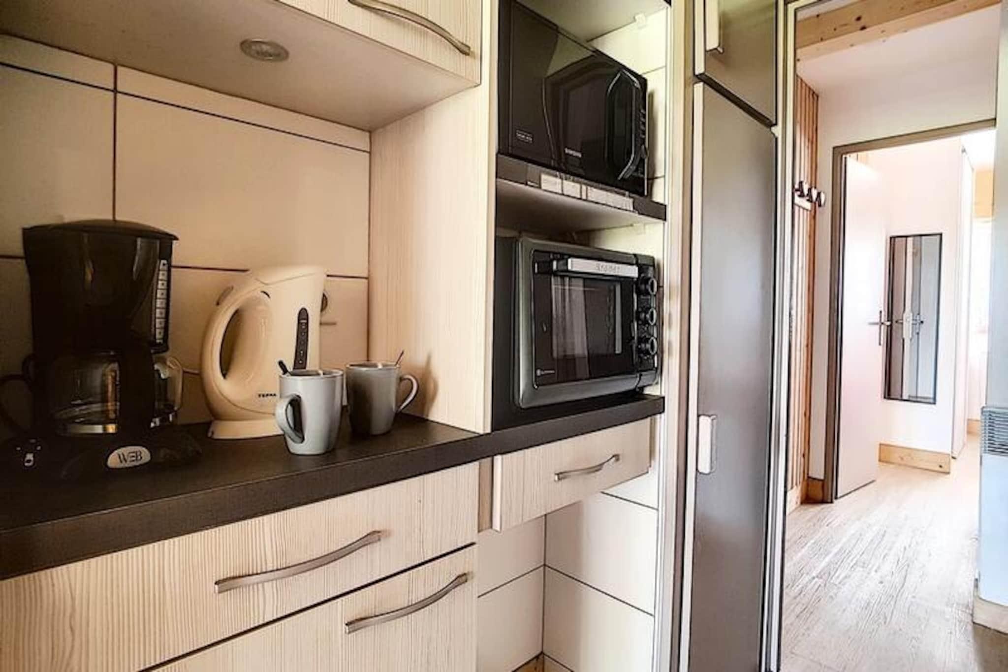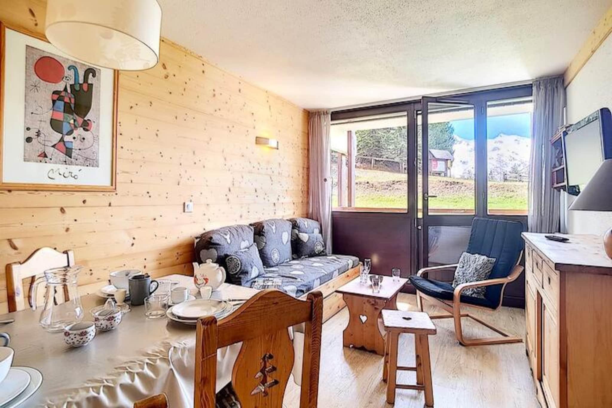 I hjertet af det travle feriestedscentrum tilbyder denne charmerende lejlighed i Alpages-bygningen et hyggeligt tilflugtssted for familier og venner, der søger en mindeværdig alpeferie. Kun få skridt fra La Croisette-indkøbscentret og omgivet af den livlige atmosfære i de franske alper, kombinerer denne bolig bekvemmelighed med komfort, hvilket gør den til en ideel base for at udforske pisterne og lokale attraktioner. Den sydvendte balkon inviterer dig til at nyde solskinnet, mens du nyder udsigten over de maleriske omgivelser. \n\nLejligheden er omhyggeligt renoveret og strækker sig over 37 m² og har plads til op til seks gæster. Stuen har en sovesofa for enkeltseng og en udtræksseng, perfekt til afslapning efter en dag med eventyr. Et separat soveværelse med en dobbeltseng og en sovealkove med køjesenge giver fleksible sovemuligheder. Det fuldt udstyrede køkken inkluderer moderne apparater såsom mikrobølgeovn, ovn, opvaskemaskine og kaffemaskine, hvilket sikrer, at du har alt, hvad du behøver for at tilberede lækre måltider. Badeværelset med badekar og separat toilet bidrager til bekvemmeligheden, mens linoleumsgulvet overalt skaber en ren og indbydende atmosfære. \n\nBeliggende kun 100 meter fra pisterne og med skibokse i kælderen, er denne bolig perfekt til vintersportsentusiaster. Familier vil sætte pris på daginstitutionen og snehaven for foden af ??bygningen, mens det nærliggende busstoppested og station giver nem adgang til at udforske regionen. Uanset om du står på ski, shopper eller bare slapper af, er alt hvad du behøver inden for rækkevidde. \n\nMed sin varme atmosfære, praktiske faciliteter og uovertrufne beliggenhed er denne lejlighed din port til den fortryllende charme i de franske alper. Skab uforglemmelige minder i omgivelser, der blander eventyr, afslapning og alpin skønhed.