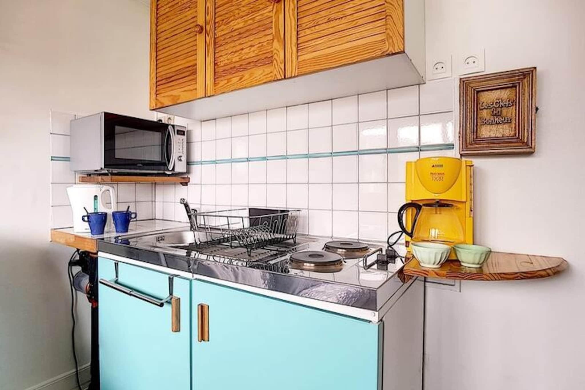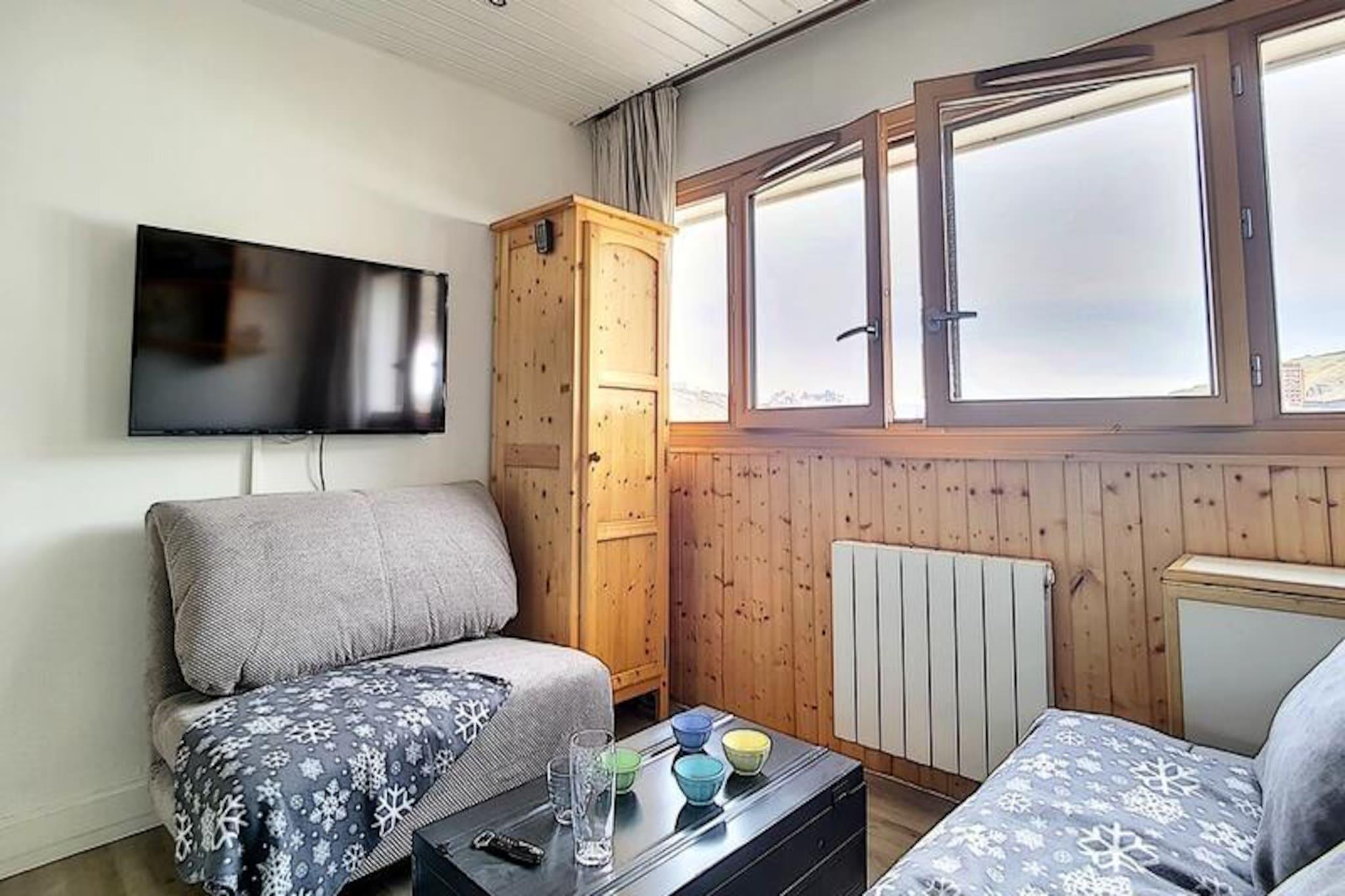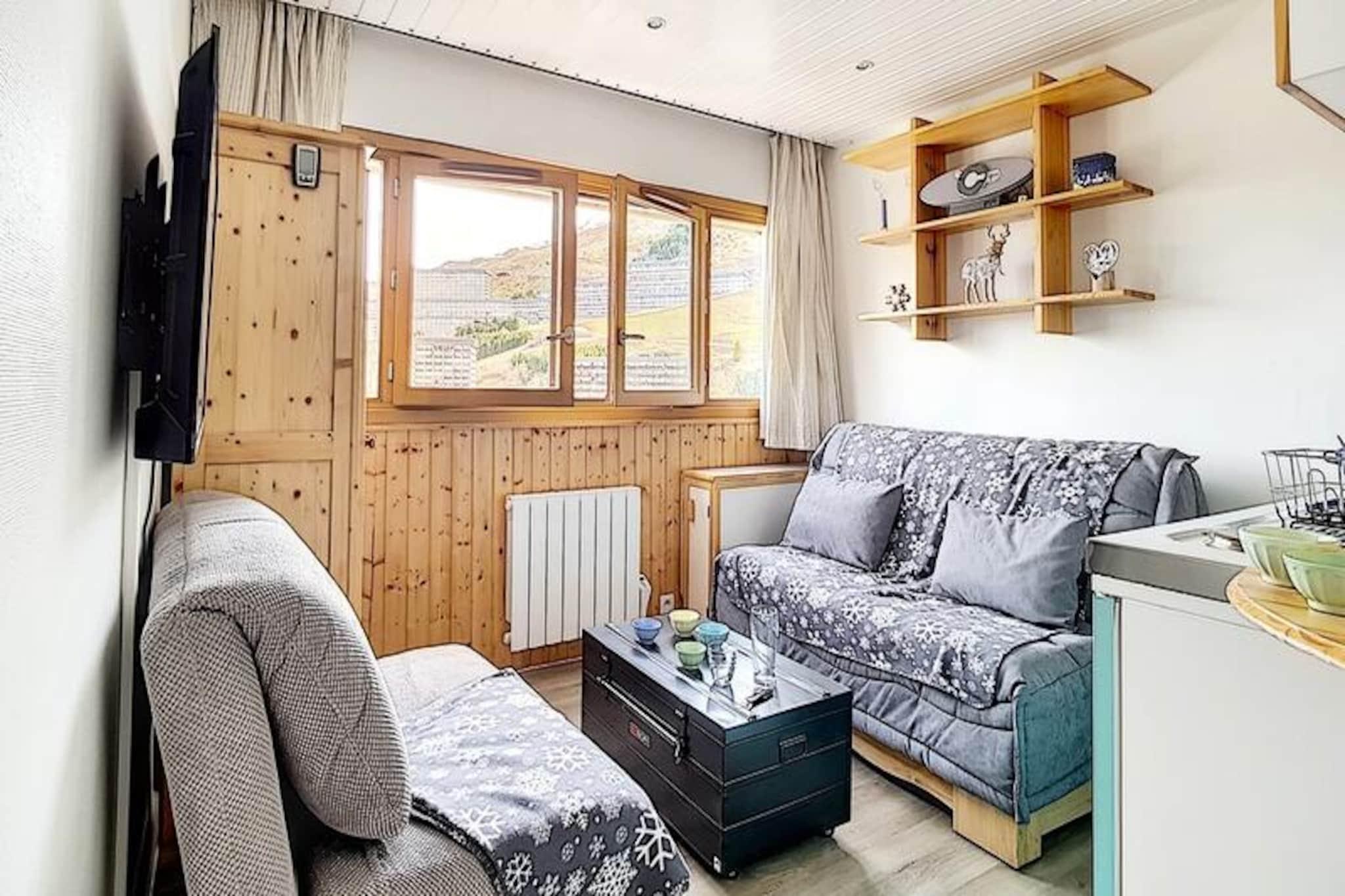 Højt over den maleriske Tarentaise-dal tilbyder denne hyggelige studiolejlighed et roligt alpint tilflugtssted i hjertet af feriestedet. Med sin beliggenhed kun 50 meter fra La Croisette-indkøbscentret og en kort gåtur på 100 meter til pisterne er denne ejendom perfekt til par, der søger en bekvem og fredelig ferie. De charmerende omgivelser kombineret med den nemme adgang til feriestedets faciliteter gør det til en ideel base for at udforske de franske alper i både vinter- og sommersæsonen. Studiolejligheden, der ligger på 7. sal i Alpages-bygningen, er omhyggeligt designet til at maksimere komforten inden for sit 12 m² store rum. Opholdsstuen har en sovesofa, der nemt kan laves om til en dobbeltseng, suppleret med et fladskærms-tv til hyggelige aftener derhjemme. Det kompakte køkken er udstyret med det nødvendige, herunder et køleskab, to elektriske kogeplader, en kombineret mikrobølgeovn/ovn, en kaffemaskine og en elkedel, så du har alt, hvad du behøver for at tilberede enkle måltider. Badeværelset har et lille badekar/bruser og toilet, der tilbyder alle de nødvendige faciliteter til et behageligt ophold. Familier vil sætte pris på bekvemmeligheden ved en børnepasningsordning og snehave lige ved foden af ??bygningen. Det nærliggende busstoppested, kun 50 meter væk, og busstationen, blot 2 minutters kørsel væk, sikrer problemfri forbindelse til det bredere område. For skientusiaster gør ejendommens nærhed til pisterne og skiboksene i kælderen det til et praktisk valg. Uanset om du er her for at grave dig gennem uberørt sne eller for at nyde de pulserende sommerlandskaber, tilbyder denne studiolejlighed et hyggeligt og funktionelt tilflugtssted. Med sin indbydende atmosfære, kæledyrsvenlige politik og nærhed til vigtige faciliteter er det det perfekte sted at skabe varige alpine minder.
