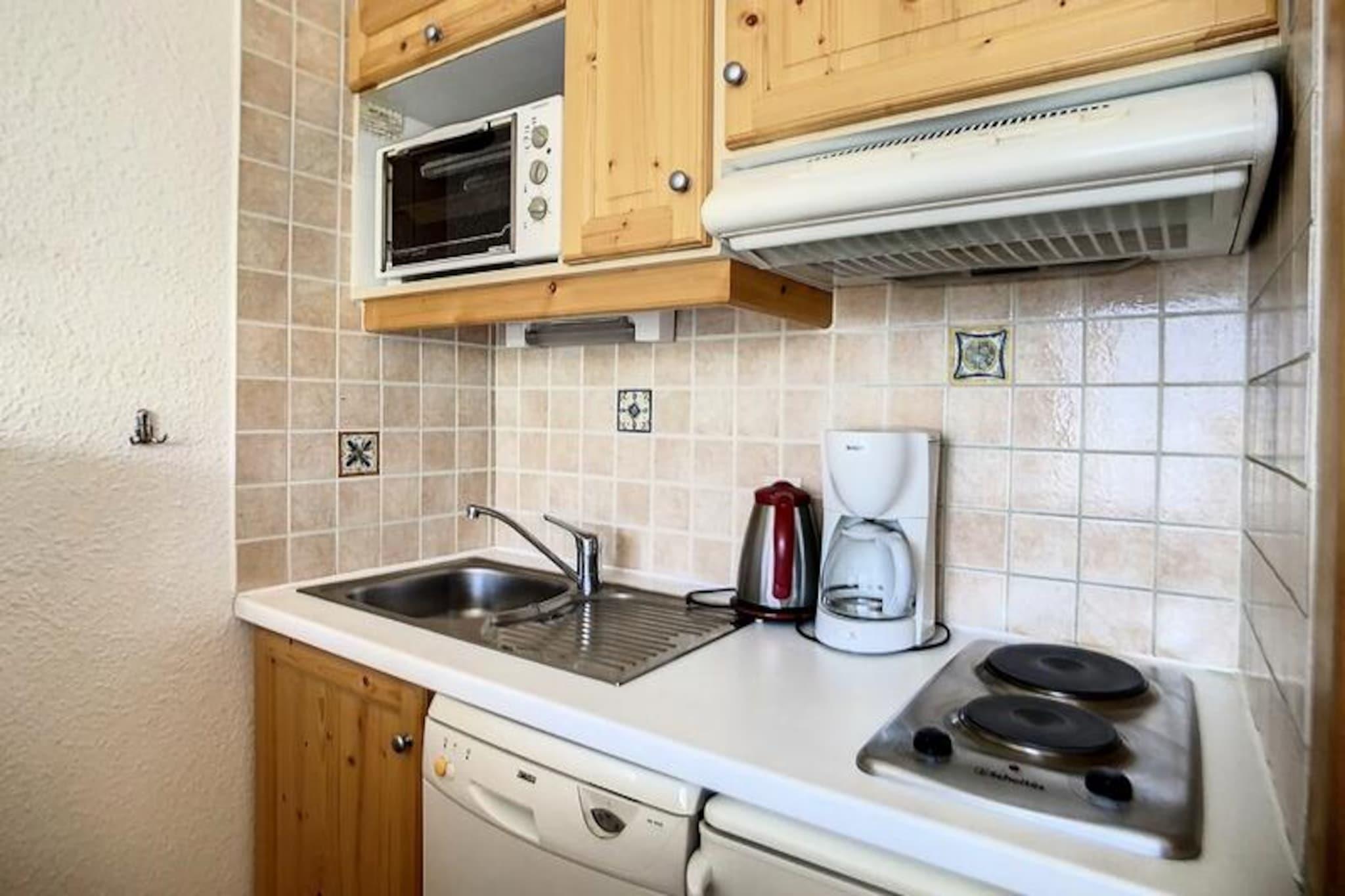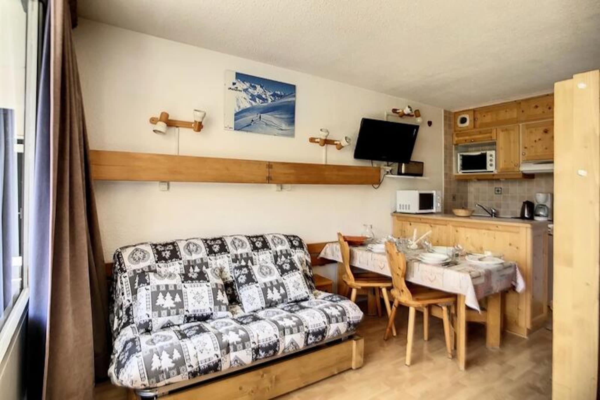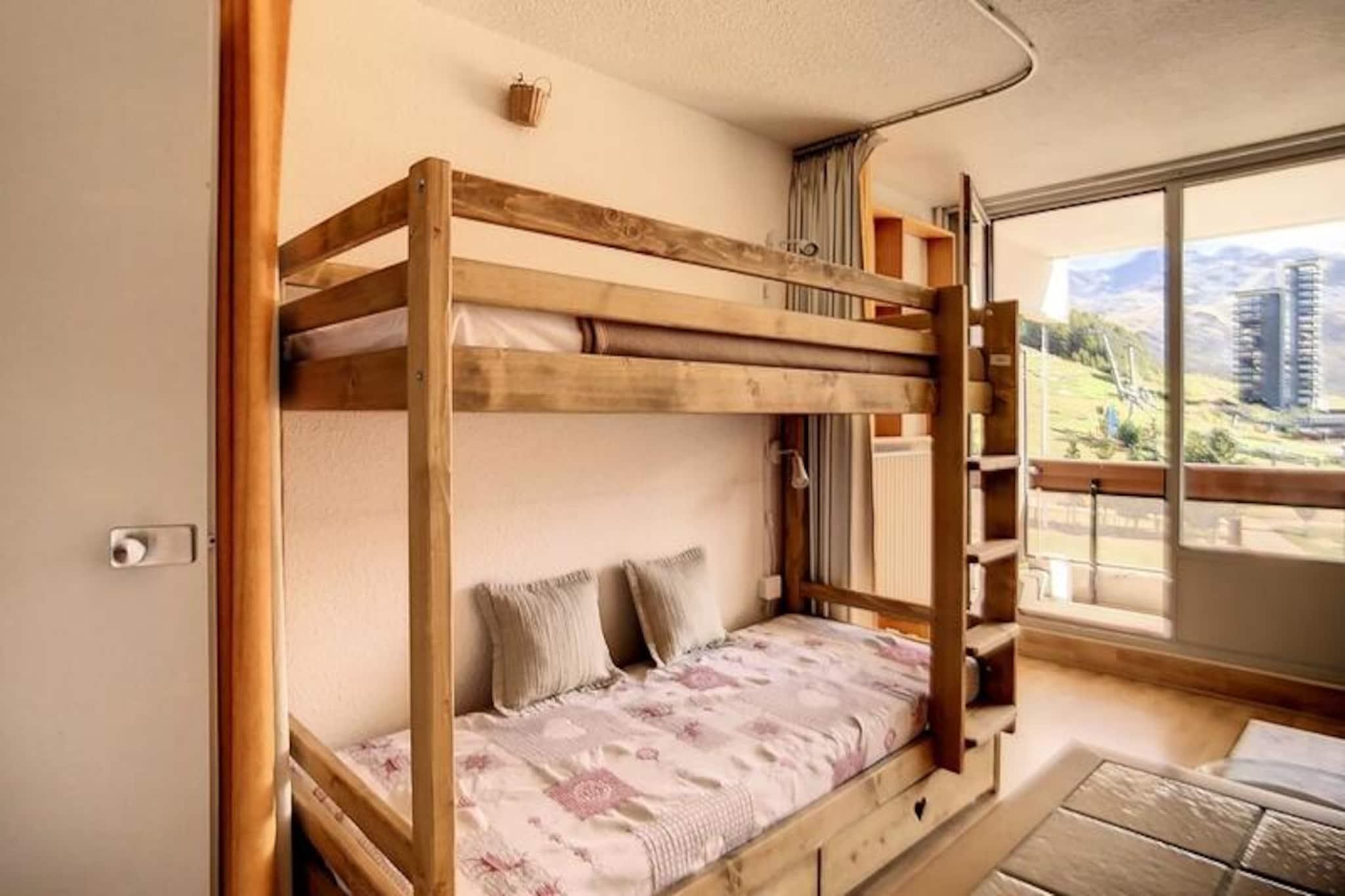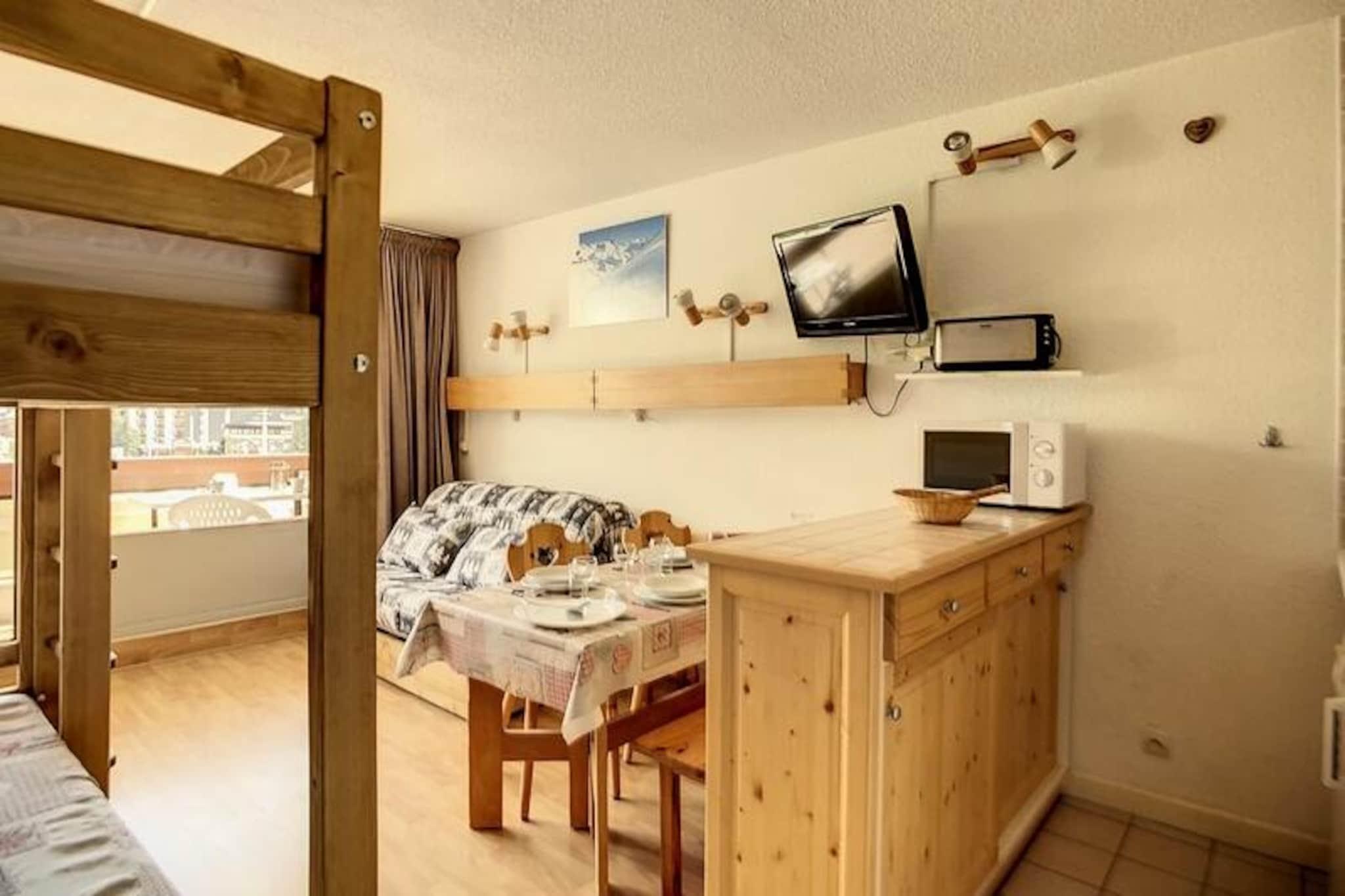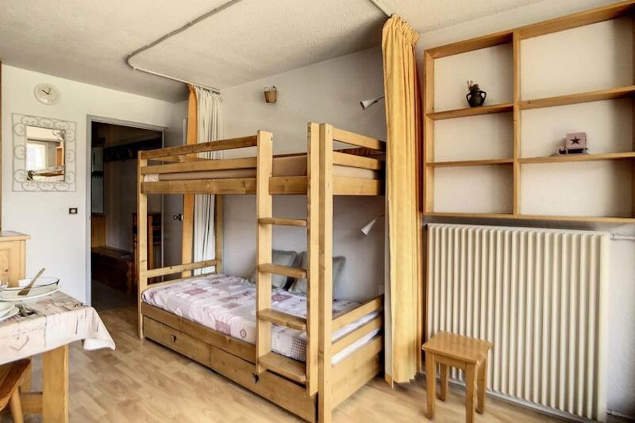 I hjertet af det pulserende La Croisette-distrikt inviterer denne charmerende studiolejlighed dig til at opleve magien i de franske alper. Med direkte adgang til pisterne og en bekvem forbindelse til shoppingarkaden lige nedenfor er denne ejendom et paradis for skientusiaster og dem, der søger et hyggeligt alpint tilflugtssted. Forestil dig at træde ud af din dør og ud på sneen, klar til at bane dig vej gennem regionens uberørte pister, alt imens du nyder bekvemmeligheden ved de nærliggende faciliteter. Den sydvendte balkon på tredje sal tilbyder et dejligt sted at nyde udsigten over bjergene og sole sig i den alpine sol. \n\nDenne 24 m² store studiolejlighed er omhyggeligt designet til at rumme op til fire gæster. Opholdsstuen har to køjesenge og en komfortabel sovesofa til to, hvilket gør den ideel til familier eller små grupper. Det fuldt udstyrede køkken indeholder alt, hvad du behøver for at tilberede solide måltider efter en dag på pisterne, fra køleskab og ovn til opvaskemaskine og kaffemaskine. Lejligheden kan også prale af et badeværelse med badekar, separat toilet, parketgulv og moderne bekvemmeligheder såsom tv og vaskemaskine. Bemærk venligst, at køjesengene ikke er egnede til børn under seks år, og ejendommen er røgfri og kæledyrsfri. \n\nChavière-residensen er perfekt placeret til bekvemmelighed og eventyr. Der er gratis udendørs parkering ved foden af ??bygningen (afhængigt af tilgængelighed), og børnehaven ligger kun 300 meter væk, hvilket gør det til et fremragende valg for familier. Der er også betalt Wi-Fi-adgang for dem, der ønsker at holde forbindelsen. Uanset om du er her for at stå på ski, udforske eller bare slappe af, tilbyder dette hyggelige alpine studie den perfekte base for din bjergferie. Med sin uovertrufne beliggenhed og varme atmosfære lover det et uforglemmeligt ophold i hjertet af Alperne.