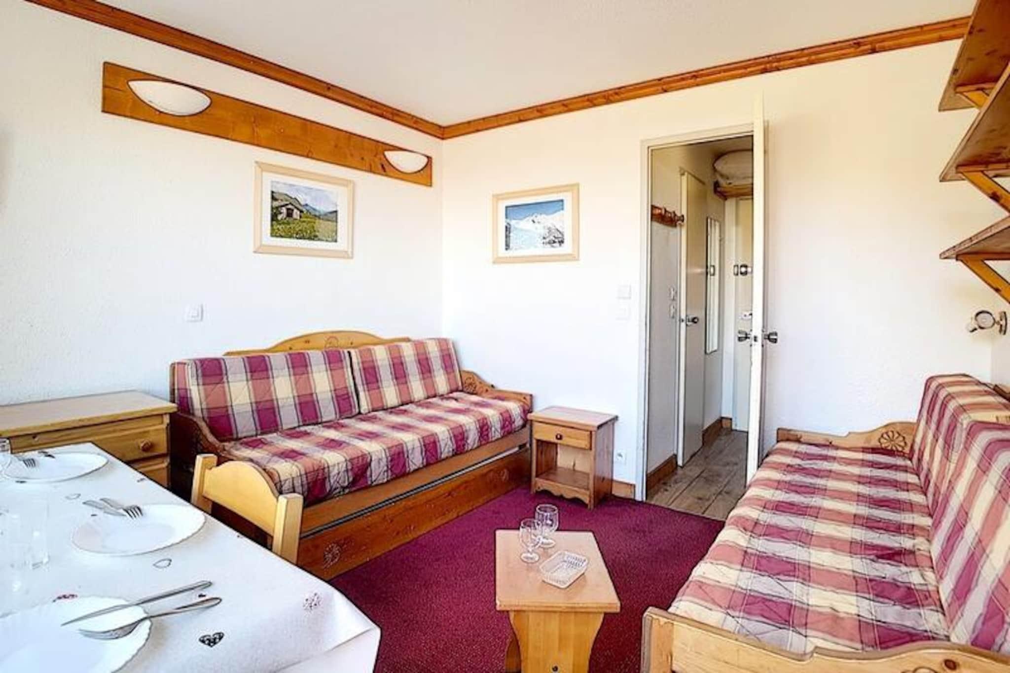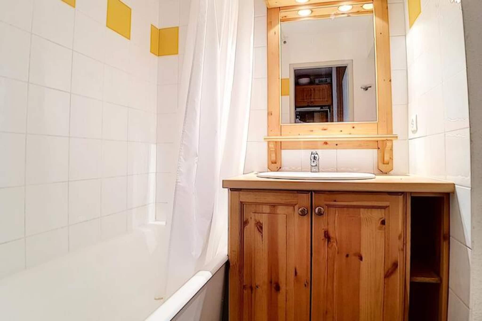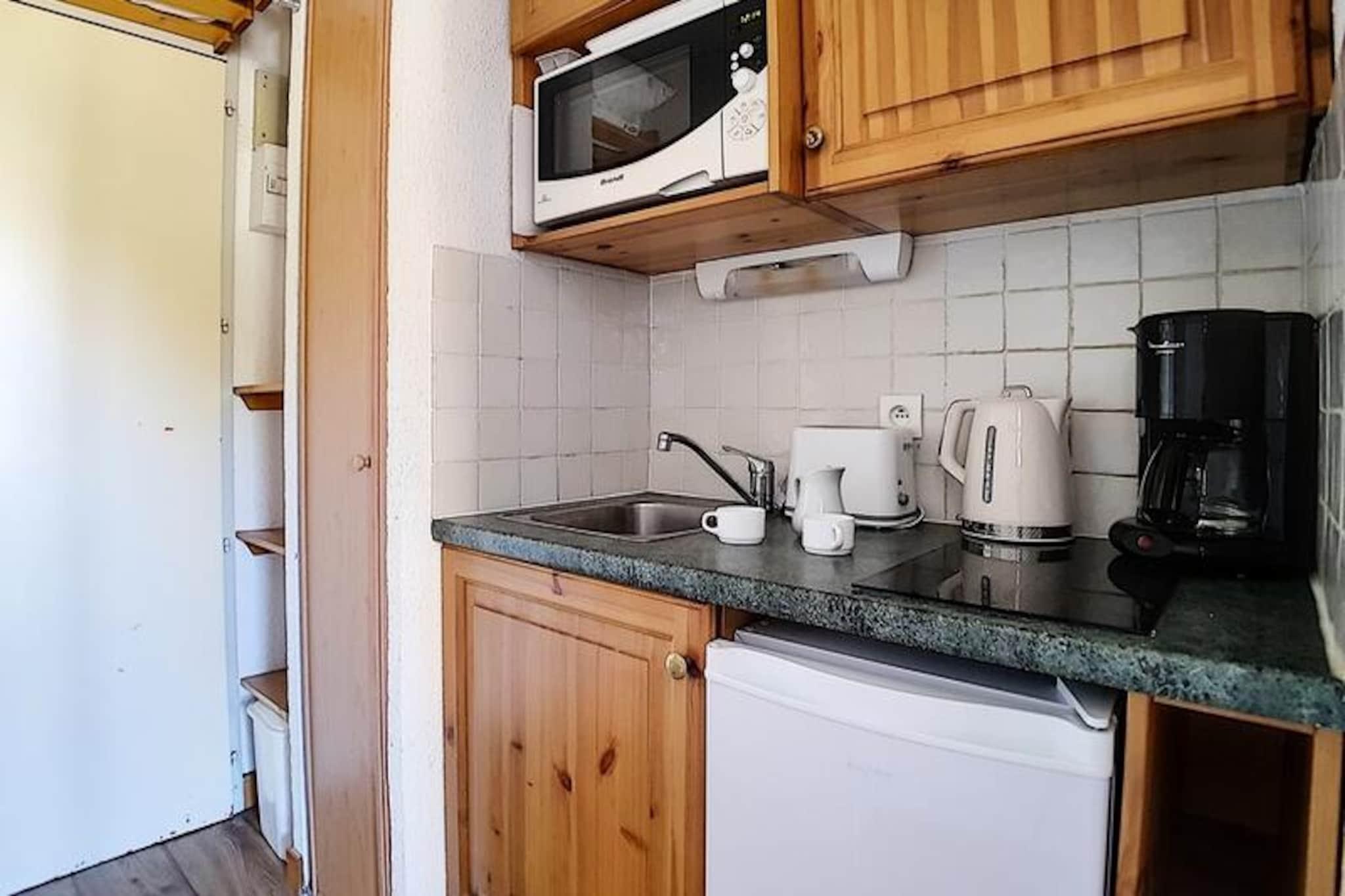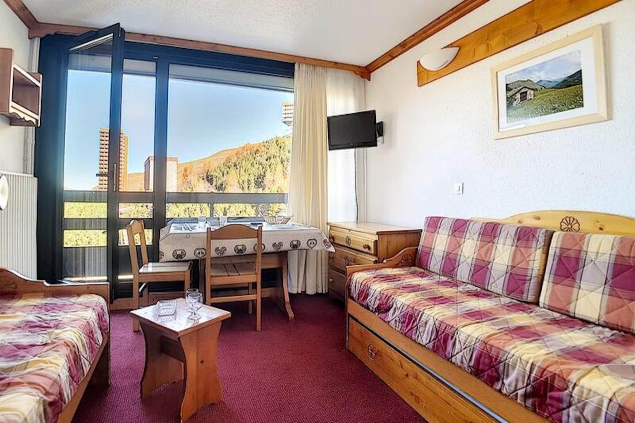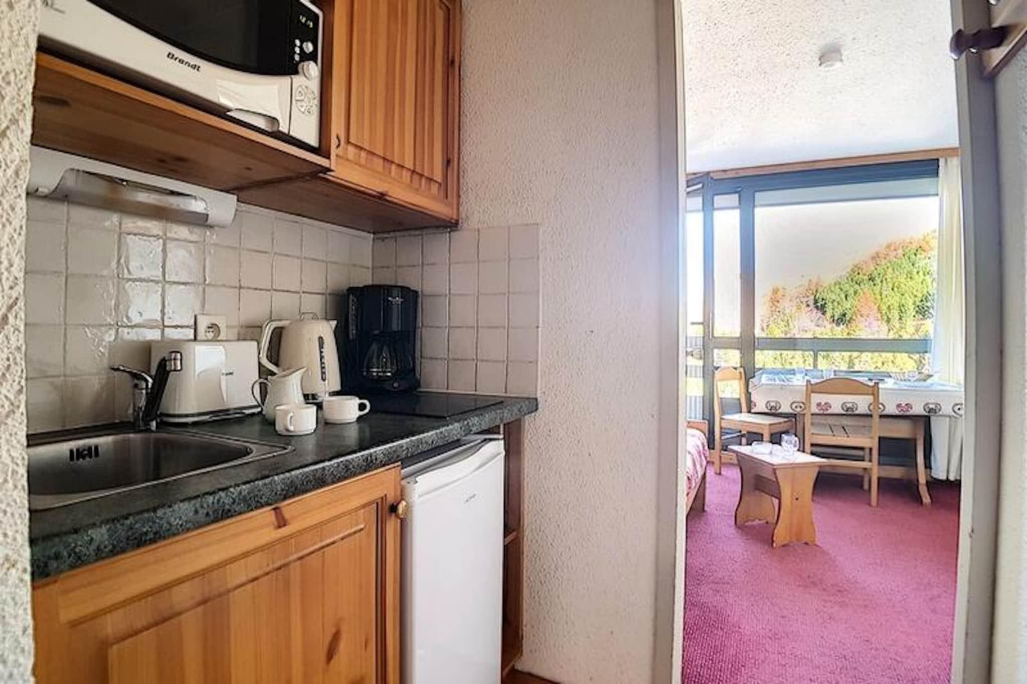 Højt over det travle La Croisette-distrikt tilbyder dette charmerende studie et hyggeligt tilflugtssted for dem, der søger en direkte forbindelse til pisterne og det pulserende hjerte af Les Menuires. Forestil dig at vågne op til en fredfyldt udsigt fra din nordvendte balkon, indånde den friske alpine luft og træde ud i en verden af ??snefyldte eventyr. Med bekvemmeligheden af ??ski-in/ski-out-adgang og shoppingarkaden lige nedenfor er hvert øjeblik af dit ophold designet til lethed og nydelse. Uanset om du er her for spændende nedkørsler eller fredelige bjergvandringer, placerer denne bolig dig lige i centrum af det hele. \n\nStudioet, der ligger på 4. sal med elevatoradgang, er omhyggeligt designet til at rumme op til tre gæster. Opholdsstuen har to enkeltsenge og en sovesofa, der sikrer komfort for små familier eller tætte venner. Et fuldt udstyret køkken venter med kogeplade, køleskab, mini-opvaskemaskine, ovn, brødrister, elkedel og kaffemaskine - perfekt til at tilberede solide måltider efter en dag på pisterne. Badeværelset har badekar og toilet, hvilket tilbyder et afslappende sted at slappe af. Moderne bekvemmeligheder som tv og betalt Wi-Fi sikrer, at dit ophold forbliver forbundet og behageligt. \n\nTræd udenfor og oplev det pulserende La Croisette-distrikt, hvor alt hvad du behøver er inden for rækkevidde. Fra børnehaven kun 300 meter væk til gratis udendørs parkering for foden af ??bygningen (afhængigt af tilgængelighed) er bekvemmeligheden lige ved hånden. Udforsk de nærliggende pister, nyd lokal mad, eller nyd blot den livlige atmosfære i Les Menuires. \n\nUanset om du søger eventyr eller afslapning, er dette studie din port til uforglemmelige alpine minder. Med sin førsteklasses beliggenhed og gennemtænkte faciliteter er det den perfekte base for din bjergflugt.