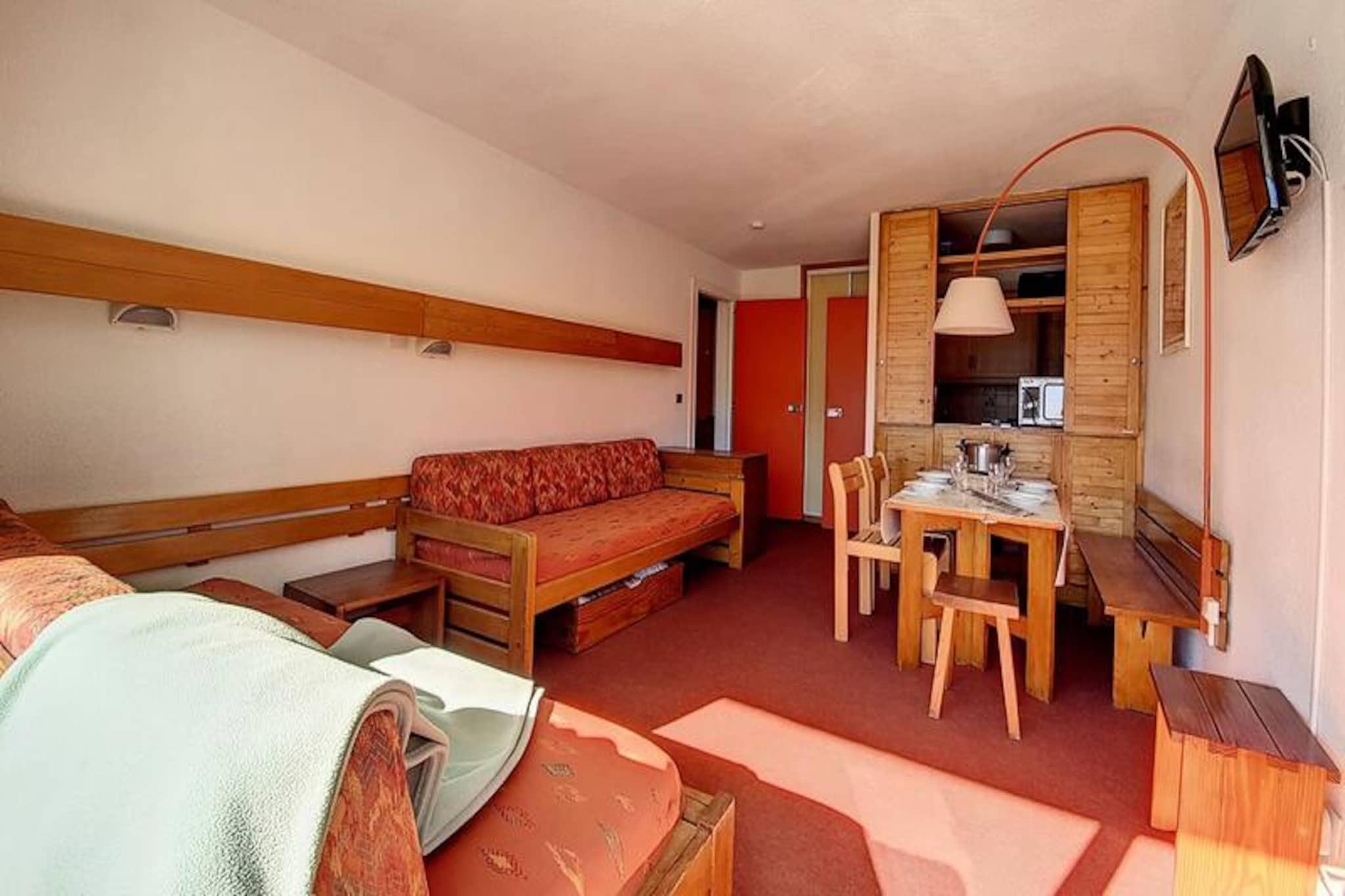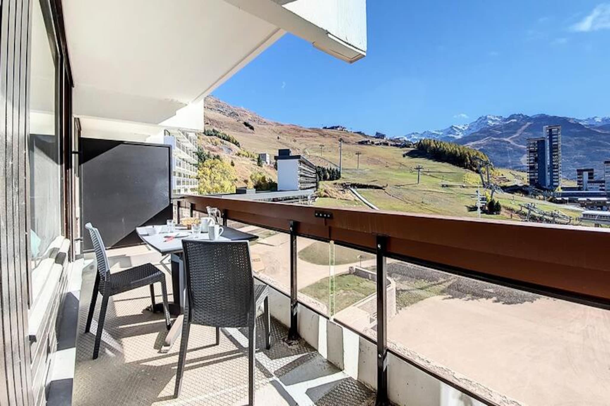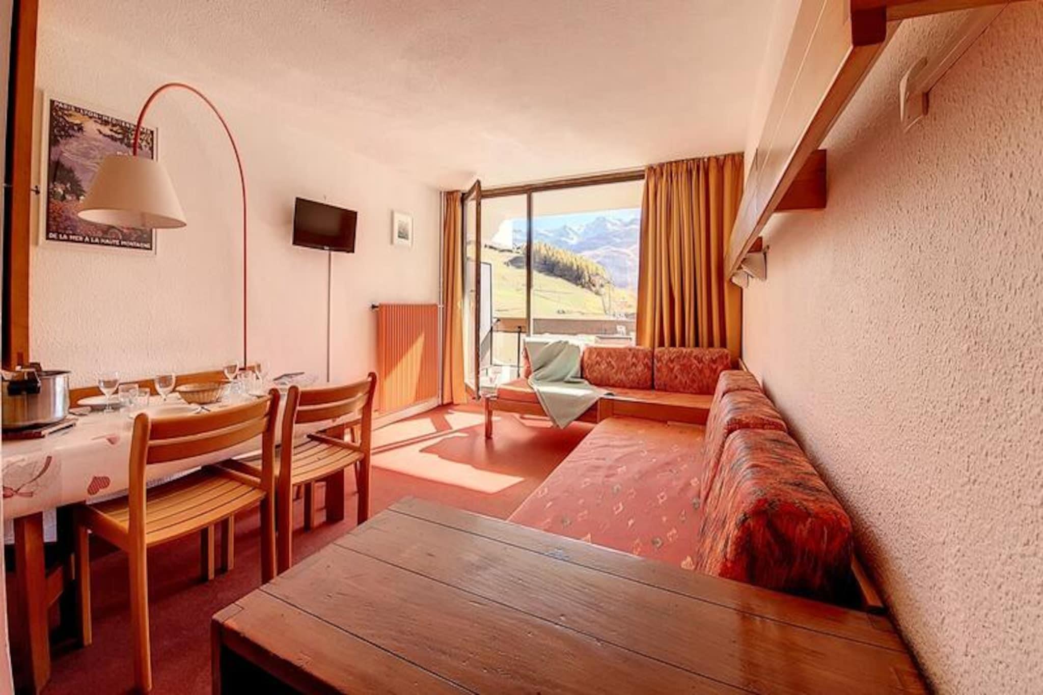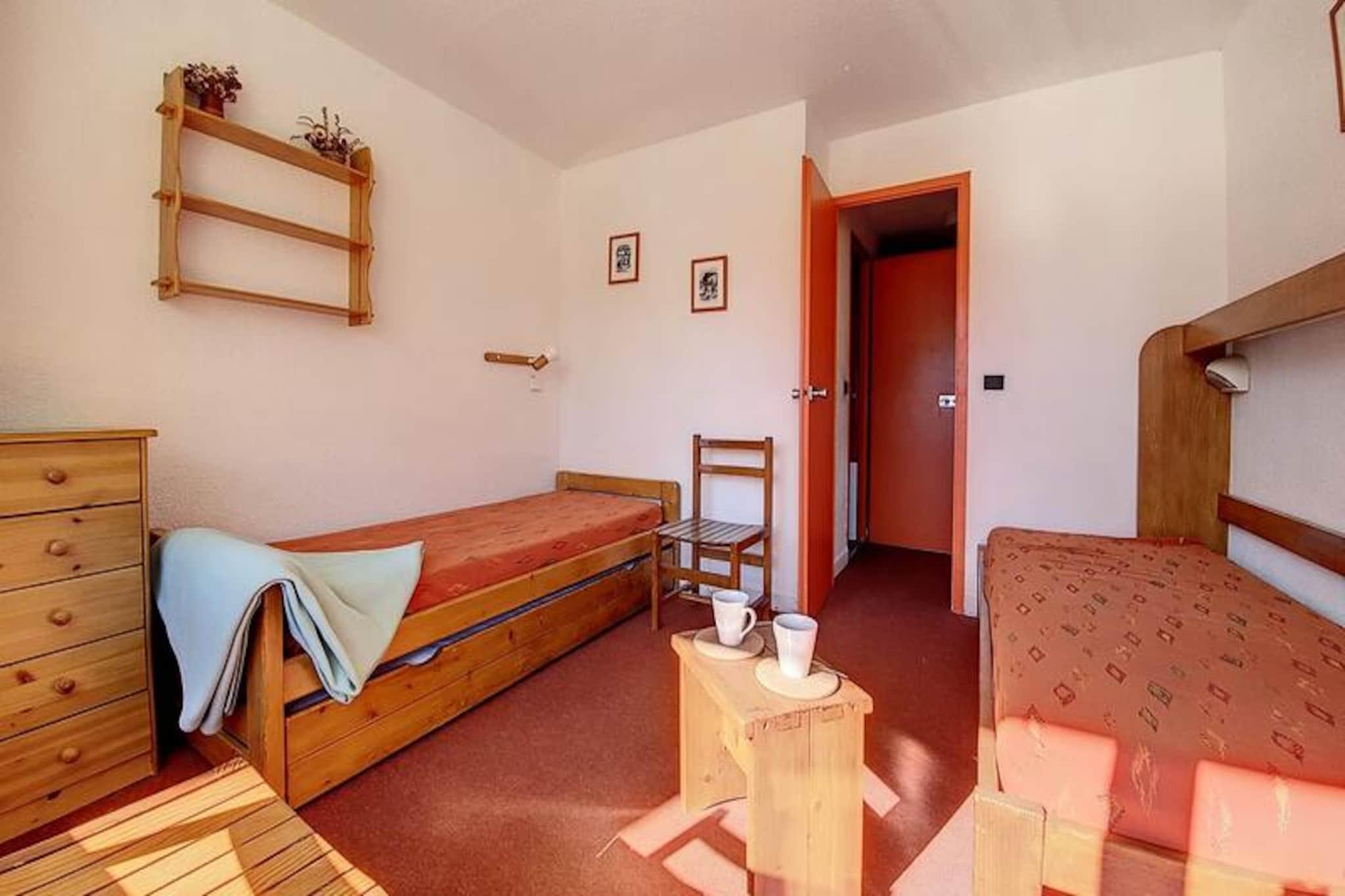 Højt over det maleriske La Croisette-distrikt tilbyder denne charmerende alpine lejlighed et hyggeligt tilflugtssted med direkte adgang til pisterne, hvilket gør det til en drømmedestination for skientusiaster. Forestil dig at træde ud af din dør og glide direkte ud på den uberørte sne, med den pulserende shoppingarkade bekvemt placeret lige under bygningen. Chavière-residensen kombinerer spændingen ved bjergeventyr med moderne bekvemmeligheder og sikrer et mindeværdigt ophold for alle. \n\nDenne 37 m² store lejlighed, der ligger på 6. sal med elevatoradgang, har komfortabel plads til op til fem gæster. Stuen har to enkeltsofaer og et fladskærms-tv, perfekt til afslapning efter en dag på pisterne. Soveværelset har to enkeltsenge og en udtræksseng, hvilket giver fleksible sovemuligheder for familier eller små grupper. Det separate køkken er fuldt udstyret med kogeplade, ovn, køleskab, opvaskemaskine og essentielle apparater som brødrister, elkedel og kaffemaskine, hvilket gør madlavning til en leg. To sydvendte altaner inviterer dig til at nyde det alpine solskin og den betagende udsigt. \n\nUd over lejligheden tilbyder La Croisette-kvarteret en livlig atmosfære med en børnehave kun 300 meter væk og gratis udendørs parkering ved foden af ??bygningen. Uanset om du er her for at stå på ski, udforske den charmerende landsby eller blot slappe af i den friske bjergluft, placerer denne bolig dig i hjertet af det hele. Med betalt Wi-Fi-adgang og tæpper er hver eneste detalje tænkt over for at sikre din komfort. \n\nVælg Chavière-residensen for dens uovertrufne beliggenhed, hyggelige atmosfære og løftet om uforglemmelige alpine minder. Uanset om du besøger den for en vinterferie eller et sommerophold, er denne lejlighed din port til den fortryllende skønhed i de franske alper.