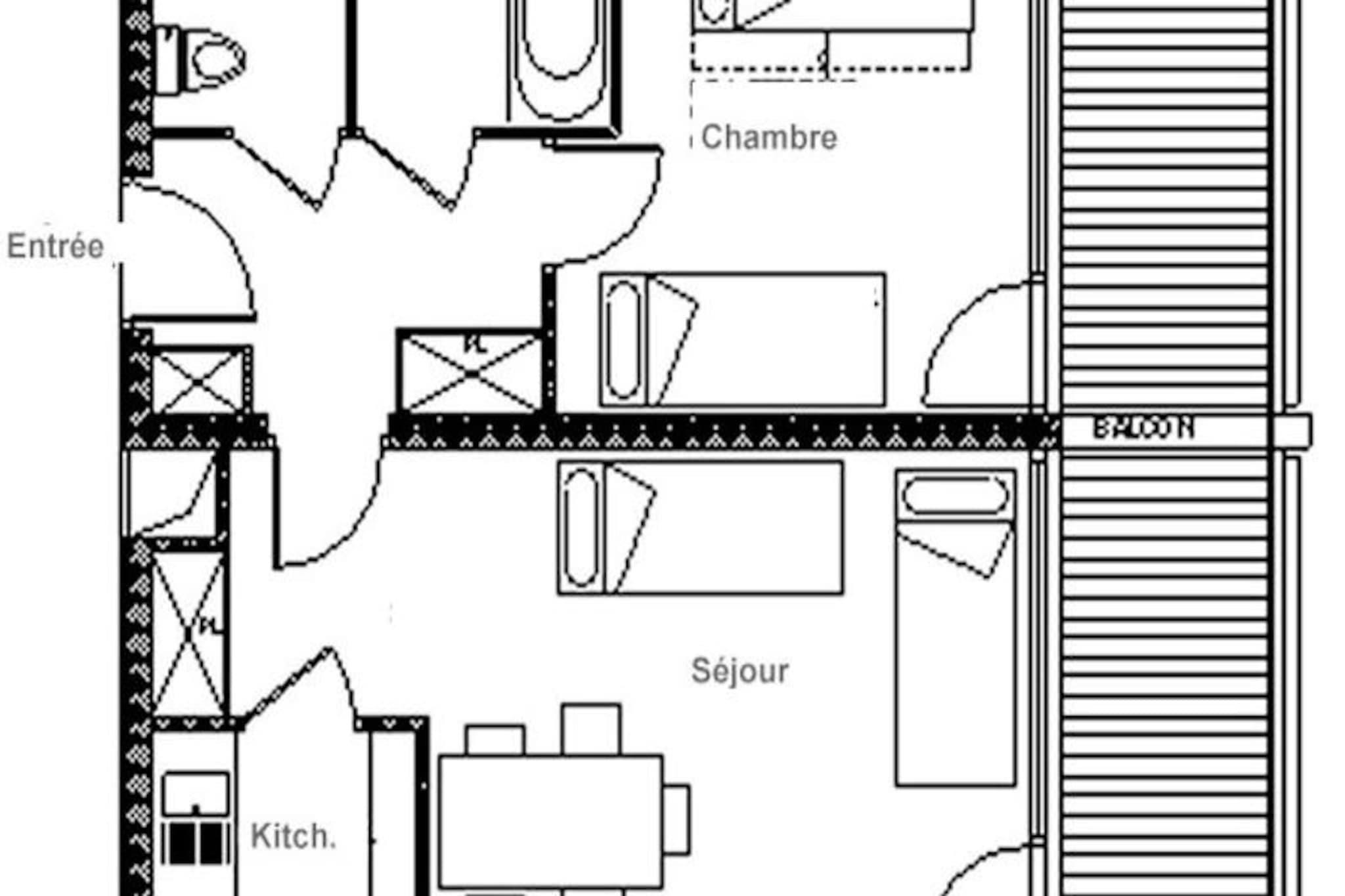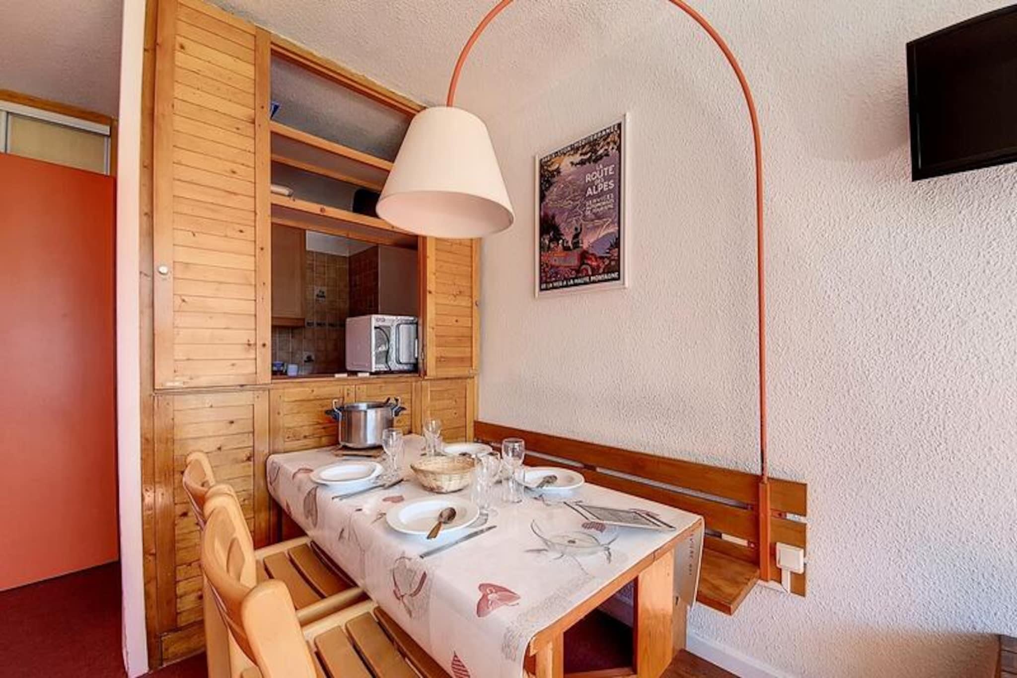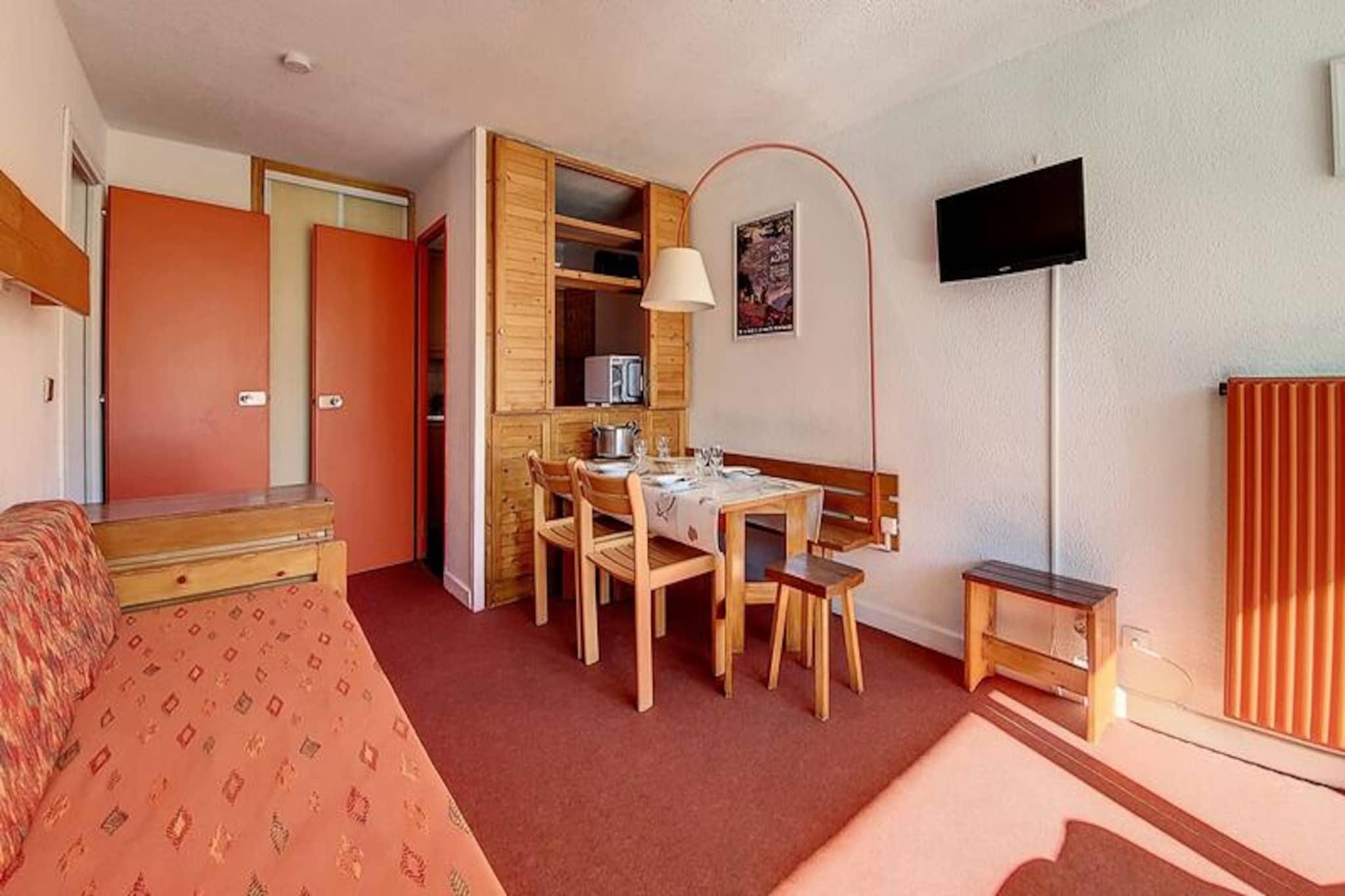 Højt over det maleriske La Croisette-distrikt tilbyder denne charmerende alpine lejlighed et hyggeligt tilflugtssted med direkte adgang til pisterne, hvilket gør det til en drømmedestination for skientusiaster. Forestil dig at træde ud af din dør og glide direkte ud på den uberørte sne, med den pulserende shoppingarkade bekvemt placeret lige under bygningen. Chavière-residensen kombinerer spændingen ved bjergeventyr med moderne bekvemmeligheder og sikrer et mindeværdigt ophold for alle. \n\nDenne 37 m² store lejlighed, der ligger på 6. sal med elevatoradgang, har komfortabel plads til op til fem gæster. Stuen har to enkeltsofaer og et fladskærms-tv, perfekt til afslapning efter en dag på pisterne. Soveværelset har to enkeltsenge og en udtræksseng, hvilket giver fleksible sovemuligheder for familier eller små grupper. Det separate køkken er fuldt udstyret med kogeplade, ovn, køleskab, opvaskemaskine og essentielle apparater som brødrister, elkedel og kaffemaskine, hvilket gør madlavning til en leg. To sydvendte altaner inviterer dig til at nyde det alpine solskin og den betagende udsigt. \n\nUd over lejligheden tilbyder La Croisette-kvarteret en livlig atmosfære med en børnehave kun 300 meter væk og gratis udendørs parkering ved foden af ??bygningen. Uanset om du er her for at stå på ski, udforske den charmerende landsby eller blot slappe af i den friske bjergluft, placerer denne bolig dig i hjertet af det hele. Med betalt Wi-Fi-adgang og tæpper er hver eneste detalje tænkt over for at sikre din komfort. \n\nVælg Chavière-residensen for dens uovertrufne beliggenhed, hyggelige atmosfære og løftet om uforglemmelige alpine minder. Uanset om du besøger den for en vinterferie eller et sommerophold, er denne lejlighed din port til den fortryllende skønhed i de franske alper.