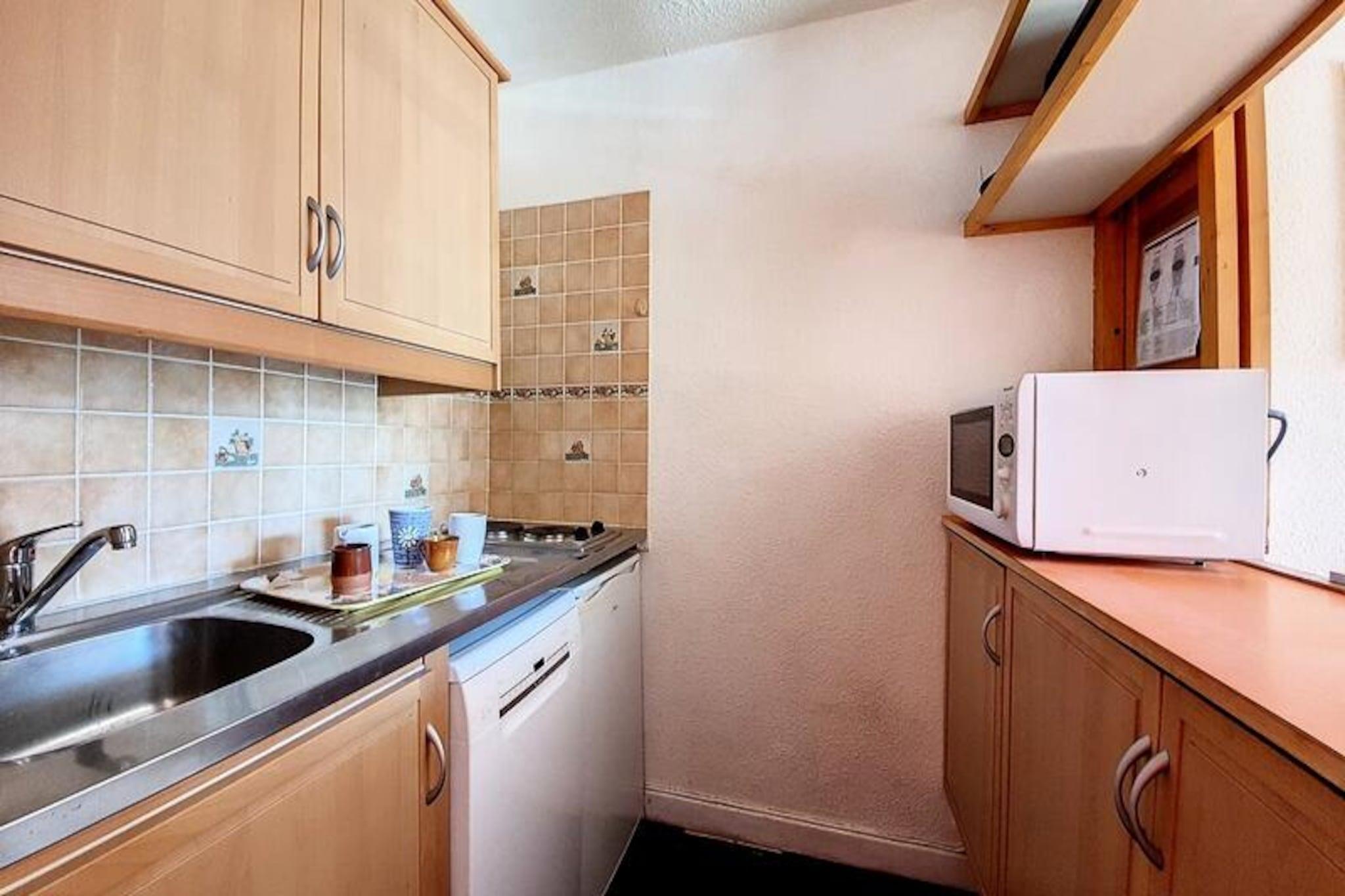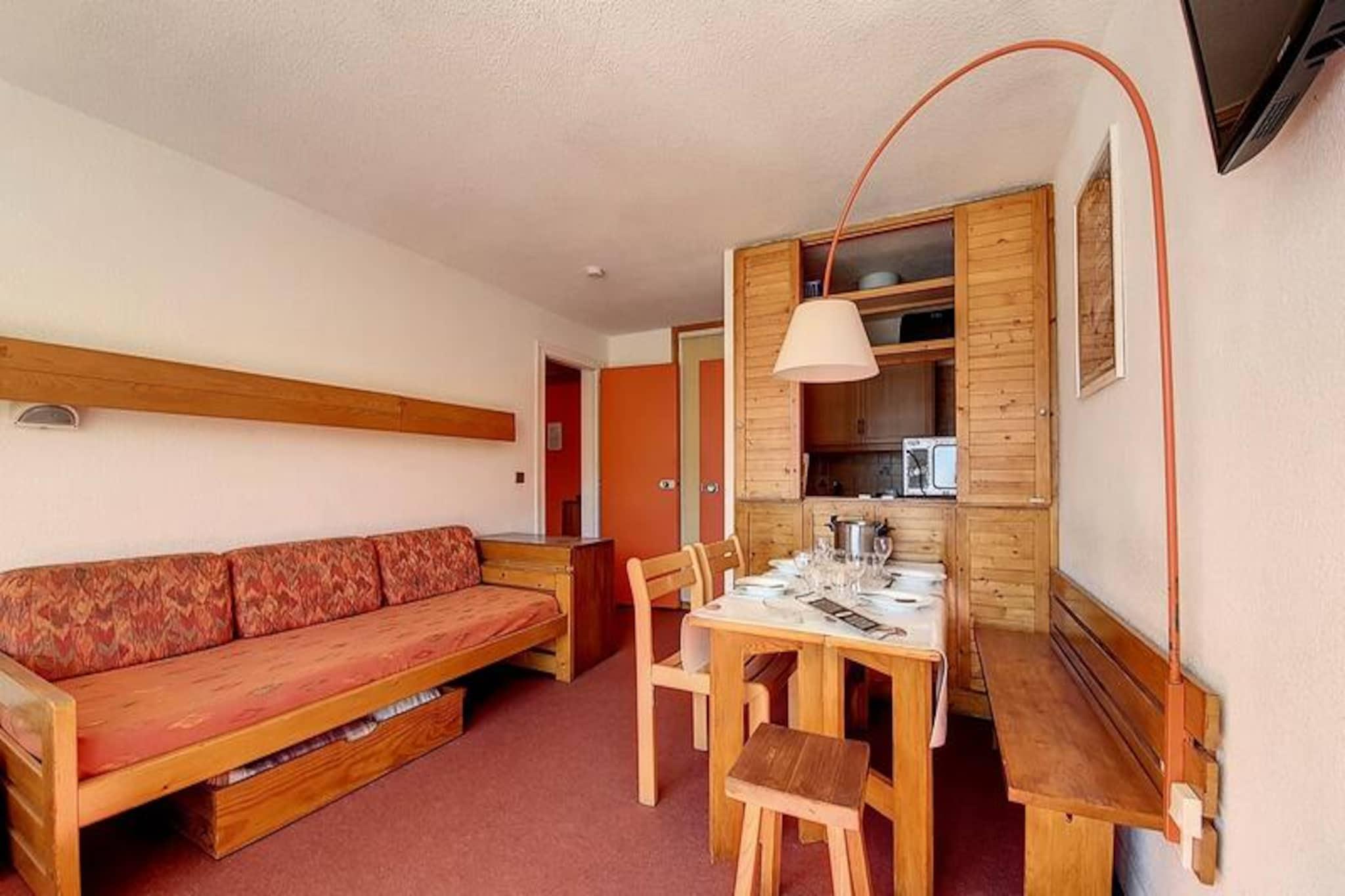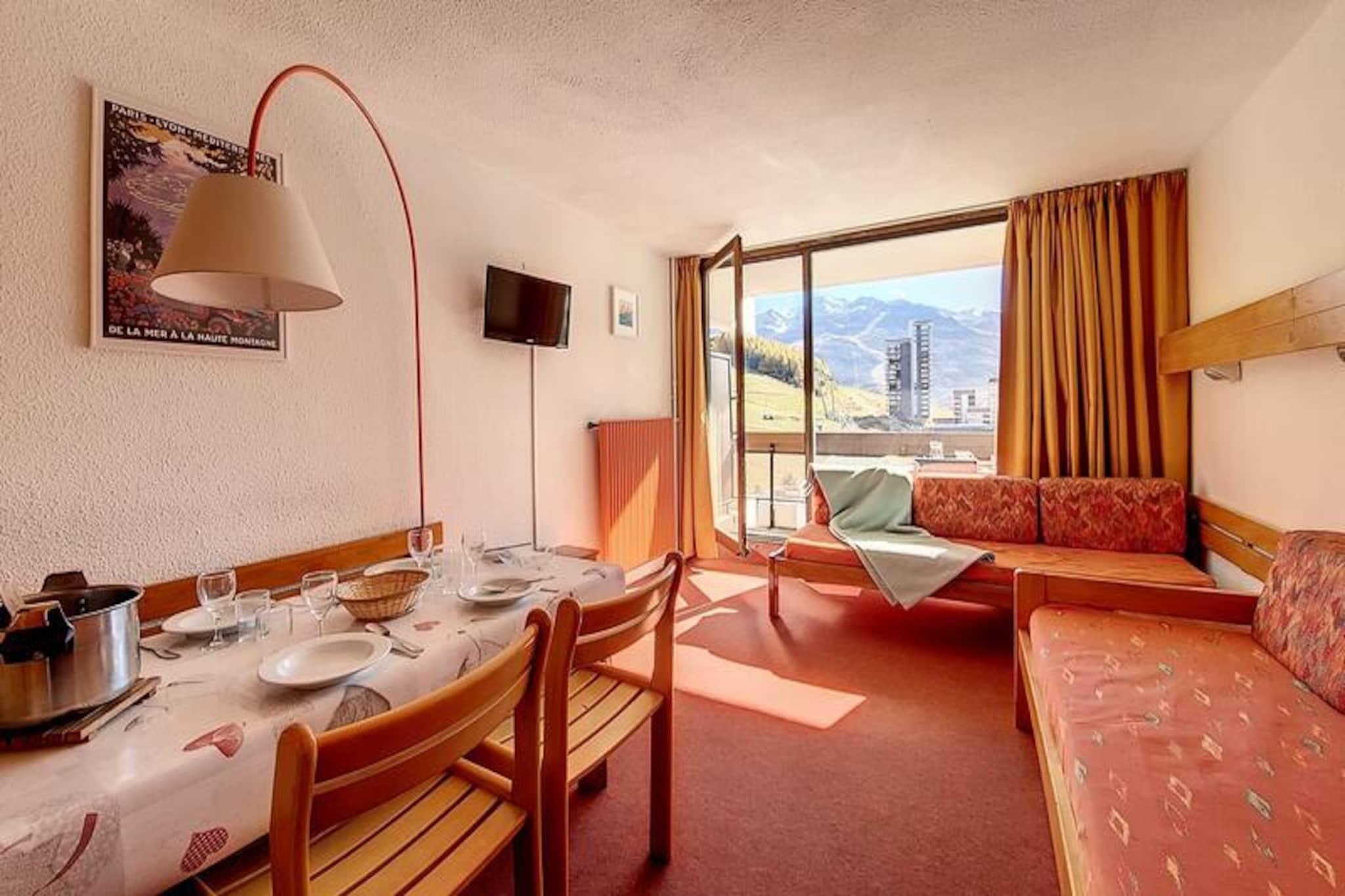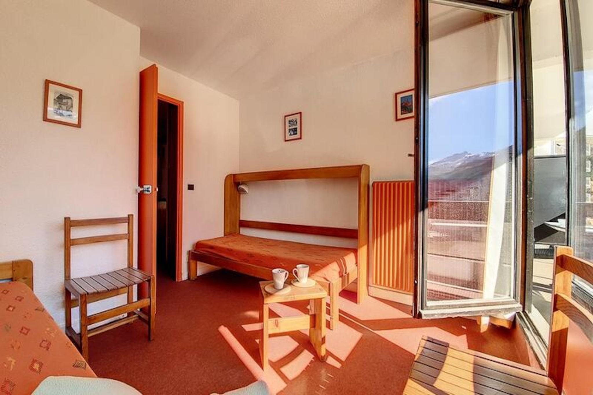 Højt over det maleriske La Croisette-distrikt tilbyder denne charmerende alpine lejlighed et hyggeligt tilflugtssted med direkte adgang til pisterne, hvilket gør det til en drømmedestination for skientusiaster. Forestil dig at træde ud af din dør og glide direkte ud på den uberørte sne, med den pulserende shoppingarkade bekvemt placeret lige under bygningen. Chavière-residensen kombinerer spændingen ved bjergeventyr med moderne bekvemmeligheder og sikrer et mindeværdigt ophold for alle. \n\nDenne 37 m² store lejlighed, der ligger på 6. sal med elevatoradgang, har komfortabel plads til op til fem gæster. Stuen har to enkeltsofaer og et fladskærms-tv, perfekt til afslapning efter en dag på pisterne. Soveværelset har to enkeltsenge og en udtræksseng, hvilket giver fleksible sovemuligheder for familier eller små grupper. Det separate køkken er fuldt udstyret med kogeplade, ovn, køleskab, opvaskemaskine og essentielle apparater som brødrister, elkedel og kaffemaskine, hvilket gør madlavning til en leg. To sydvendte altaner inviterer dig til at nyde det alpine solskin og den betagende udsigt. \n\nUd over lejligheden tilbyder La Croisette-kvarteret en livlig atmosfære med en børnehave kun 300 meter væk og gratis udendørs parkering ved foden af ??bygningen. Uanset om du er her for at stå på ski, udforske den charmerende landsby eller blot slappe af i den friske bjergluft, placerer denne bolig dig i hjertet af det hele. Med betalt Wi-Fi-adgang og tæpper er hver eneste detalje tænkt over for at sikre din komfort. \n\nVælg Chavière-residensen for dens uovertrufne beliggenhed, hyggelige atmosfære og løftet om uforglemmelige alpine minder. Uanset om du besøger den for en vinterferie eller et sommerophold, er denne lejlighed din port til den fortryllende skønhed i de franske alper.
