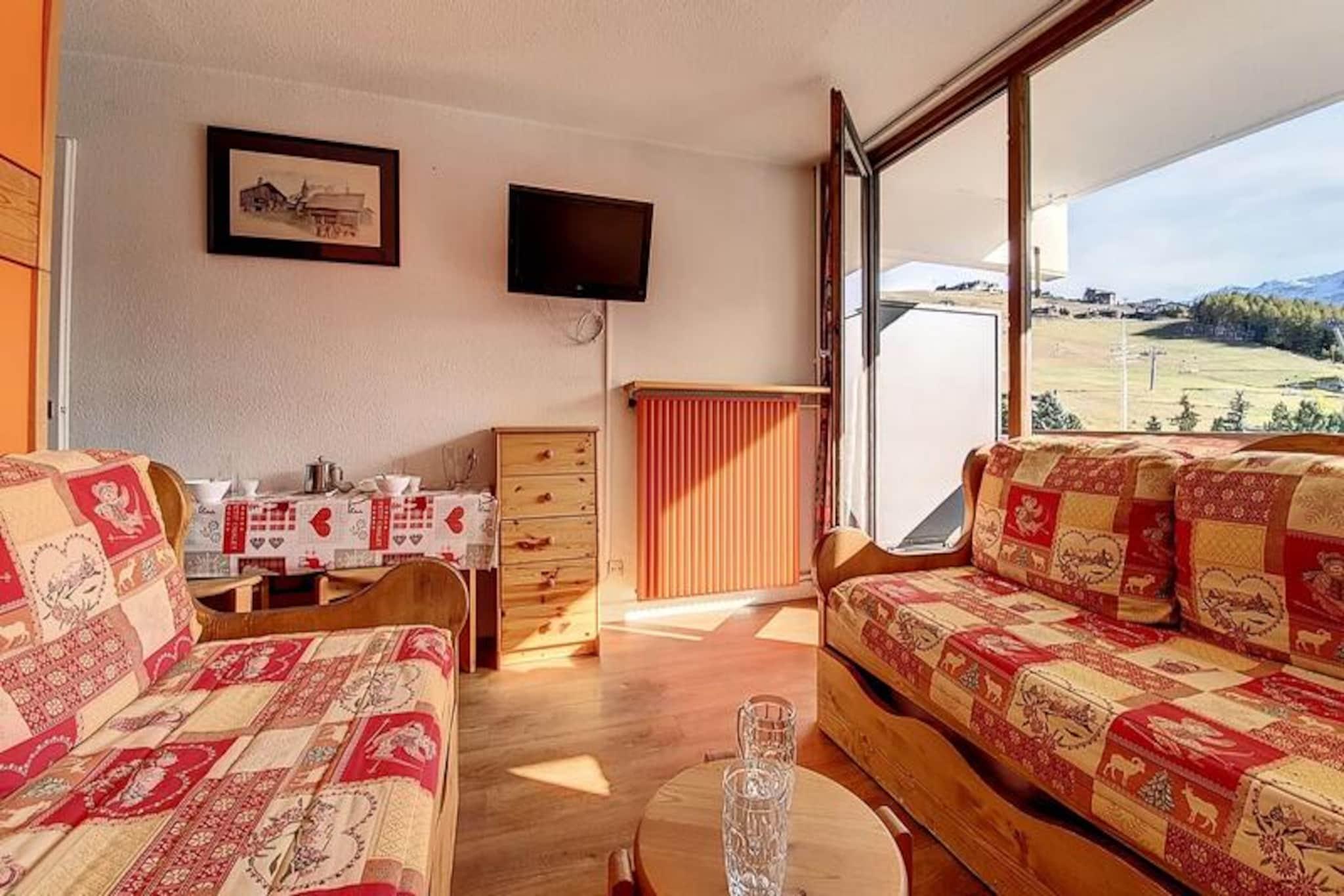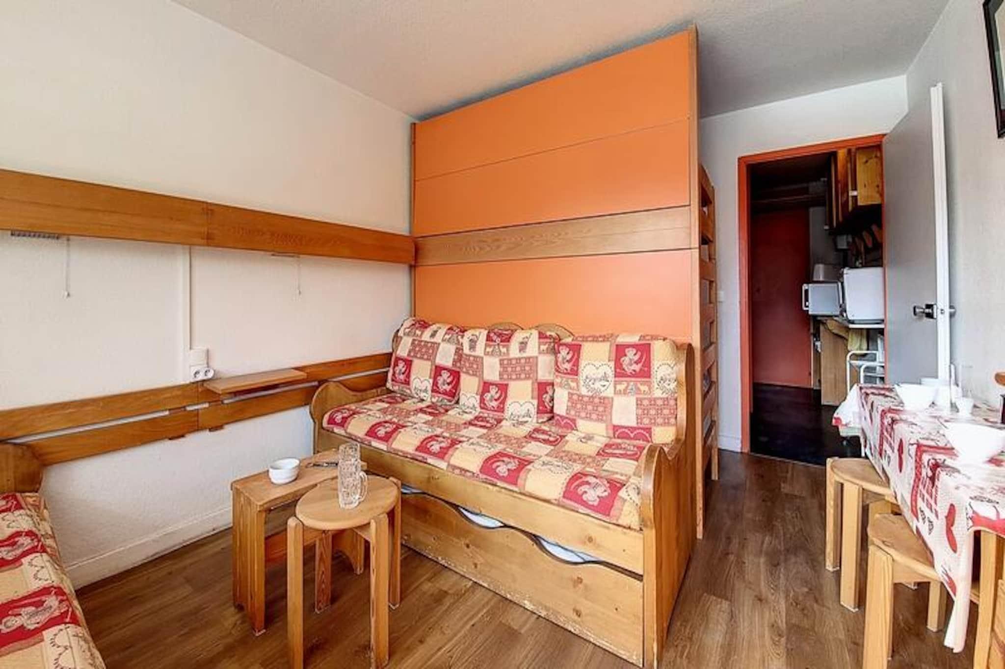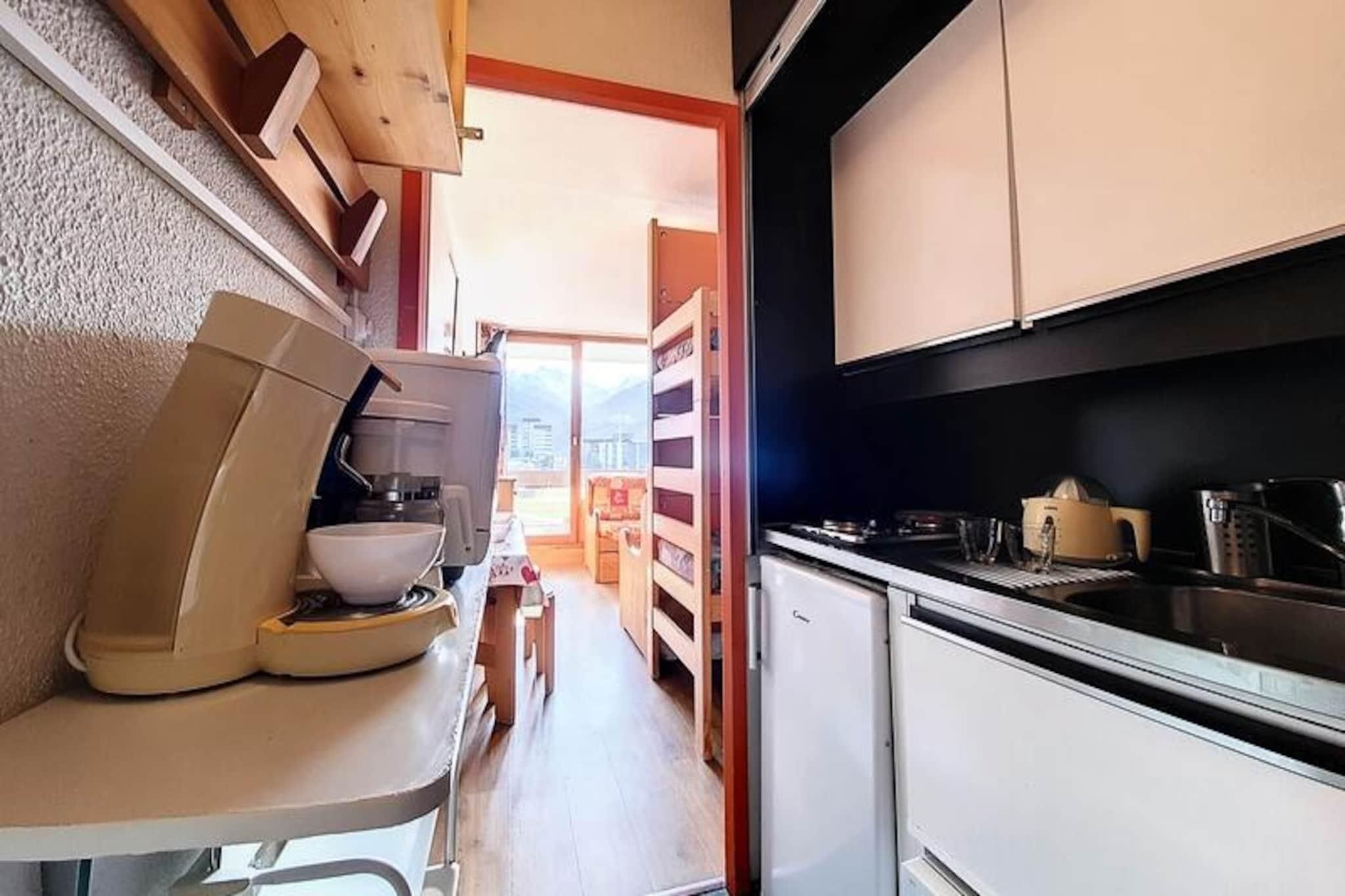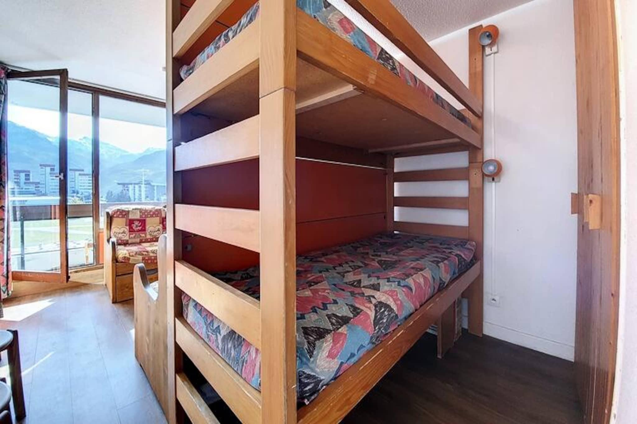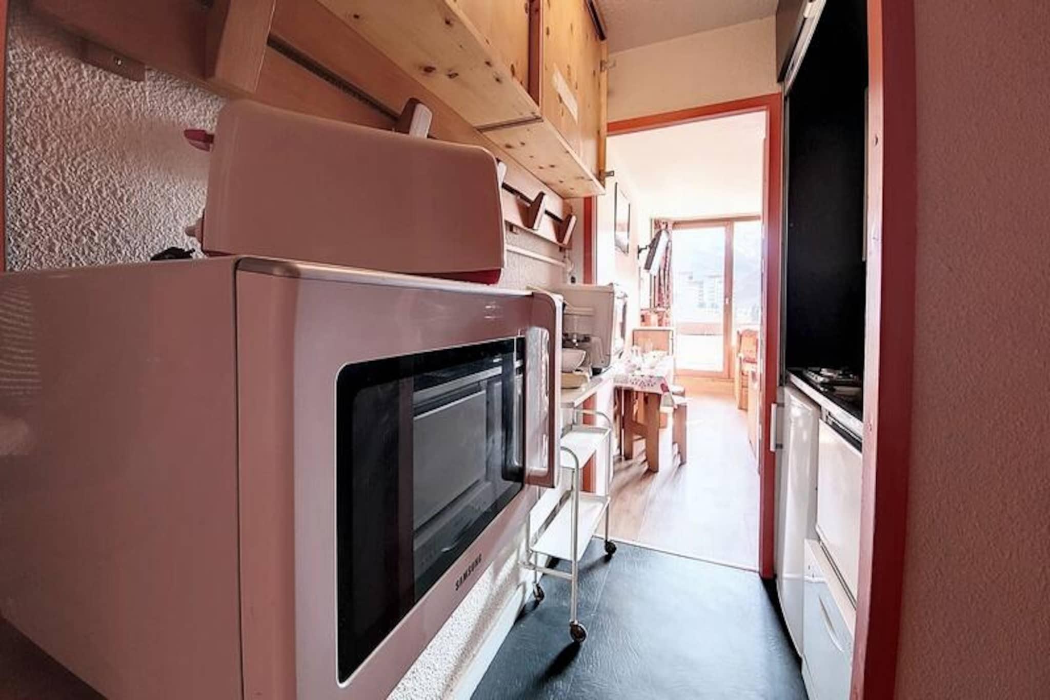Højt over det maleriske La Croisette-distrikt tilbyder denne hyggelige studiolejlighed i Chavière-residensen et varmt og indbydende tilflugtssted for din alpine ferie. Med direkte adgang til pisterne kan du træde ud af bygningen og ud på sneen, hvilket gør den til et perfekt valg for skientusiaster, der er ivrige efter at maksimere deres tid på bjerget. Den sydvendte balkon inviterer dig til at nyde solskinnet og beundre den fantastiske udsigt over de omkringliggende tinder, hvilket skaber en rolig kulisse for din ferie. Kompakt, men gennemtænkt designet, har denne 24 m² store studiolejlighed komfortabel plads til op til fire gæster. Opholdsstuen har to enkeltsenge og to enkeltsenge, hvilket gør den ideel til familier eller små grupper. Det fuldt udstyrede køkken inkluderer et kogeplade med 2 blus, køleskab, kombineret mikrobølgeovn/ovn, mini-opvaskemaskine, brødrister, elkedel og kaffemaskine, så du kan tilberede solide måltider efter en dag på pisterne. Lejligheden har også et badeværelse med badekar, et separat toilet og moderne bekvemmeligheder såsom tv og betalt Wi-Fi (afhængigt af netværksdækning). Bemærk venligst, at køjesengen ikke er egnet til børn under seks år. Bekvemmelighed er nøgleordet på Chavière, med en shoppingarkade direkte tilgængelig fra bygningens kælder og en daginstitution kun 300 meter væk. Gratis udendørs parkering er tilgængelig for foden af ??bygningen (afhængigt af tilgængelighed), hvilket sikrer en problemfri ankomst og afrejse. Uanset om du er her for spændingen ved skiløb eller roen i bjergene, er dette charmerende studie den perfekte base for dine eventyr i de franske alper.