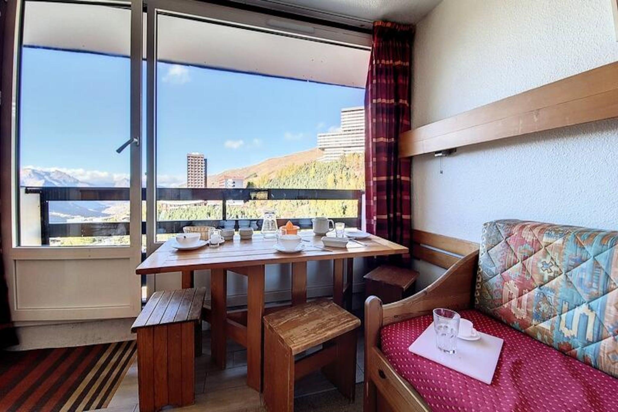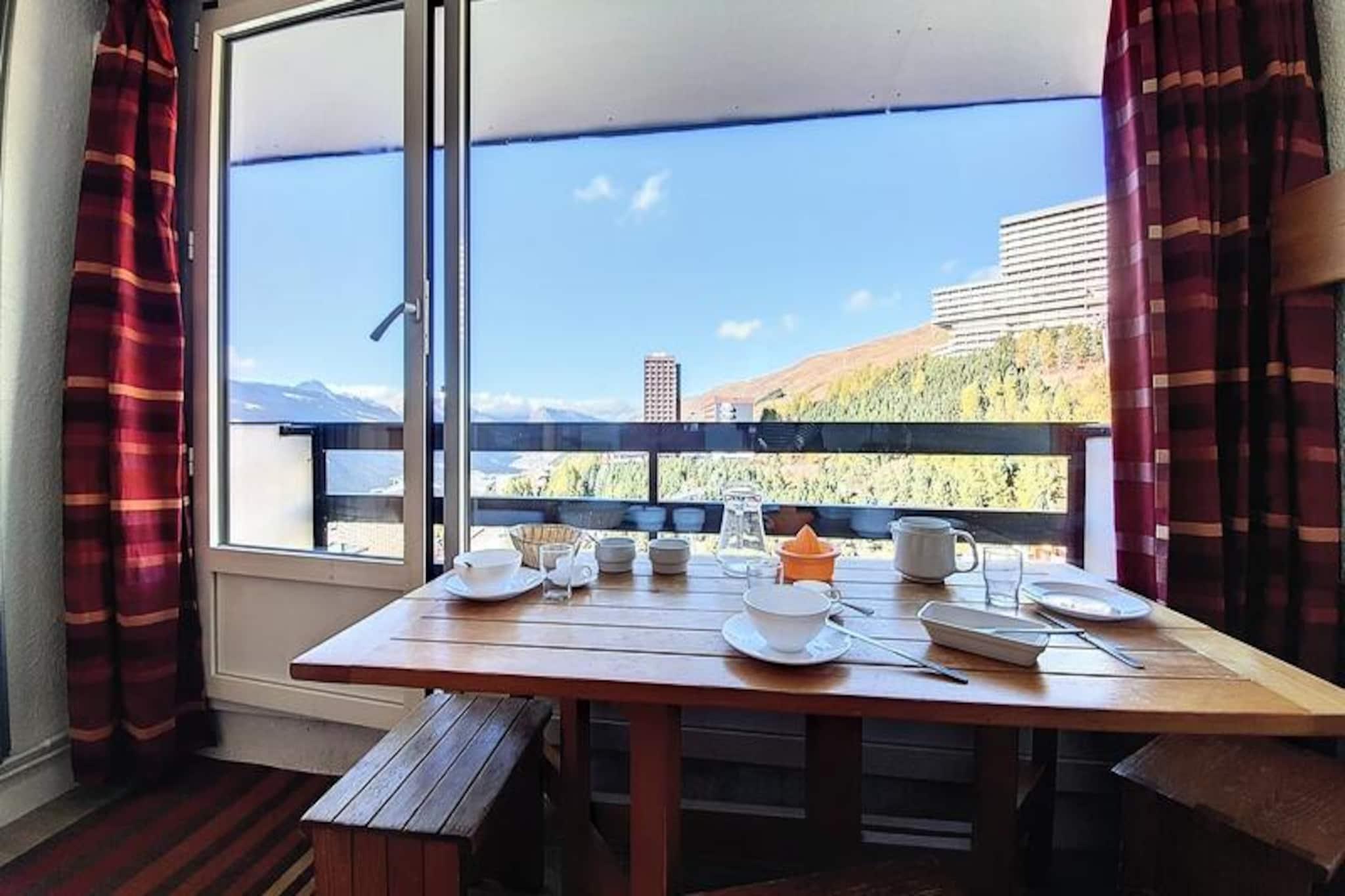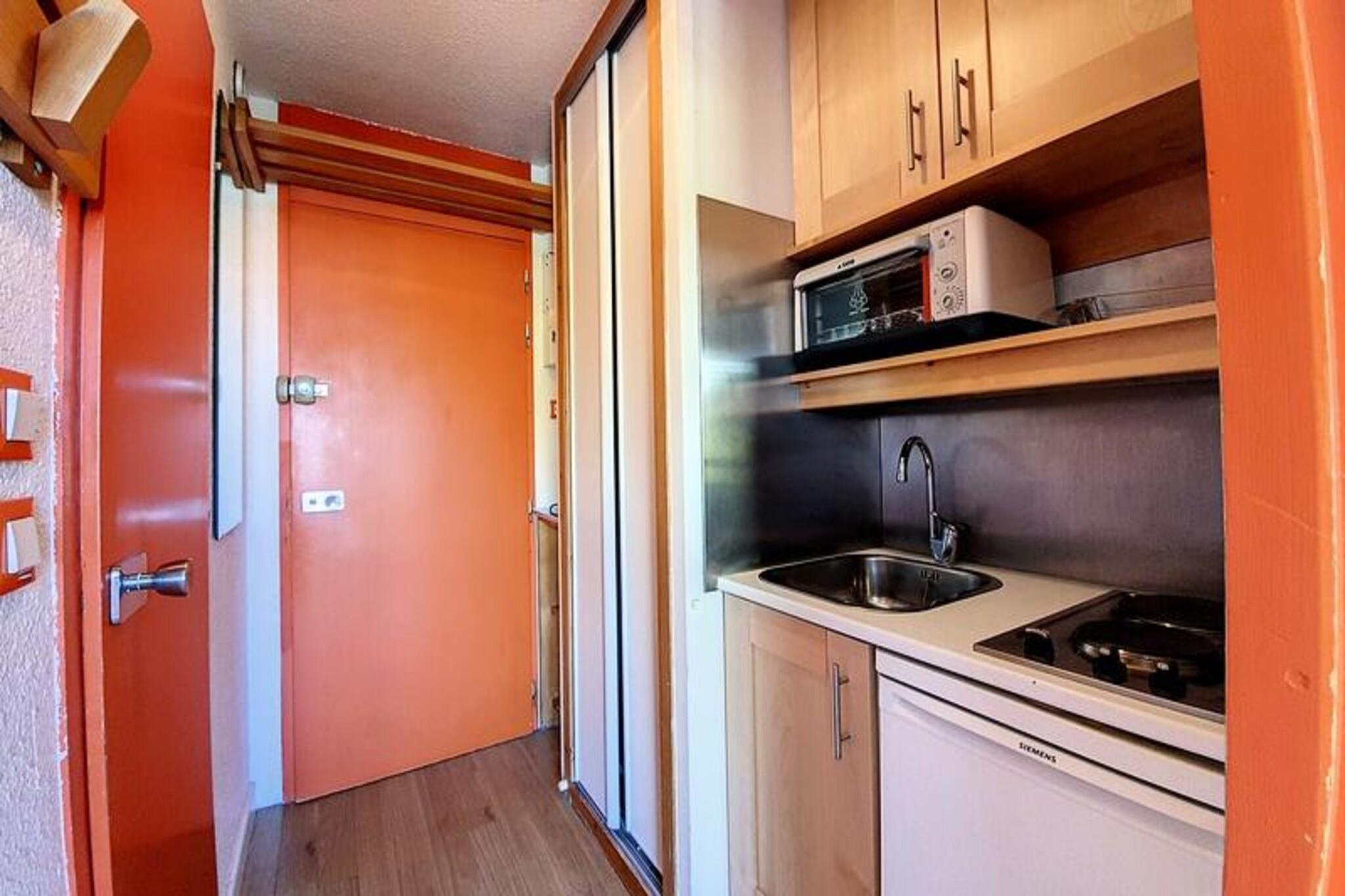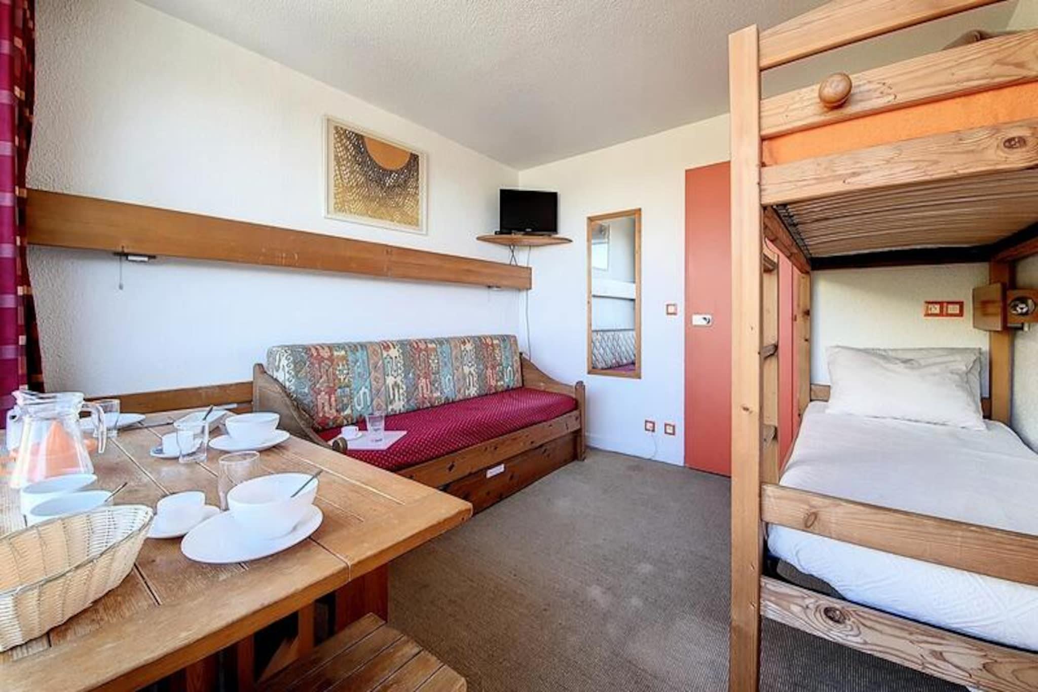 Højt over det travle La Croisette-distrikt tilbyder denne hyggelige studiolejlighed et charmerende alpint tilflugtssted for tre gæster. Fra sin placering på 8. sal, der er tilgængelig med elevator, kan du nyde en betagende udsigt over de snedækkede tinder og den livlige atmosfære nedenfor. Den nordvendte balkon giver et fredeligt sted at nippe til din morgenkaffe, mens du indånder den friske bjergluft og sætter tonen for en dag med eventyr i hjertet af de franske alper. Uanset om du søger spændende skiløjper eller rolige øjeblikke omgivet af natur, placerer denne bolig dig lige i centrum af det hele. \n\nIndenfor er det 17 m² store studio omhyggeligt designet til at maksimere komfort og funktionalitet. Opholdsstuen har en enkeltseng, en enkelt sovesofa og en udtræksseng, der sikrer afslappende nætter efter aktive dage. Et kompakt køkken udstyret med et kogeplade med to blus, køleskab, miniovn og kaffemaskine giver dig mulighed for nemt at tilberede enkle måltider. De tæppebelagte gulve og varme tæpper tilføjer et strejf af hygge, mens fjernsynet tilbyder underholdning til rolige aftener indendørs. Badeværelset har badekar og toilet, der tilbyder alt det nødvendige for et behageligt ophold. \n\nTræd udenfor, og du finder direkte adgang til pisterne, hvilket gør denne lejlighed til en drøm for skientusiaster. Bygningens kælder er forbundet med en shoppingarkade, der tilbyder bekvemmelighed lige ved hånden. Gratis udendørs parkering er tilgængelig for foden af ??bygningen, afhængigt af tilgængelighed, og børnehaven ligger kun en kort 300 meter gåtur væk. Betaling for Wi-Fi sikrer, at du kan holde forbindelsen under dit ophold, selvom dækningen kan variere. \n\nUanset om du er her for at grave dig gennem frisk puddersne eller blot nyde den alpine charme, er denne studiolejlighed en ideel base for en uforglemmelig bjergferie. Dens førsteklasses beliggenhed og gennemtænkte faciliteter gør den til et perfekt valg for par eller små grupper, der søger en hyggelig og bekvem flugt i de franske alper.