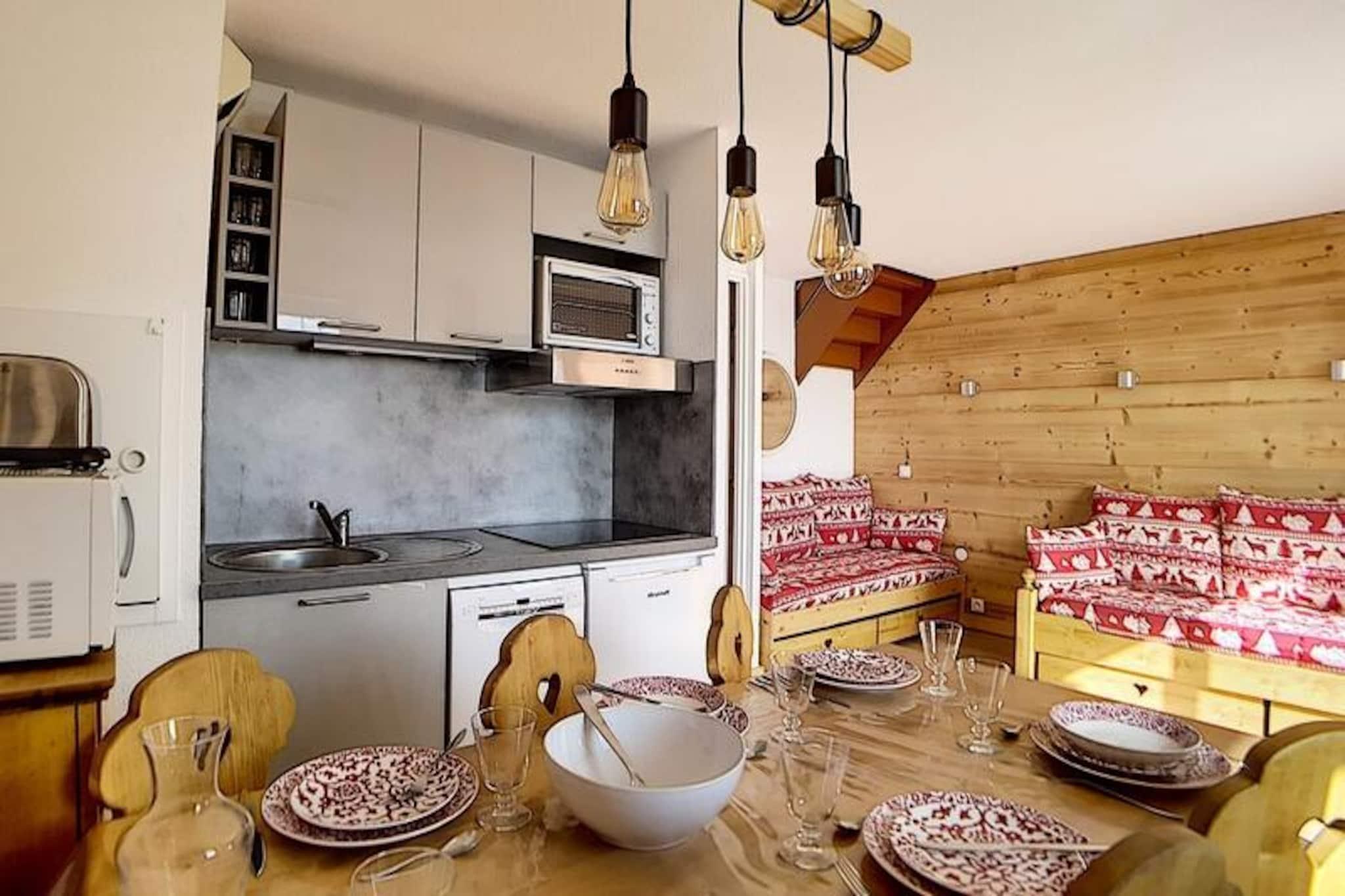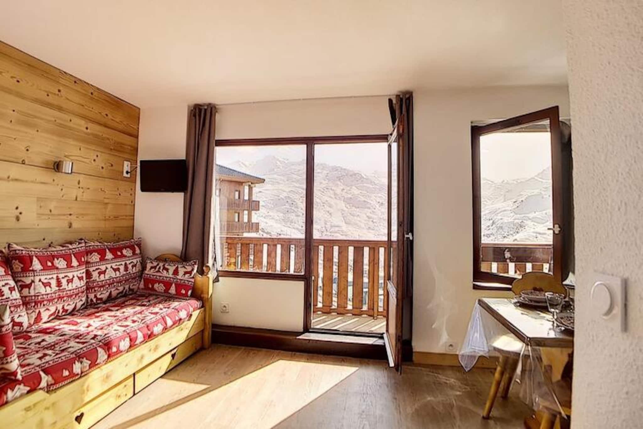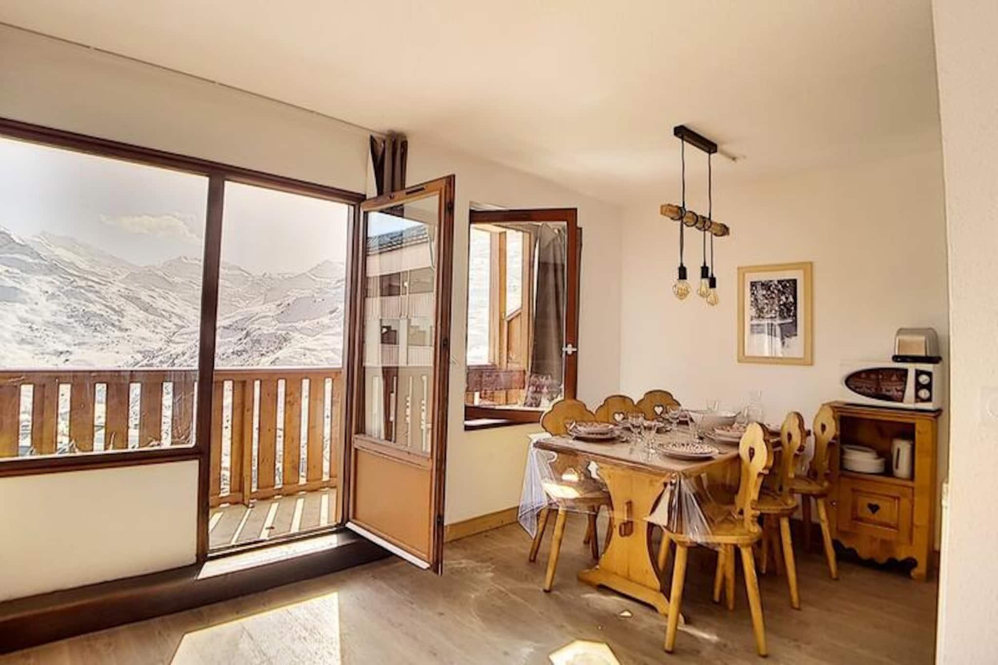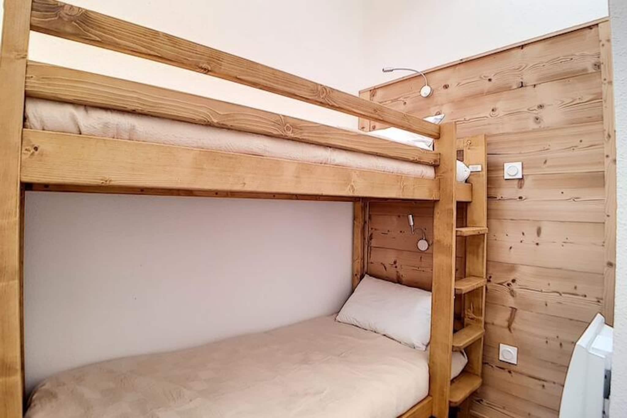 Højt over de travle pister i Reberty 2000 tilbyder denne charmerende duplexlejlighed et roligt alpint tilflugtssted med direkte adgang til skipisterne. Forestil dig morgener fyldt med sollys, der strømmer ind gennem den sydvendte balkon, panoramaudsigt over snedækkede tinder og bekvemmeligheden ved at træde direkte ud på pisterne fra din dørtrin. Uanset om du er her for spændende skieventyr eller rolige bjergture, lover denne bolig et uforglemmeligt ophold. \n\nLejligheden strækker sig over 37 m² fordelt på to etager og har komfortabel plads til op til seks gæster. På første sal har den hyggelige stue franske døre, der fører ud til balkonen, hvor en betagende udsigt venter. To enkeltsenge tilbyder ekstra sovemuligheder, mens køkkenet er fuldt udstyret med moderne apparater, herunder køleskab, almindelig ovn, mikrobølgeovn og opvaskemaskine, der sikrer, at alle dine kulinariske behov bliver opfyldt. Ovenpå finder du et soveværelse med dobbeltseng og et vindue og et andet soveværelse med to køjesenge, perfekt til familier eller små grupper. Badeværelset har bruser, og der er et separat toilet for ekstra bekvemmelighed. Bemærk venligst, at den øverste køjeseng ikke er egnet til børn under seks år.\n\nBeliggende kun 50 meter fra lokale butikker, er alt hvad du behøver inden for rækkevidde. Der er betalt Wi-Fi, og lejligheden er udstyret med tæpper for at sikre et varmt og behageligt ophold. Som en ikke-ryger ejendom uden kæledyr tilbyder den et rent og fredeligt miljø til din ferie.\n\nUanset om du nyder den friske bjergluft på din balkon eller udforsker de nærliggende pister, er denne lejlighed med 3 Gold Snowflakes-vurderinger den perfekte base for dine alpine eventyr. Reberty 2000 inviterer dig til at opleve magien i de franske alper, hvor hvert øjeblik er gennemsyret af naturlig skønhed og spænding.