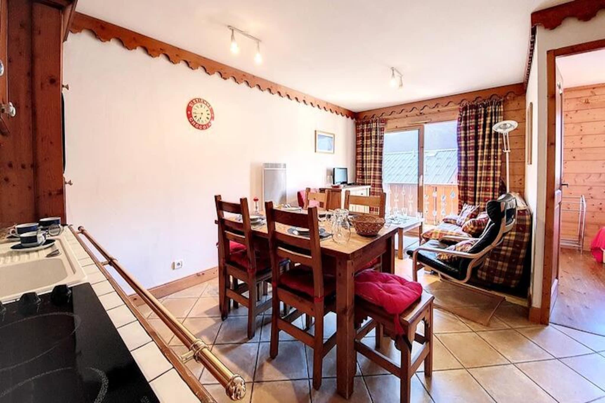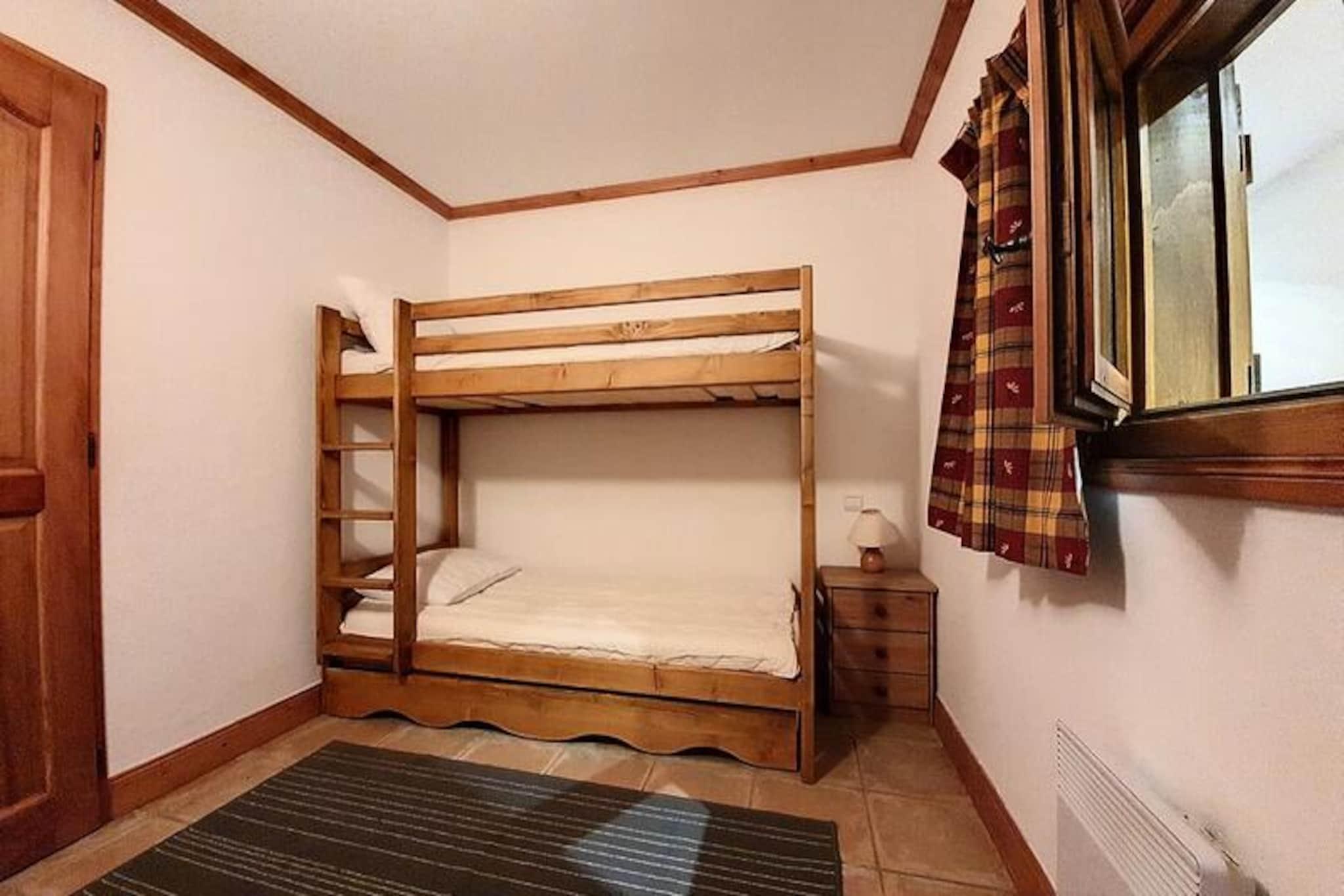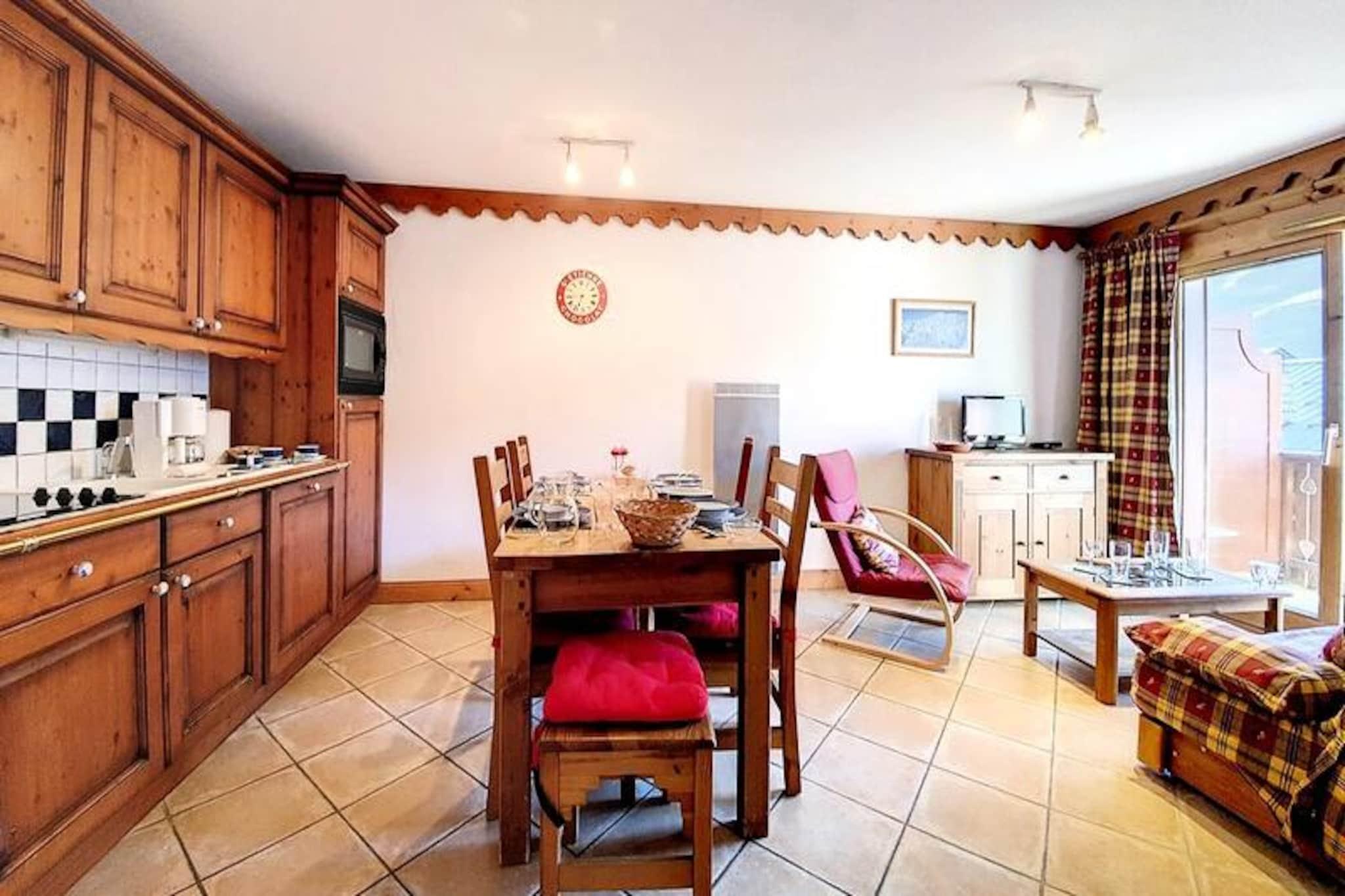 I det charmerende Preyerand-distrikt i Les Menuires tilbyder denne dejlige chaletlejlighed et hyggeligt alpint tilflugtssted med direkte adgang til pisterne, kun 20 meter fra din dør. Forestil dig at træde udenfor og glide ud på skipoulevarden, klar til at udforske det verdensberømte skiområde Les Trois Vallées. Med en vestvendt balkon kan du nyde en fantastisk udsigt over solnedgangen over de snedækkede tinder, hvilket skaber den perfekte kulisse for din bjergferie. Ejendommen tilbyder også bekvem parkering ved foden af ??bygningen og en gratis shuttlebus for nem adgang til feriestedets centrum. Et supermarked ligger kun en kort gåtur på 200 meter væk, hvilket sikrer, at alle fornødenheder er inden for rækkevidde. \n\nDenne lejlighed på 42 m² er designet til at rumme op til seks gæster og kombinerer komfort og praktisk anvendelighed. Stuen har en sovesofa til to, mens de to soveværelser tilbyder fleksible sovemuligheder, herunder enkeltsenge, der kan sættes sammen, og køjesenge med en ekstra udtræksmulighed. Det fuldt udstyrede køkken har keramisk kogeplade, kombineret mikrobølgeovn/ovn, køleskab, opvaskemaskine og elektrisk kaffemaskine, hvilket gør det nemt at tilberede solide måltider efter en dag på pisterne. Moderne bekvemmeligheder som et fjernsyn med dvd-afspiller, en vaskemaskine og et flisebelagt gulv bidrager til bekvemmeligheden, mens badeværelset med badekar giver en afslappende afslutning på dine aktive dage. \n\nVinterophold gøres endnu mere behagelige med inkluderet sengelinned og badehåndklæder, hvilket sikrer en problemfri oplevelse. For dem, der søger ekstra bekvemmelighed, kan der lejes en overdækket parkeringsplads i nærheden. Ejendommens nærhed til pisterne og de vigtigste faciliteter gør det til et ideelt valg for både skientusiaster og familier. Uanset om du er her for at grave dig gennem frisk puddersne eller blot nyde den rolige alpine atmosfære, tilbyder denne lejlighed den perfekte base for uforglemmelige minder i Les Menuires.