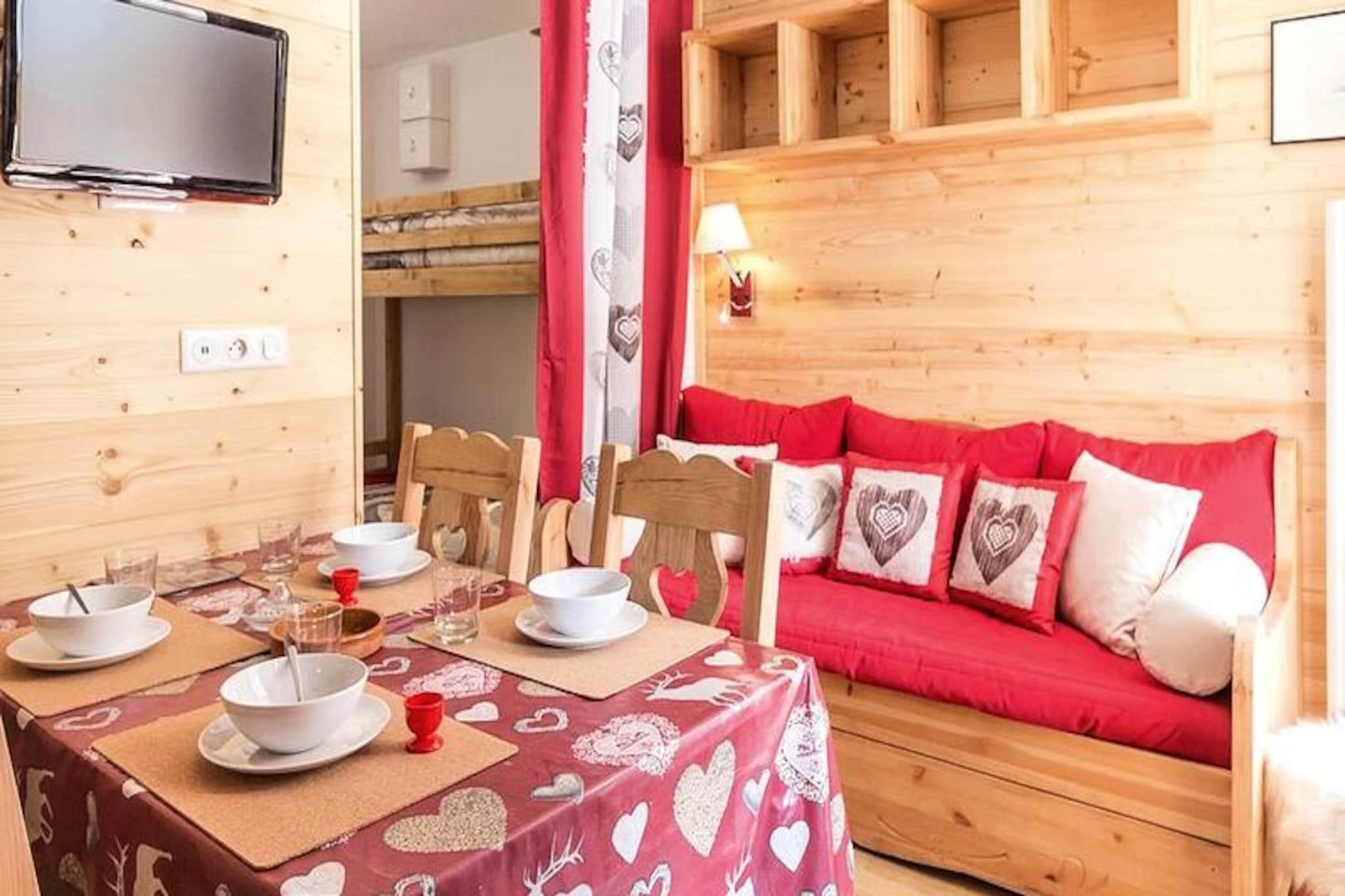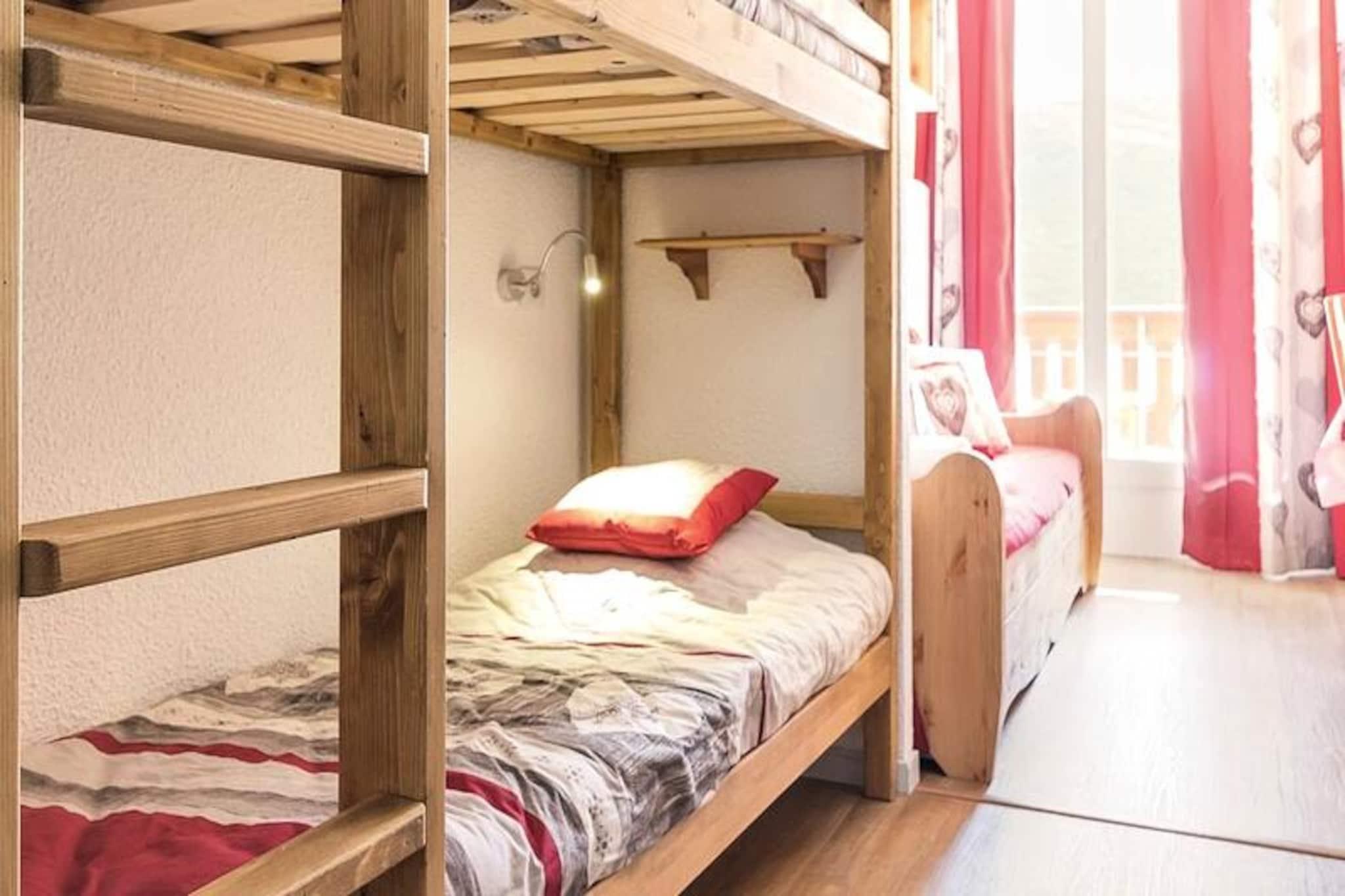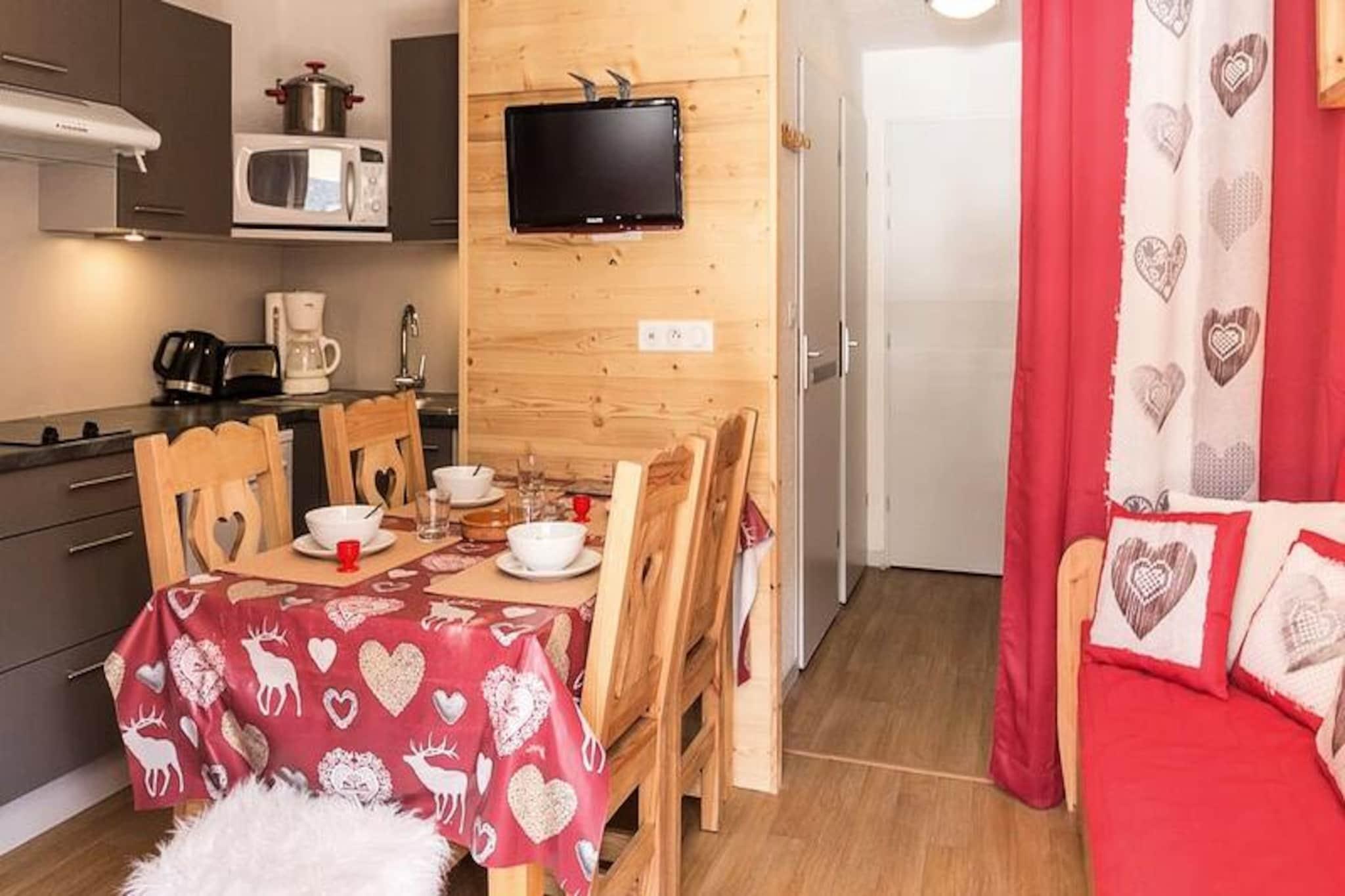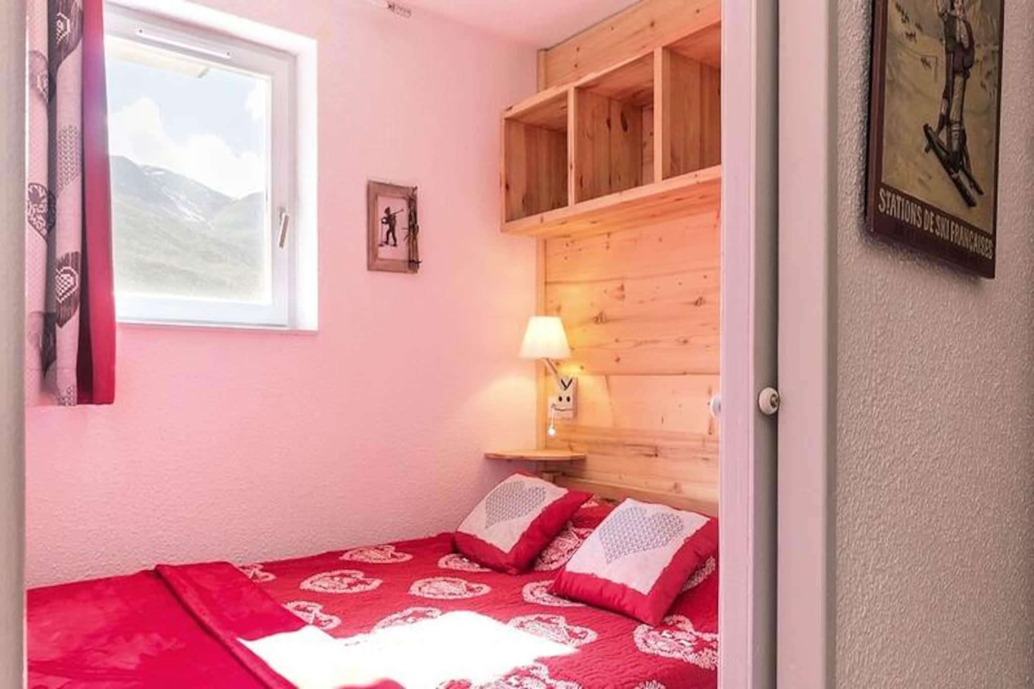 I hjertet af det pulserende Bruyères-distrikt tilbyder denne hyggelige toværelseslejlighed en uovertruffen ski-in/ski-out-oplevelse, hvilket gør den til et perfekt tilflugtssted for vintersportsentusiaster. Forestil dig at træde ud af din bolig og direkte ud på pisterne med det majestætiske alpine landskab omgivet af dig. Den sydvestvendte balkon inviterer dig til at nyde eftermiddagssolen, mens du nyder den betagende udsigt over bjergene og skaber en rolig tilflugtssted efter en dag med eventyr. \n\nLejligheden er designet til at rumme op til fire gæster og har en funktionel indretning med en sovealkove udstyret med køjesenge og et separat soveværelse med en komfortabel dobbeltseng, der sikrer afslappende nætter for alle. Stuen, komplet med en sovesofa og tv, tilbyder et indbydende rum at slappe af, mens det fuldt udstyrede køkken med moderne apparater såsom keramisk kogeplade, opvaskemaskine og mikrobølgeovn gør det nemt at tilberede solide måltider. Badeværelset har et badekar og håndklædetørrer for ekstra komfort, og det separate toilet tilføjer bekvemmelighed. \n\nBruyères-distriktet er et livligt knudepunkt med alt hvad du behøver lige ved hånden. Fra restauranter og butikker til et vandland, wellnesscenter, biograf og skiskole er der noget for enhver smag. Familier vil sætte pris på den nærliggende kælkebane og legeplads, mens der er masser af afterskiing-muligheder for dem, der søger afslapning eller underholdning. \n\nUanset om du er her for at klatre på pisterne eller blot nyde charmen ved de franske alper, tilbyder denne lejlighed den perfekte blanding af komfort, bekvemmelighed og alpin charme. Med sin førsteklasses beliggenhed og gennemtænkte faciliteter lover den en uforglemmelig bjergferie.
