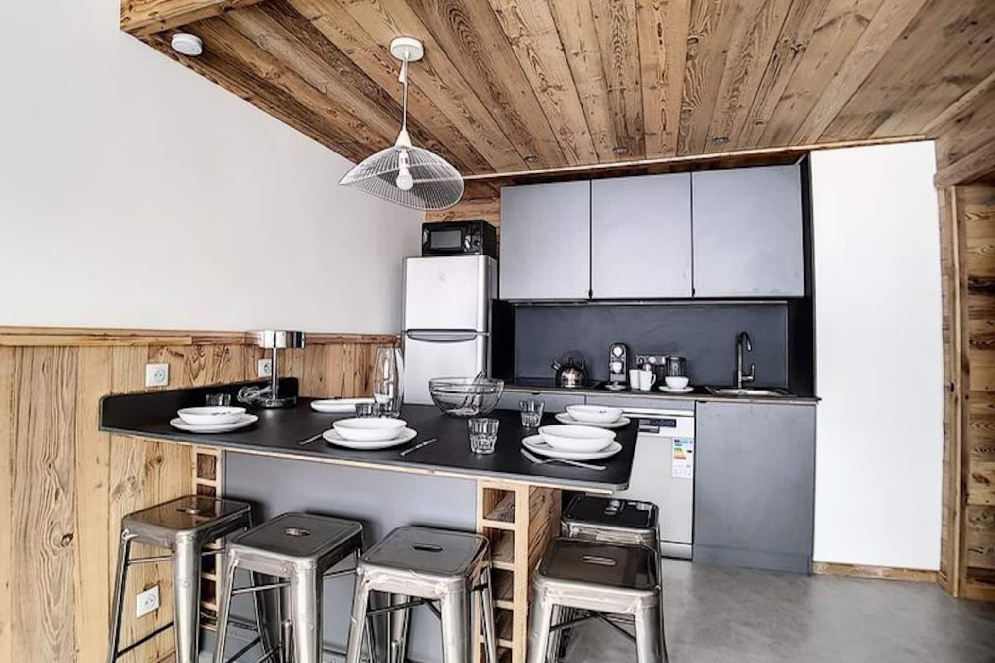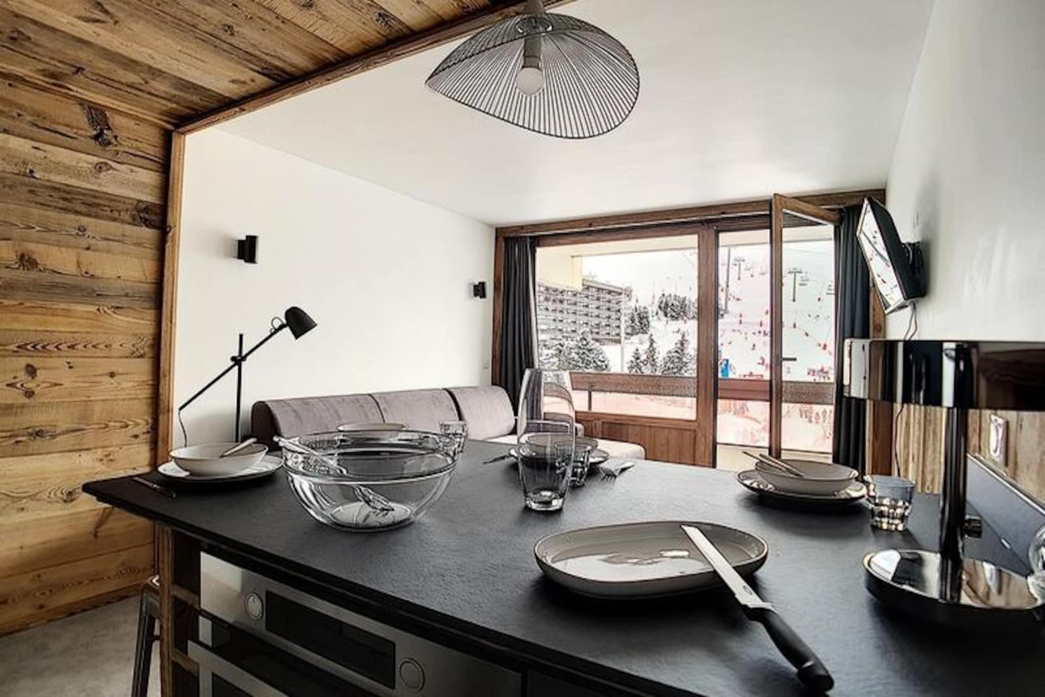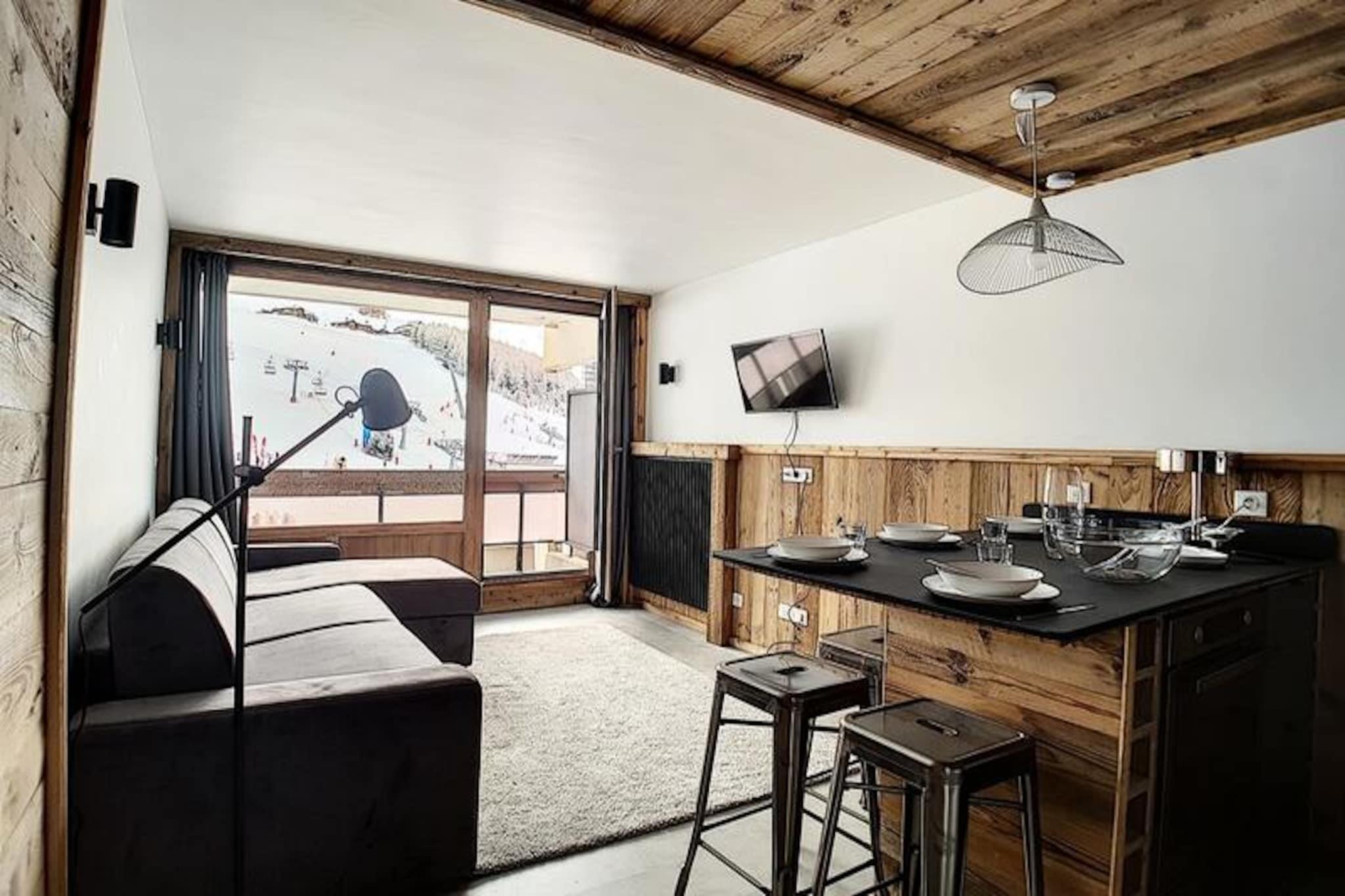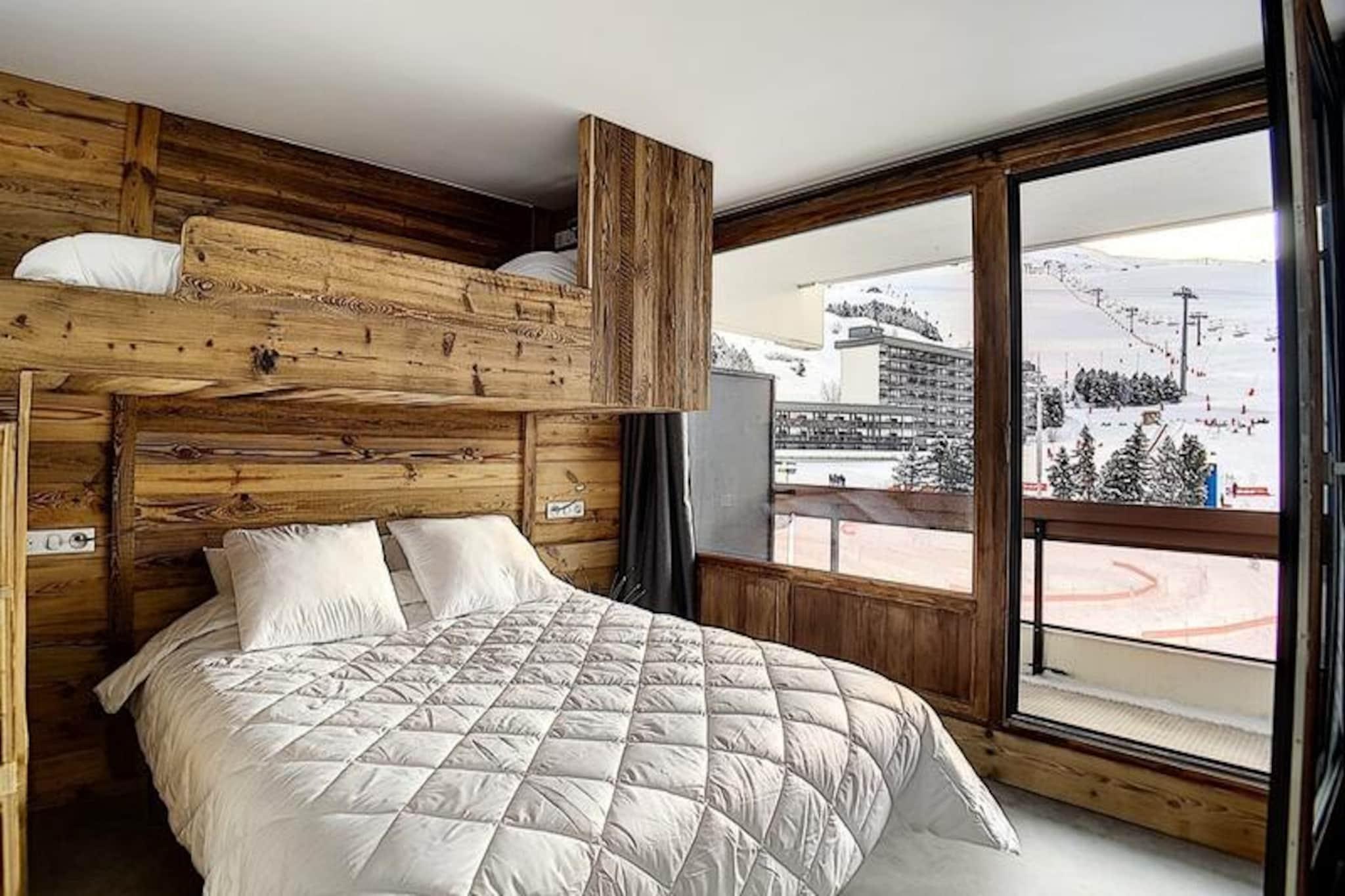 Højt over det travle Croisette-distrikt tilbyder denne indbydende lejlighed en perfekt blanding af bekvemmelighed og alpin charme. Forestil dig at vågne op til solen, der stråler gennem din sydvendte balkon, med pisterne kun få skridt fra skiboksen i kælderen. Uanset om du er her for vintereventyr eller sommerro, placerer denne ski-in/ski-out-bolig dig i hjertet af Les Menuires' pulserende bjergliv. Daginstitutionen ligger en kort gåtur på 300 meter, mens Croisette-indkøbscentret er direkte tilgængeligt i stueetagen, hvilket sikrer, at alt hvad du behøver er inden for rækkevidde. \n\nLejligheden er designet til op til fem gæster og har en hyggelig stue med en dobbelt sovesofa og et separat soveværelse med en dobbeltseng og køjeseng, hvilket gør den ideel til familier eller små grupper. Det fuldt udstyrede køkken inkluderer moderne apparater såsom ovn, mikrobølgeovn, opvaskemaskine og induktionskogeplader, perfekt til at tilberede solide måltider efter en dag på pisterne. Et tv i stuen, et badeværelse med badekar og et separat toilet bidrager til komforten og det praktiske ved dit ophold. Bemærk venligst, at lejligheden er røgfri, kæledyrsfri og er udstyret med dyner for ekstra varme. Der er betalt Wi-Fi, afhængigt af netværksdækning. \n\nTræd udenfor og fordyb dig i den livlige atmosfære i Les Menuires. ESF-skiskolen og skilifterne ligger kun få minutter væk, mens Croisette-indkøbscentret tilbyder en række spisesteder og butikker. Om sommeren forvandles området til et paradis for vandrere og cyklister med stier, der fører til betagende alpine udsigter. Uanset om du søger spændende skiløjper eller rolige bjergflugter, er denne lejlighed din port til uforglemmelige øjeblikke i de franske alper.