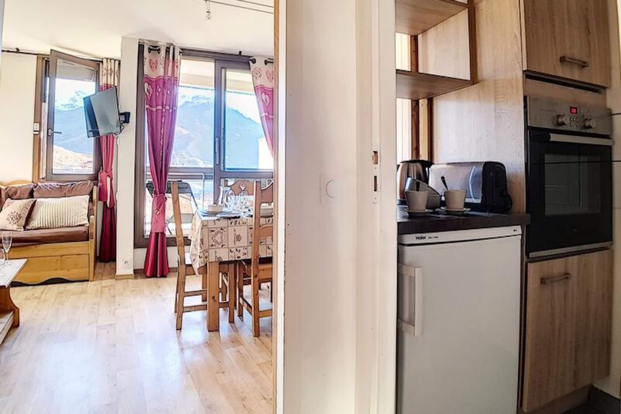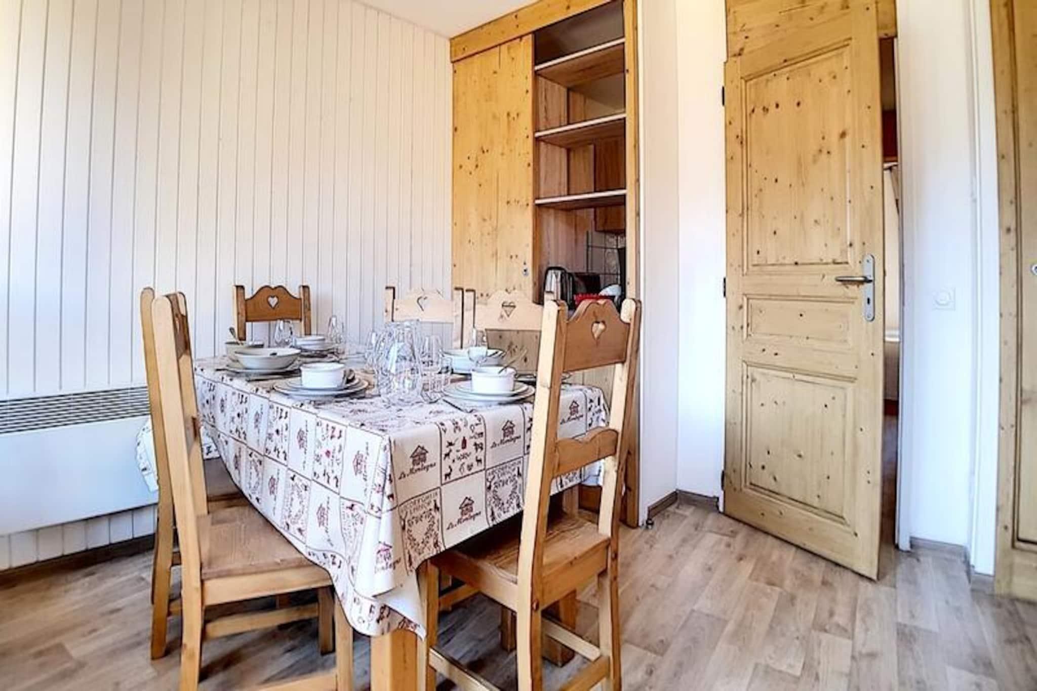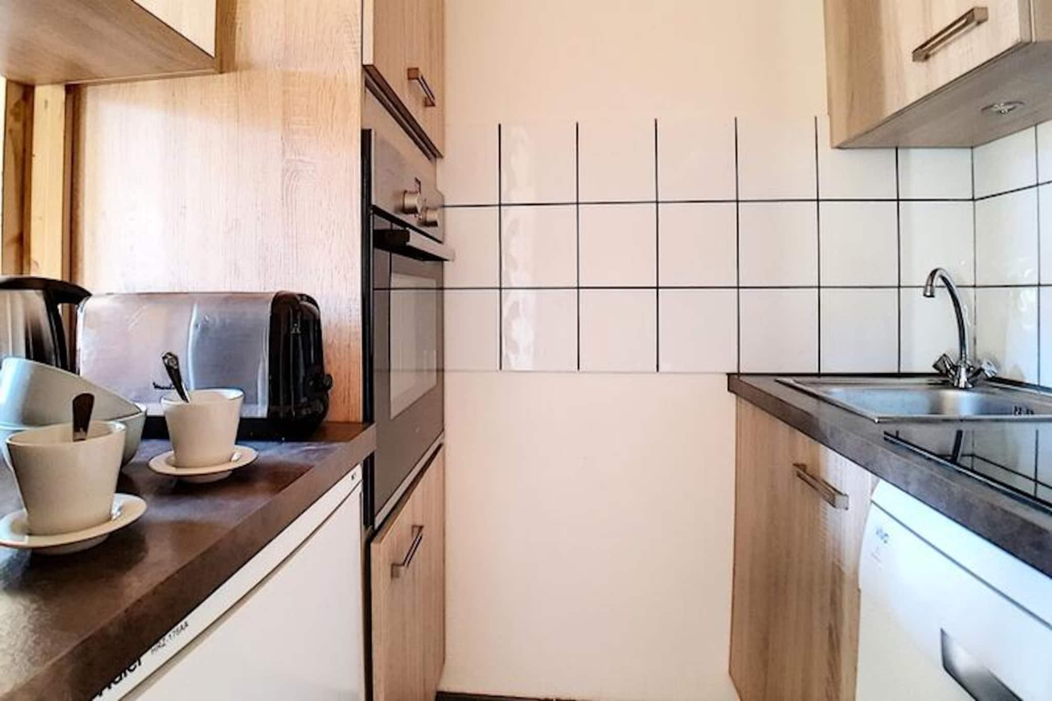 I hjertet af det maleriske Reberty 1850-distrikt tilbyder dette charmerende alpine tilflugtssted den perfekte blanding af bekvemmelighed og komfort til din bjergferie. Forestil dig at vågne op til den friske bjergluft og træde direkte ud på pisterne fra denne ski-in/ski-out-residens, hvor hver eneste detalje er designet til at forbedre din ferieoplevelse. Origanes-residensen er omgivet af de franske alpers fredfyldte skønhed, med små butikker og indbydende restauranter kun en kort gåtur væk, hvilket sikrer, at alt hvad du behøver er inden for rækkevidde. For ekstra bekvemmelighed forbinder gratis shuttlebusser dig til det pulserende centrum af La Croisette, mens Bruyères-distriktet er tilgængeligt via en offentlig elevator og gangbro. Denne smukt renoverede 2-værelses lejlighed er på 40 m² og har komfortabel plads til op til fem gæster. Den ligger i stueetagen og har en sydvendt balkon, der bader rummet i naturligt lys og tilbyder et hyggeligt sted at slappe af efter en dag på pisterne. Stuen er udstyret med to enkeltsofaer og en udtræksseng, mens det separate soveværelse har to enkeltsenge til en god nats søvn. Det fuldt udstyrede køkken inkluderer moderne apparater såsom keramisk kogeplade, ovn, mikrobølgeovn, opvaskemaskine og endda en raclettemaskine til autentiske alpine spiseoplevelser. Lejligheden kan også prale af et badeværelse med badekar, et separat toilet og gennemtænkte detaljer som laminatgulv og varmt tæppe i soveværelset. Gæsterne vil sætte pris på de ekstra fordele ved en overdækket parkeringsplads (#43 i Reberty 1850 parkeringskælder) og gratis Wi-Fi i lobbyen i nabobygningen. Selve boligen har en elevator og sikker digital adgang for ro i sindet. Uanset om du udforsker pisterne eller nyder de nærliggende faciliteter, lover denne ikke-ryger lejlighed med sin 4 Gold Snowflakes-vurdering et mindeværdigt ophold i hjertet af bjergene. Med sin uovertrufne beliggenhed, moderne komfort og nemme adgang til både pisterne og lokale attraktioner er denne lejlighed det ideelle valg for familier, par eller venner, der søger en problemfri alpin flugt. Lad magien fra Reberty 1850 og de franske alper skabe uforglemmelige minder til din næste ferie.