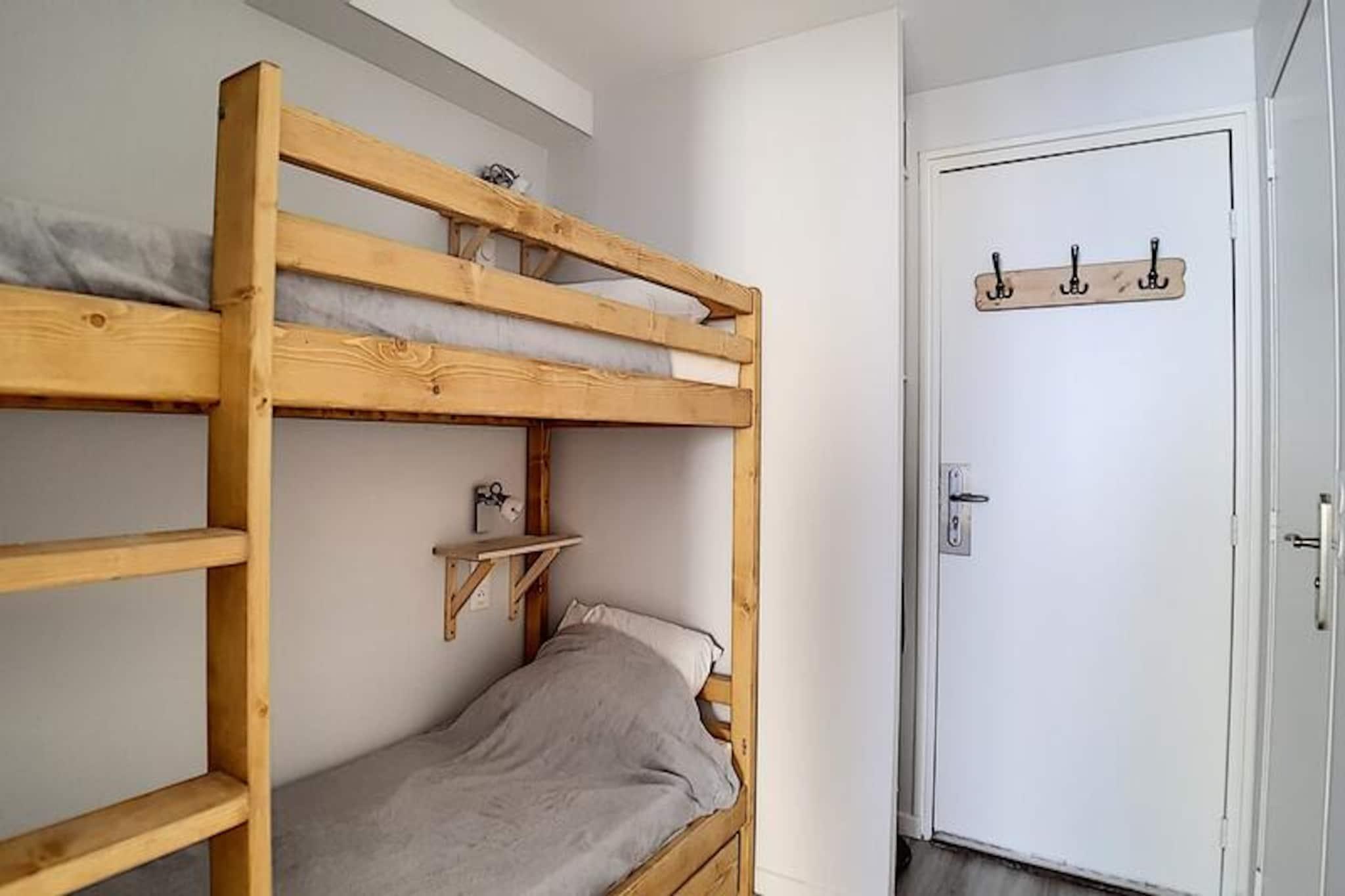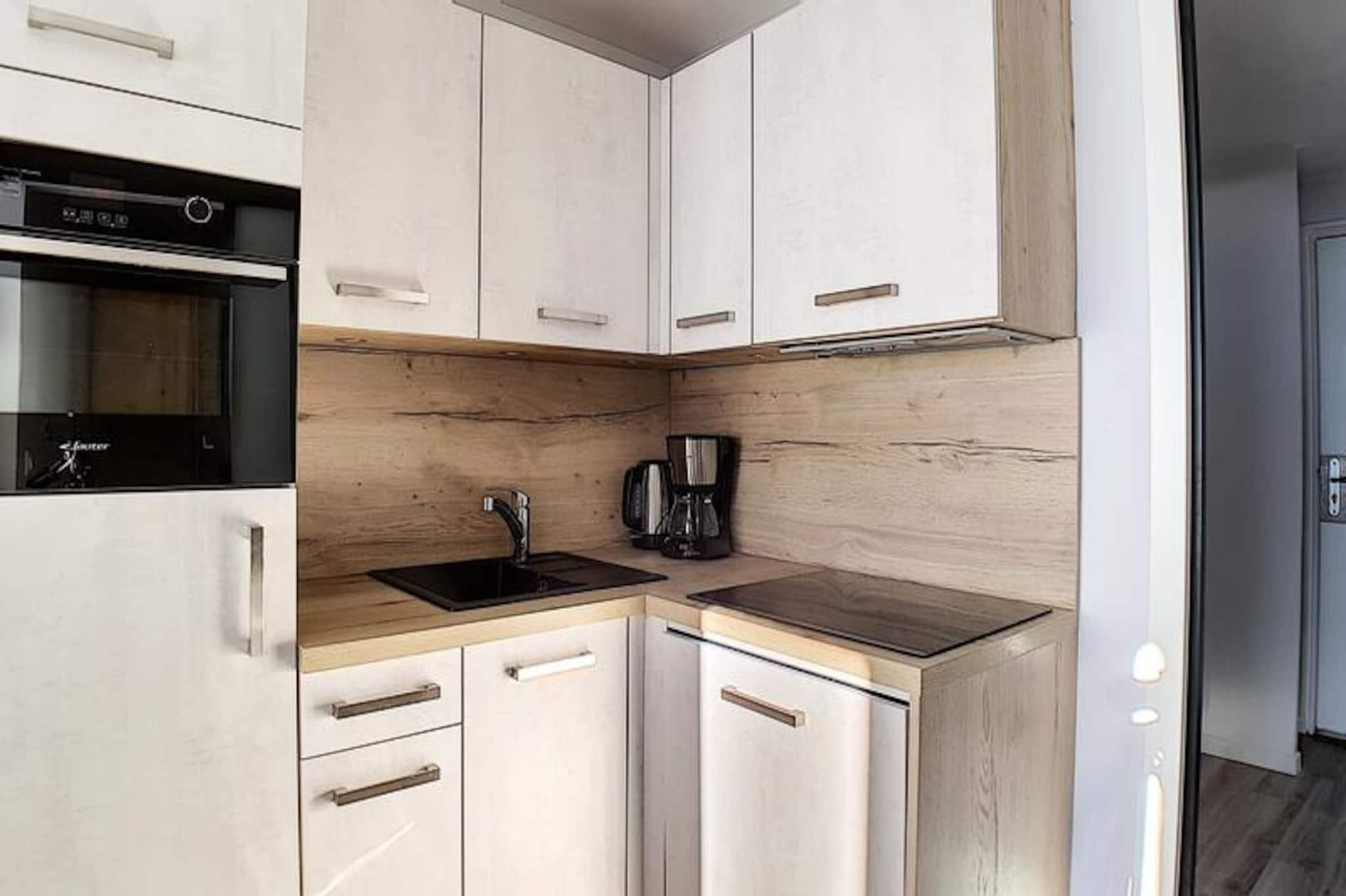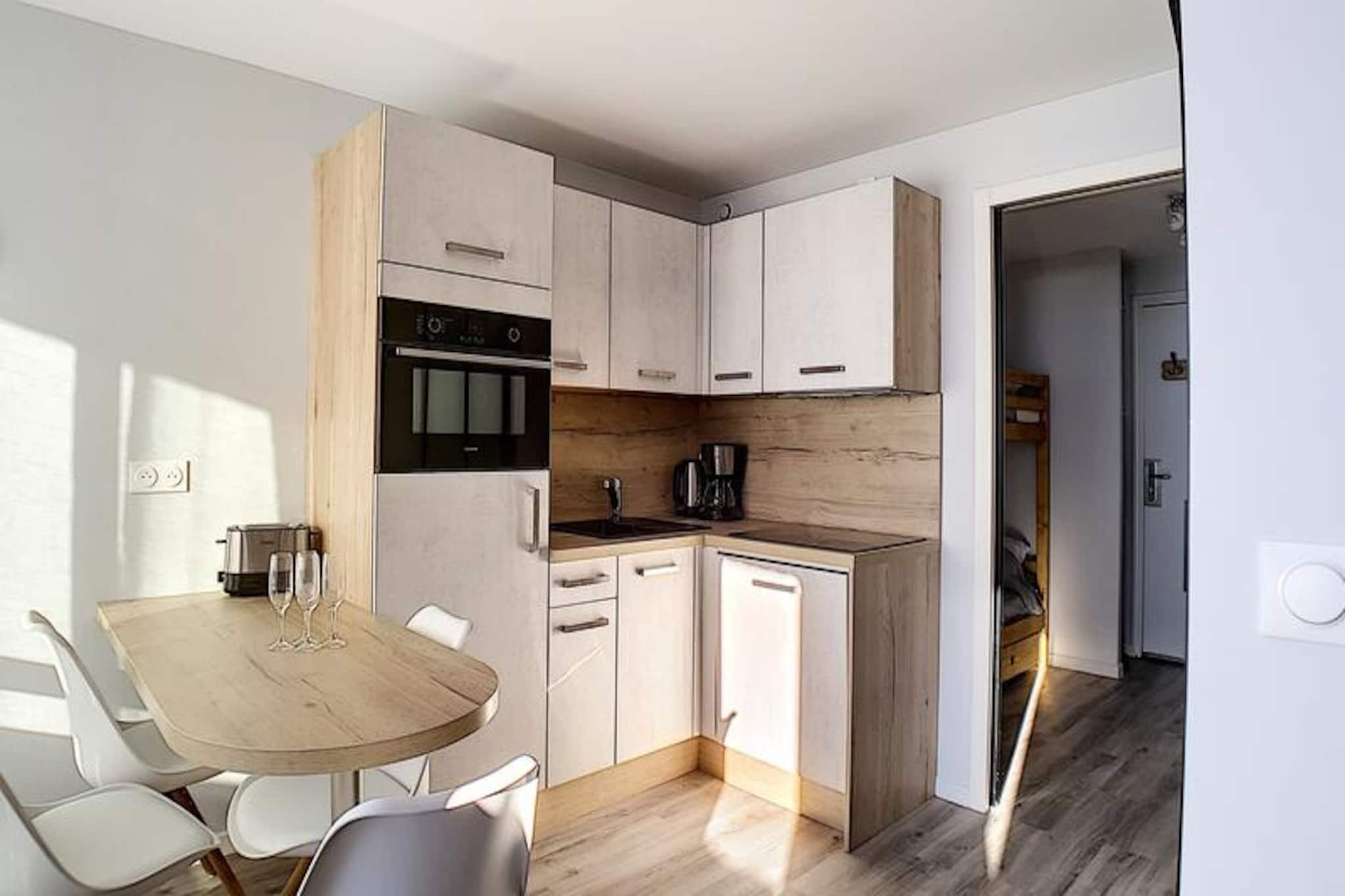Højt over de maleriske skråninger i Les Menuires tilbyder denne charmerende lejlighed i Coryles A-residensen et hyggeligt alpint tilflugtssted i det eftertragtede Reberty 1850-distrikt. Med sin vestvendte balkon kan du slappe af hver aften, mens du nyder de gyldne nuancer af den nedgående sol over de snedækkede tinder og skaber en rolig og magisk atmosfære til din bjergferie. Uanset om du er her for spændingen ved skiløb eller roen i Alperne, er denne ejendom din perfekte base. Lejligheden er designet til komfort og praktisk anvendelighed og er på 28 m² og har plads til op til fire gæster. Stuen har en komfortabel sofa og tv, perfekt til afslapning efter en dag på pisterne. En sovealkove med køjesenge og et separat soveværelse med en dobbeltseng sikrer afslappende nætter for alle. Det fuldt udstyrede køkken inkluderer et induktionskogeplade med 3 blus, køleskab, kombineret mikrobølgeovn/ovn, opvaskemaskine og essentielle apparater som kaffemaskine og brødrister, hvilket gør det nemt at tilberede måltider. Lejligheden kan også prale af et moderne badeværelse med bruser og et separat toilet, alt sammen suppleret af laminatgulv for en varm og indbydende atmosfære. Der er gratis Wi-Fi, og der er dyner for ekstra komfort. Beliggenheden er uovertruffen med skiløjper, restauranter og butikker kun få skridt væk. Gratis shuttlebusser forbinder dig bekvemt til det livlige Croisette-område, mens Bruyères-distriktet er tilgængeligt via en offentlig elevator og gangbro. Selve boligen er udstyret med en elevator og et sikkert adgangssystem, hvilket sikrer et problemfrit ophold. For ekstra bekvemmelighed er der også gratis Wi-Fi i lobbyen i den nærliggende Soldanelles B-bygning. Uanset om du er en familie, et par eller en lille gruppe venner, tilbyder denne lejlighed den perfekte blanding af komfort, bekvemmelighed og et fantastisk alpint landskab. Oplev magien i de franske alper og skab uforglemmelige minder i dette hyggelige bjergparadis.