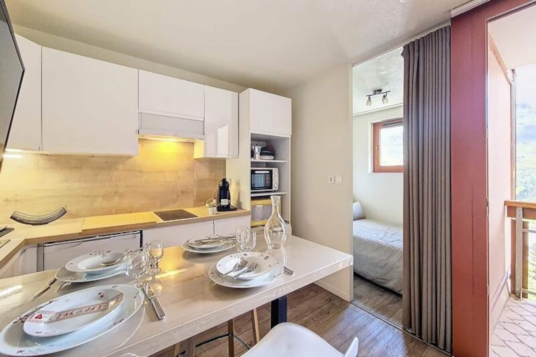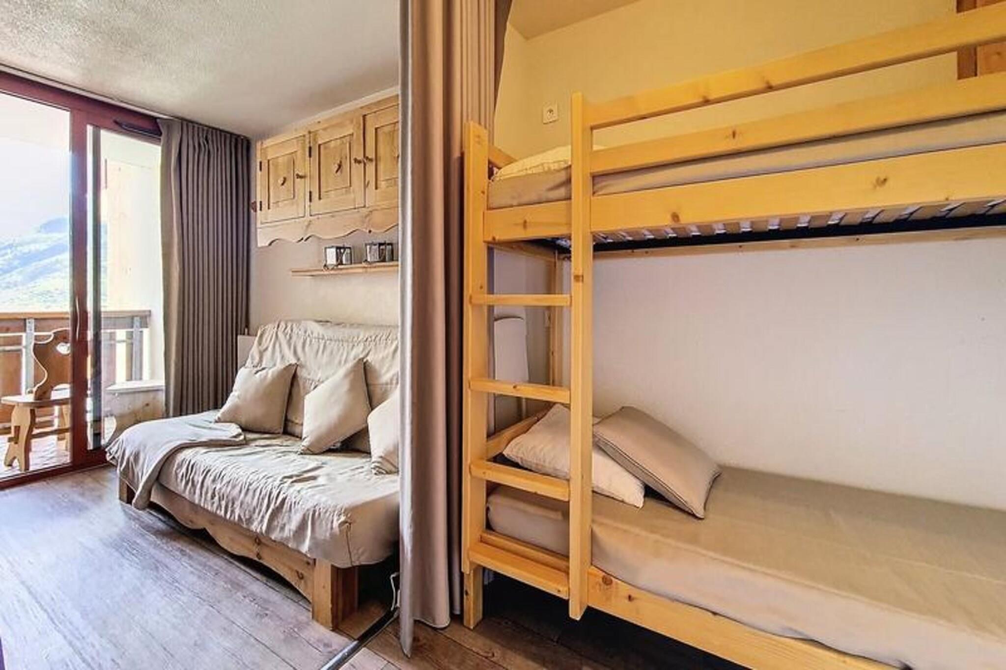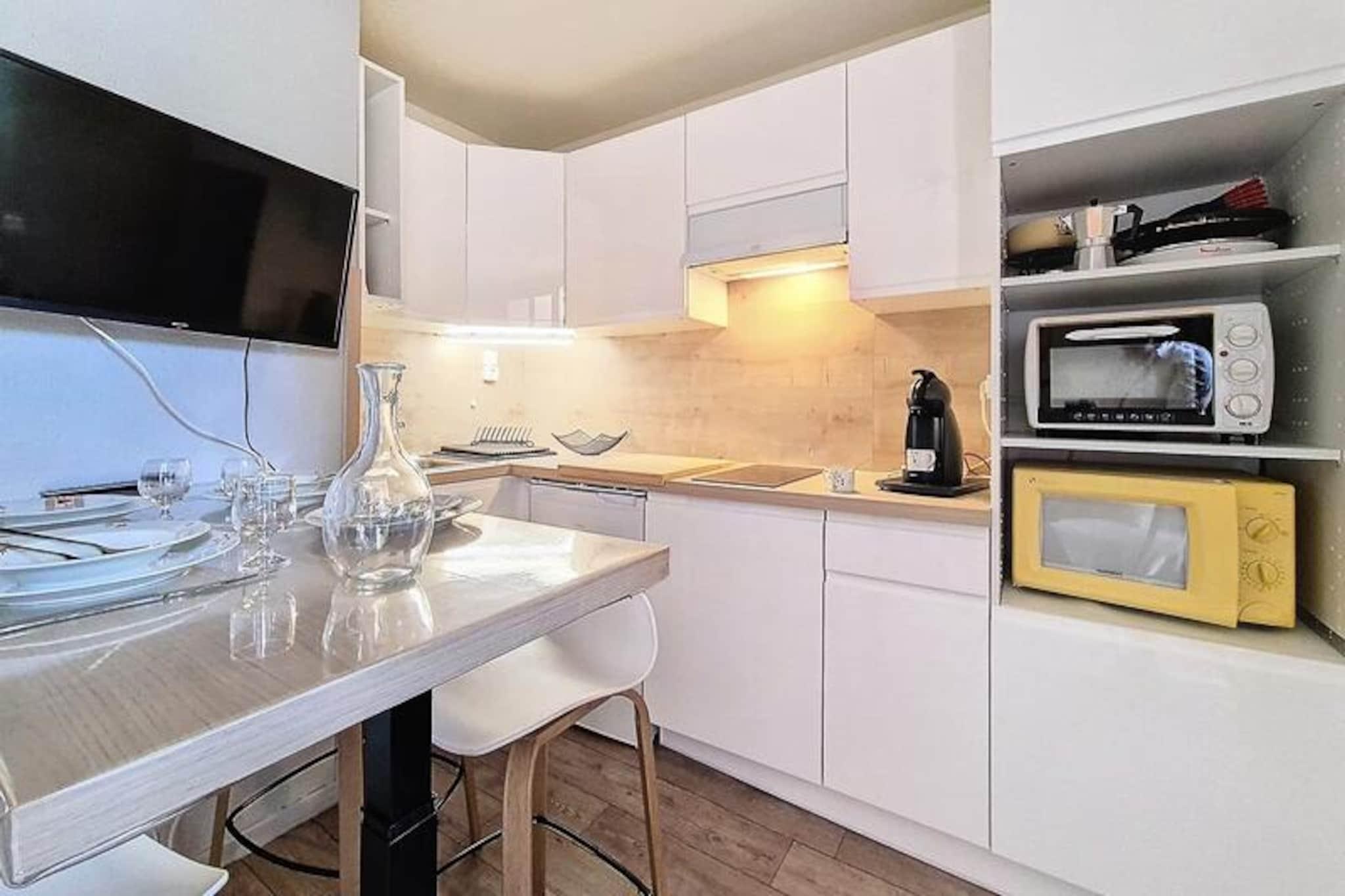 Højt over det travle Bruyères-distrikt inviterer denne charmerende studiolejlighed dig til at opleve magien i de franske alper fra hyggelige og bekvemme omgivelser. Med sin sydvendte balkon på 7. sal vågner du op til panoramaudsigt over snedækkede skråninger og alpine landskaber, klar til at begive dig ud på en dag fyldt med eventyr og afslapning. Uanset om du er her for at stå på ski, udforske eller blot slappe af, tilbyder denne bolig en perfekt blanding af komfort og tilgængelighed. \n\nIndvendigt er lejligheden omhyggeligt designet til at maksimere plads og funktionalitet. Stuen har et tv og en dvd-afspiller, hvilket skaber et indbydende sted at slappe af efter en dag udendørs. Et lille soveværelse med et vindue, adskilt af et gardin, tilbyder et hyggeligt tilflugtssted med en dobbeltseng, mens entréområdet har to enkeltsenge, der er ideelle til familier eller små grupper. Køkkenet er fuldt udstyret med alt hvad du behøver, inklusive elektriske kogeplader, køleskab, mikrobølgeovn, mini-opvaskemaskine og mere, hvilket gør det nemt at tilberede måltider og snacks. Linoleumsgulv overalt tilføjer et praktisk touch, og badeværelset med badekar sikrer en beroligende afslutning på dine alpine eventyr. \n\nTræd udenfor, og du vil befinder dig i hjertet af Bruyères, et distrikt fyldt med faciliteter. Fra restauranter og butikker til en biograf, skiskole og endda et vandland og wellnesscenter, er alt hvad du behøver kun få øjeblikke væk. Familier vil elske kælkebanen og legepladsen, mens det nærliggende turistkontor tilbyder vejledning til at udforske området. Med direkte adgang til pisterne er denne bolig en skiløbers drøm, og den inkluderede parkeringsplads giver ekstra bekvemmelighed. \n\nUanset om du søger spændende dage på pisterne eller rolige aftener, hvor du nyder den alpine atmosfære, er denne studiolejlighed din port til uforglemmelige minder i de franske alper. Book dit ophold i dag, og oplev hvorfor Bruyères er en favorit blandt bjergentusiaster.