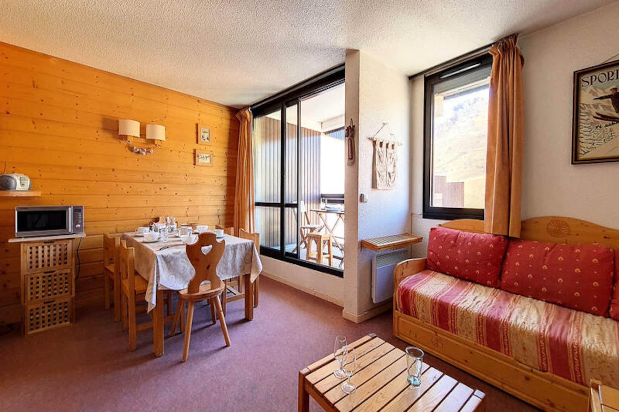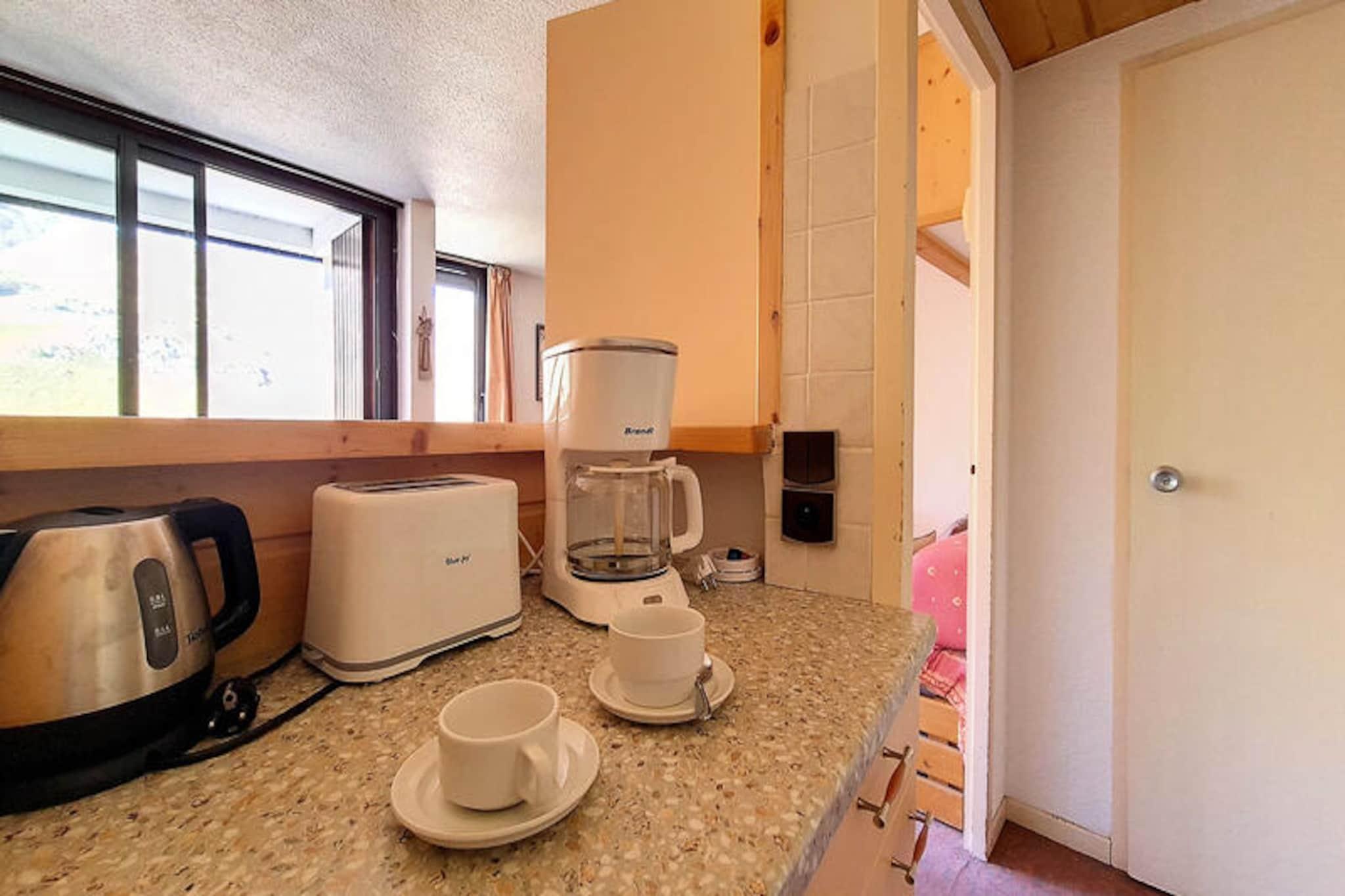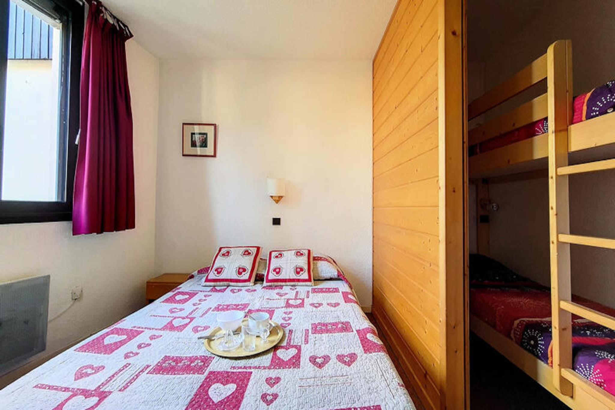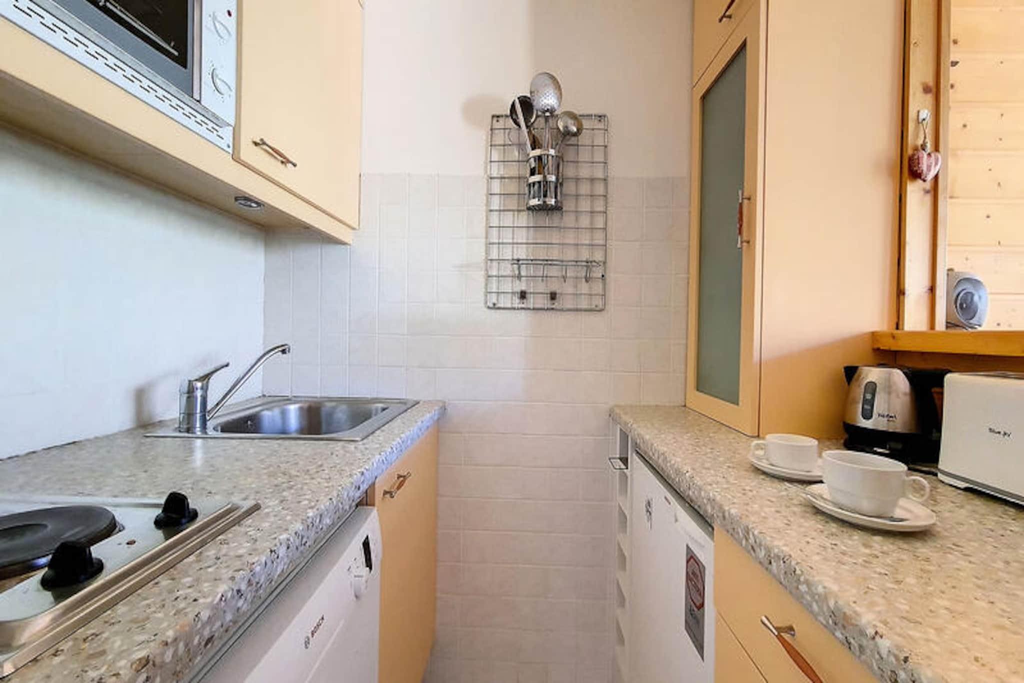 Højt over det maleriske Reberty 1850-distrikt inviterer denne charmerende lejlighed dig til at fordybe dig i de franske alpers skønhed. Med sin sydvestvendte balkon vågner du op til en betagende udsigt over Masse-bjergkæden, hvor solen kaster et gyldent skær over toppene. Uanset om du er her for spændende skieventyr eller rolige alpine udflugter, tilbyder dette hyggelige tilflugtssted den perfekte balance mellem komfort og bekvemmelighed. De nærliggende pister, restauranter og butikker ligger kun få skridt væk, hvilket sikrer, at hvert øjeblik af din ferie er ubesværet og fornøjelig. For ekstra bekvemmelighed forbinder gratis shuttlebusser dig til Croisette centrum, mens Bruyères-distriktet er tilgængeligt via en gangbro og offentlig elevator. Indenfor har lejlighedens gennemtænkte planløsning plads til op til seks gæster, hvilket gør den ideel til familier eller små grupper. Stuen har en sovesofa til enkeltseng og en udtræksseng, mens soveværelset har en komfortabel dobbeltseng. En alkove, adskilt af en skydevæg, inkluderer to enkeltkøjesenge, perfekt til børn eller ekstra gæster. Det veludstyrede køkken har alt, hvad du behøver, lige fra ovn og mikrobølgeovn til opvaskemaskine og kaffemaskine, så du kan tilberede solide måltider efter en dag på pisterne. Et badeværelse med badekar og separat toilet bidrager til bekvemmeligheden, mens den sydvestvendte balkon tilbyder et roligt sted at slappe af og nyde udsigten over alperne. Selve boligen kan prale af moderne bekvemmeligheder, herunder elevator og sikkert adgangssystem. Gratis Wi-Fi er tilgængelig i lobbyen i nabobygningen, og der er betalt Wi-Fi i lejligheden. Skientusiaster vil sætte pris på det dedikerede skirum, og nærheden til pisterne sikrer, at du kan maksimere din tid på sneen. Uanset om du udforsker det pulserende Croisette-centrum eller nyder den fredelige charme i Reberty 1850, er denne lejlighed din port til uforglemmelige bjergminder.