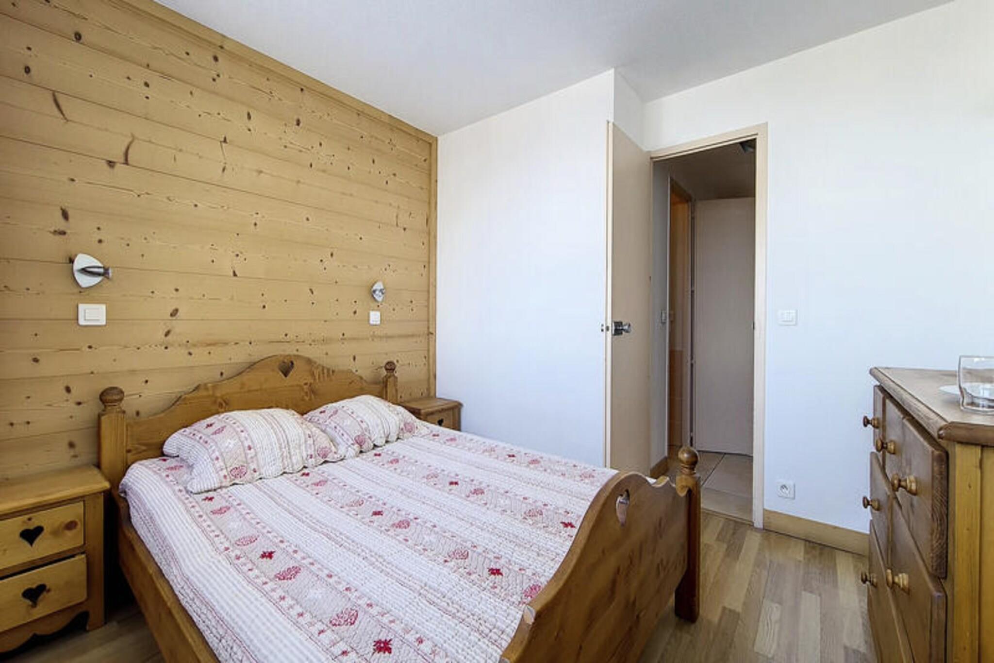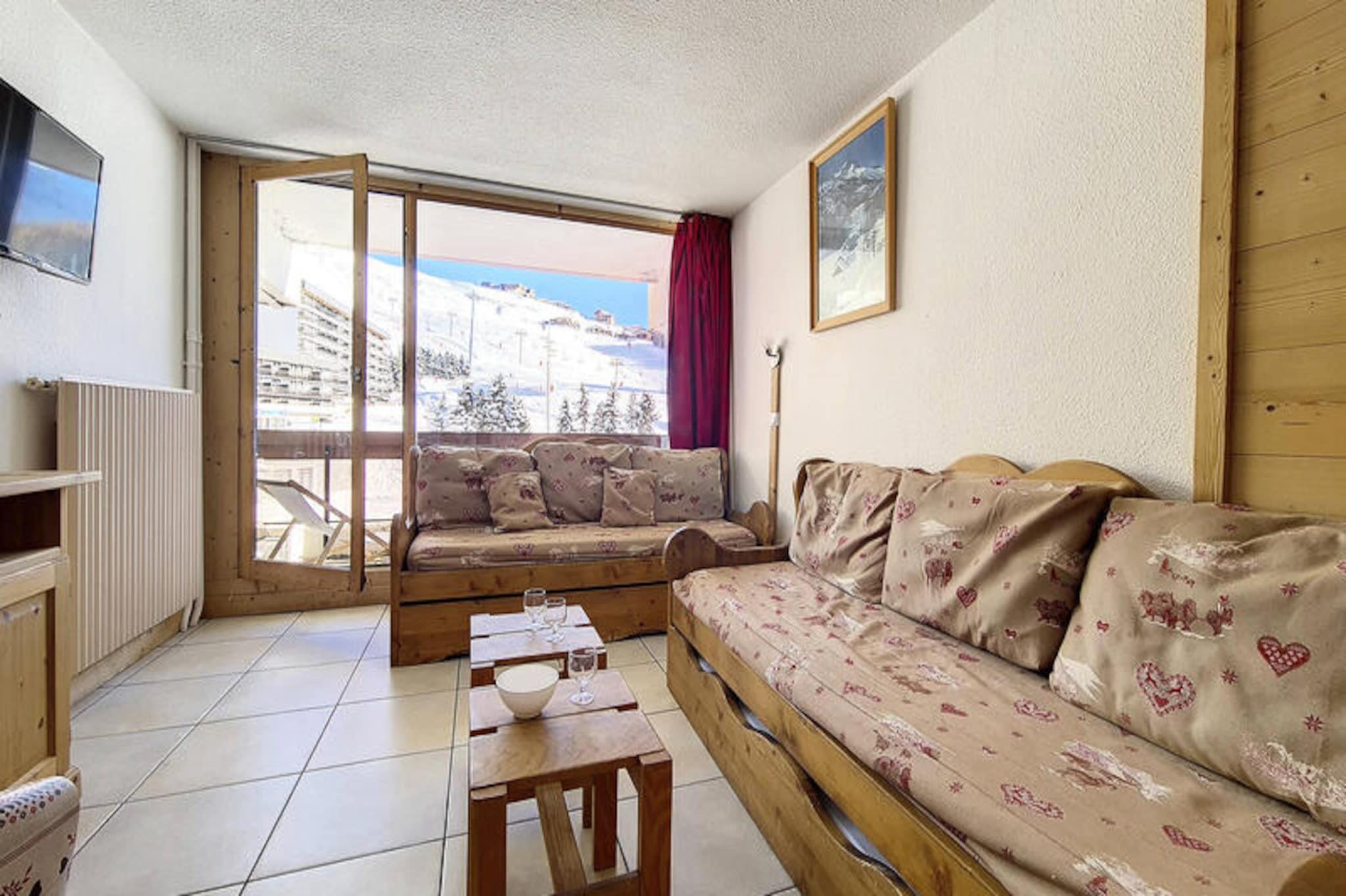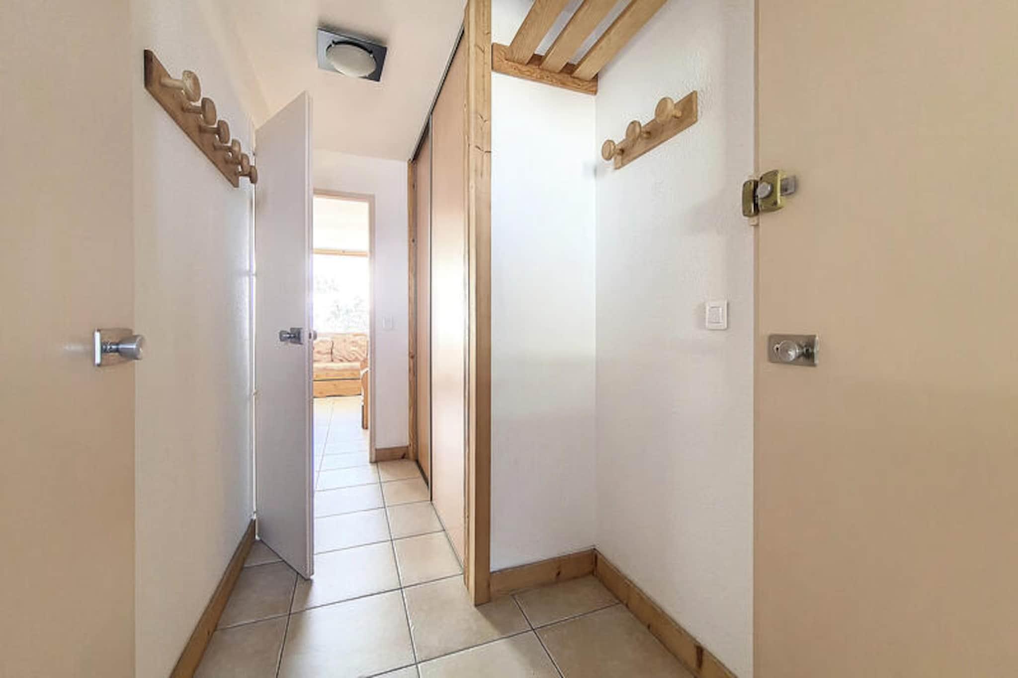 Forestil dig at vågne op til den friske bjergluft og den betagende udsigt over de franske alper fra din sydvendte balkon. Denne charmerende 2-værelses lejlighed ligger i Lac du Lou-residensen og tilbyder en problemfri blanding af komfort og bekvemmelighed, hvilket gør den til det perfekte tilflugtssted for din alpine ferie. Uanset om du er her for at klatre gennem uberørte skråninger eller blot slappe af midt i Les Menuires fredfyldte skønhed, lover denne ejendom en uforglemmelig oplevelse. \n\nTræd indenfor i denne totalrenoverede lejlighed på 38 m², der er designet til at rumme op til fem gæster. Stuen har to enkeltsenge og en udtræksseng, suppleret med et fladskærms-tv til hyggelige aftener derhjemme. Det separate soveværelse har en komfortabel dobbeltseng, der sikrer en god nats søvn. Det moderne køkken er udstyret med alt det nødvendige, herunder keramiske kogeplader, en kombineret mikrobølgeovn/ovn, et køleskab, en opvaskemaskine og små apparater som en brødrister, elkedel og kaffemaskine. Badeværelset kan prale af et elegant brusebad, og lejligheden er komplet med et separat toilet. Med klinkegulve overalt sikrer denne ikke-ryger, kæledyrsfri ejendom et rent og indbydende miljø for alle gæster.\n\nLac du Lou-residensen tilbyder direkte adgang til pisterne, med et skirum bekvemt placeret i bygningens kælder. Croisette-indkøbscentret ligger kun få skridt væk og tilbyder et udvalg af butikker og spisemuligheder. Familier vil sætte pris på daginstitutionen og legepladsen, der ligger kun 300 meter fra bygningen, mens den nærliggende busstation sikrer nem adgang til at udforske det bredere område.\n\nUanset om du er her for spændingen ved skiløb eller roen i bjergene, er denne lejlighed din port til det bedste af Les Menuires. Med sin førsteklasses beliggenhed og gennemtænkte faciliteter er det det perfekte valg til dit næste alpine eventyr.