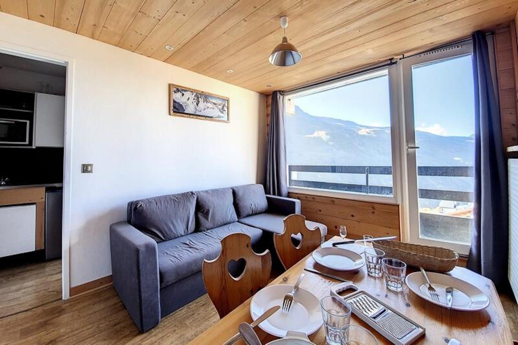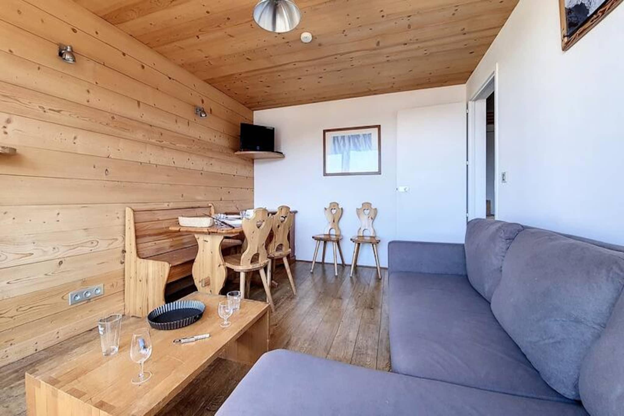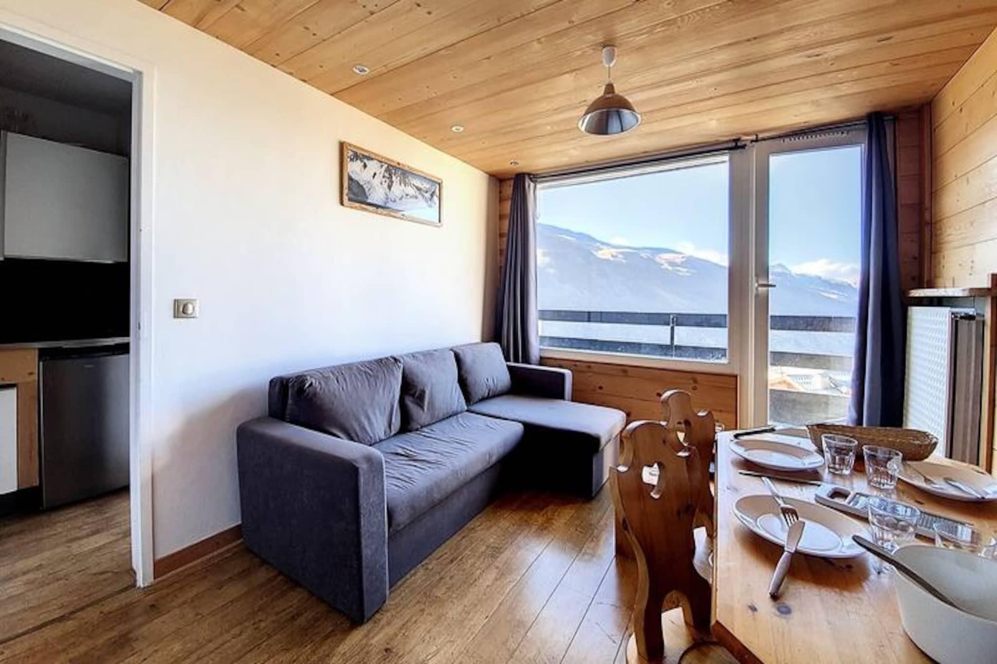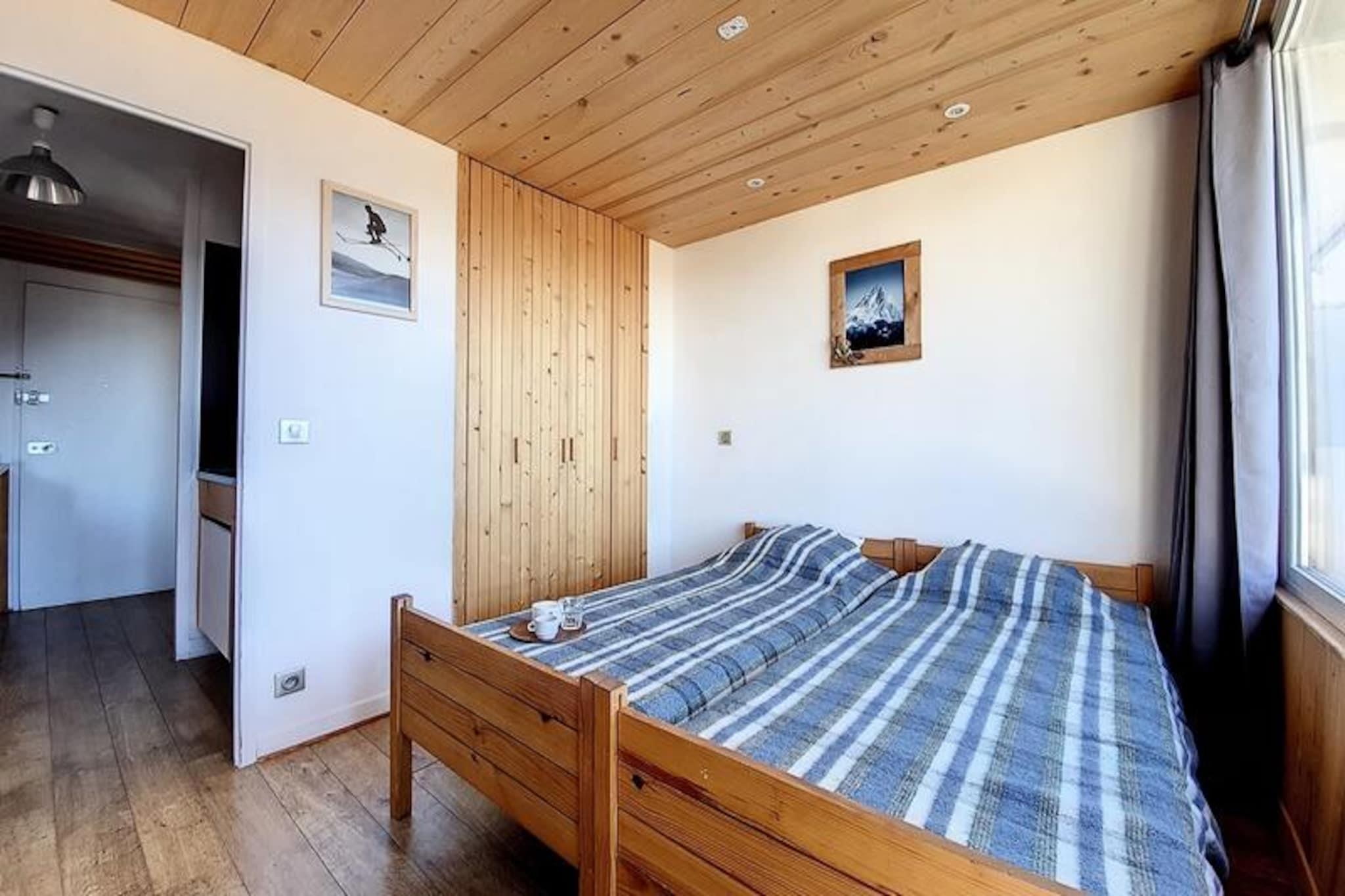 Hvor bjergluften hvisker gennem tinderne, og solen går ned over snedækkede skråninger, tilbyder Lac du Lou-residensen et hyggeligt alpint tilflugtssted for både eventyrere og drømmere. Beliggende i hjertet af Les Menuires inviterer denne ski-in/ski-out-ejendom dig til at træde direkte ud på pisterne fra skiboksen, hvilket sikrer, at hver dag begynder med ubesværet adgang til de uberørte hvide stier i Les Trois Vallées. Uanset om du jagter puddersne eller nyder bjergenes ro, er denne residens din port til uforglemmelige øjeblikke. \n\nIndenfor strækker den lyse og indbydende toværelses lejlighed sig over 30 kvadratmeter og er omhyggeligt designet til at rumme op til fire gæster. Den vestvendte balkon bader rummet i gyldent eftermiddagslys og tilbyder et perfekt sted at slappe af efter en dag med alpin udforskning. Stuen har en komfortabel dobbelt sovesofa, tv og radio, mens soveværelset kan prale af to enkeltsenge, et stort klædeskab og et karnapvindue, der indrammer den fantastiske udsigt. Et kompakt, men veludstyret køkken inkluderer køleskab, miniovn, elektriske kogeplader og kaffemaskine, hvilket sikrer, at du har alt, hvad du behøver for et hyggeligt måltid. Lejligheden har også et separat toilet og badeværelse med bruser for ekstra bekvemmelighed. \n\nUd over lejligheden er beliggenheden uovertruffen. Croisette-indkøbscentret ligger kun få skridt væk, mens ESF-skiskolens mødested og skilifte er inden for rækkevidde. Familier vil sætte pris på børnehaven og legepladsen, som begge ligger en kort gåtur fra boligen, og den nærliggende busstation sikrer problemfri forbindelse. Uanset om du er her for vintersport eller sommervandreture, tilbyder Les Menuires en pulserende blanding af aktiviteter, restauranter og underholdning. \n\nMed sin førsteklasses beliggenhed, gennemtænkte faciliteter og charmen ved de franske alper lige uden for døren er Lac du Lou-boligen det perfekte valg for dem, der søger en blanding af eventyr og afslapning i en af ??Europas mest ikoniske bjergdestinationer.