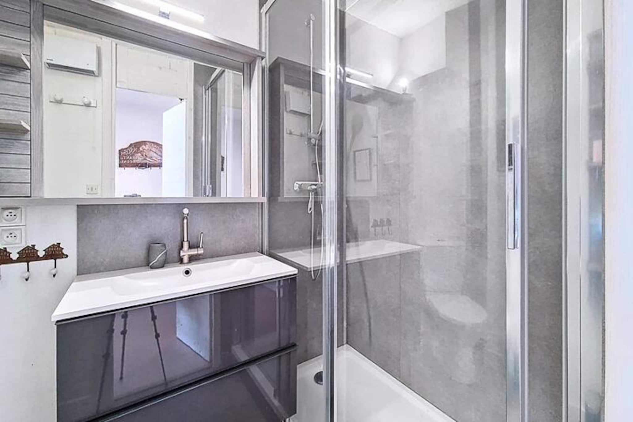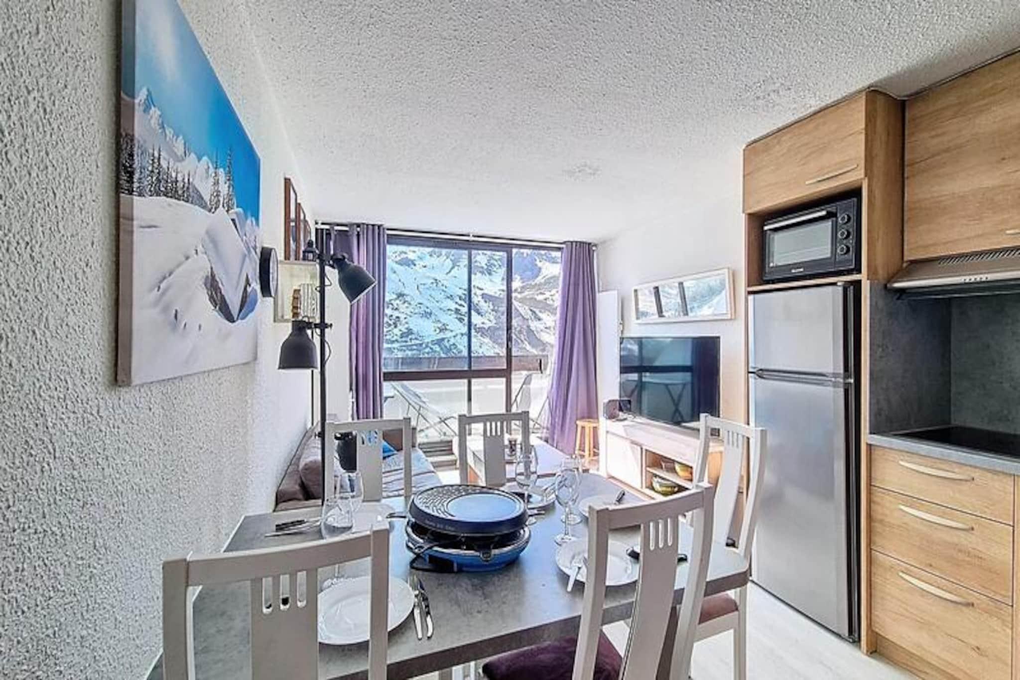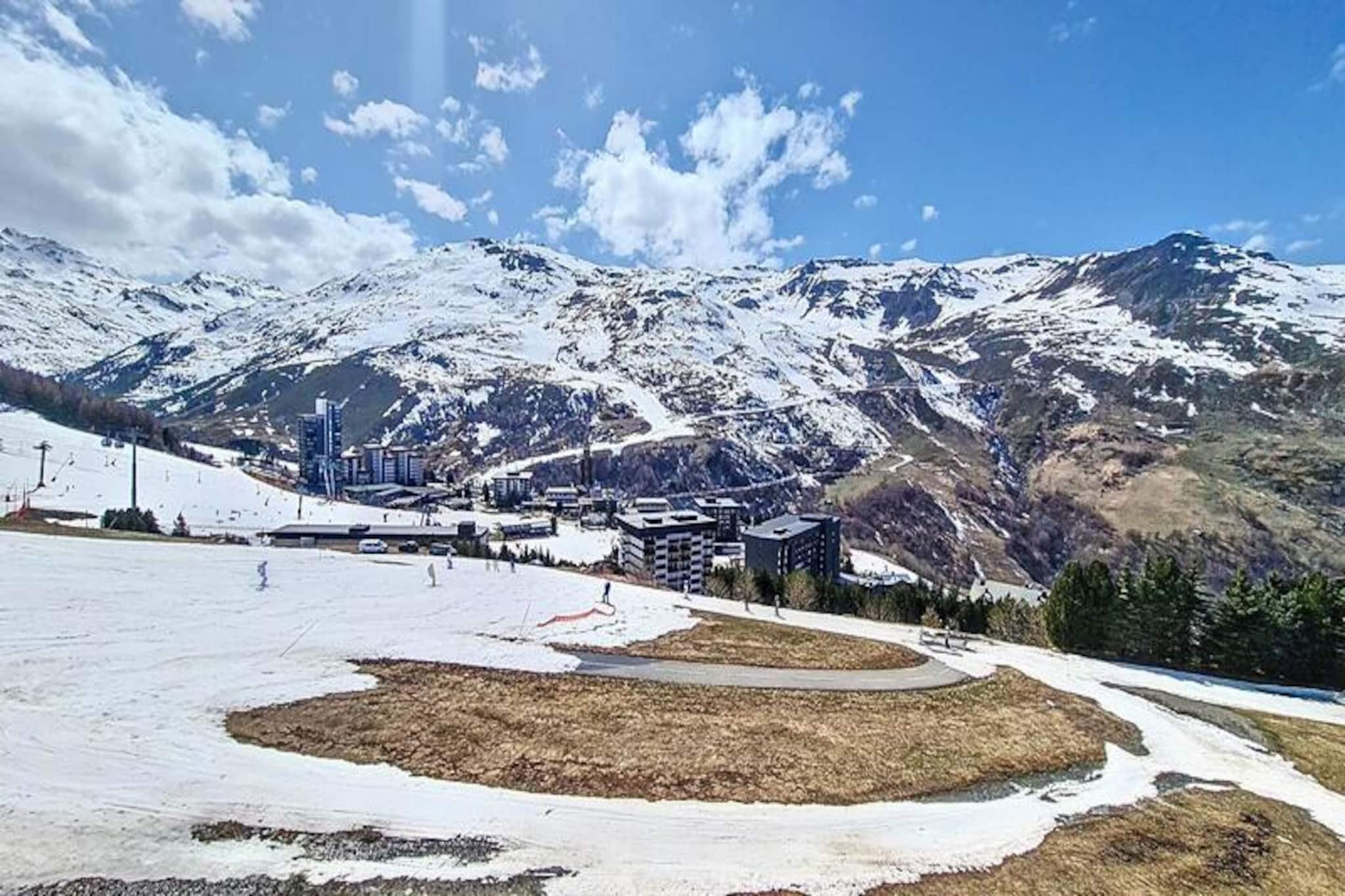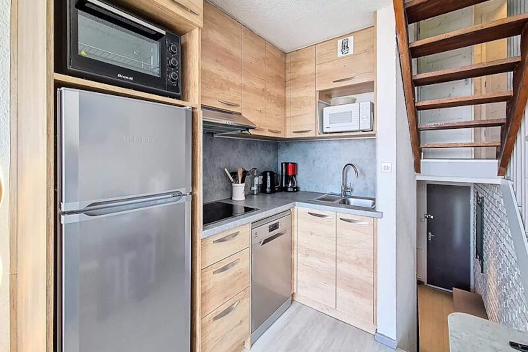 Højt over det pulserende Les Menuires-resort tilbyder Brelin-bygningen et unikt alpint tilflugtssted med panoramaudsigt og direkte adgang til pisterne. Beliggende over La Croisette-distriktet er denne ejendom problemfrit forbundet via offentlige elevatorer, der er tilgængelige døgnet rundt, hvilket sikrer ubesværet adgang til landsbyens hjerte. Forestil dig at vågne op til gyldent sollys, der strømmer ind gennem din sydvestvendte balkon, hvor betagende bjergudsigter sætter tonen for en dag med eventyr eller afslapning. Denne triplex-lejlighed er et paradis for familier og grupper, der søger komfort og bekvemmelighed i de franske alper. \n\nLejligheden er på 53 m² og har plads til op til otte gæster fordelt på tre gennemtænkt designede etager. Stuen inviterer dig til at slappe af med en hyggelig sofa og tv, mens to soveværelser tilbyder alsidige sovemuligheder, herunder en dobbeltseng og to sæt køjesenge. Det fuldt udstyrede køkken er en kulinarisk entusiasts drøm med moderne apparater som opvaskemaskine, vaskemaskine/tørretumbler, ovn og espressomaskine, sammen med traditionelle alpine detaljer som en raclettegrill og et fondue-sæt. To separate toiletter og et badeværelse med bruser sikrer privatliv og praktisk anvendelighed for alle gæster. \n\nBrelin-bygningen kan prale af ski-in/ski-out-adgang og skibokse i stueetagen, hvilket gør den til et perfekt valg for vintersportsentusiaster. Faciliteterne på stedet inkluderer en shoppingarkade med skiliftbilletkontorer og bekvem parkering ved Nant Benoit-liften, der ligger kun få skridt væk. Uanset om du udforsker pisterne eller nyder den livlige atmosfære på La Croisette, er alt hvad du behøver inden for rækkevidde. \n\nMed sin exceptionelle beliggenhed, fantastiske udsigt og gennemtænkte faciliteter lover denne lejlighed et uforglemmeligt ophold i hjertet af Les Trois Vallées. Uanset om du er her for at stå på ski, vandre eller blot nyde den alpine charme, er dette din indgang til en virkelig mindeværdig bjergflugt.