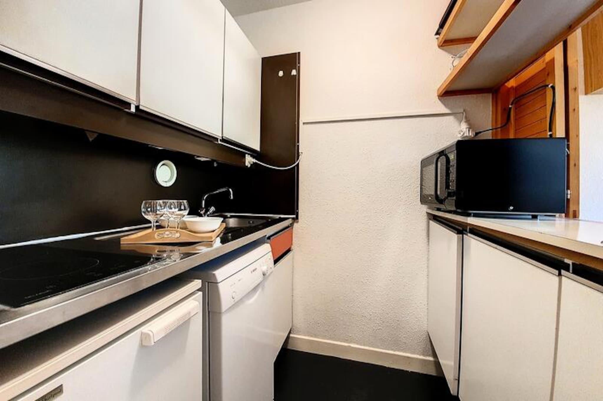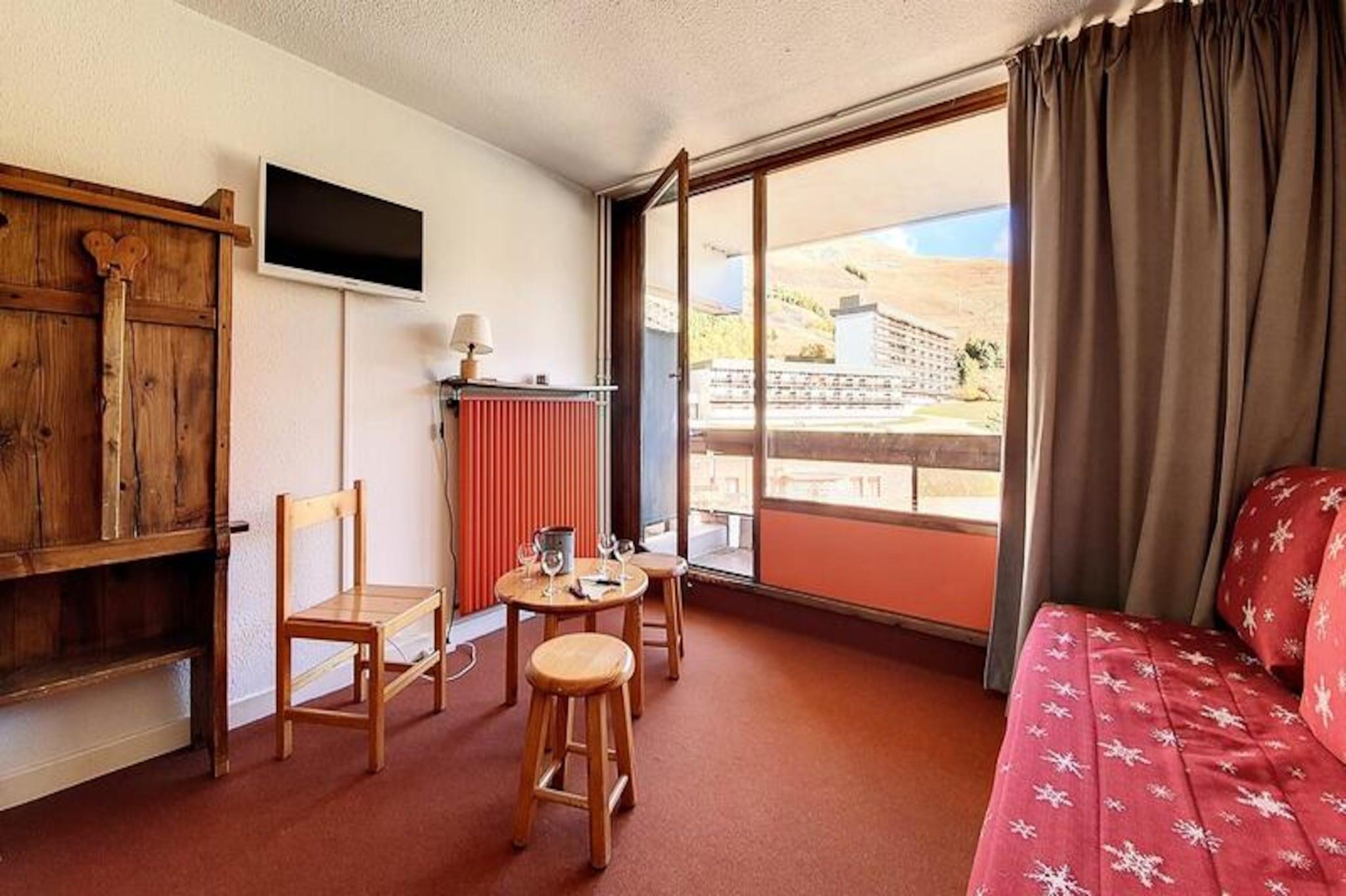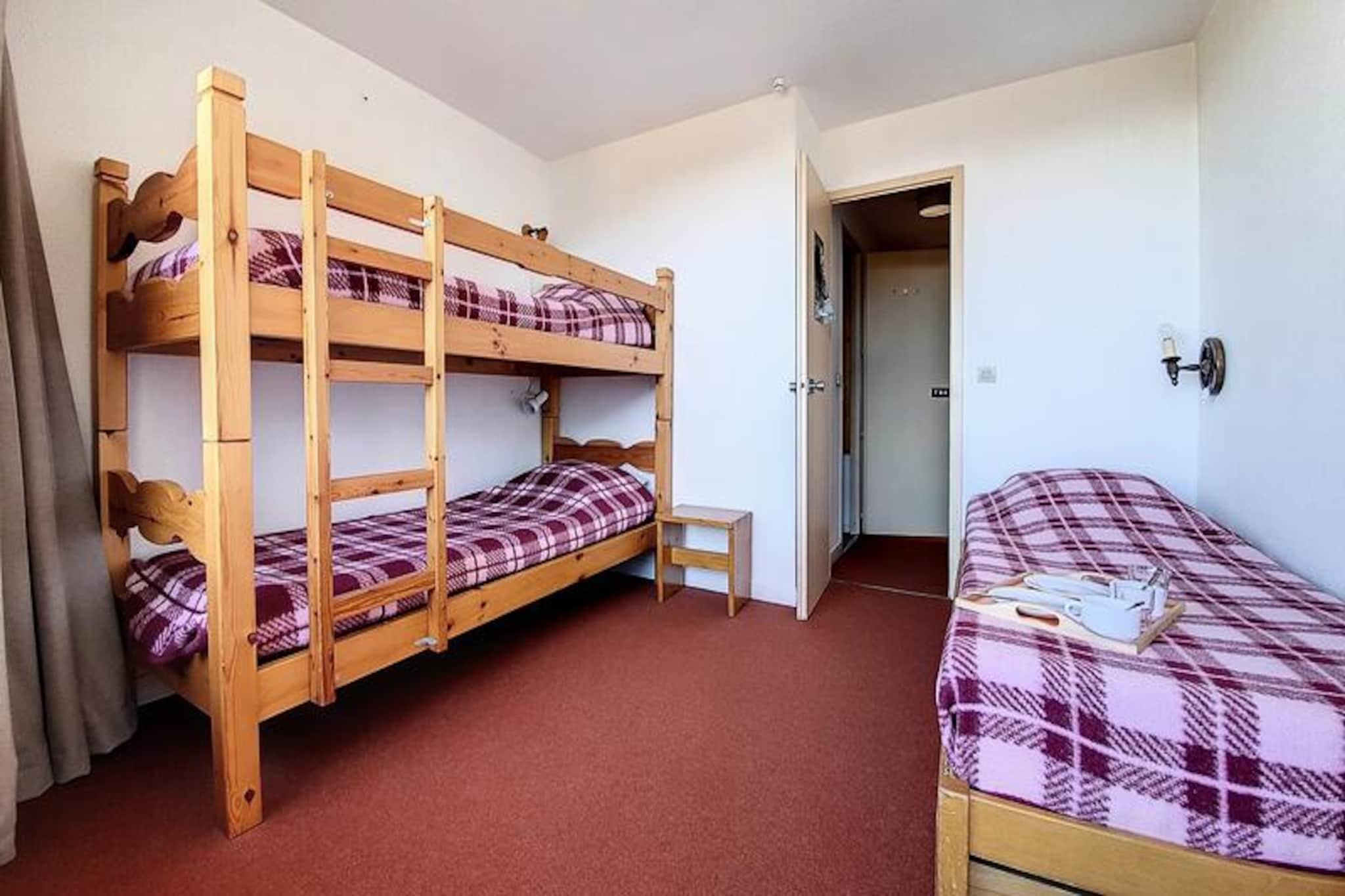 I hjertet af de franske alper, hvor sneklædte tinder møder hyggelig alpin charme, tilbyder Lac du Lou-residensen et indbydende tilflugtssted for både vintersportsentusiaster og naturelskere. Denne velbeliggende lejlighed ligger kun få skridt fra Croisette-indkøbscentret og giver direkte adgang til pisterne via skiboksen, der er bekvemt placeret i bygningens kælder. Uanset om du er her for at stå på ski, udforske eller blot slappe af, sikrer denne ejendom en problemfri blanding af komfort og eventyr. \n\nDen 38 m² store toværelseslejlighed, der ligger på anden sal med elevatoradgang, har komfortabel plads til op til fem gæster. Stuen har en enkelt sovesofa og en udtræksseng, suppleret af et fladskærms-tv til hyggelige aftener derhjemme. Soveværelset er omhyggeligt designet med to køjesenge og en enkeltseng, hvilket gør det ideelt til familier eller små grupper. Et veludstyret køkken inkluderer to elektriske kogeplader, en kombineret mikrobølgeovn/ovn, køleskab, opvaskemaskine, brødrister, elkedel og kaffemaskine, hvilket sikrer, at du har alt, hvad du behøver for at tilberede solide måltider efter en dag på pisterne. Den sydvendte balkon tilbyder et solrigt sted at nyde den alpine atmosfære, mens badeværelset med badekar og separat toilet bidrager til bekvemmeligheden. \n\nUd over lejligheden er beliggenheden uovertruffen. Daginstitutionen og legepladsen ligger kun 300 meter væk, hvilket gør den perfekt til familier. Den nærliggende busstation, kun 100 meter fra bygningen, sikrer nem adgang til det omkringliggende område. Med betalt Wi-Fi-adgang (afhængigt af netværksdækning) kan du holde forbindelsen, mens du nyder din bjergferie. \n\nUanset om du er tiltrukket af spændingen ved pisterne eller Alpernes fredfyldte skønhed, tilbyder Lac du Lou-residensen en varm og imødekommende base for en uforglemmelig ferie. Skab dyrebare minder i dette charmerende alpine tilflugtssted, hvor hvert øjeblik er indrammet af den betagende natur i de franske bjerge.