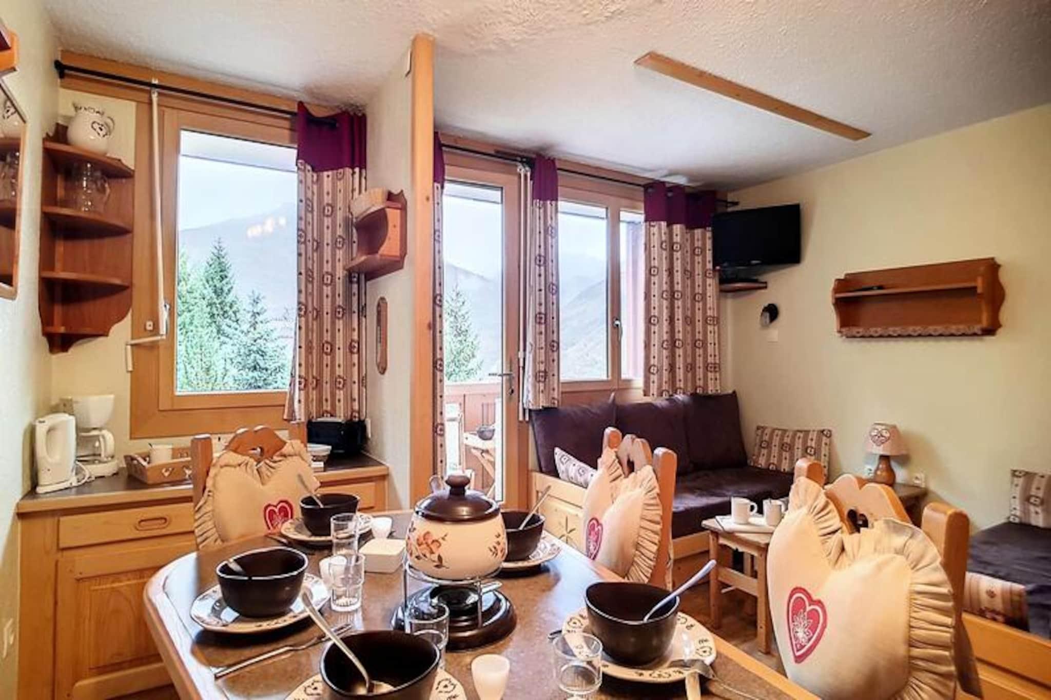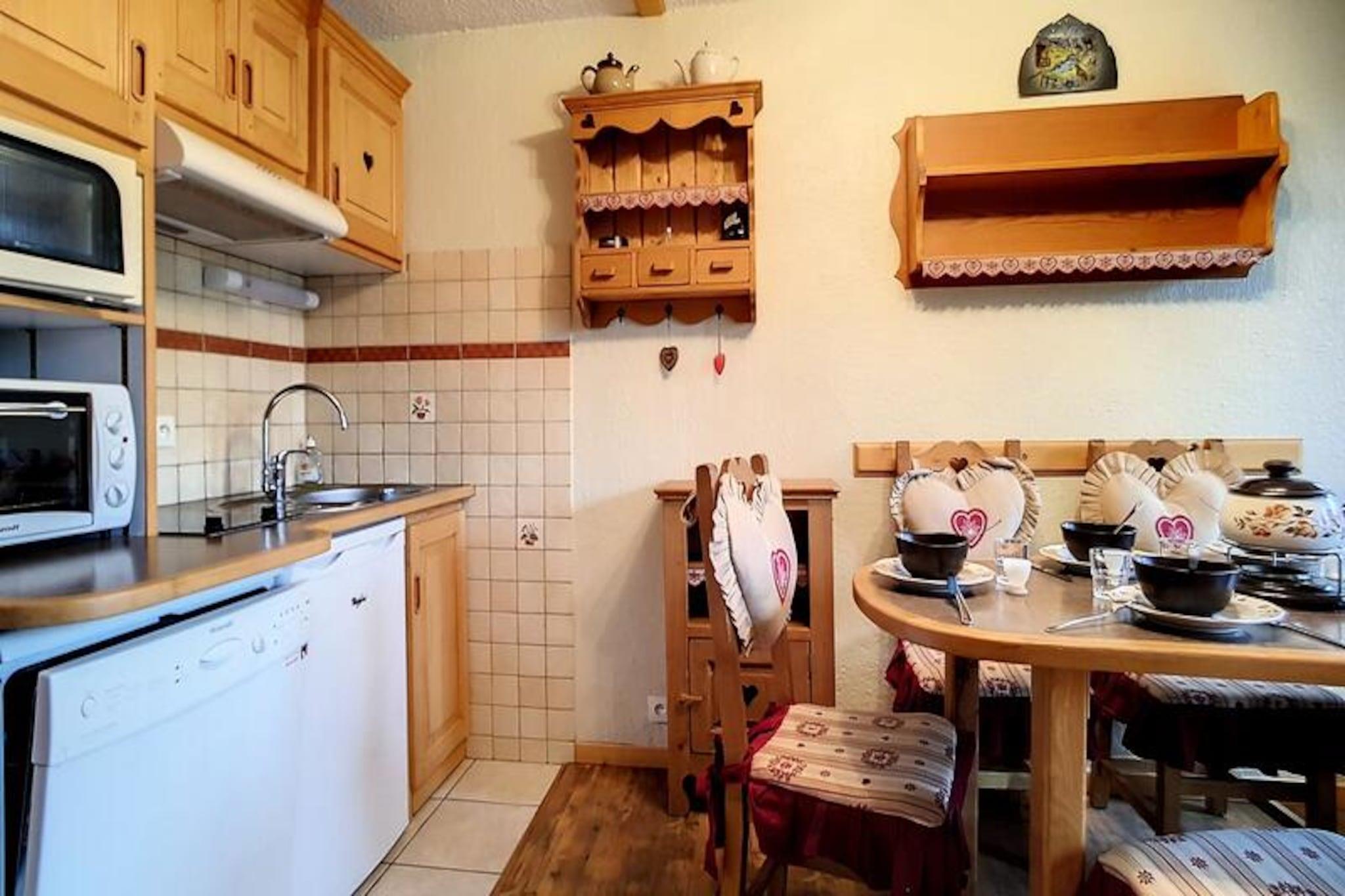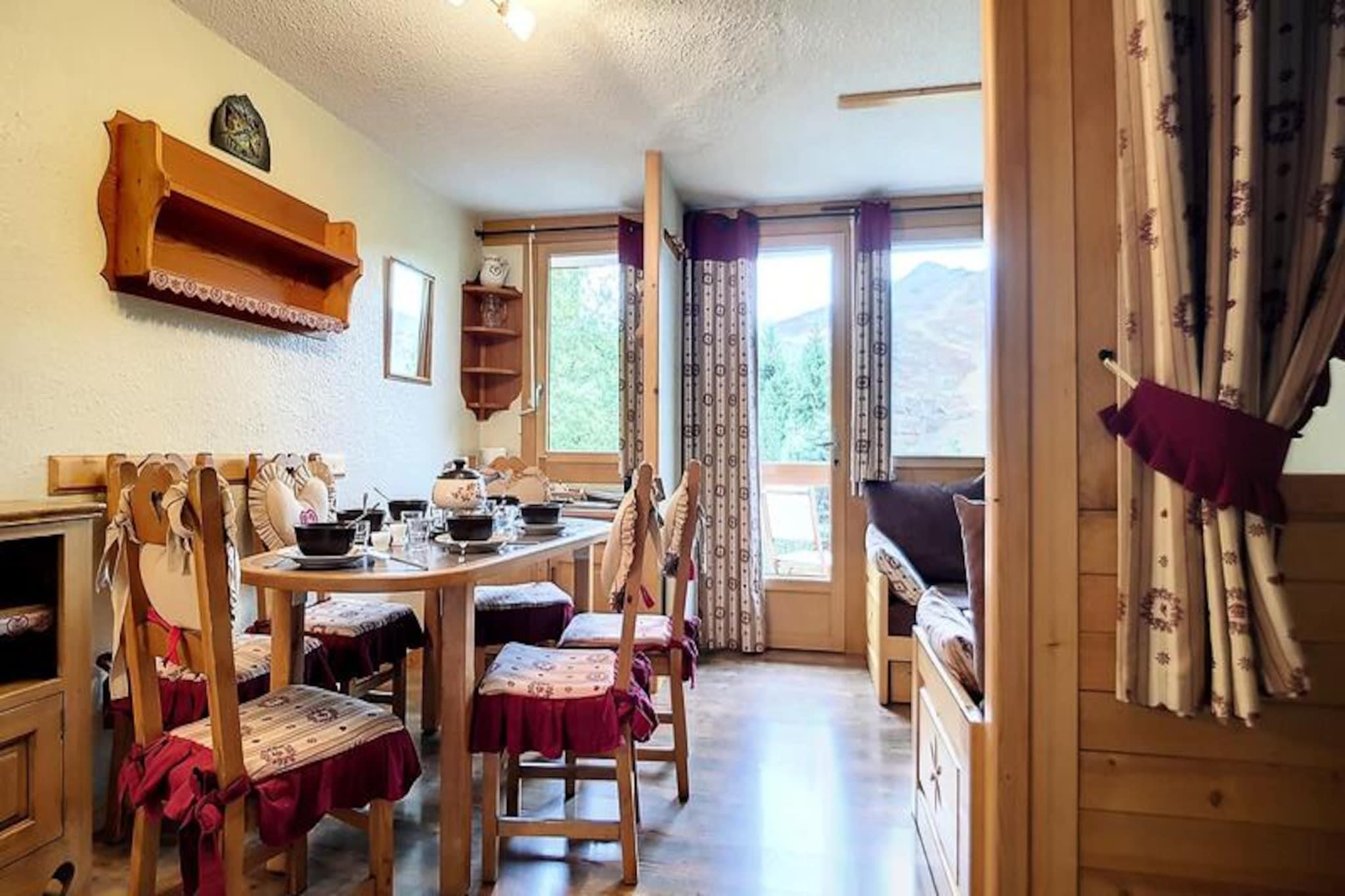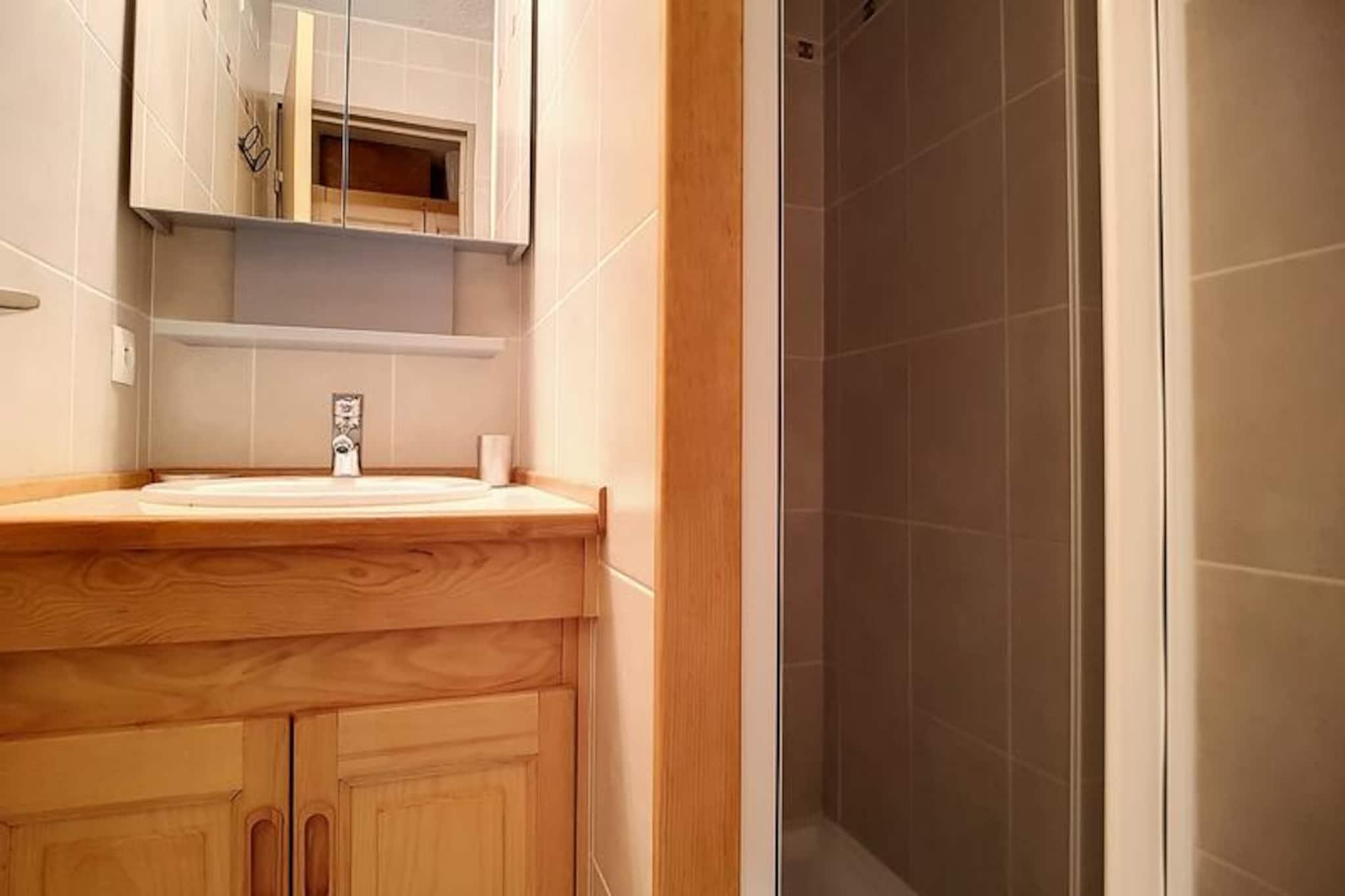 Højt over det charmerende Reberty 1850-distrikt tilbyder dette hyggelige alpine tilflugtssted en uovertruffen ski-in/ski-out-oplevelse, perfekt for dem, der er ivrige efter at fordybe sig i Les Menuires snemagi. Fra din sydvendte balkon på 4. sal kan du nyde den friske bjergluft og den betagende udsigt, mens du planlægger dit næste eventyr på pisterne. Her føles hvert øjeblik som et postkort, der kommer til live. \n\nLejligheden, der er omhyggeligt designet til op til fem gæster, kombinerer komfort og funktionalitet i sin 30 m² store planløsning. Stuen har to indbydende enkeltsofaer og et tv, hvilket skaber et perfekt sted at slappe af efter en dag på ski. En skydedør adskiller soveværelset i hytten med en hyggelig dobbeltseng, mens en sovealkove med køjesenge tilføjer et strejf af alpin charme. Det fuldt udstyrede køkken med keramiske kogeplader, miniovn, mikrobølgeovn, køleskab og mere sikrer, at du har alt, hvad du behøver for at tilberede solide måltider. Moderne bekvemmeligheder som opvaskemaskine og kaffemaskine gør dit ophold endnu mere behageligt. Lejligheden har også et badeværelse med bruser og et separat toilet for ekstra bekvemmelighed.\n\nBeliggende i Boedette A-residensen, har du sikker adgang via et nøglekort og en elevator. I nærheden finder du små butikker og restauranter, der opfylder alle dine behov, mens gratis shuttlebusser forbinder dig til det livlige Croisette-centrum. Bruyères-distriktet ligger kun en kort gåtur væk og er tilgængeligt via en gangbro og offentlig elevator.\n\nUanset om du er her for at slentre gennem uberørte pister, udforske den pulserende lokale kultur eller blot slappe af i den rolige alpine atmosfære, er denne lejlighed din port til uforglemmelige minder i hjertet af de franske alper.