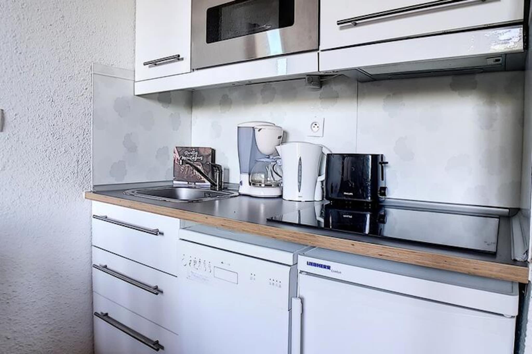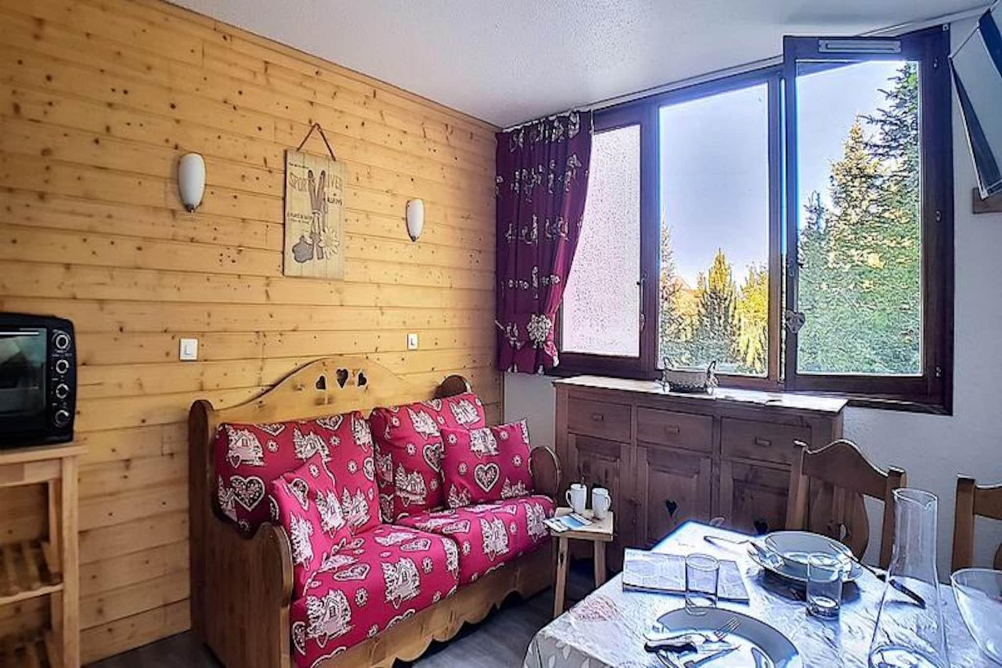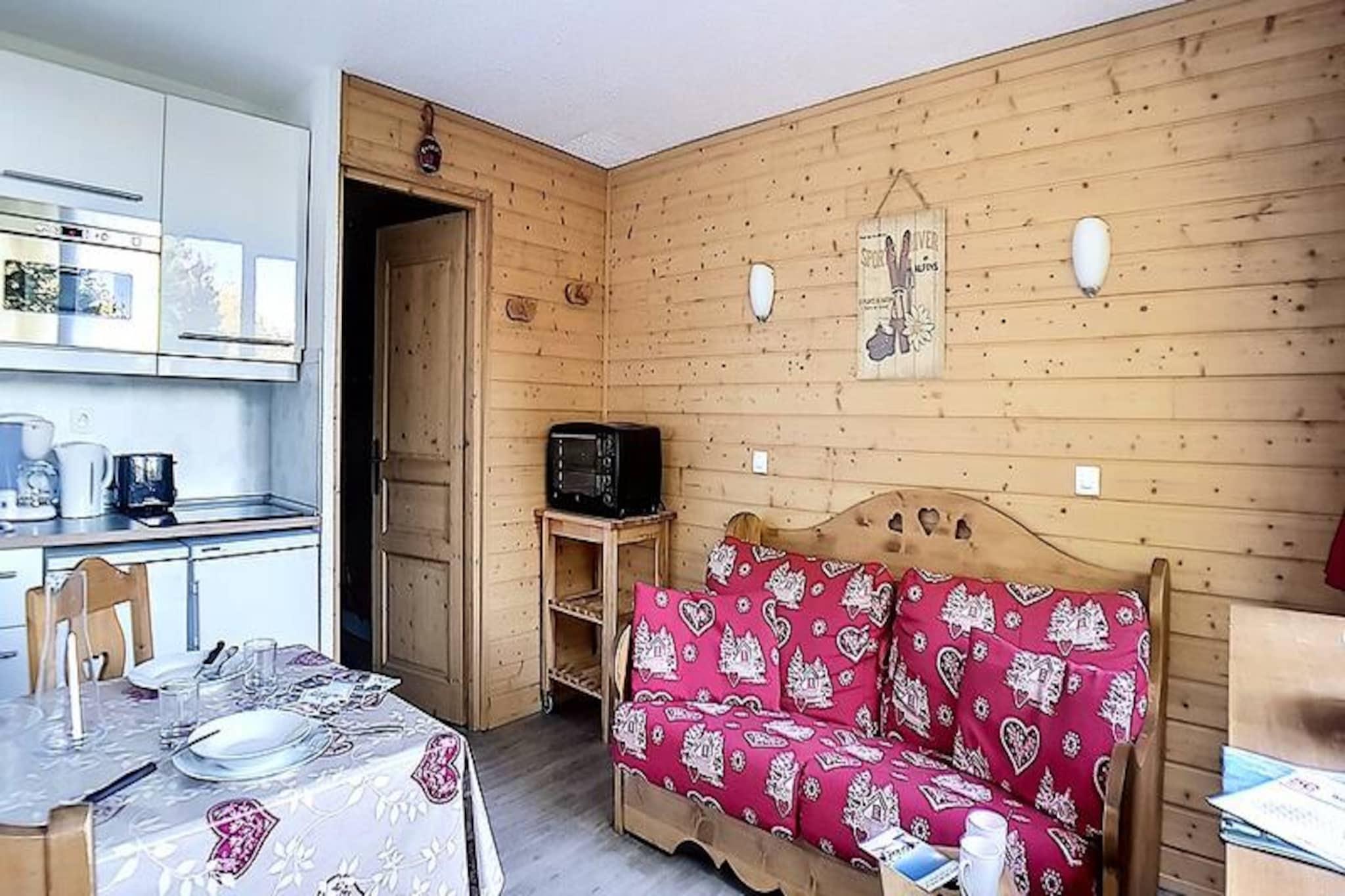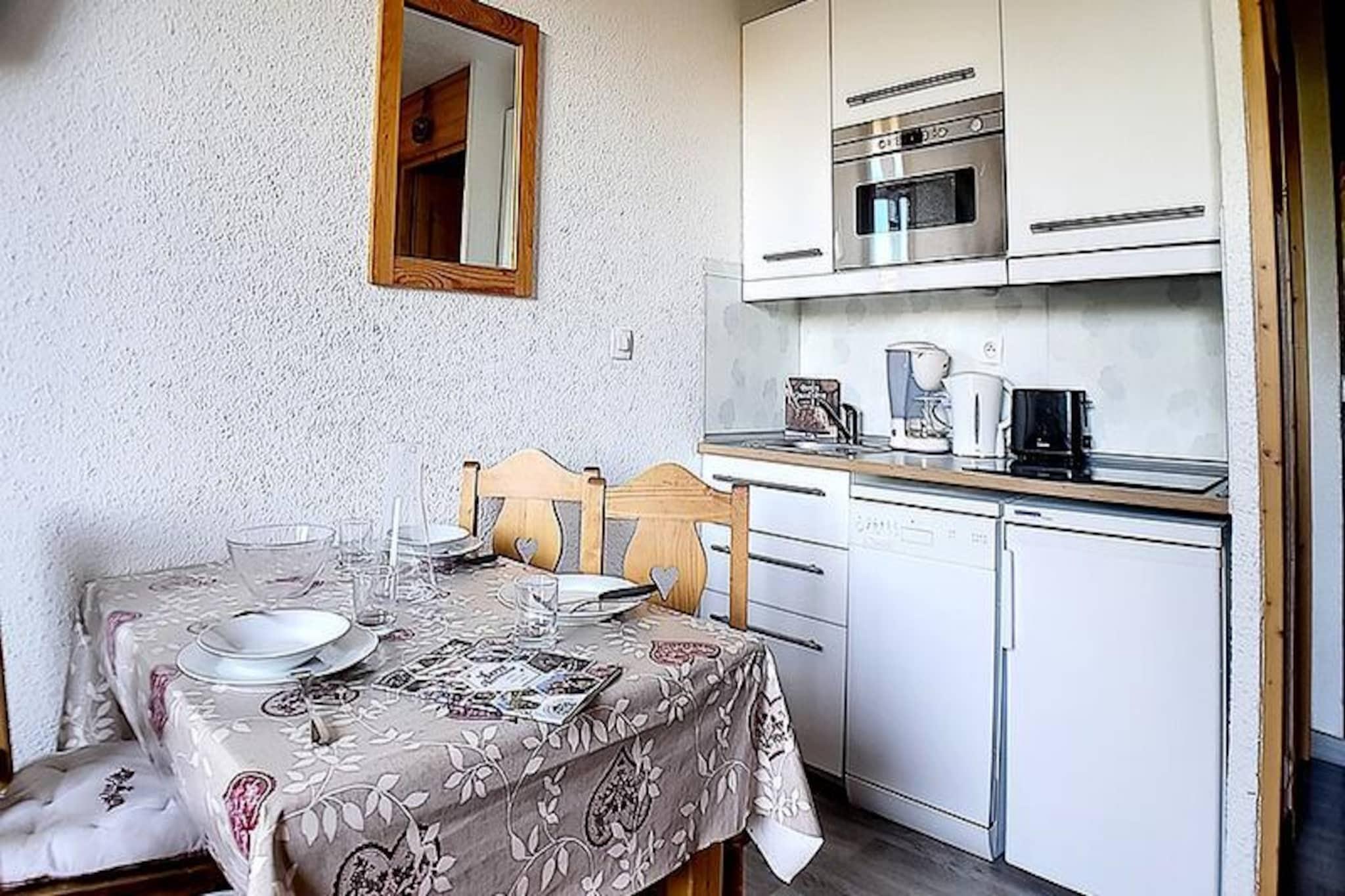 Højt over de charmerende pister i Les Menuires tilbyder denne hyggelige studiolejlighed i Boedette A-residensen en rolig bjergferie med uovertruffen ski-in/ski-out-adgang. Beliggende i Reberty 1850-distriktet er denne ejendom perfekt til dem, der søger spændingen ved skiområdet Les Trois Vallées kombineret med bekvemmeligheden ved nærliggende faciliteter og rolige alpine omgivelser. Fra det øjeblik du ankommer, sætter den friske bjergluft og de snedækkede tinder tonen for et uforglemmeligt ophold. Dette omhyggeligt designede studio på 21 m² har komfortabel plads til op til fire gæster, hvilket gør det ideelt til små familier eller tætte venner. Stuen har en dobbelt sovesofa og et fladskærms-tv, mens en separat sovealkove tilbyder to enkeltkøjesenge for ekstra privatliv. Det kompakte, men fuldt udstyrede køkken har keramisk kogeplade, mikrobølgeovn, køleskab, opvaskemaskine og alt det nødvendige til at tilberede solide måltider efter en dag på pisterne. Et moderne badeværelse med bruser og separat toilet sikrer bekvemmelighed, mens laminatgulv tilføjer et strejf af varme til rummet. Bemærk venligst, at dette er en ikke-ryger lejlighed uden kæledyr, og den øverste køjeseng er ikke egnet til børn under seks år. Selve boligen kan prale af sikker adgang via et nøglekort og en elevator for nem navigation. Små butikker og restauranter ligger kun få skridt væk, mens gratis shuttlebusser forbinder dig til det travle Croisette-centrum. For dem, der ønsker at udforske yderligere, ligger det livlige Bruyères-distrikt inden for gåafstand og er tilgængeligt via en offentlig elevator og en gangbro. Uanset om du er her for skiløb i verdensklasse, naturskønne bjergstier eller blot for at slappe af i hjertet af Alperne, tilbyder denne studiolejlighed et indbydende tilflugtssted for dit alpine eventyr.