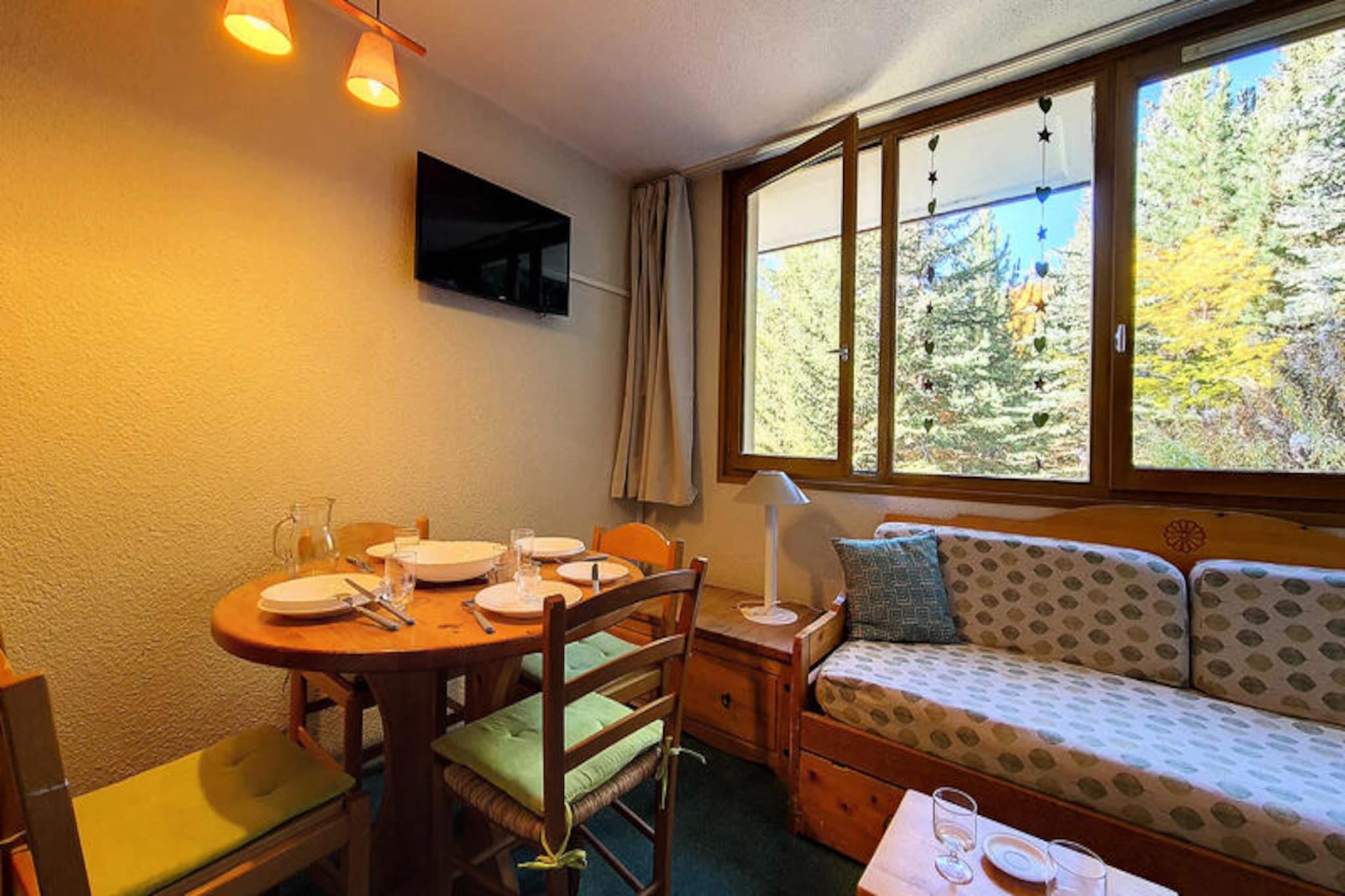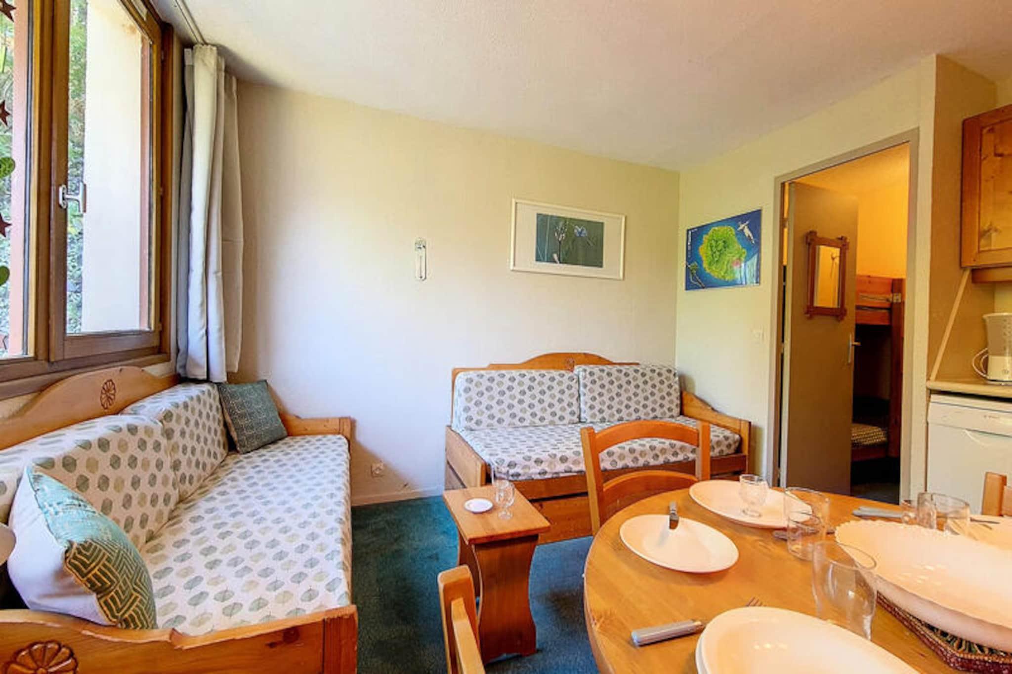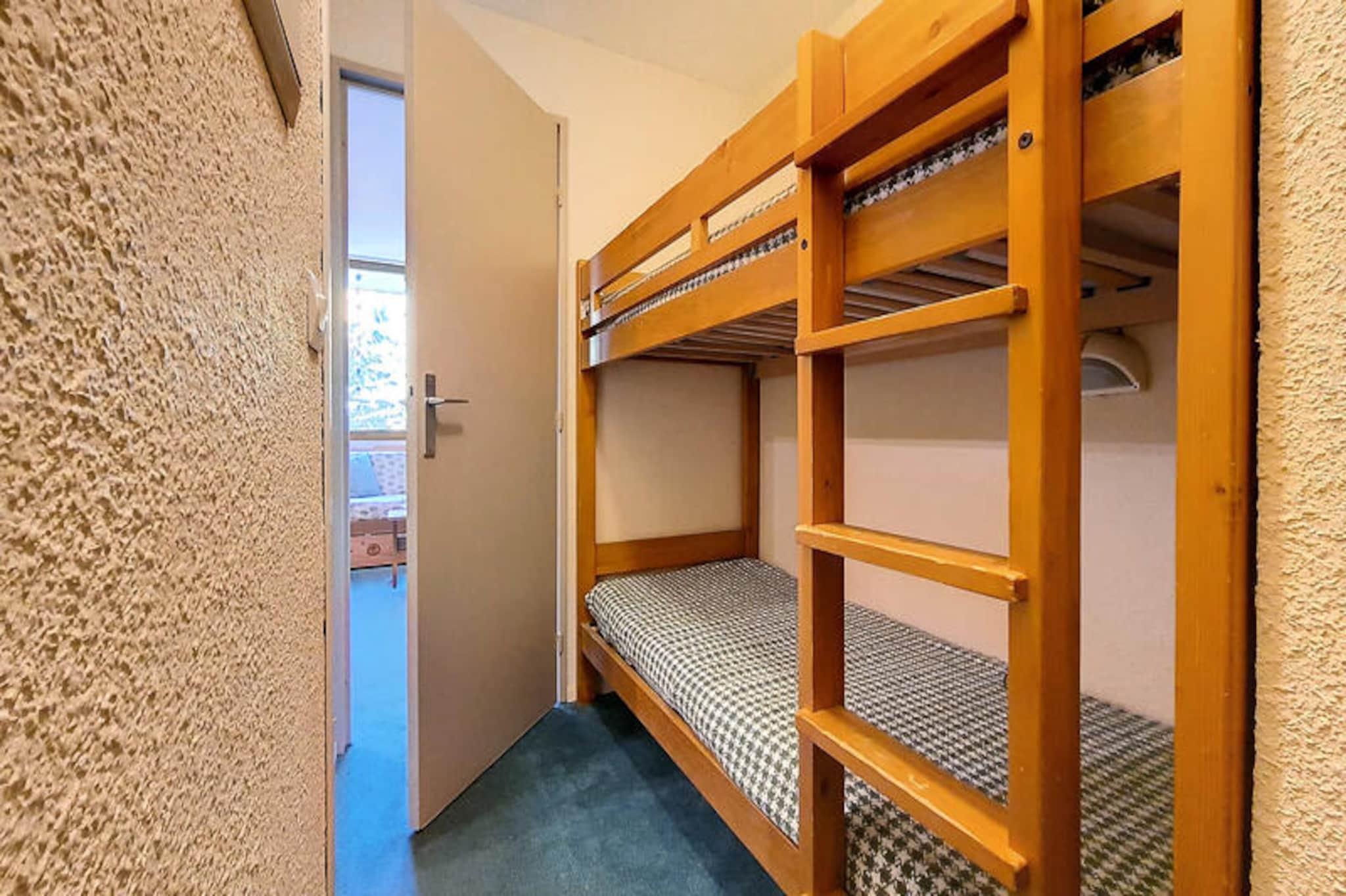 I hjertet af det maleriske Reberty 1850-distrikt tilbyder denne hyggelige studiolejlighed en autentisk alpin flugt med bekvemmeligheden af ??ski-in/ski-out-adgang. Perfekt beliggende for vintersportsentusiaster placerer boligen dig lige på pisterne, hvilket sikrer, at dine dage begynder og slutter med spændingen i bjergene. De charmerende omgivelser og den friske bjergluft skaber en rolig atmosfære, ideel til en forfriskende ferie. Dette kompakte, men veludstyrede studio på 22 m² har komfortabel plads til op til fire gæster. Stuen har en sovesofa til enkeltseng og en udtræksseng, mens en separat sovealkove tilbyder to enkeltkøjesenge, hvilket gør det til et praktisk valg for familier eller små grupper. Køkkenet er omhyggeligt designet med moderne bekvemmeligheder, herunder elektriske kogeplader, miniovn, mikrobølgeovn, køleskab, opvaskemaskine, kaffemaskine og brødrister, så du kan tilberede solide måltider efter en dag på pisterne. Lejligheden har også et badeværelse med badekar, et separat toilet og et fjernsyn til din underholdning. Bemærk venligst, at den øverste køjeseng ikke er egnet til børn under seks år. Denne lejlighed, der ligger på 2. sal i Boedette A-residensen, tilbyder nem adgang til nærliggende små butikker og restauranter. Gratis shuttlebusser forbinder dig til det livlige Croisette-centrum, mens Bruyères-distriktet kun ligger en kort gåtur væk via en offentlig elevator og gangbro. For ekstra bekvemmelighed er residensen udstyret med en sikker elevator, der er tilgængelig via nøglekort. Uanset om du er her for at køre gennem frisk puddersne eller blot nyde de franske alpers skønhed, tilbyder denne lejlighed en komfortabel og praktisk base for dine bjergeventyr. Oplev magien fra Reberty 1850 og skab minder, der vil vare hele livet.