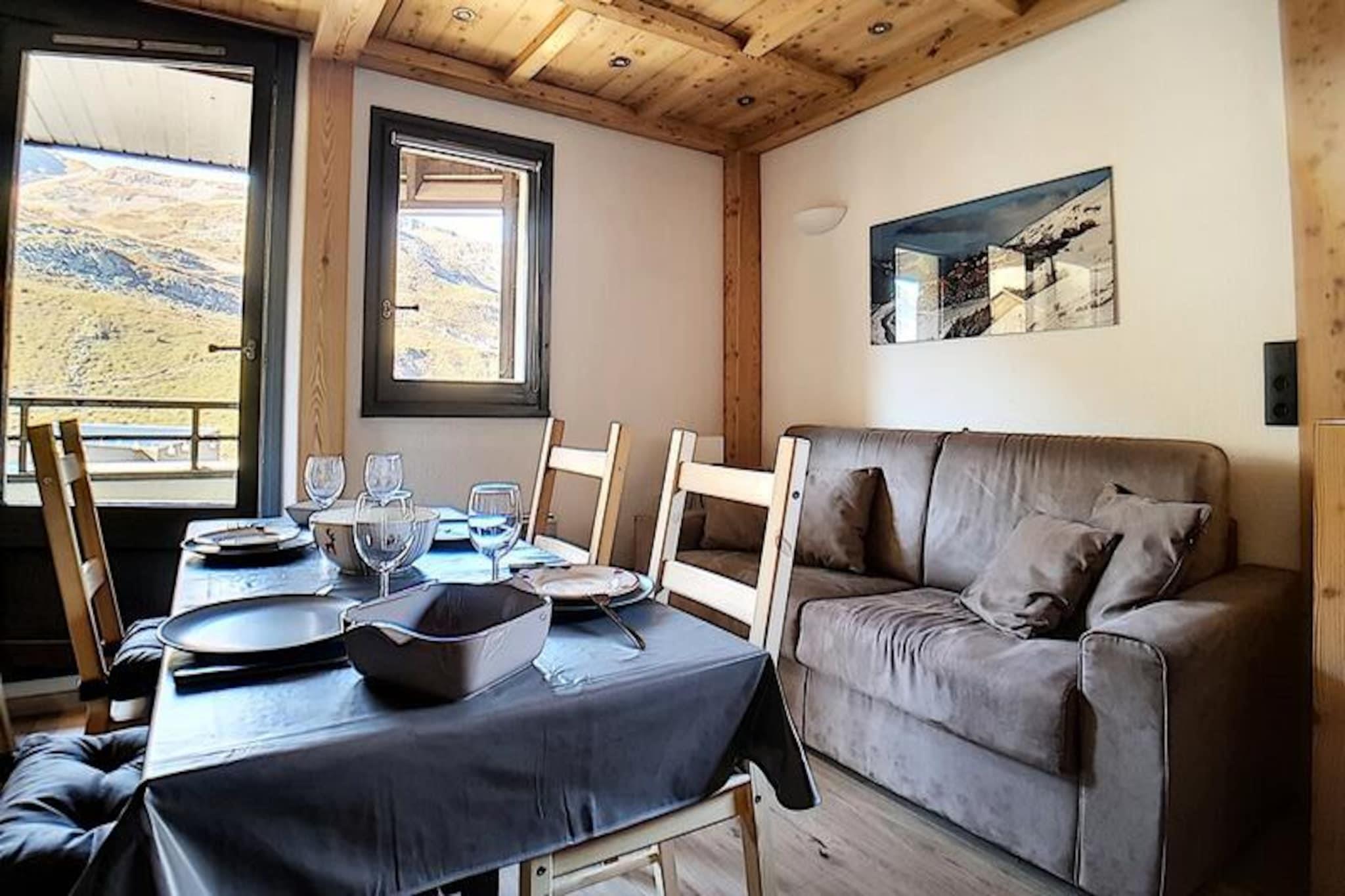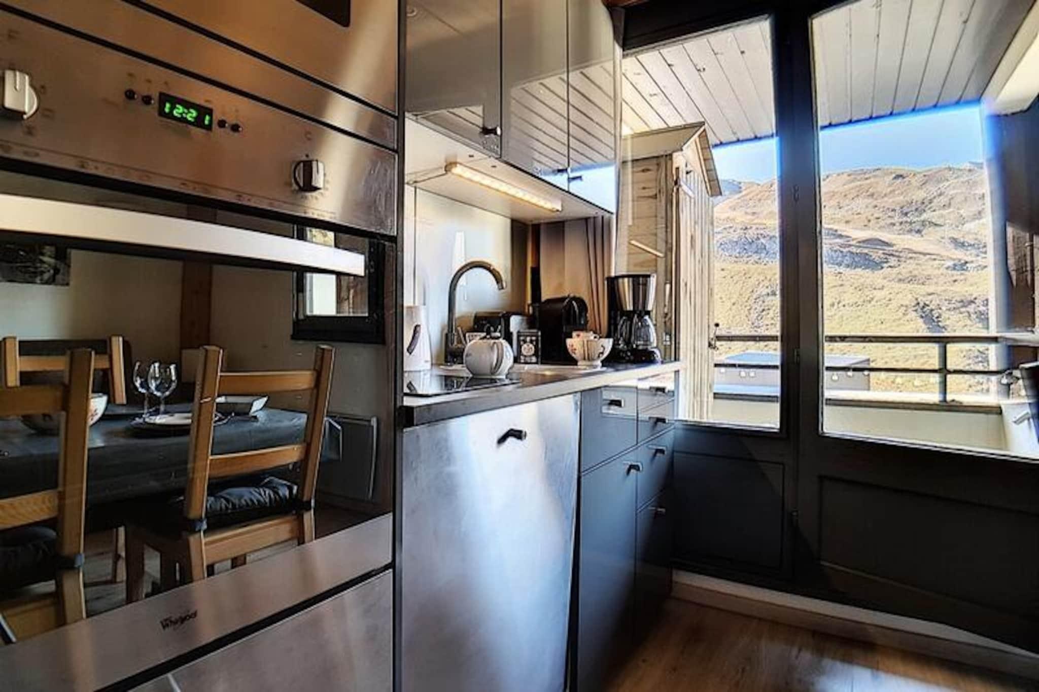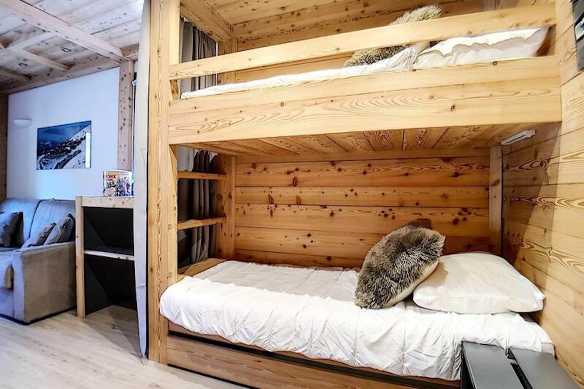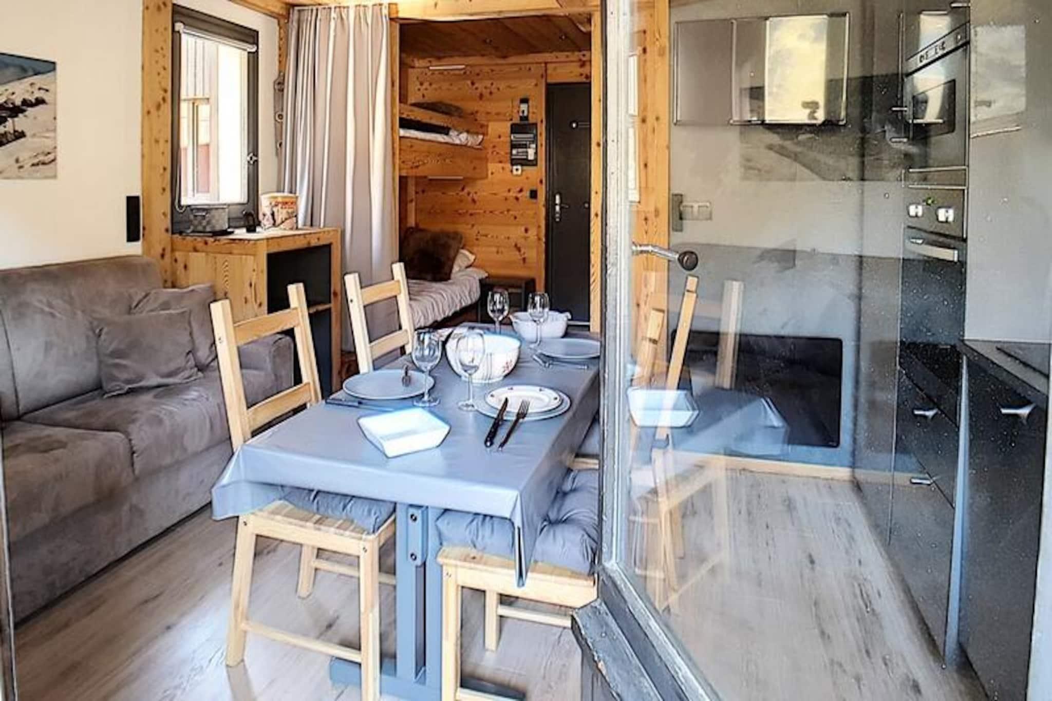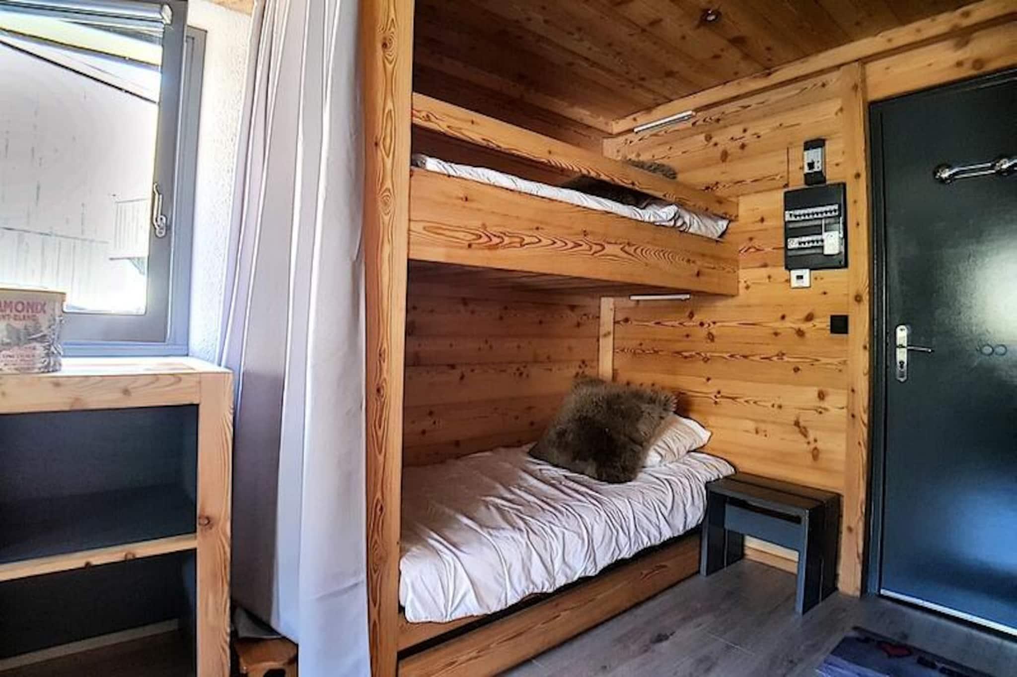 I hjertet af de franske alper, hvor de snedækkede tinder møder den pulserende charme i Les Menuires, tilbyder denne hyggelige studiolejlighed i Gentianes-residensen et idyllisk bjergparadis. Beliggende kun 20 meter fra pisterne er det et paradis for skientusiaster, der er ivrige efter at omfavne spændingen ved Les Trois Vallées, verdens største skiområde. Med en vestvendt balkon kan du slappe af hver aften og nyde de gyldne nuancer af den nedgående sol over det majestætiske alpine landskab. \n\nDette omhyggeligt designede 22 m² store studio har plads til op til fire gæster, hvilket gør det perfekt til par eller små familier. Opholdsstuen har en komfortabel dobbeltsovesofa og en sovealkove med to enkeltkøjesenge, adskilt af et forhæng for ekstra privatliv. Et veludstyret køkken med moderne apparater, herunder keramisk kogeplade, mikrobølgeovn, ovn og opvaskemaskine, sikrer, at du nemt kan tilberede solide måltider efter en dag på pisterne. Badeværelset har bruser og vaskemaskine, mens det separate toilet øger bekvemmeligheden. Med laminatgulv, tv og gratis Wi-Fi (afhængigt af dækning) kombinerer lejligheden rustik charme med moderne komfort.\n\nGentianes-residensen kan prale af fremragende faciliteter, herunder elevator, sikkert adgangssystem og concierge-service. En gangbro forbinder dig til det livlige Bruyères-distrikt, der er hjemsted for restauranter, butikker, en biograf, et vandland og et wellnesscenter. Familier vil sætte pris på den nærliggende skiskole, kælkebane og legeplads. For en afslappet spadseretur ligger det travle Croisette-distrikt kun 15 minutters gang væk via en naturskøn gåsti.\n\nUanset om du er her for at grave dig gennem uberørt sne, udforske den pulserende lokale kultur eller blot slappe af i de rolige alpine omgivelser, tilbyder denne studiolejlighed den perfekte base for dit Les Menuires-eventyr. Med sin uovertrufne beliggenhed og hyggelige atmosfære lover den en uforglemmelig ferie i hjertet af Alperne.