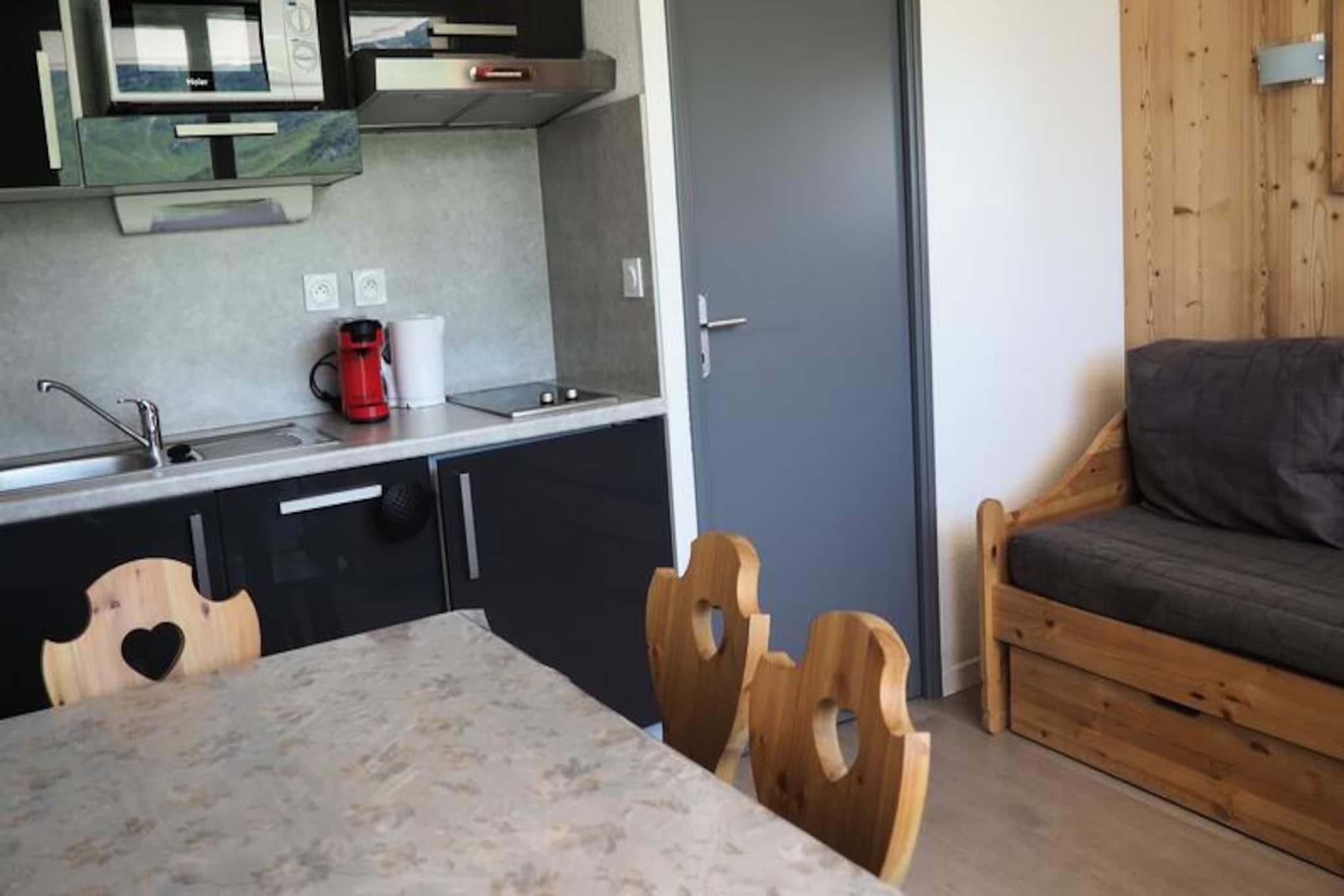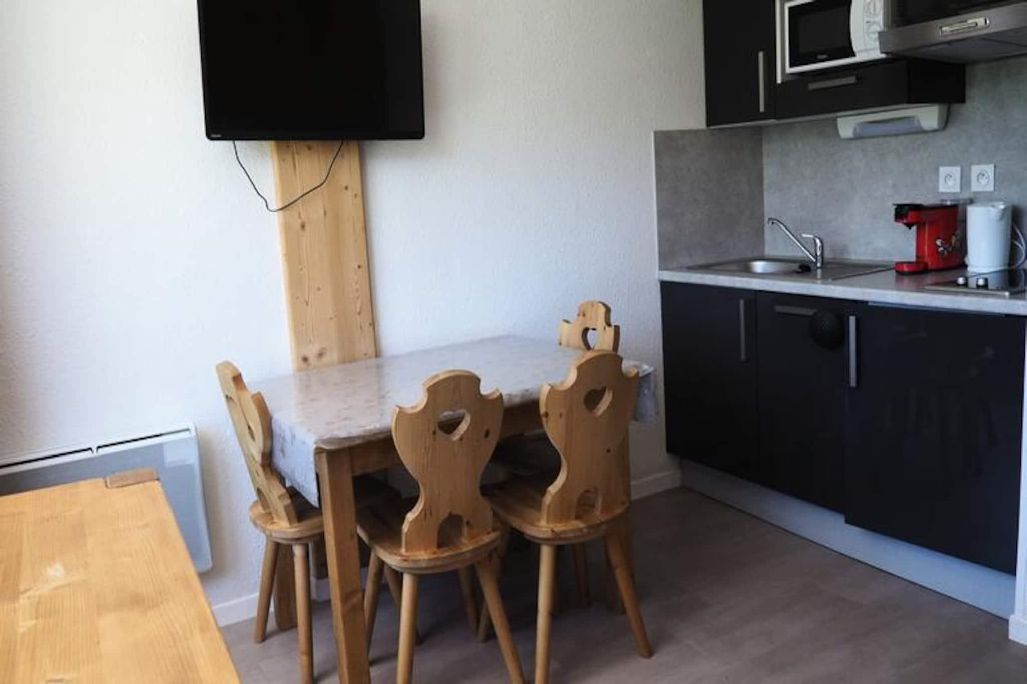 Højt over det travle Reberty 1850-distrikt inviterer denne charmerende studiolejlighed dig til at opleve magien i de franske alper i komfort og stil. Med sin vestvendte balkon vil du blive forkælet med gyldne solnedgange over de snedækkede tinder, hvilket skaber den perfekte kulisse for din alpine flugt. Uanset om du er her for spændende skieventyr eller rolige bjergøjeblikke, tilbyder dette hyggelige tilflugtssted en varm velkomst efter en dag i den friske bjergluft. \n\nLejligheden blev renoveret i 2014 og kombinerer moderne bekvemmeligheder med en praktisk indretning, hvilket gør den ideel til op til tre gæster. Opholdsstuen har en enkelt sovesofa og en udtræksseng, mens en separat sovealkove giver en enkeltseng for ekstra privatliv. Det fuldt udstyrede køkken indeholder alt, hvad du behøver for at tilberede solide måltider, fra en Senseo-kaffemaskine til en mikrobølgeovn og opvaskemaskine. Badeværelset, komplet med badekar, sikrer afslapning efter en dag på pisterne. Med plastikgulv overalt er rummet nemt at vedligeholde, og lejligheden forbliver røgfri og kæledyrsfri for din komfort. \n\nBeliggende kun 250 meter fra pisterne tilbyder residensen nem adgang til skiløb i verdensklasse. Gratis parkering ved foden af ??bygningen sikrer bekvemmelighed, mens nærliggende butikker og en skiskole gør det nemt at planlægge dine dage. Uanset om du er en erfaren skiløber eller nybegynder, henvender beliggenheden sig til alle niveauer af ekspertise. \n\nPerfekt for par eller små familier, dette studie er mere end bare et sted at bo - det er en indgang til uforglemmelige alpine eventyr. Lad Médian-residensen være din hyggelige base for at udforske de betagende landskaber i Reberty 1850, hvor hvert øjeblik føles som et postkort, der kommer til live.