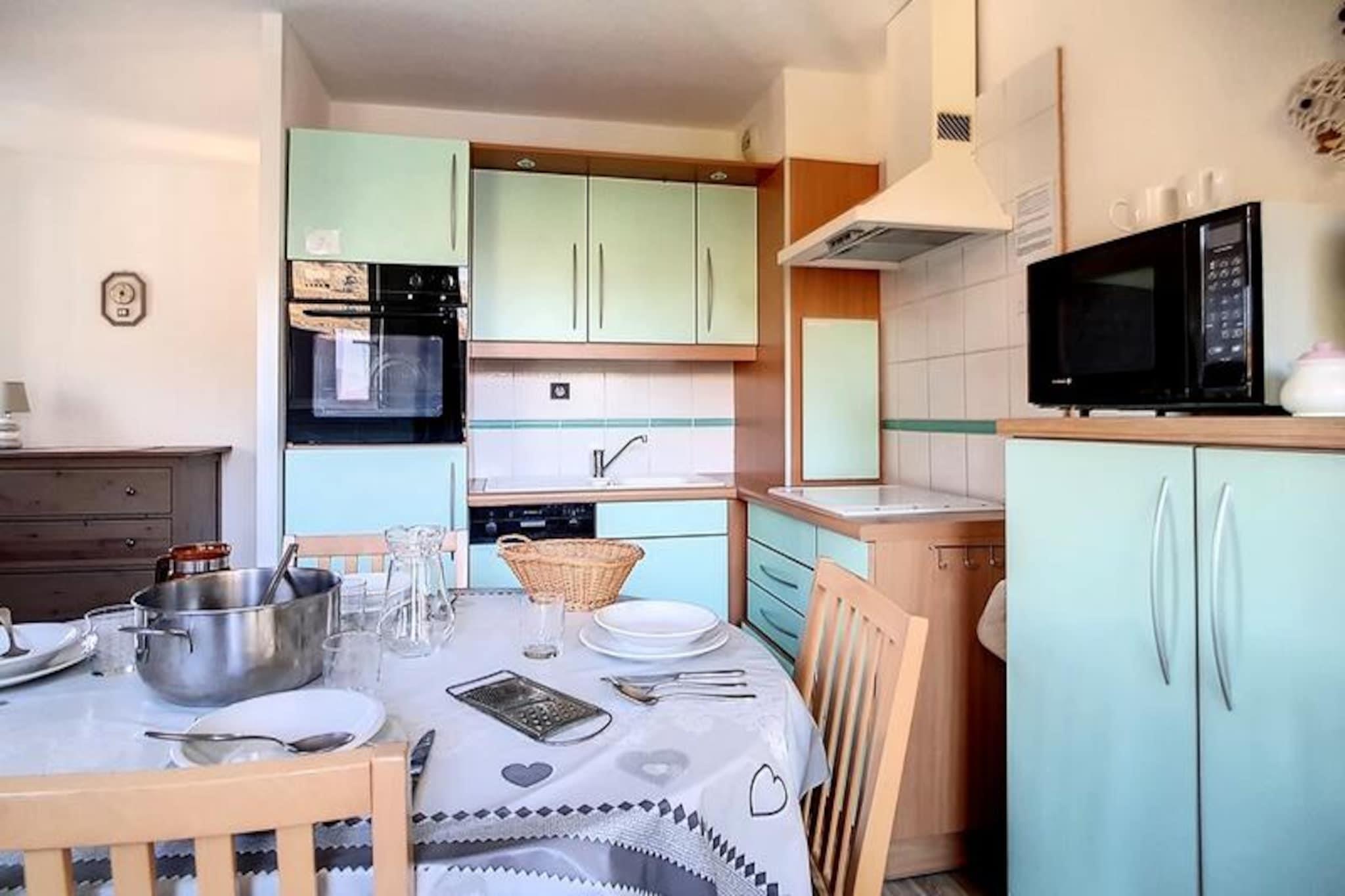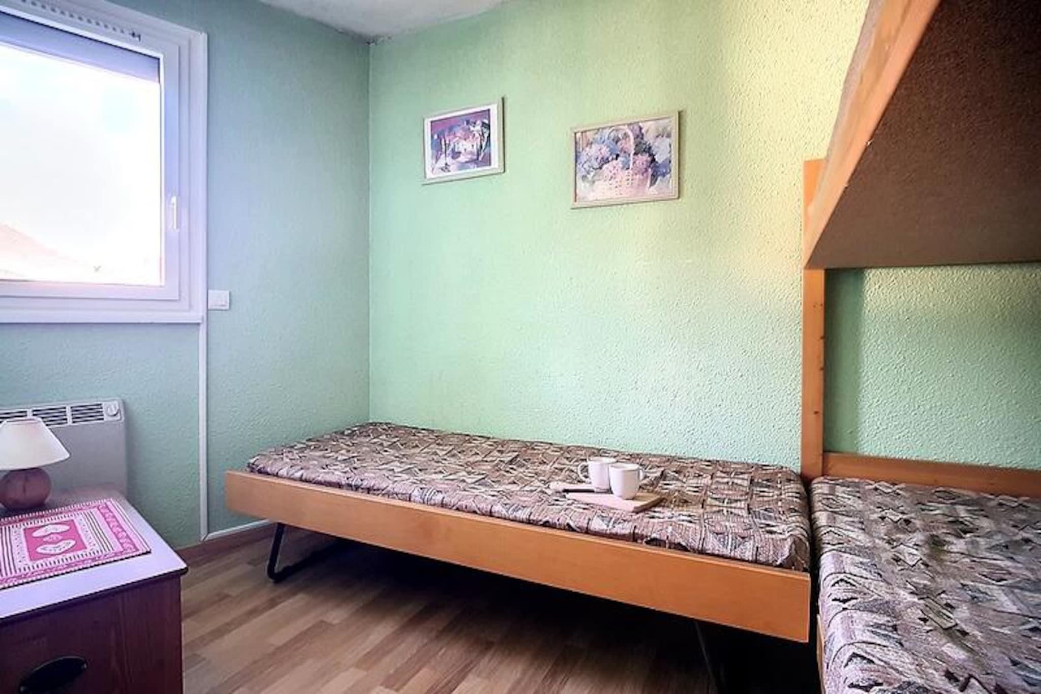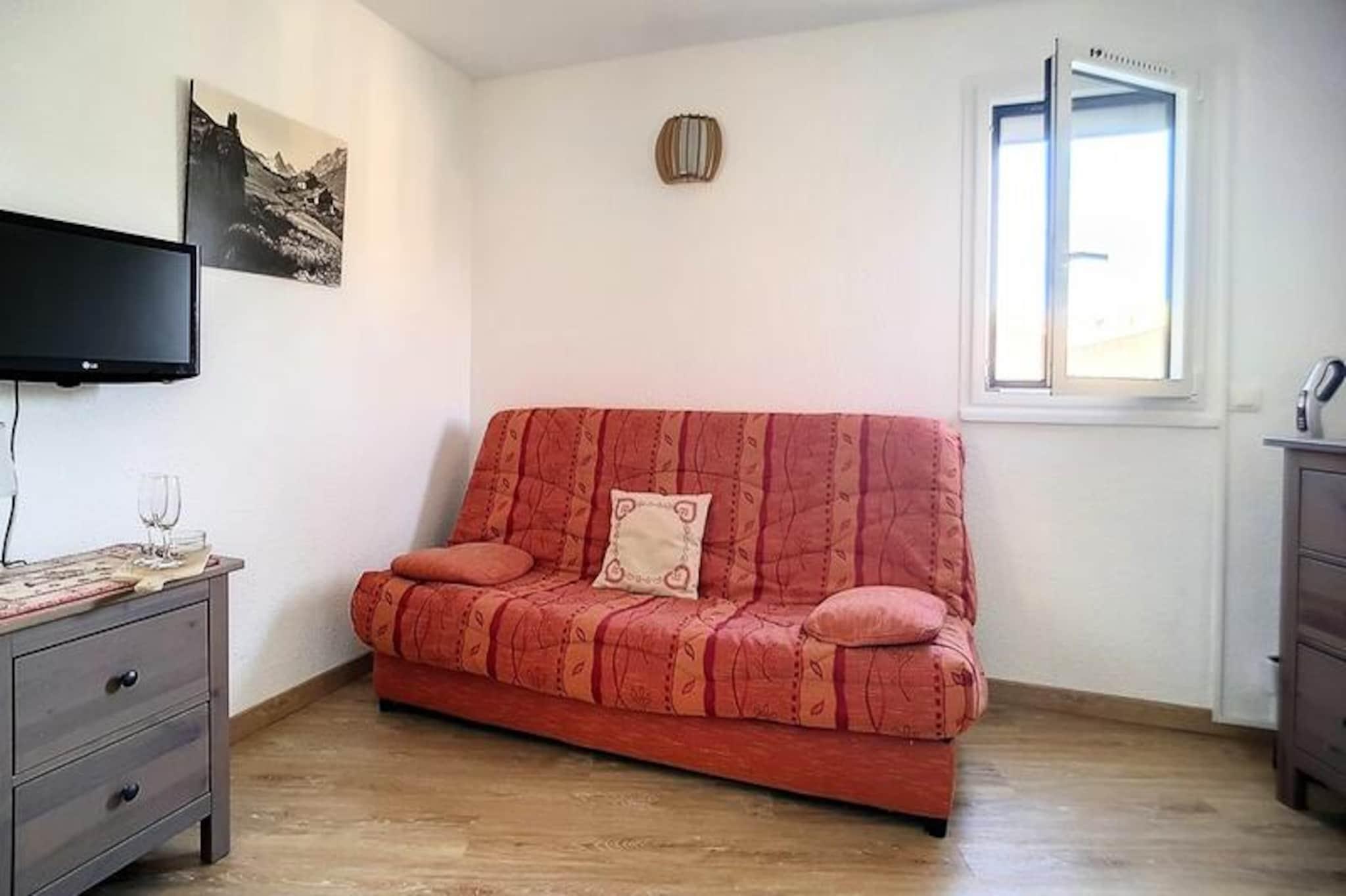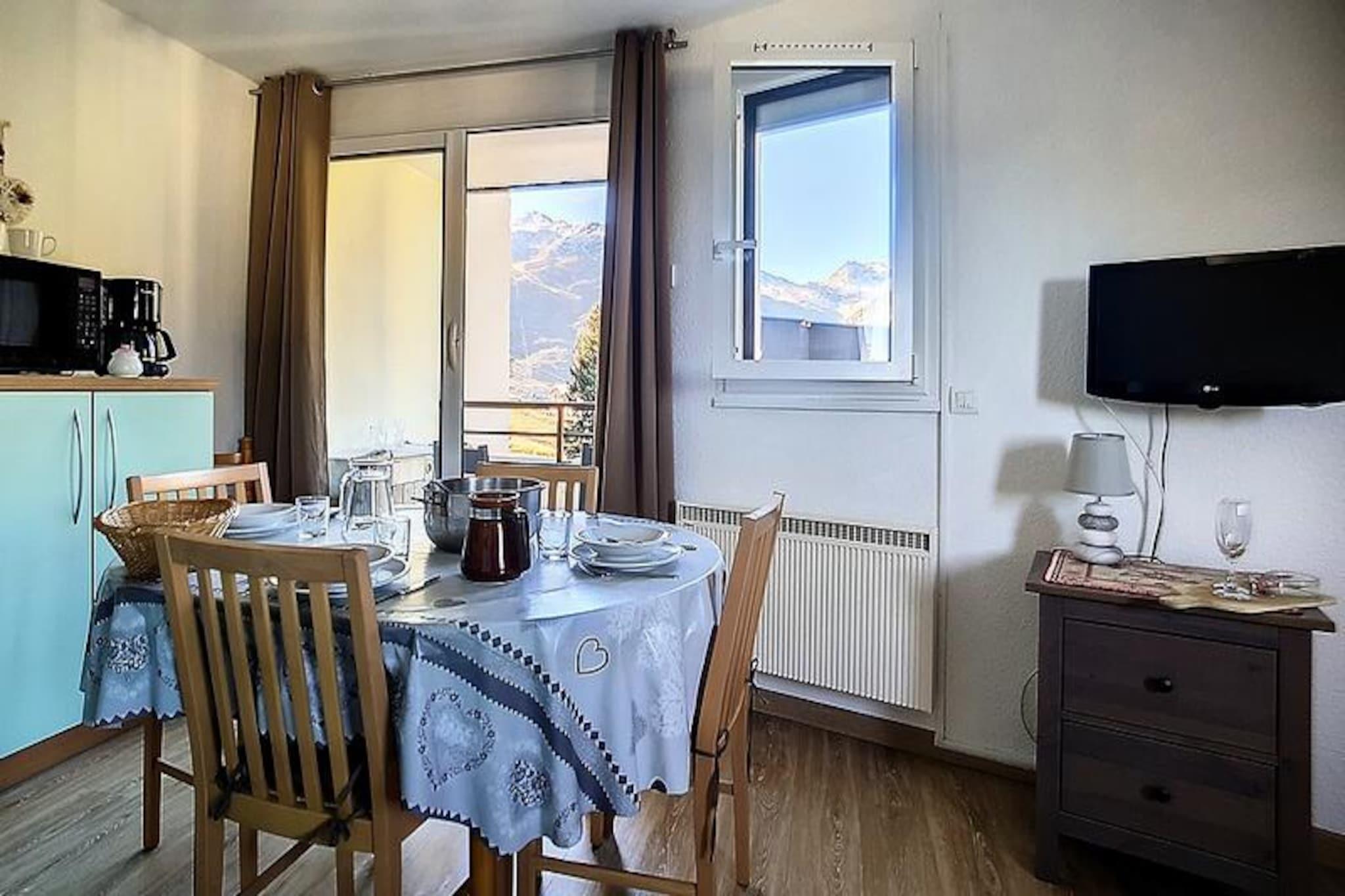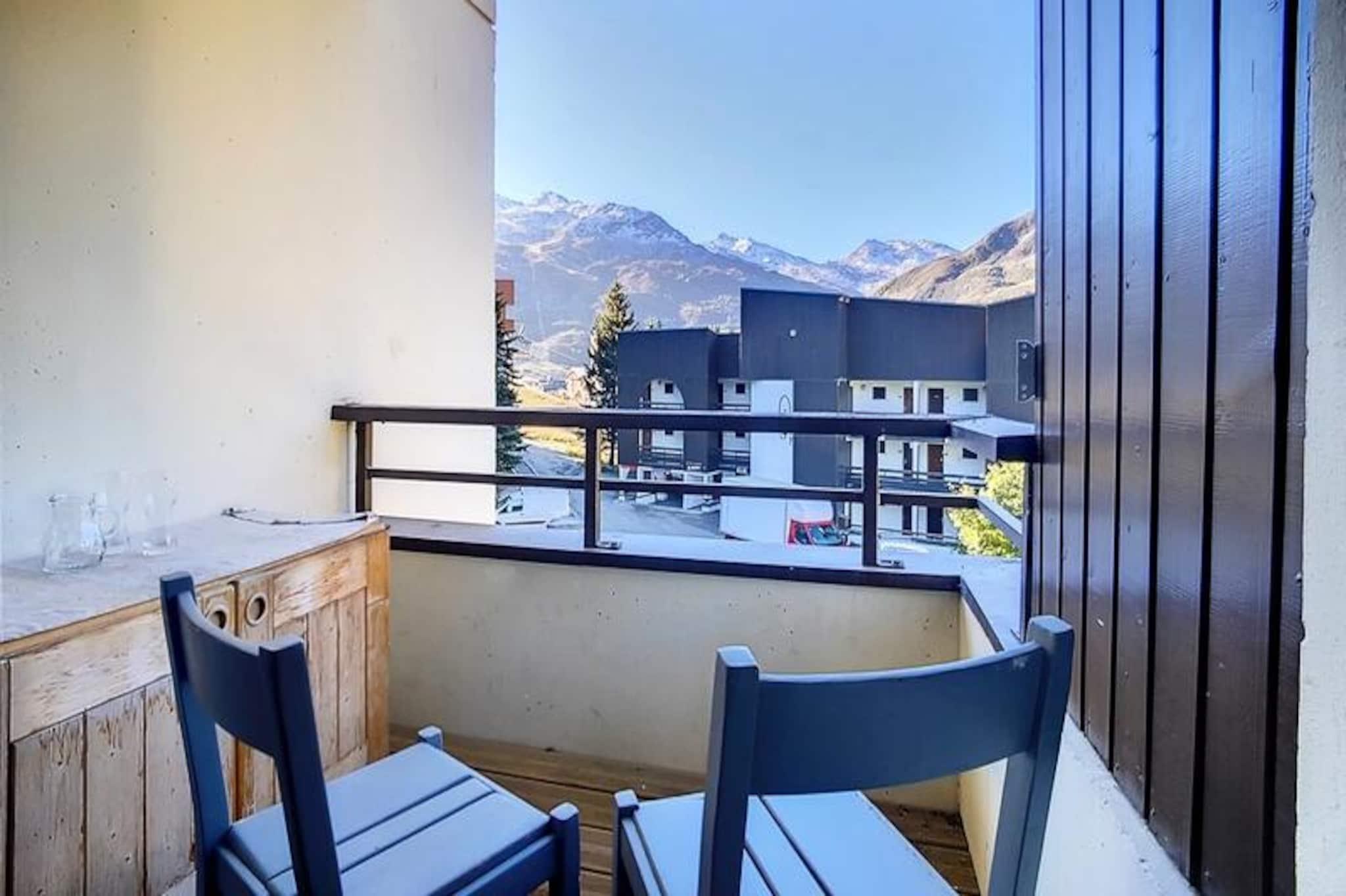 I hjertet af den maleriske Place des Bouquetins tilbyder denne charmerende lejlighed et hyggeligt alpint tilflugtssted kun 20 meter fra pisterne. Forestil dig at træde ud af din dør og være lige ved siden af ??spændende skieventyr, alt imens du er omgivet af de franske alpers fredfyldte skønhed. Med sin sydvestvendte balkon kan du sole dig i eftermiddagssolen, mens du nyder udsigten over den livlige plads nedenfor, hvilket skaber de perfekte rammer for afslapning efter en dag på bjerget. \n\nDenne omhyggeligt designede lejlighed på 32 m² har komfortabel plads til op til fem gæster, hvilket gør den ideel til familier eller små grupper. Stuen har en sovesofa, der kan laves om til en dobbeltseng, mens soveværelset har to enkeltsenge og en ekstra enkeltseng. Det veludstyrede køkken har keramisk kogeplade, grillovn, mikrobølgeovn, køleskab, opvaskemaskine og alt det nødvendige til at tilberede lækre måltider. Moderne bekvemmeligheder såsom gratis Wi-Fi, et tv og elektriske skodder sikrer et behageligt og problemfrit ophold. Lejligheden har også et skiskab for din bekvemmelighed. En gangbro overfor boligen forbinder dig med det pulserende Bruyères-distrikt, hvor du finder et udvalg af restauranter, butikker, en biograf, et vandland og et wellnesscenter. Familier vil sætte pris på den nærliggende kælkebane, skiskole og legeplads. For dem, der ønsker at udforske yderligere, ligger Croisette-distriktet kun 15 minutters gang væk via en naturskøn gåsti. Uanset om du er her for at kæmpe dig gennem frisk puddersne eller blot nyde den alpine charme, tilbyder denne lejlighed en perfekt blanding af komfort, bekvemmelighed og adgang til det bedste af Les Menuires. Skab uforglemmelige minder i denne dejlige bjergferie.