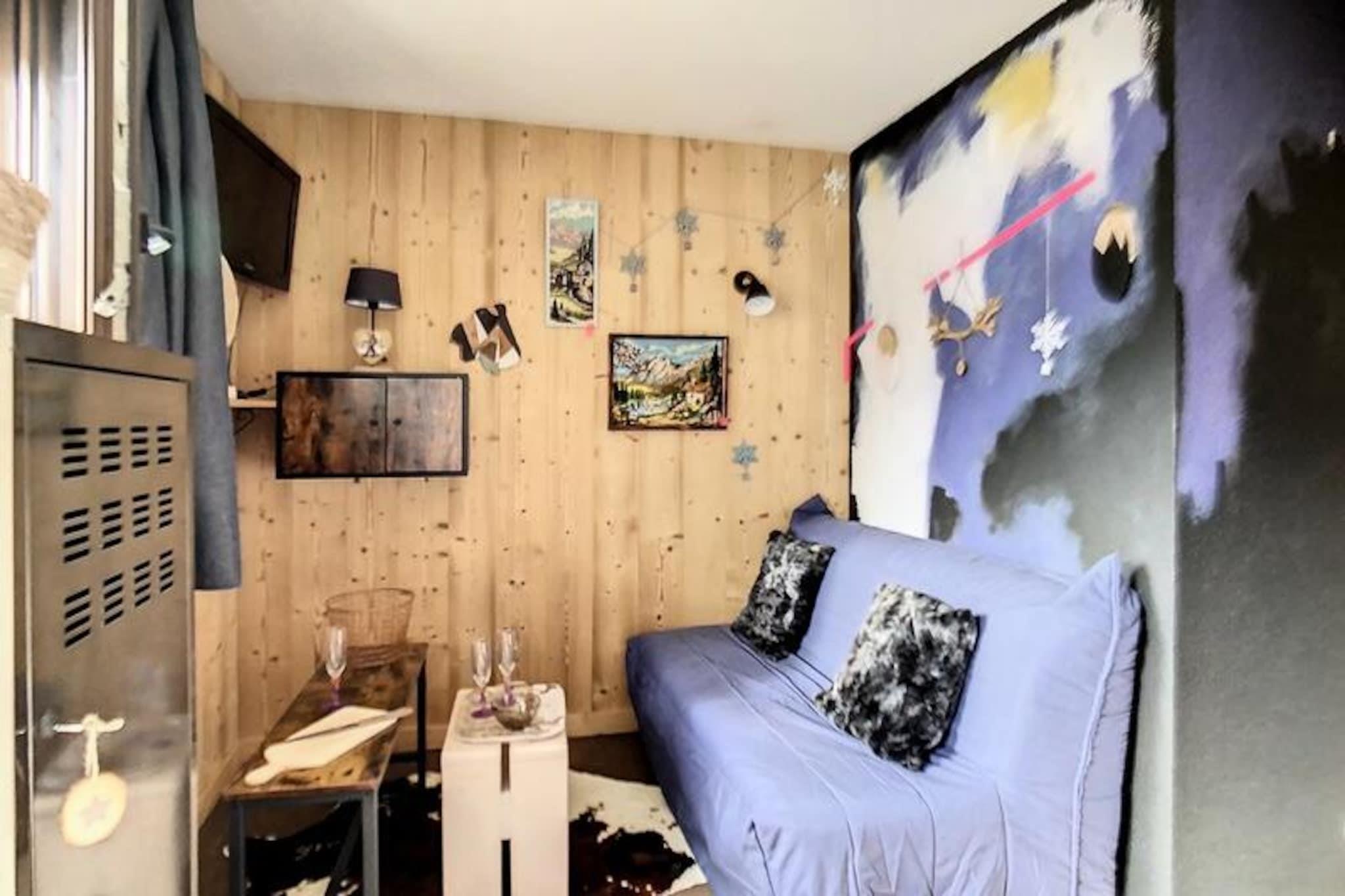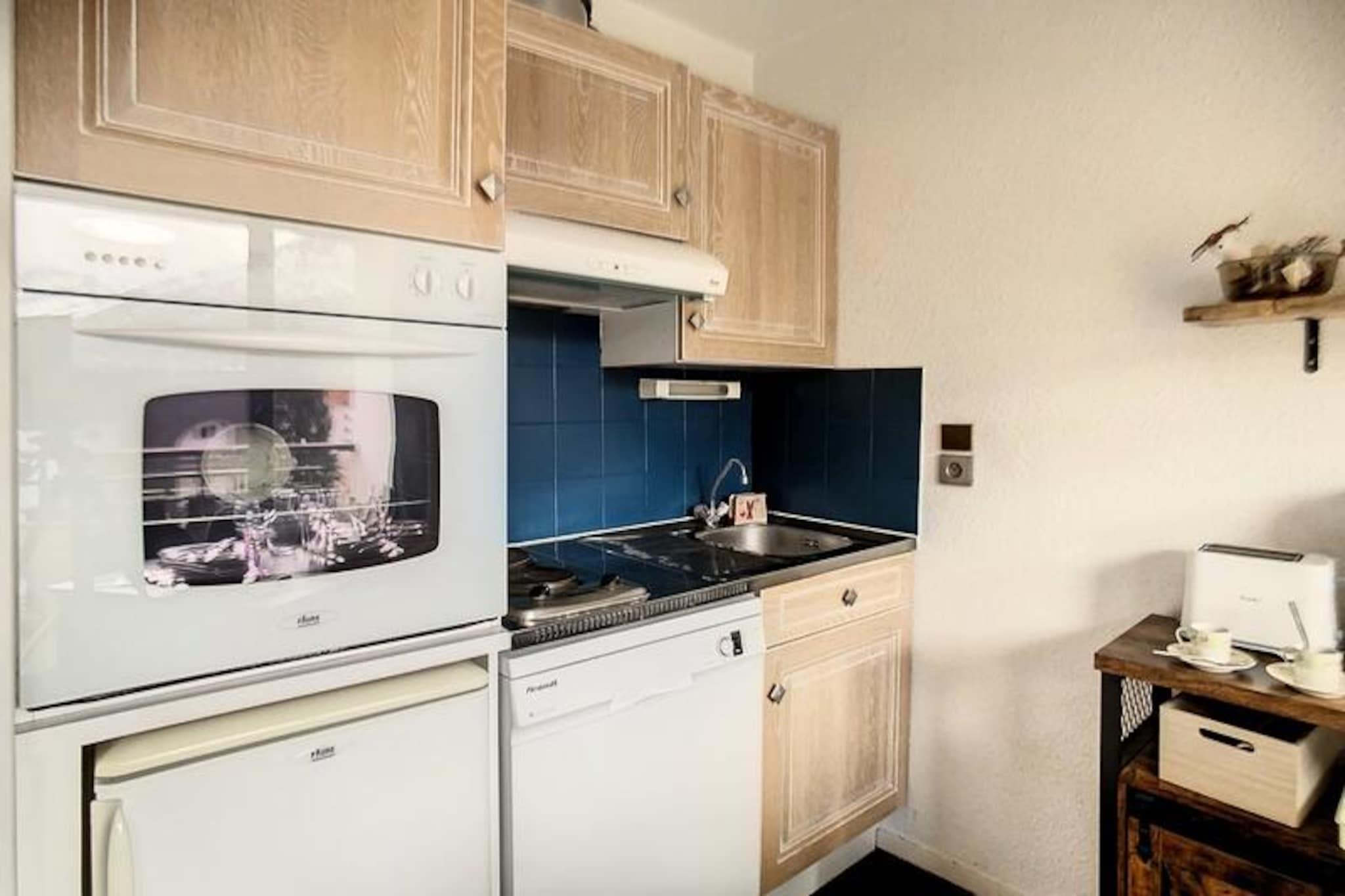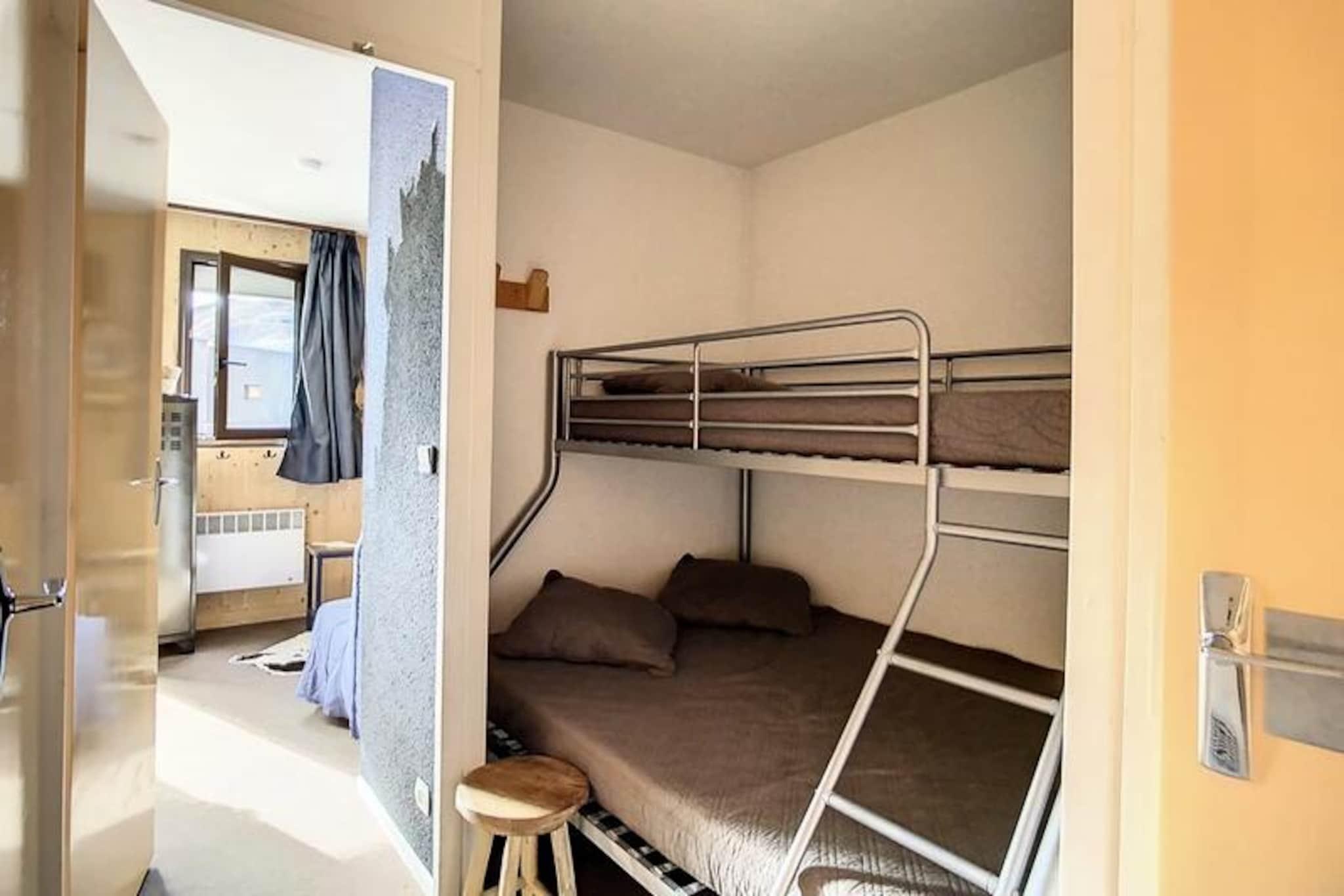 I hjertet af de franske alper, hvor snedækkede tinder møder endeløse blå himmel, tilbyder denne charmerende studiolejlighed i Gentianes-residensen en idyllisk alpin flugt. Beliggende kun 20 meter fra pisterne er det et paradis for både skientusiaster og naturelskere. Forestil dig at vågne op til den friske bjergluft, træde ud på din sydvestvendte balkon og nyde den betagende udsigt, inden du begiver dig ud på en dag med eventyr. \n\nDette hyggelige studio på 24 m² er omhyggeligt designet til at rumme op til fire gæster. Stuen har en komfortabel dobbeltsovesofa og et tv til afslappende aftener. En separat sovealkove, gemt væk bag en dør, tilbyder køjesenge med en enkeltseng ovenpå og en dobbeltseng nedenunder, perfekt til familier eller små grupper. Det veludstyrede køkken indeholder alt, hvad du behøver for at tilberede solide måltider efter en dag på pisterne, fra ovn og mikrobølgeovn til opvaskemaskine og kaffemaskine. Lejligheden kan også prale af et badeværelse med badekar, et separat toilet og gratis Wi-Fi (afhængigt af netværksdækning). Med sit varme, tæppebelagte interiør og kæledyrsvenlige politik føles denne lejlighed som et hjem væk fra hjemmet.\n\nTræd udenfor, og du vil befinder dig kun en gangbro fra det pulserende Bruyères-distrikt. Her kan du udforske en række restauranter, butikker og underholdningsmuligheder, herunder et vandland, wellnesscenter, biograf og endda en kælkebane. For familier er den nærliggende skiskole og legeplads uvurderlige. En kort 15-minutters gåtur langs en naturskøn gåsti fører dig til det livlige Croisette-distrikt, hvilket tilføjer endnu mere til din alpine oplevelse.\n\nUanset om du er her for at kæmpe dig gennem frisk puddersne, slappe af i den fredfyldte bjergatmosfære eller udforske de charmerende lokale landsbyer, tilbyder denne lejlighed den perfekte base for dine eventyr. Lad Alpernes magi skabe minder, der vil vare hele livet.