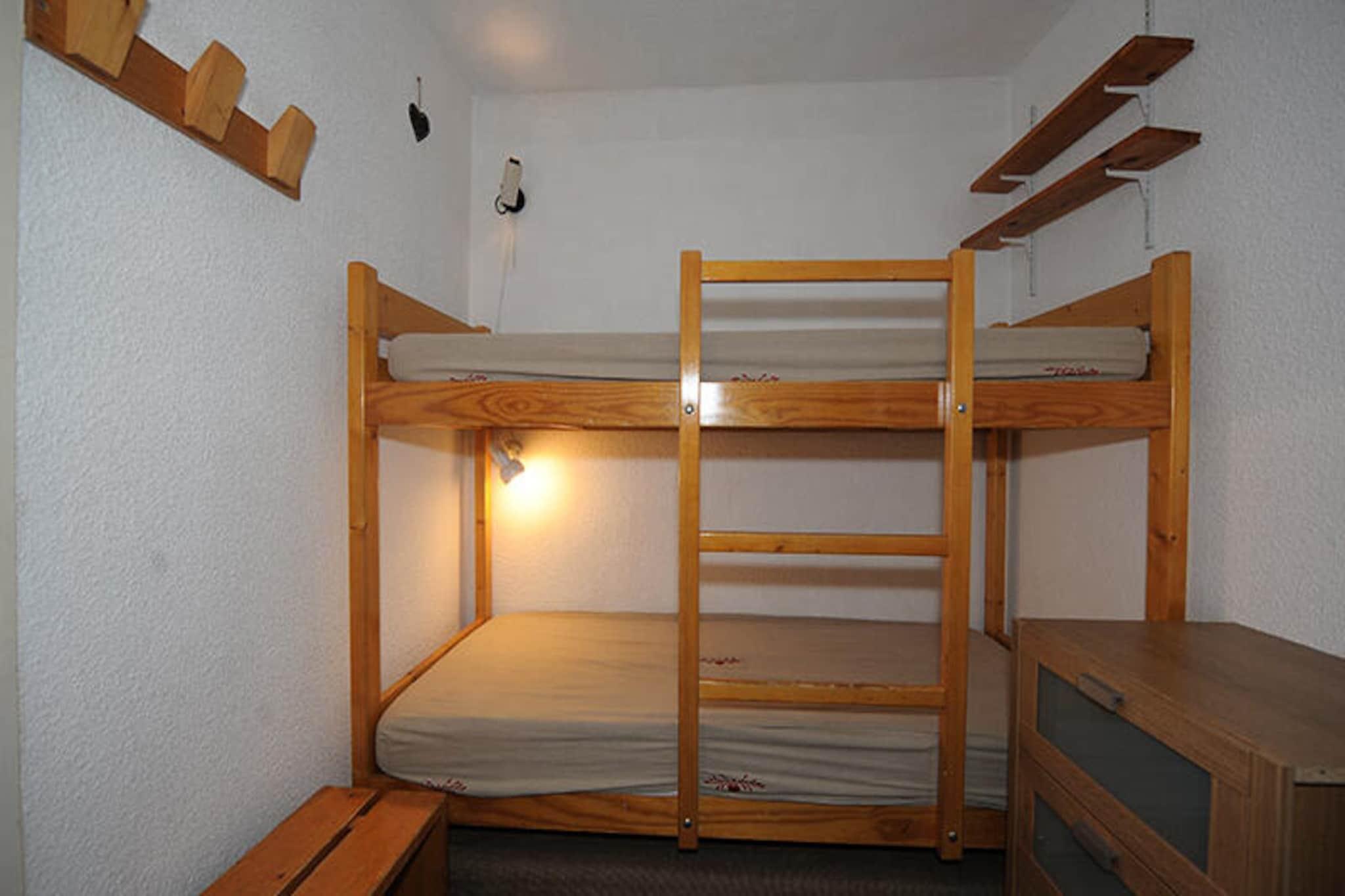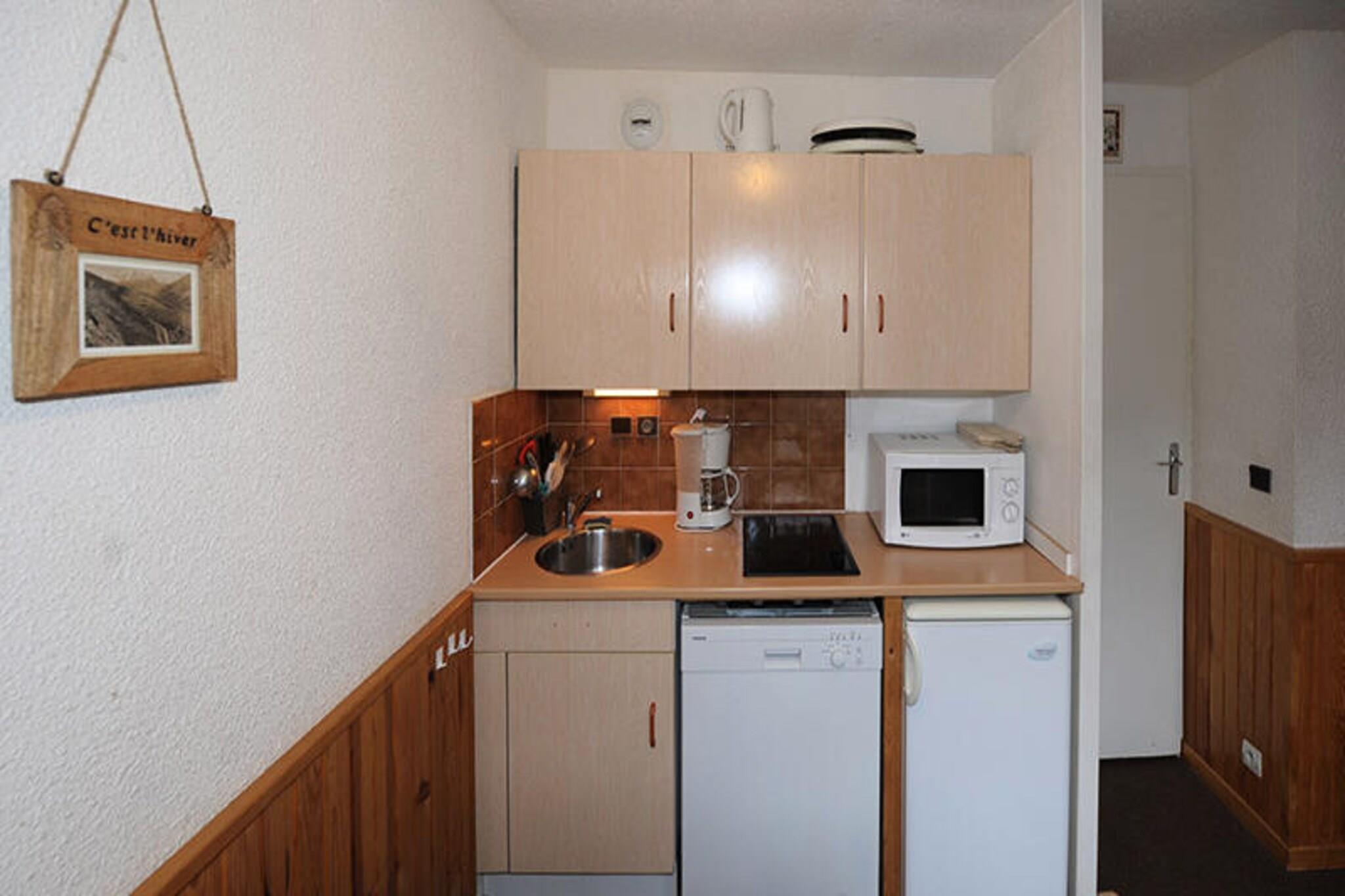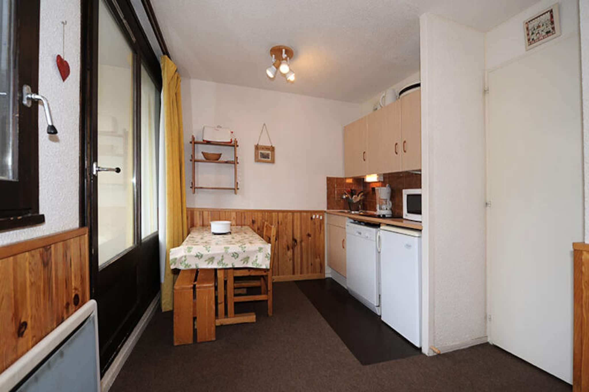 I hjertet af den maleriske Place des Bouquetins tilbyder denne charmerende studiolejlighed et hyggeligt tilflugtssted kun 20 meter fra pisterne, hvilket gør den til et ideelt valg for både skientusiaster og bjergentusiaster. Med sin vestvendte balkon kan du slappe af efter en dag med eventyr, mens du nyder den fredfyldte alpine udsigt og de gyldne solnedgange, der maler horisonten. Boligen kombinerer bekvemmelighed og komfort og sikrer et mindeværdigt ophold i de franske alper. \n\nLejligheden, der er omhyggeligt designet til at rumme op til fire gæster, har en sovealkove med to enkeltsenge og en stue udstyret med en enkelt sovesofa og en udtræksseng. Det kompakte, men funktionelle køkken inkluderer moderne bekvemmeligheder såsom keramisk kogeplade, mikrobølgeovn, køleskab, opvaskemaskine og kaffemaskine, hvilket gør det nemt at tilberede solide måltider efter en dag på pisterne. Et separat badeværelse og toilet bidrager til det praktiske, mens gratis Wi-Fi sikrer, at du forbliver forbundet under hele din ferie. Lejligheden er røgfri og kæledyrsfri, hvilket giver et rent og indbydende miljø for alle gæster. \n\nTræd udenfor og oplev det pulserende Bruyères-distrikt via gangbroen overfor boligen. Her finder du et udvalg af restauranter, butikker, et turistkontor, et vandland, et wellnesscenter, en biograf og endda en kælkebane og skiskole. Familier vil sætte pris på den nærliggende legeplads, mens Croisette-kvarteret, kun 15 minutters gang væk, tilbyder yderligere attraktioner og faciliteter. \n\nUanset om du søger spændende skieventyr, afslappende wellnessoplevelser eller blot en fredelig alpin flugt, er denne studiolejlighed på Gentianes Residence din port til den fortryllende skønhed og spænding i Les Menuires. Skab uforglemmelige minder i disse idylliske bjergomgivelser.