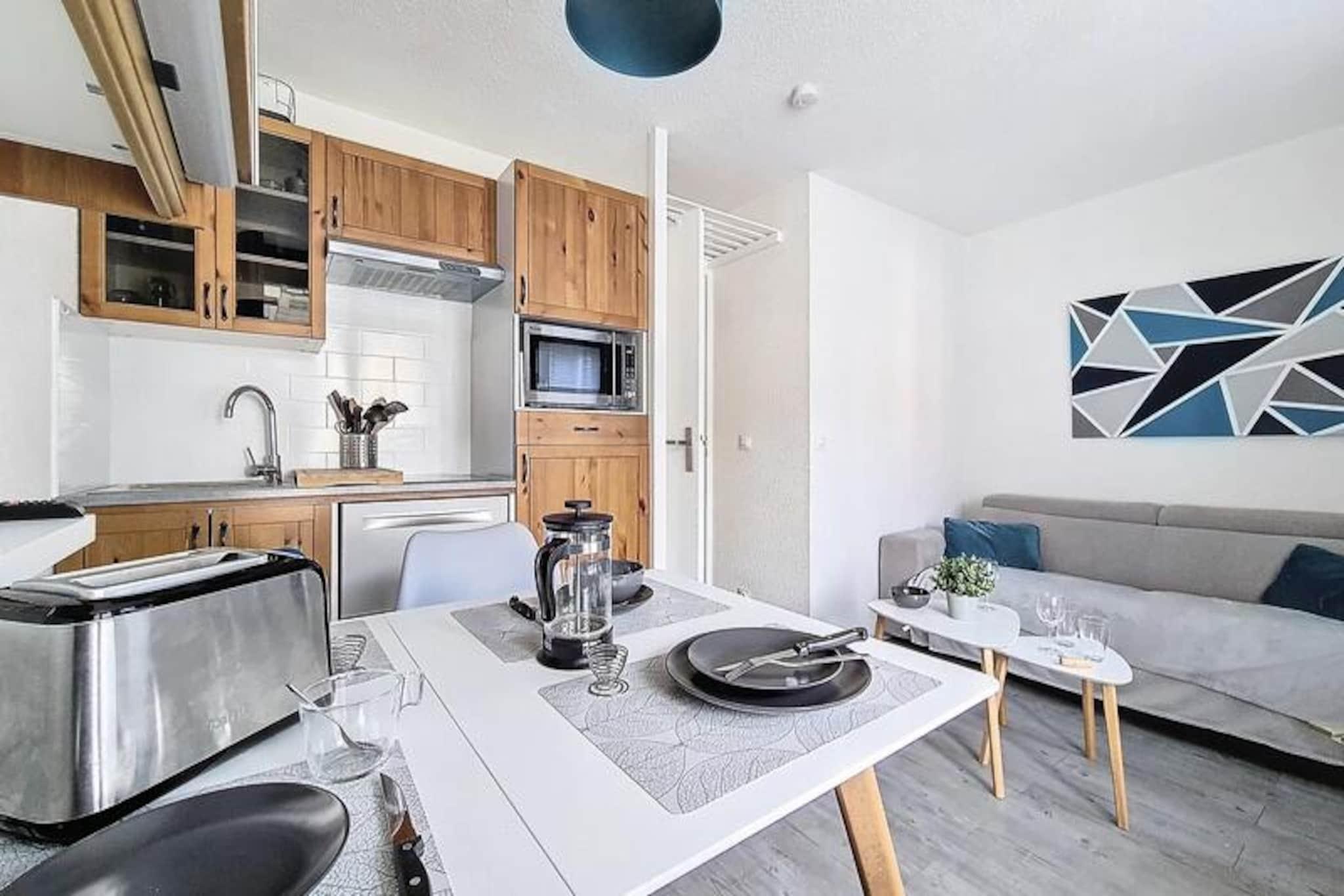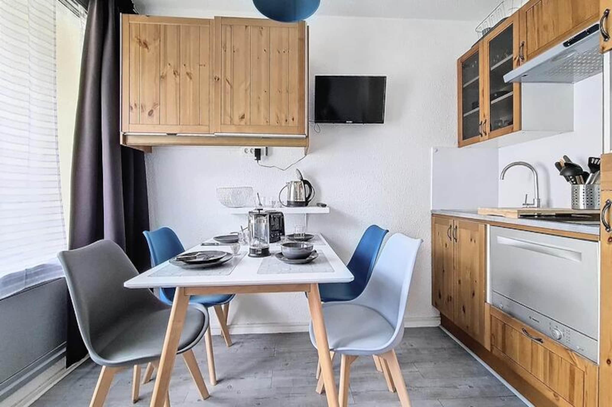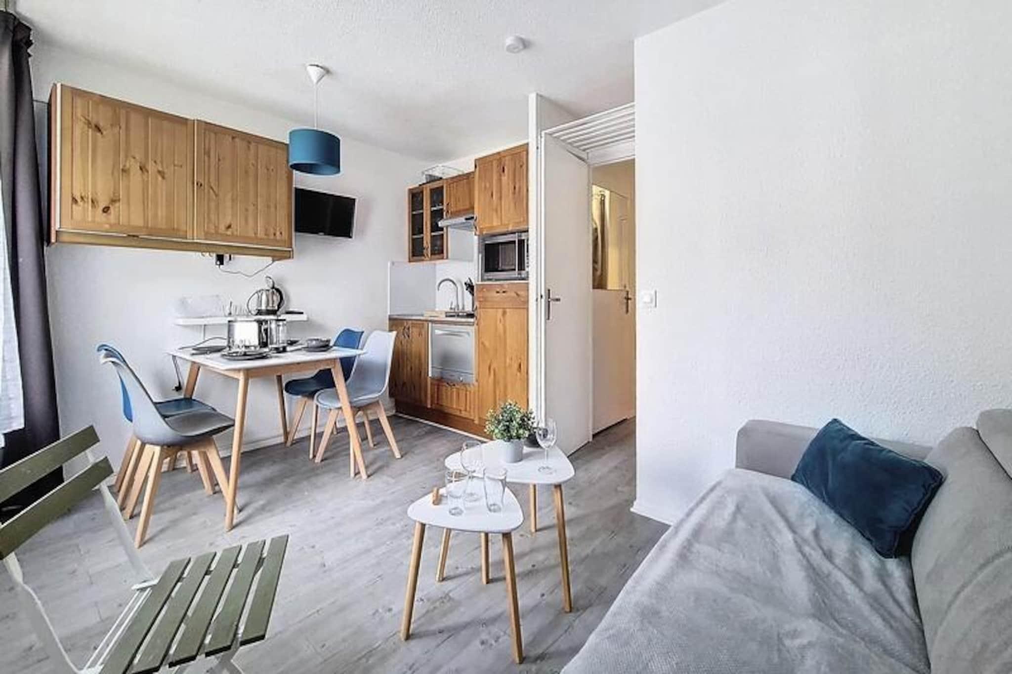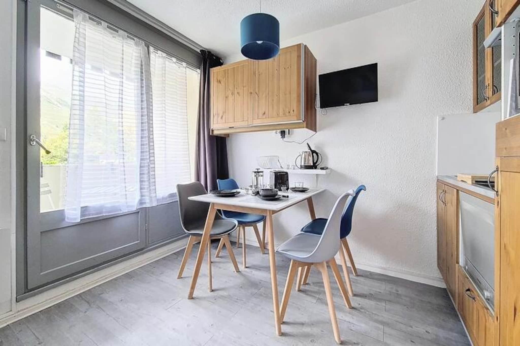 Denne charmerende studiolejlighed ligger midt i den pulserende atmosfære på Place des Bouquetins og inviterer dig til at opleve magien i de franske alper. Med pisterne kun 20 meter væk begynder dine alpine eventyr i det øjeblik, du træder udenfor. Boligen tilbyder en blanding af komfort og bekvemmelighed, hvilket gør den til et ideelt tilflugtssted for par eller små familier, der søger en hyggelig bjergferie. Forestil dig at slappe af på din vestvendte balkon, nyde den fredfyldte udsigt, mens solen går ned over bjergtoppene, eller slentre over gangbroen for at udforske det livlige Bruyères-distrikt med dets udvalg af restauranter, butikker og underholdningsmuligheder. \n\nIndenfor er den 23 m² store studiolejlighed omhyggeligt designet til at rumme op til fire gæster. Stuen har en komfortabel dobbeltsovesofa og et tv til afslappede aftener. En sovealkove, adskilt af en dør, tilbyder en enkeltseng og en mezzanin-dobbeltseng, der sikrer en god nats søvn. Det veludstyrede køkken inkluderer elektriske kogeplader, mikrobølgeovn, køleskab, opvaskemaskine, brødrister og kaffemaskine, hvilket gør det nemt at tilberede måltider efter en dag på pisterne. Lejligheden kan også prale af laminatgulv, et moderne badeværelse med bruser og et separat toilet for ekstra bekvemmelighed.\n\nGentianes-residensen forbedrer dit ophold med faciliteter såsom elevator, sikkert adgangssystem, concierge-service og gratis Wi-Fi (afhængigt af dækning). Familier vil sætte pris på den nærliggende skiskole, kælkebane og legeplads, mens wellness-entusiaster kan forkæle sig selv med et besøg i vandlandet og spaen. Croisette-distriktet, en naturskøn 15-minutters gåtur væk, tilbyder endnu mere at udforske.\n\nUanset om du er her for at stå på ski, slappe af eller blot nyde den alpine charme, er dette studie den perfekte base for uforglemmelige minder i hjertet af de franske alper.