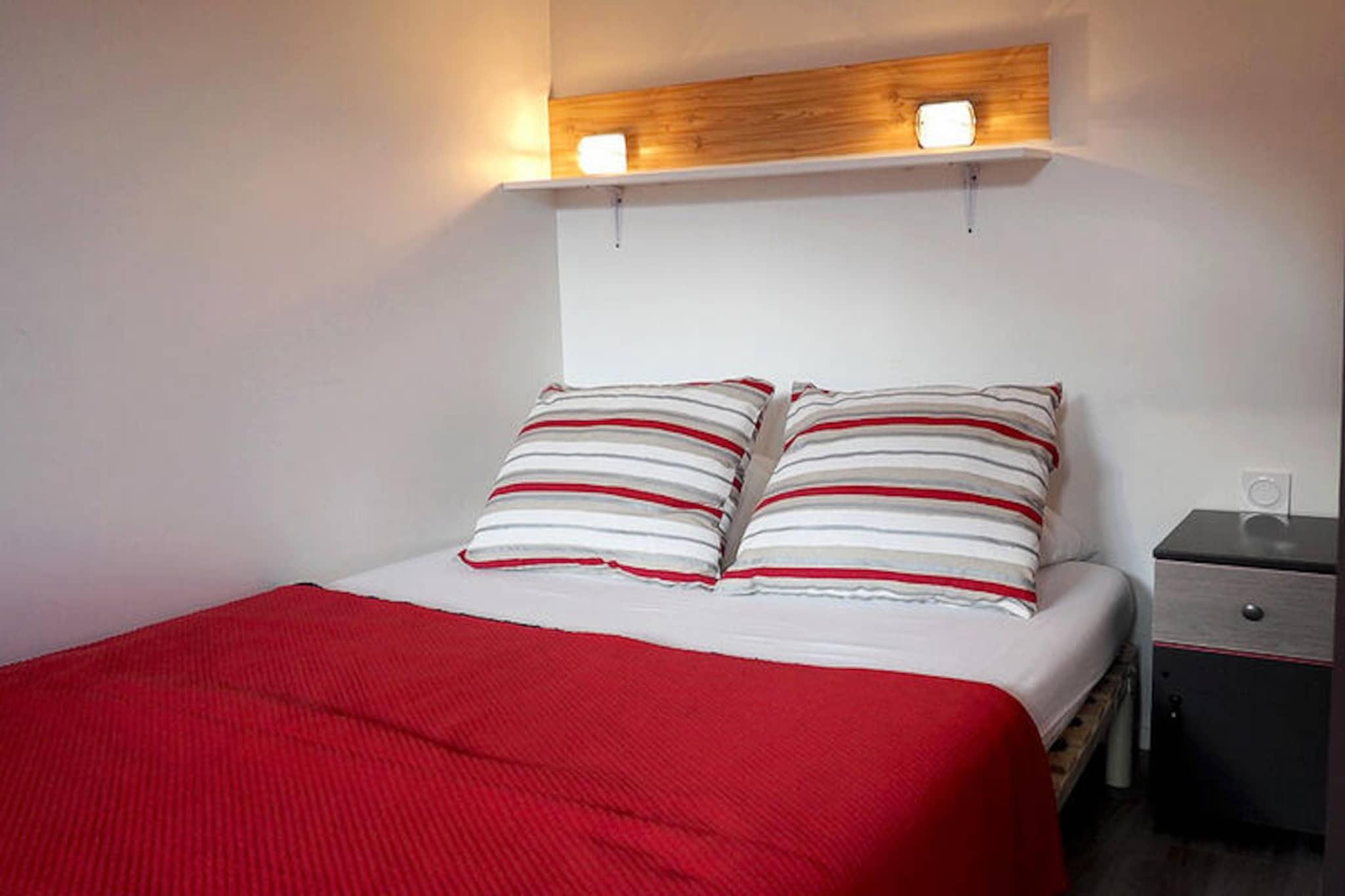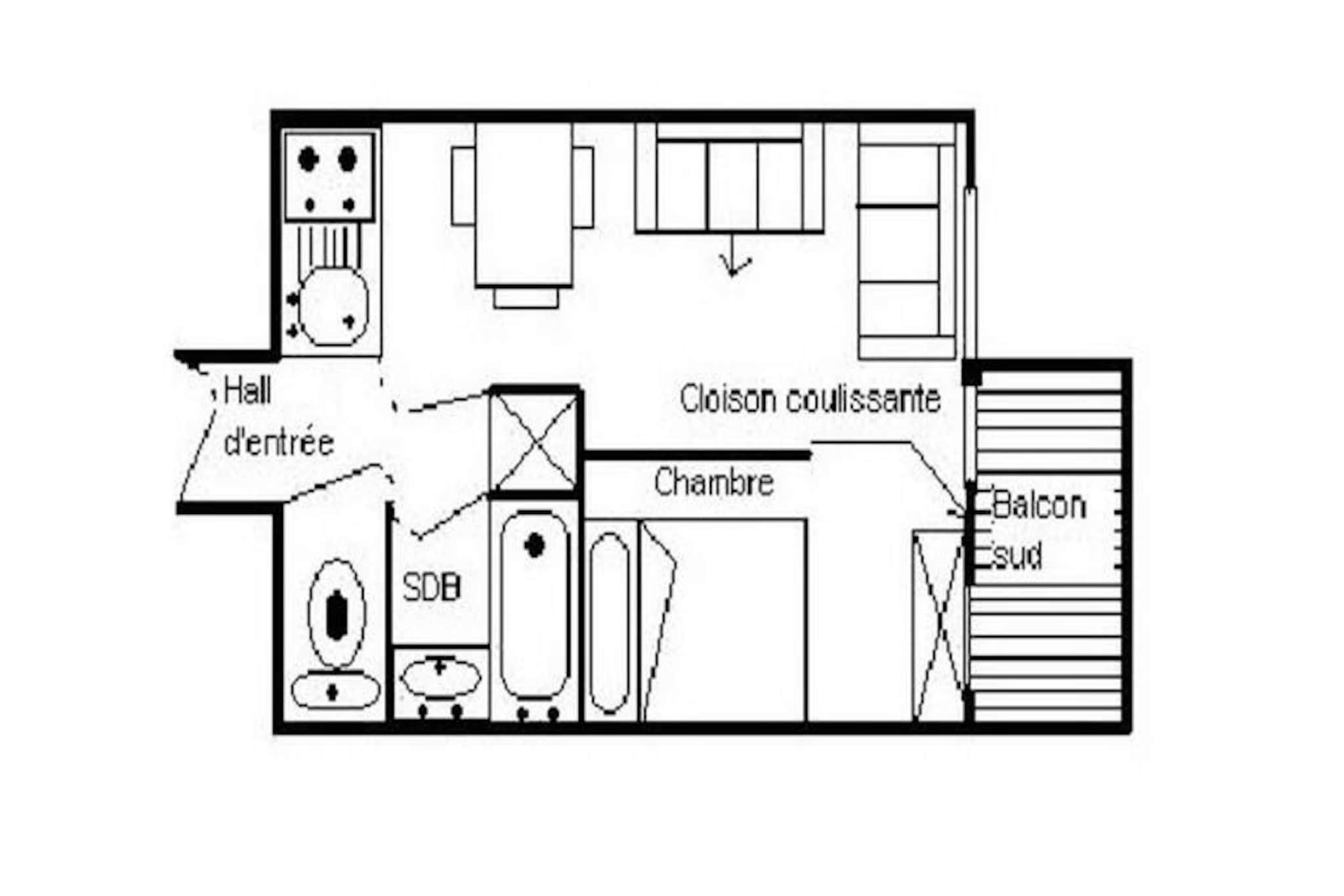 Højt over den travle Place des Bouquetins inviterer denne charmerende lejlighed dig til at opleve magien i de franske alper med ski-in/ski-out bekvemmelighed. Forestil dig at træde ud på din sydvestvendte balkon, nyde den alpine sol og indånde den friske bjergluft, inden du tager direkte til pisterne. Boedette D-residensen tilbyder en perfekt blanding af komfort og tilgængelighed, hvilket gør den til et ideelt tilflugtssted for par eller små familier, der søger en uforglemmelig alpeferie. Med sin førsteklasses beliggenhed sikrer residensen, at du aldrig er langt fra begivenhedernes centrum, samtidig med at den opretholder en fredelig atmosfære. \n\nIndenfor er den 25 m² store lejlighed omhyggeligt designet til at maksimere plads og komfort. Stuen har en hyggelig sovesofa og udtræksseng, suppleret med et tv til afslappede aftener. Soveværelset har en dobbeltseng, perfekt til at slappe af efter en dag med eventyr. Køkkenet er fuldt udstyret med moderne bekvemmeligheder, herunder keramisk kogeplade, ovn, køleskab, opvaskemaskine og essentielle apparater som kaffemaskine og brødrister. Badeværelset har et badekar til afslappende afslapning, mens det separate toilet øger bekvemmeligheden. Linoleumsgulve overalt sikrer et rent og praktisk miljø, og lejligheden er strengt røgfri og kæledyrsfri for ekstra komfort. \n\nUd over boligen forbinder en gangbro dig med det livlige Bruyères-distrikt, hvor du finder et udvalg af restauranter, butikker og underholdningsmuligheder. Fra vandland og wellnesscenter til biograf og kælkebane er der noget for enhver smag. Familier vil sætte pris på skiskolen og legepladsen, mens Croisette-distriktet, kun 15 minutters gang væk, tilbyder endnu flere attraktioner. Uanset om du er her for at stå på ski, slappe af eller udforske den pulserende lokale kultur, placerer denne lejlighed dig i hjertet af det hele. \n\nMed sin hyggelige atmosfære, uovertrufne beliggenhed og gennemtænkte faciliteter lover dette alpine tilflugtssted et mindeværdigt ophold i den fortryllende Les Menuires-region. Lad bjergenes skønhed og bekvemmeligheden ved Boedette D-residensen skabe varige minder til din næste ferie.