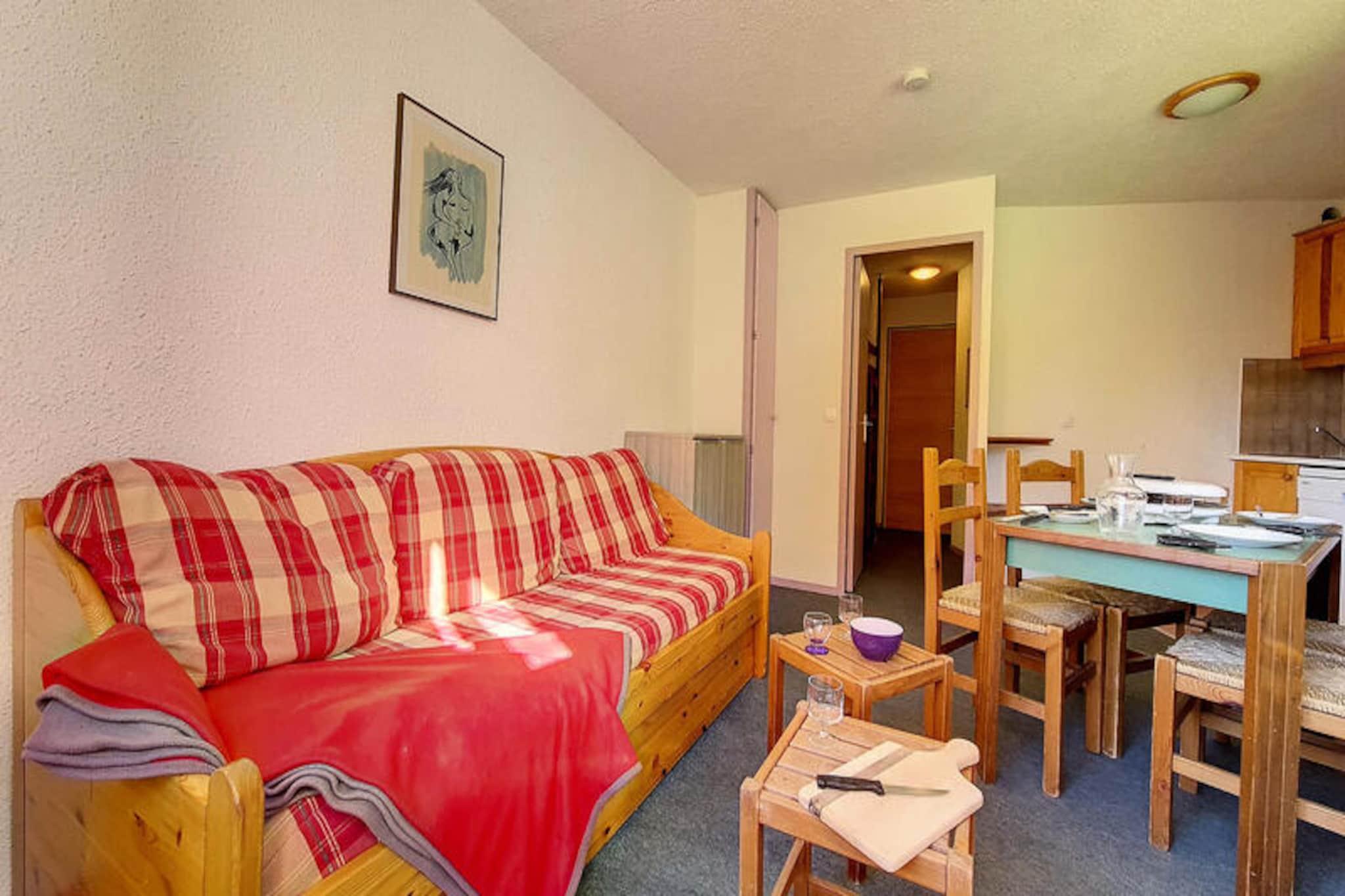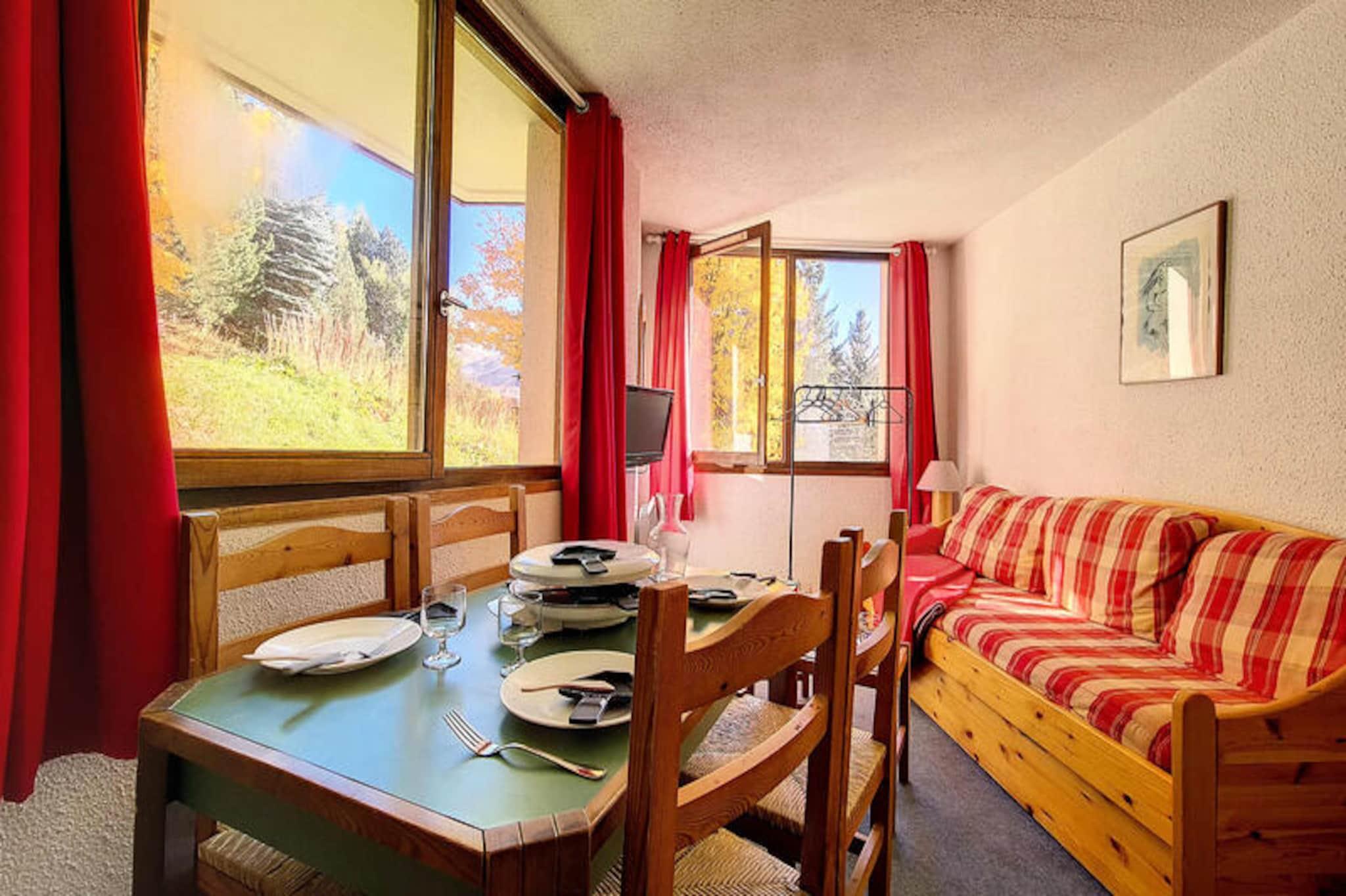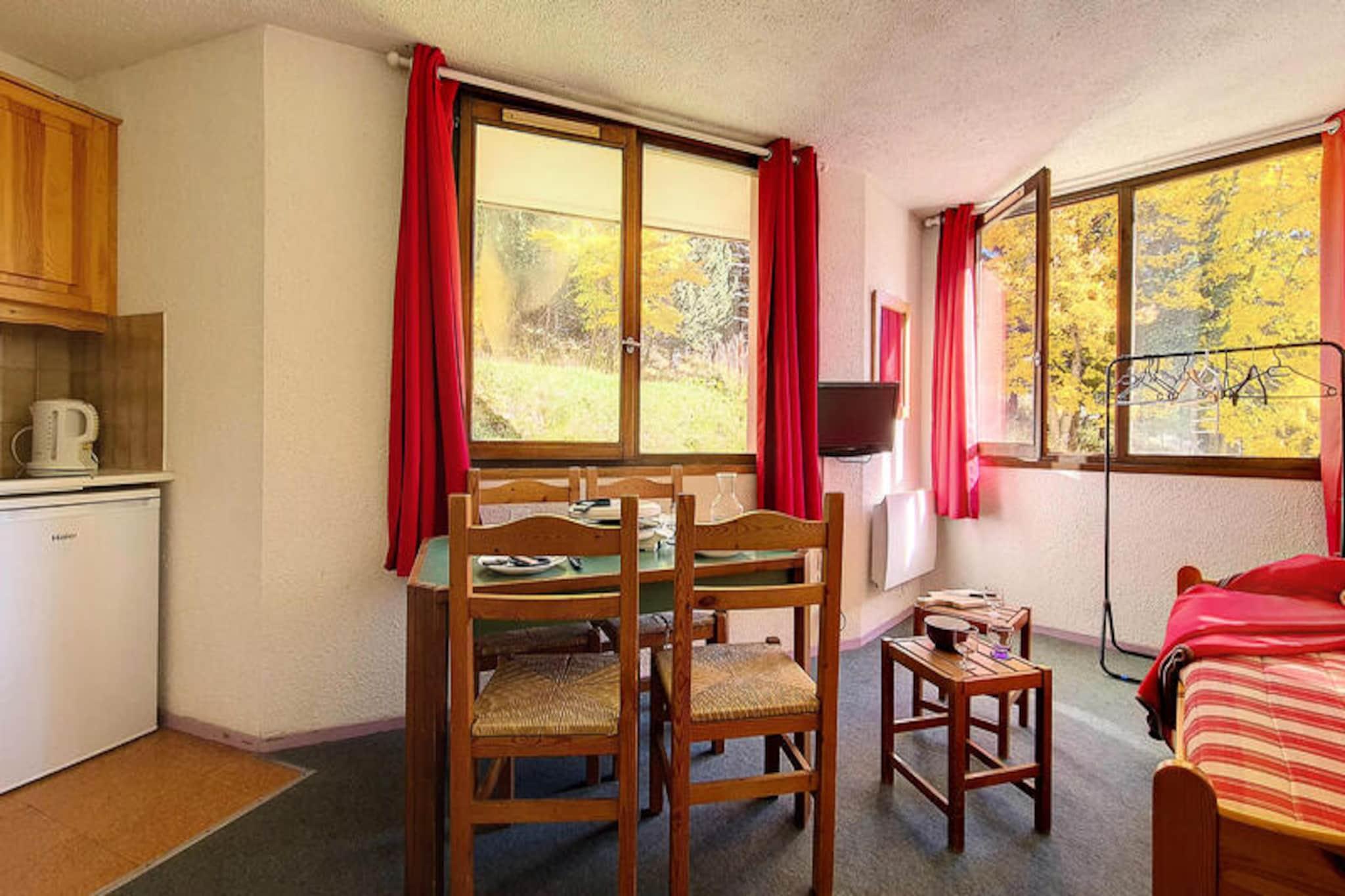 Højt over den maleriske Belleville-dal tilbyder denne charmerende studiolejlighed i Boedette D-residensen et idyllisk alpint tilflugtssted med ski-in/ski-out-adgang. Med en perfekt beliggenhed på Place des Bouquetins placerer residensen dig i hjertet af Les Menuires' pulserende vinterlandskab, hvor snedækkede tinder og spændende pister venter lige uden for din dør. Uanset om du er her for adrenalinsuset fra skiløb eller roen ved bjergudsigten, lover dette hyggelige tilflugtssted en uforglemmelig flugt. Det gennemtænkt designede 22 m² store studio har plads til op til fire gæster, hvilket gør det ideelt for par eller små familier. Opholdsstuen har en komfortabel enkelt sovesofa og en udtræksseng, mens en separat sovealkove med køjesenge sikrer privatliv og afslappende nætter. Det kompakte, men fuldt udstyrede køkken har keramisk kogeplade, mikrobølgeovn, køleskab, opvaskemaskine, kaffemaskine og elkedel, så du kan tilberede solide måltider efter en dag på pisterne. Et moderne badeværelse med bruser og separat toilet øger bekvemmeligheden, mens lejlighedens varme tæppebelagte gulve skaber en indbydende atmosfære. Gå udenfor og oplev gangbroen, der forbinder dig med det livlige Bruyères-distrikt, hvor et væld af faciliteter venter. Fra restauranter og butikker til en biograf, vandland, wellnesscenter og skiskole er alt, hvad du behøver, inden for rækkevidde. Familier vil elske kælkebanen og legepladsen, mens eventyrere kan udforske det nærliggende Croisette-distrikt, der ligger kun 15 minutters gang væk. Uanset om du søger eventyr eller afslapning, tilbyder denne studiolejlighed den perfekte base for at opleve magien i Les Menuires. Med sin uovertrufne beliggenhed, hyggelige interiør og adgang til faciliteter i verdensklasse begynder din alpine ferie her.
