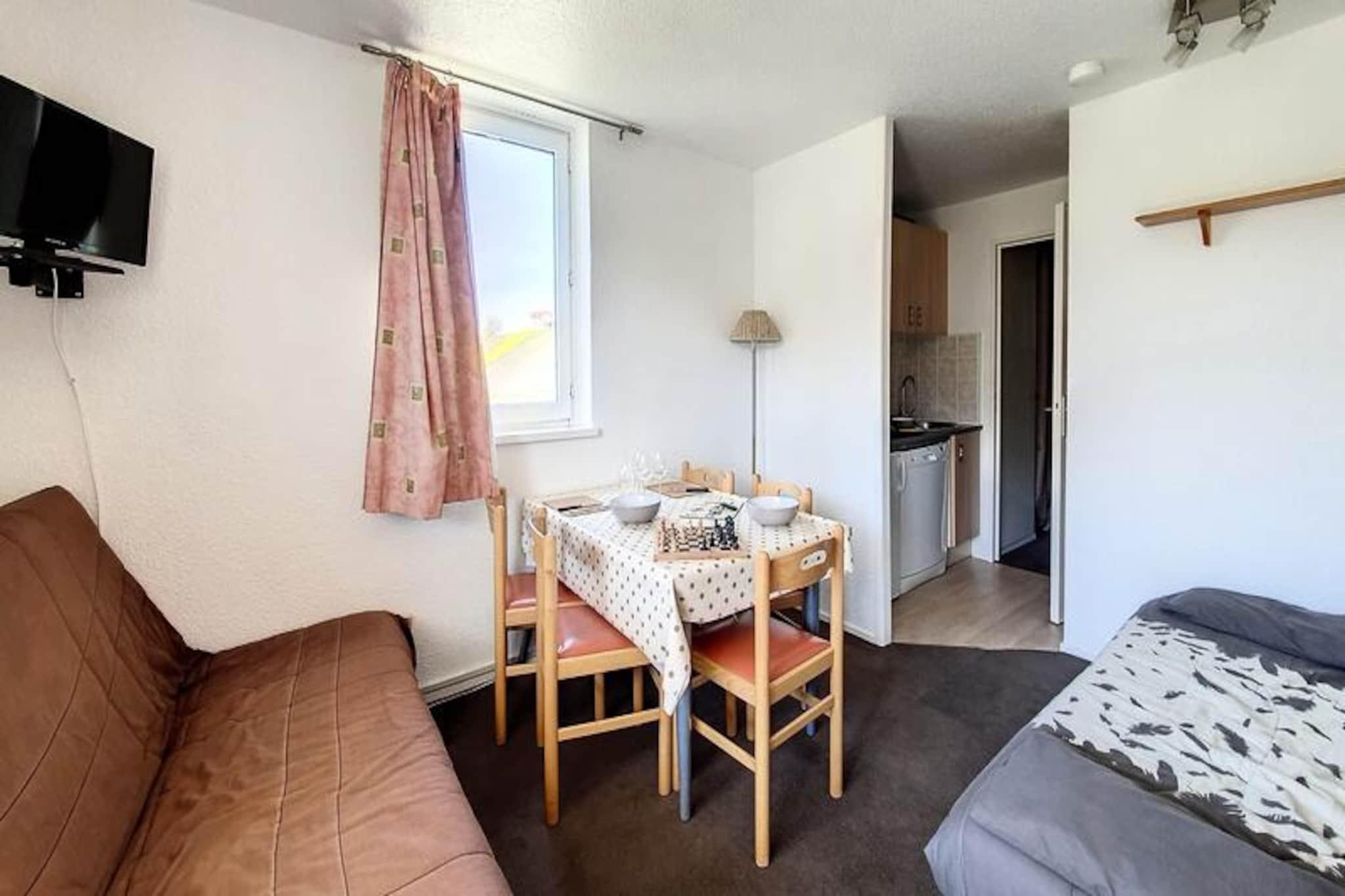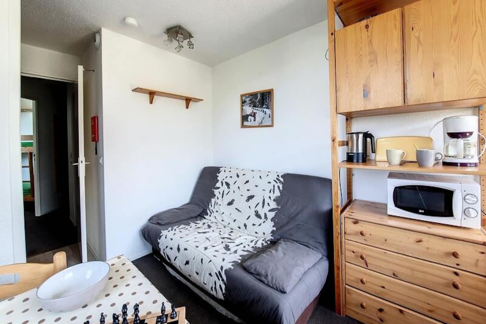 I hjertet af det maleriske Reberty 1850-distrikt tilbyder denne charmerende studiolejlighed et hyggeligt alpint tilflugtssted for op til fire gæster. Med sin vestvendte balkon kan du nyde en fantastisk udsigt over bjergene, mens solen går ned over bjergtoppene, hvilket skaber den perfekte atmosfære til en afslappende ferie. Uanset om du er her for at grave dig gennem sneen eller blot slappe af i den friske bjergluft, er denne bolig en indbydende base for dine eventyr. Lejligheden har en veldesignet planløsning, herunder en komfortabel stue med en dobbelt sovesofa og en separat sovealkove med to enkeltkøjesenge, hvilket gør den ideel til familier eller små grupper. Det fuldt udstyrede køkken kan prale af moderne bekvemmeligheder såsom køleskab, induktionskogeplader, ovn, mikrobølgeovn og opvaskemaskine, hvilket sikrer, at du har alt, hvad du behøver for at tilberede solide måltider efter en dag på pisterne. Et tv og en dvd-afspiller bidrager til den hyggelige atmosfære, mens badeværelset med badekar giver et varmt sted at slappe af. Bemærk venligst, at køjesengene ikke er egnede til børn under seks år. Médian-residensen er bekvemt placeret kun 250 meter fra pisterne og sikrer nem adgang til skiskolen og nærliggende butikker. Gratis parkering ved foden af ??bygningen øger bekvemmeligheden, og der er betalt Wi-Fi til rådighed for dem, der har brug for at holde sig forbundet. Uanset om du er her for spændingen ved skiløb eller roen i bjergene, tilbyder denne lejlighed et indbydende og praktisk hjem væk fra hjemmet. Med sin førsteklasses beliggenhed og gennemtænkte faciliteter er dette studie perfekt til at skabe uforglemmelige alpine minder i de fantastiske franske alper.
