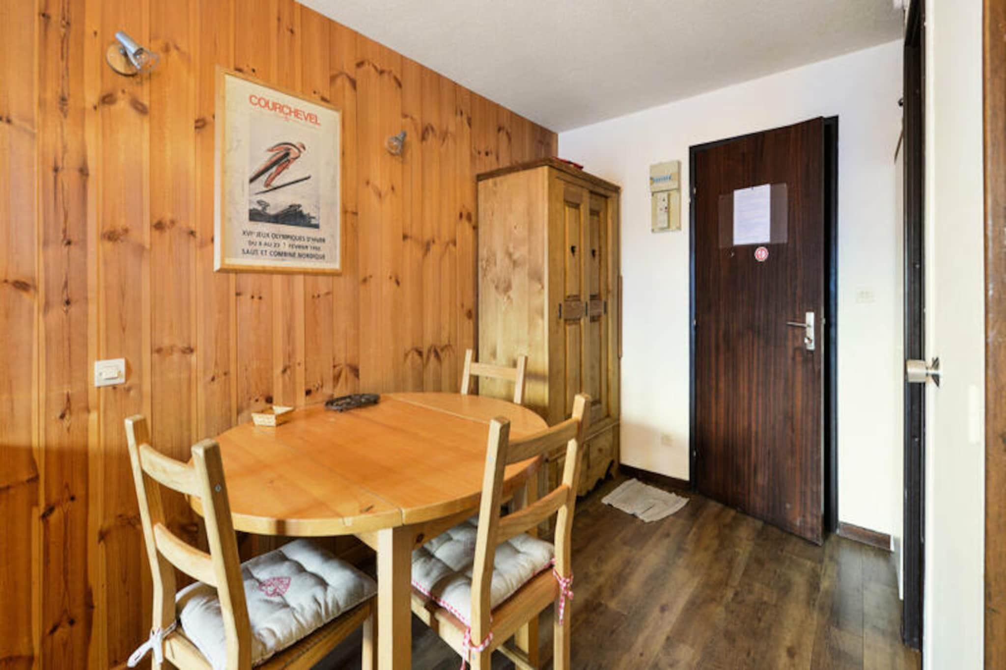 I det fredfyldte Fontanettes-kvarter tilbyder denne charmerende 2-værelses lejlighed et hyggeligt alpint tilflugtssted med betagende udsigt over Masse-bjergkæden. Boligen er perfekt placeret til både afslapning og eventyr, kun 300 meters gang fra skiløjperne, hvilket sikrer nem adgang til regionens sneklædte vidundere. Uanset om du er her for vintersport eller sommervandreture, lover dette rolige hjørne af Alperne en uforglemmelig flugt. Lejligheden, der ligger på 2. sal i en bygning med elevator, er omhyggeligt designet til at rumme op til fire gæster. Stuen har en komfortabel sovesofa til to, mens det separate soveværelse har to hyggelige køjesenge. Det fuldt udstyrede køkken inkluderer moderne apparater såsom køleskab med frostboks, komfur, mikrobølgeovn, ovn og endda en Nespresso-maskine til din morgenkaffe. Efter en dag med eventyr kan du slappe af på den dejlige terrasse med vestvendt udsigt eller nyde en varm raclette-middag med den medfølgende raclette- og vaffelmaskine. Fontanettes-kvarteret er et fredeligt område med bekvemme faciliteter, herunder en skiudlejning, et bageri og en restaurant. For flere muligheder er distrikterne La Croisette og Bruyères let tilgængelige via en gratis shuttlebus eller en naturskøn 10-15 minutters gåtur langs en gåsti. Uanset om du udforsker pisterne eller nyder det lokale køkken, er alt hvad du behøver inden for rækkevidde. Med sin rolige beliggenhed, fantastiske udsigt og gennemtænkte faciliteter er denne lejlighed et ideelt valg for par, familier eller venner, der søger en hyggelig alpeferie. Skab varige minder i hjertet af de franske alper, hvor eventyr og ro mødes.