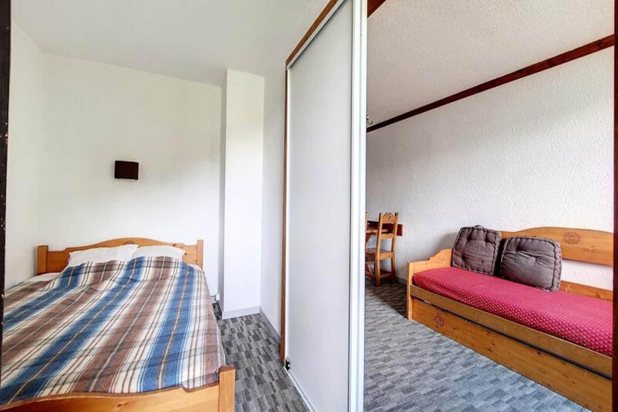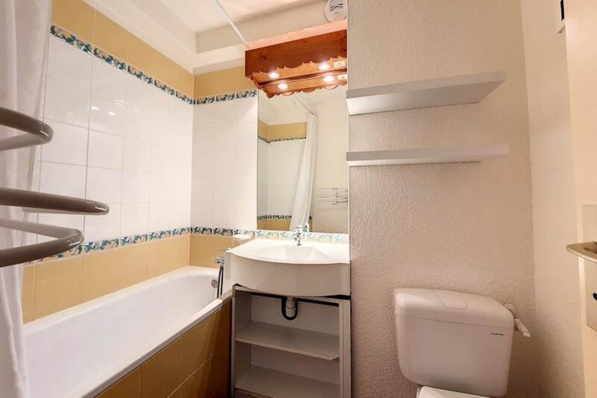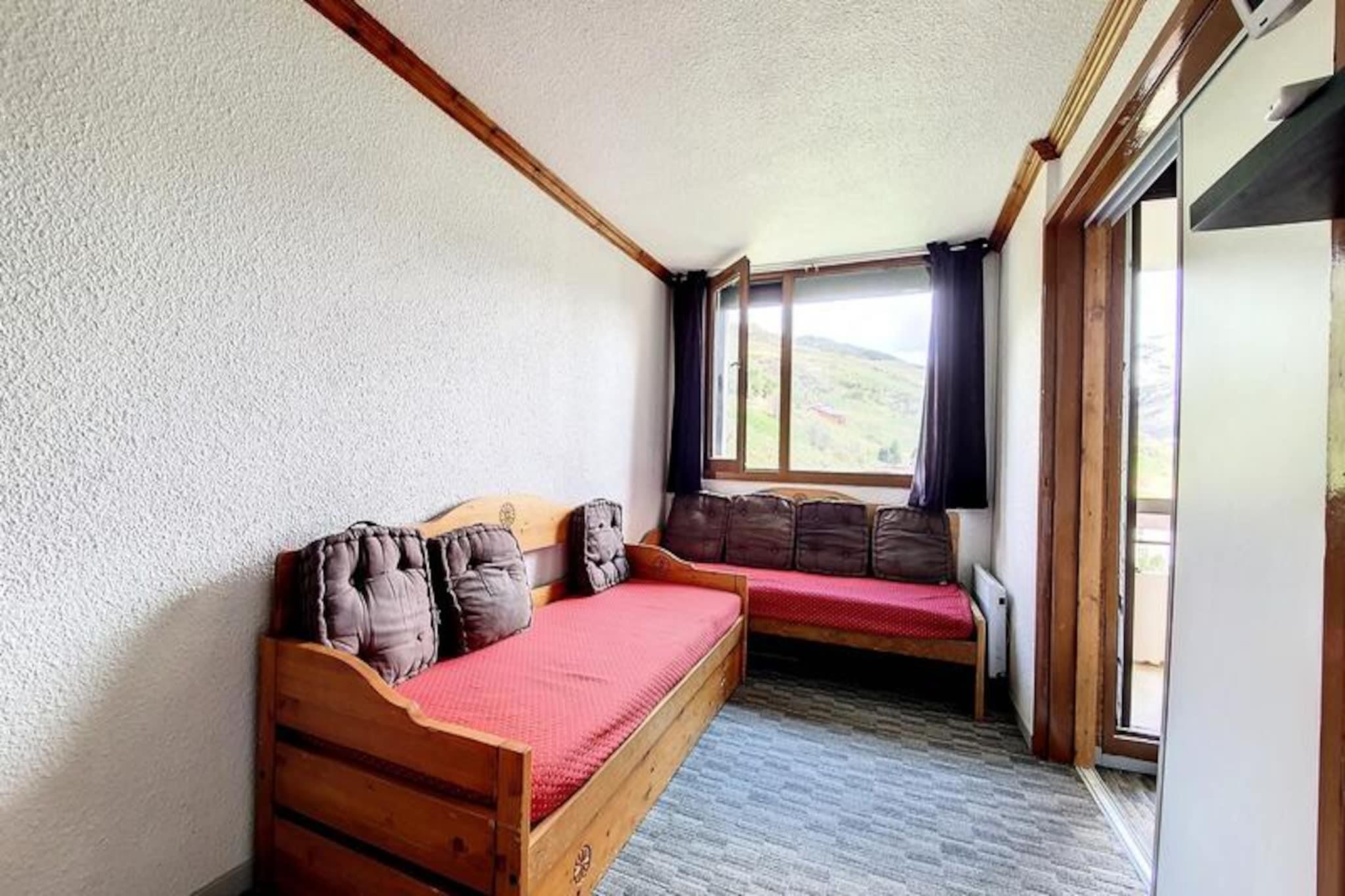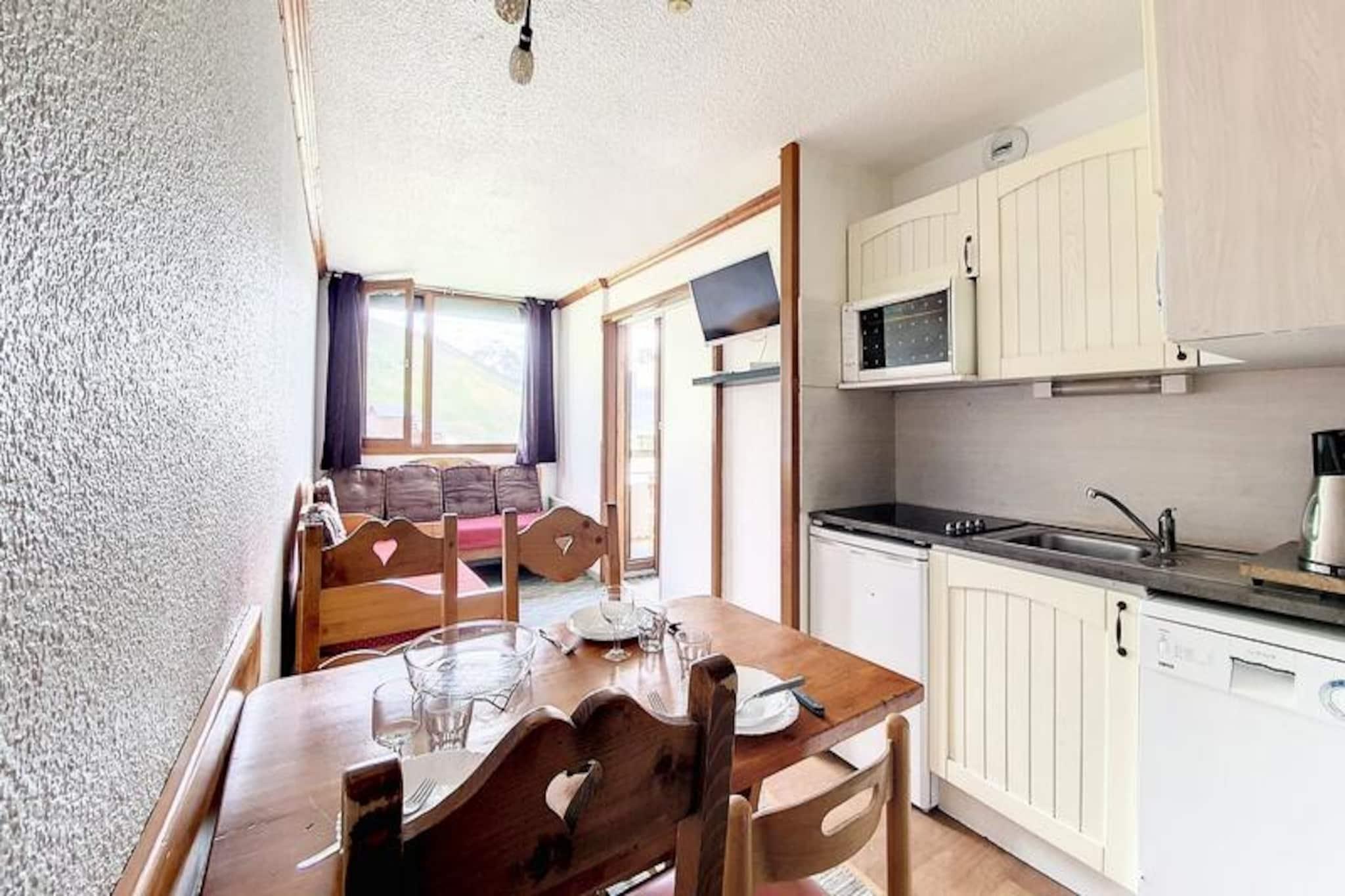 Højt over de glitrende dale i Les Menuires tilbyder denne hyggelige lejlighed i Médian-residensen en rolig oase i Reberty 1850-distriktet. Badet i sollys fra sin sydvestvendte balkon inviterer ejendommen dig til at slappe af efter en dag med alpine eventyr med betagende udsigt over de omkringliggende tinder og skråninger. Uanset om du er her for at stå på ski, vandre eller blot nyde den fredfyldte bjergatmosfære, er dette charmerende tilflugtssted din port til de franske alpers vidundere. \n\nLejligheden er blevet omhyggeligt renoveret for at tilbyde moderne komfort, samtidig med at den bevarer sin varme og indbydende karakter. Med en flytbar skillevæg kan det smart designede layout rumme op til fire gæster, hvilket gør den ideel til par eller små familier. Stuen har en enkelt sovesofa og en udtræksseng, mens det separate soveværelse tilbyder en hyggelig dobbeltseng til afslappende nætter. Et fuldt udstyret køkken venter på din kulinariske kreativitet, komplet med kogeplade, mikrobølgeovn, køleskab, opvaskemaskine og essentielle apparater som elkedel, brødrister og kaffemaskine. Badeværelset har badekar og toilet, hvilket sikrer bekvemmelighed og afslapning. \n\nBeliggende kun 250 meter fra pisterne, har du nem adgang til skiløb og snowboarding i verdensklasse. Nærliggende butikker og en skiskole gør det nemt at udstyre dig og komme ud på pisterne, mens gratis parkering ved foden af ??bygningen øger bekvemmeligheden. Om sommeren forvandles regionen til et paradis for vandrere og naturelskere, med stier, der snor sig gennem frodige landskaber og tilbyder panoramaudsigt over Tarentaise-dalen. \n\nUanset om du søger spændende vintersport eller fredelige sommerferier, er denne lejlighed den perfekte base for dine alpine eventyr. Med sin blanding af komfort, praktisk anvendelighed og fantastiske omgivelser er det et sted, hvor uforglemmelige minder skabes.