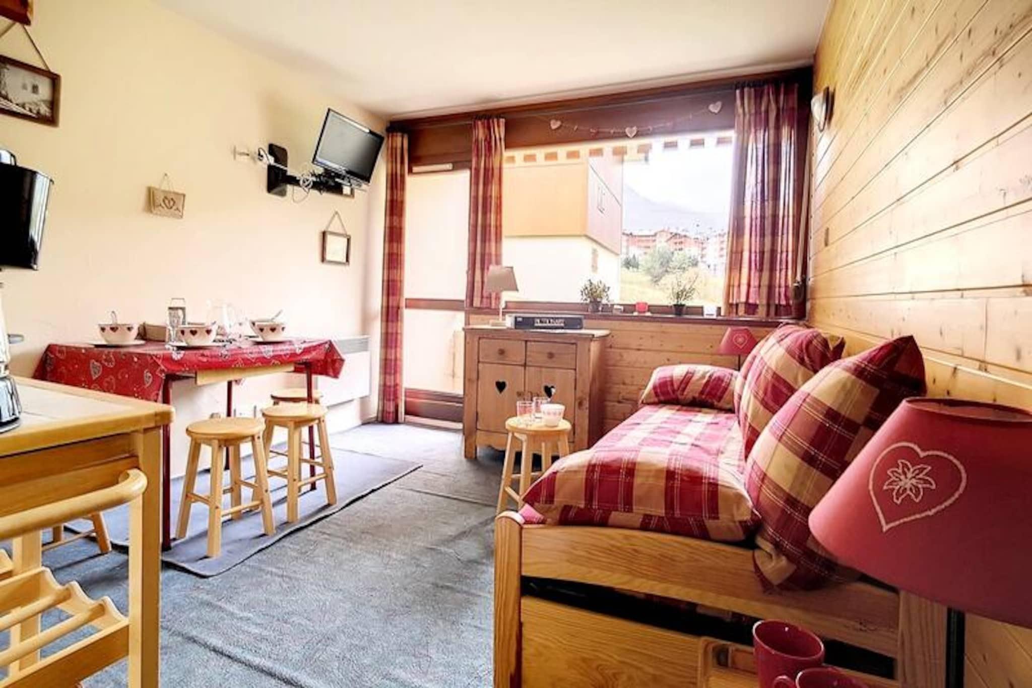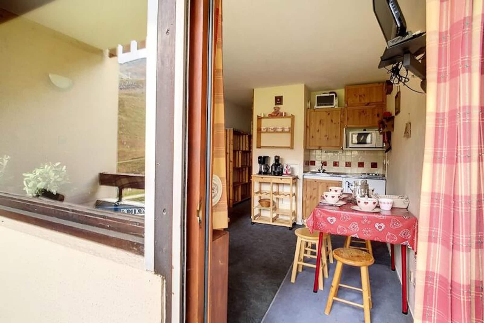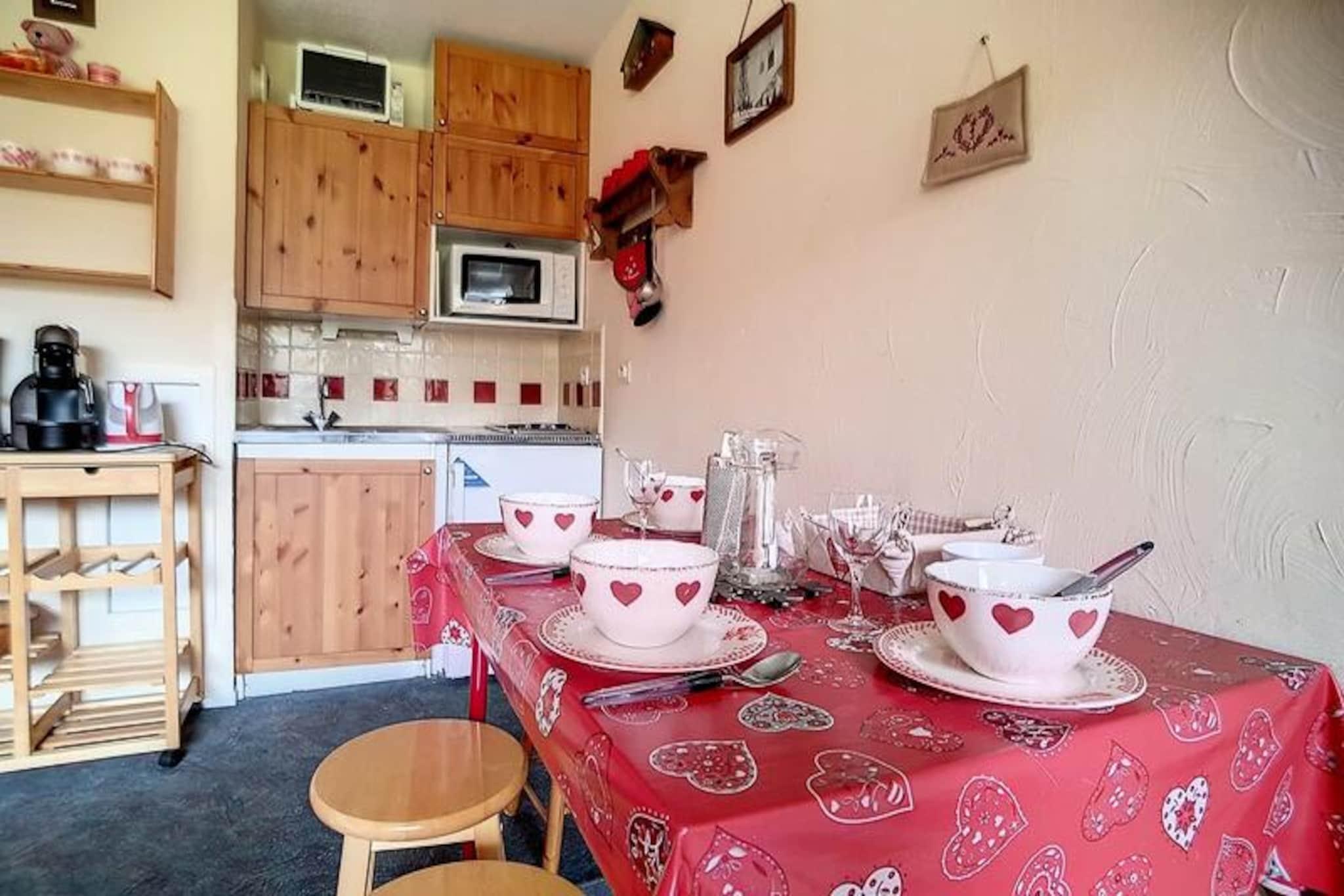 I det fredfyldte Fontanettes-distrikt tilbyder denne charmerende studiolejlighed et hyggeligt alpint tilflugtssted for op til fire gæster. Omgivet af de majestætiske tinder i de franske alper er det den perfekte base for en mindeværdig bjergferie. Uanset om du er her for at klatre gennem uberørte skråninger eller blot slappe af i den friske bjergluft, tilbyder denne ejendom en rolig flugt fra hverdagens travlhed. Distriktets fredelige atmosfære suppleres af nem adgang til nærliggende faciliteter, hvilket sikrer både bekvemmelighed og komfort under dit ophold. Det 24 m² store studio er omhyggeligt designet til at maksimere plads og funktionalitet. Opholdsstuen har en enkeltseng og en udtræksseng, mens et separat soveområde tilbyder to enkeltsenge, hvilket gør det ideelt for familier eller små grupper. Den sydvendte balkon inviterer dig til at nyde solskinnet og beundre den fantastiske udsigt over alperne. Et fuldt udstyret køkken inkluderer to elektriske kogeplader, en mikrobølgeovn, en mini-opvaskemaskine, et køleskab og en Krups-kaffemaskine, så du nemt kan tilberede måltider. Lejligheden har også et badeværelse med badekar og toilet samt et fjernsyn til din underholdning. Bemærk venligst, at lejligheden er røgfri, kæledyrsfri og har dyner, men ingen håndklæder. Fontanettes-distriktet har gode forbindelser til de livlige områder La Croisette og Bruyères via gratis shuttlebusser, der kører hvert 20. minut, eller en naturskøn 10-15 minutters gåtur langs en gåsti. I nærheden finder du en skiudlejningsbutik, et bageri og en restaurant, hvilket gør det nemt at nyde de lokale tilbud. For dem, der ankommer i bil, er der en udendørs parkeringsplads over Campanules parkeringsplads. Uanset om du søger spændende dage på pisterne eller fredelige aftener i bjergene, kombinerer denne studiolejlighed enkelhed og charme for at skabe en dejlig alpin oplevelse. Lad de franske alpers skønhed inspirere dit næste eventyr.