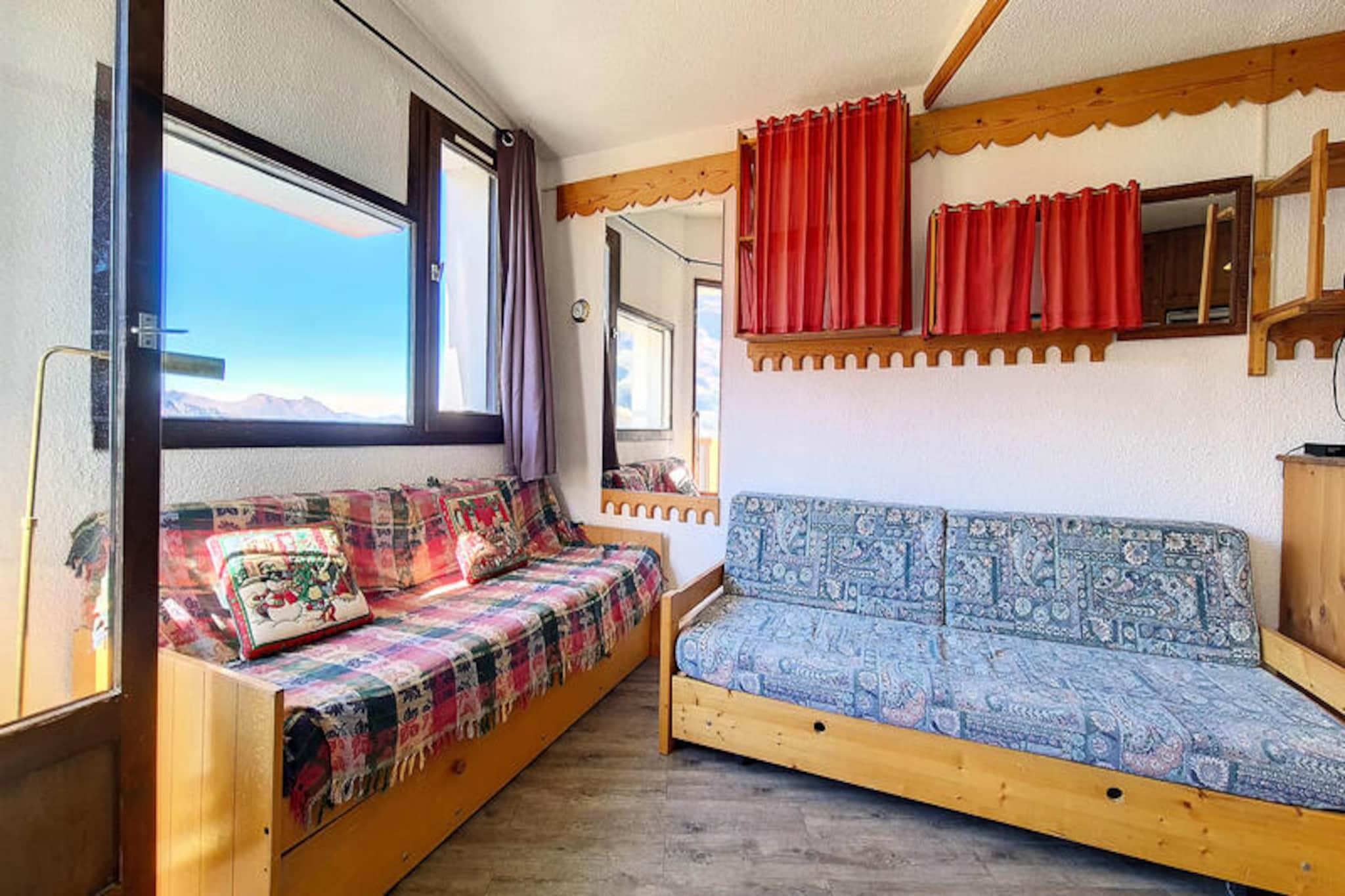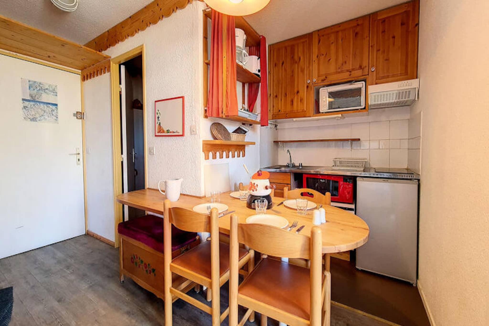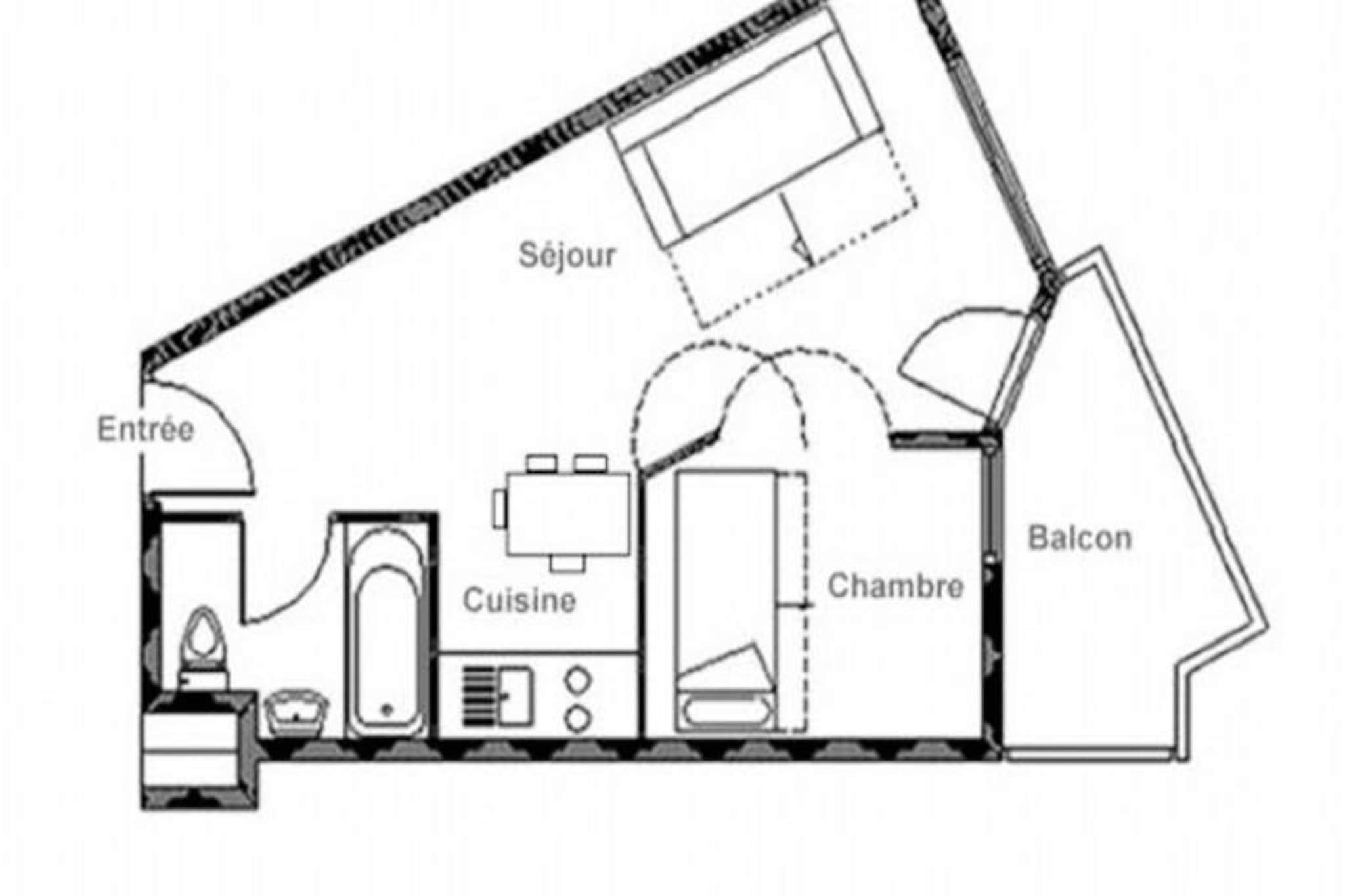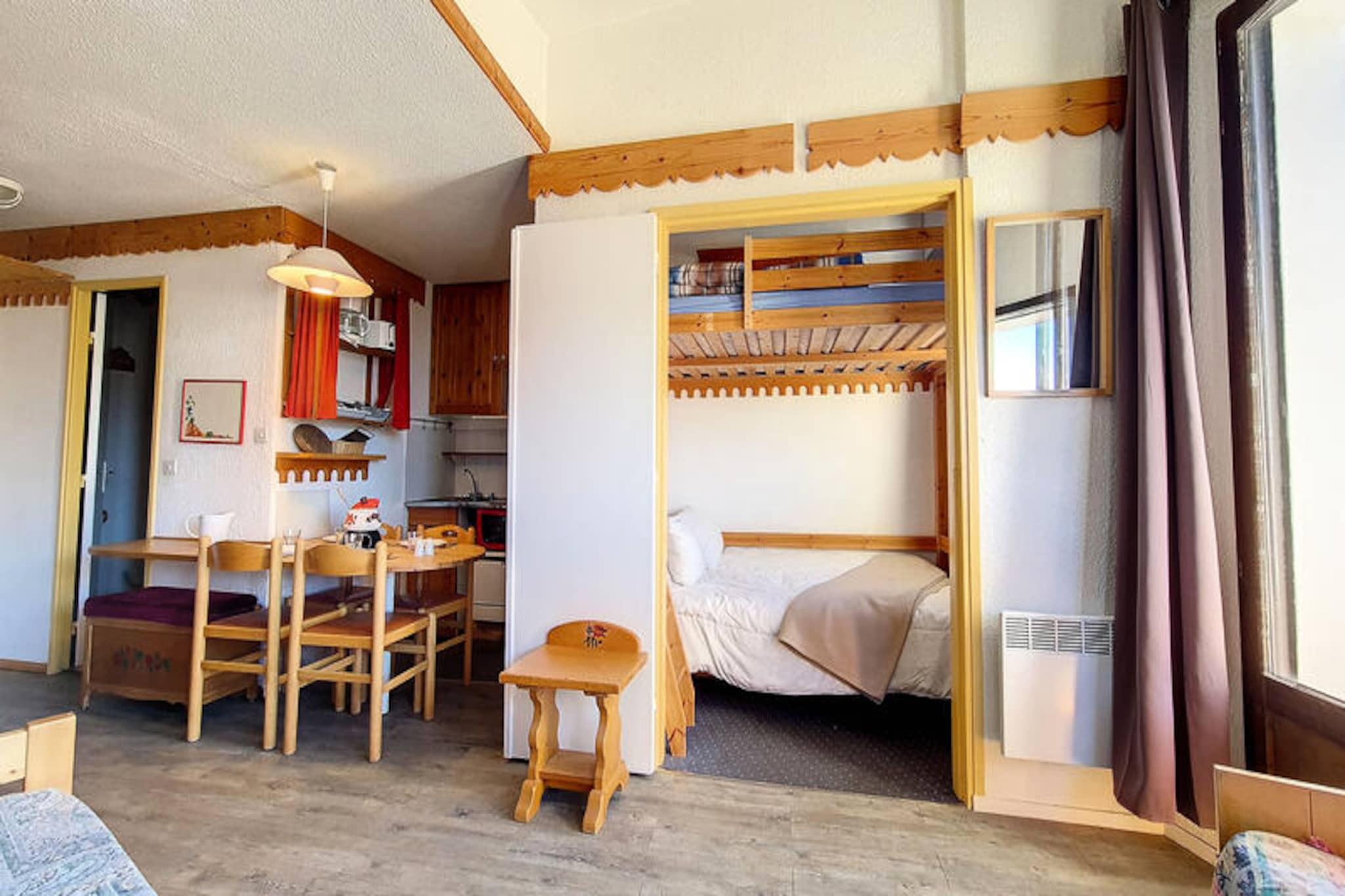 Højt over det charmerende Reberty 1850-distrikt tilbyder dette hyggelige alpine tilflugtssted en rolig oase for dem, der søger den perfekte blanding af komfort og bekvemmelighed. Forestil dig at vågne op til den bløde morgensol på din sydøstvendte balkon med betagende udsigt over de omkringliggende tinder og den friske bjergluft, der forfrisker dine sanser. Uanset om du er her for eventyr eller afslapning, er denne lejlighed din port til en uforglemmelig alpin oplevelse. \n\nDenne kompakte, men gennemtænkte lejlighed med to værelser er på 26 m² og har komfortabel plads til op til fire gæster. Stuen har en enkeltseng og en udtræksseng, mens det separate soveværelse tilbyder en hyggelig dobbeltseng til afslappende nætter. En flytbar skillevæg giver plads til rummet og sikrer privatliv og komfort. Det fuldt udstyrede køkken indeholder alt, hvad du behøver for at tilberede solide måltider efter en dag på pisterne, fra kogeplade og ovn til opvaskemaskine og mikrobølgeovn. Moderne detaljer som et fjernsyn og tæpper sikrer et behageligt ophold, mens ikke-rygerpolitikken og det kæledyrsfri miljø opretholder en ren og rolig atmosfære. \n\nBeliggende kun 250 meter fra pisterne tilbyder residensen nem adgang til skiløb i verdensklasse. Gratis parkering ved foden af ??bygningen og nærhed til butikker og en skiskole gør dette til et ideelt valg for både familier og par. Efter en dag med alpine eventyr kan du vende tilbage til varmen i din lejlighed for at slappe af og lade op. \n\nUanset om du er her for at grave dig gennem frisk puddersne eller blot nyde skønheden i de franske alper, lover denne lejlighed i Médian-residensen et mindeværdigt ophold. Book din ferie i dag, og lad magien fra Reberty 1850 fortrylle dig.